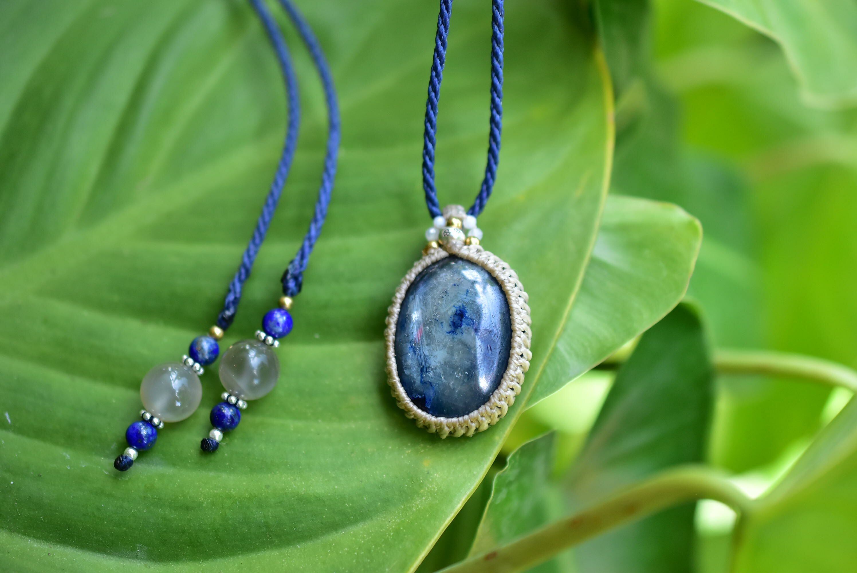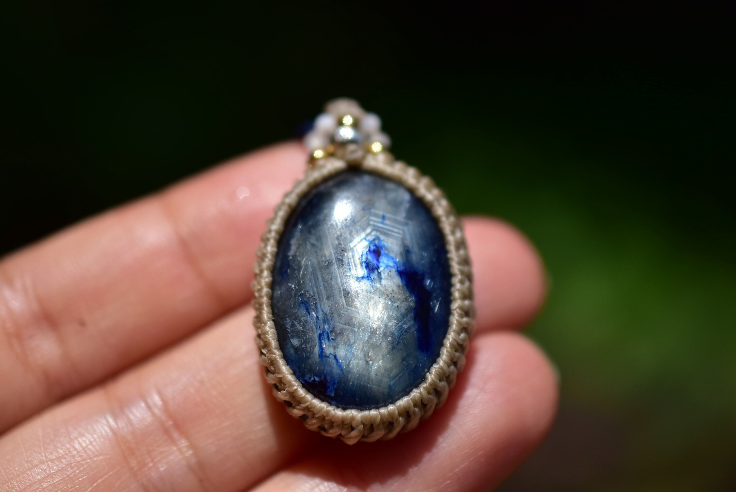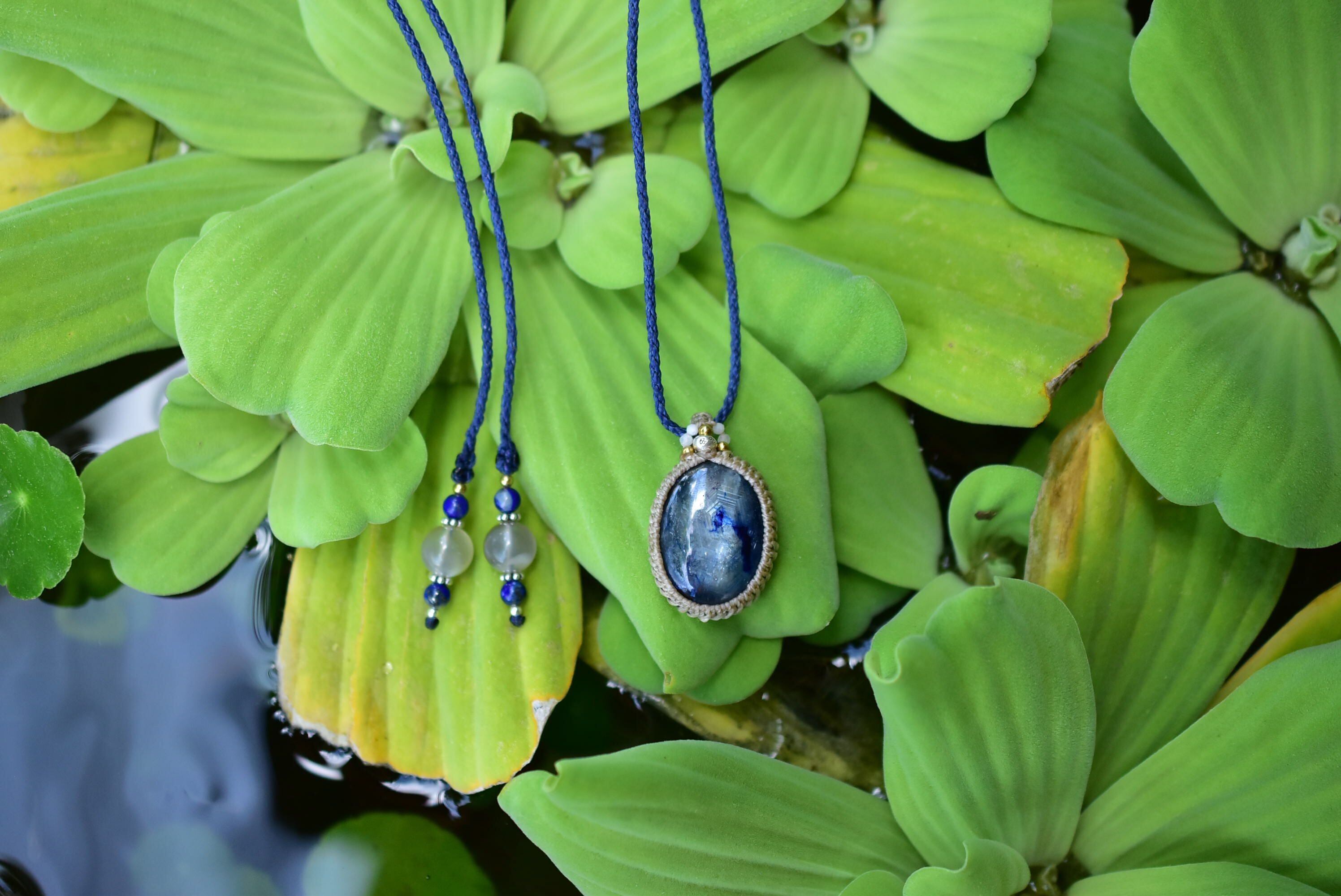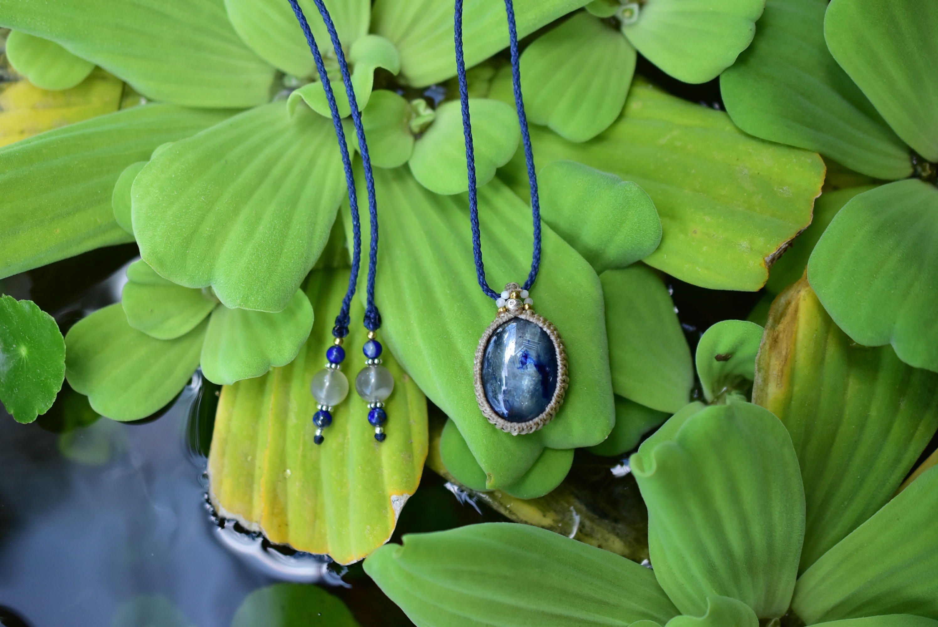 混じり合うブルーシラー★ブルーサファイア マクラメペンダント214