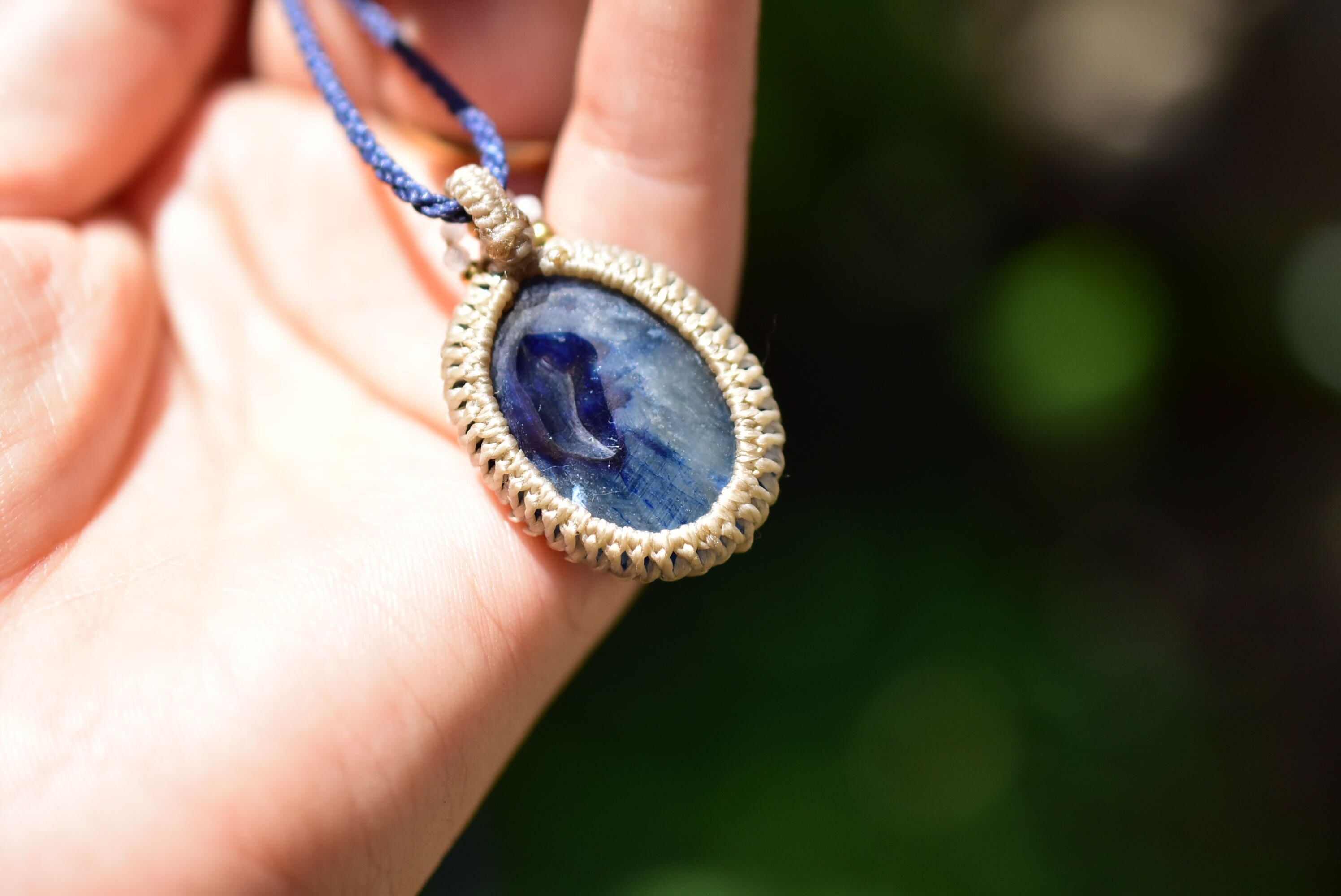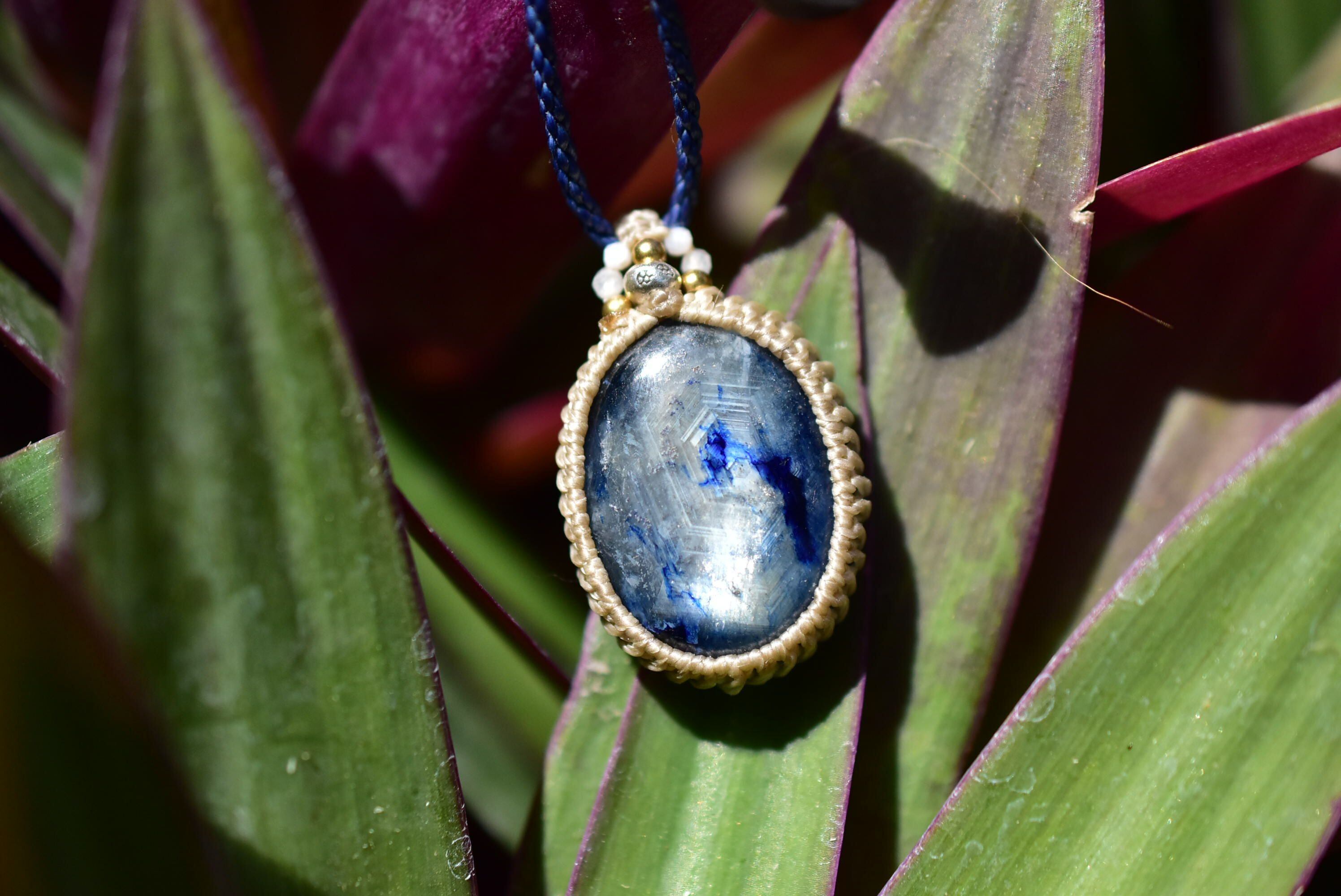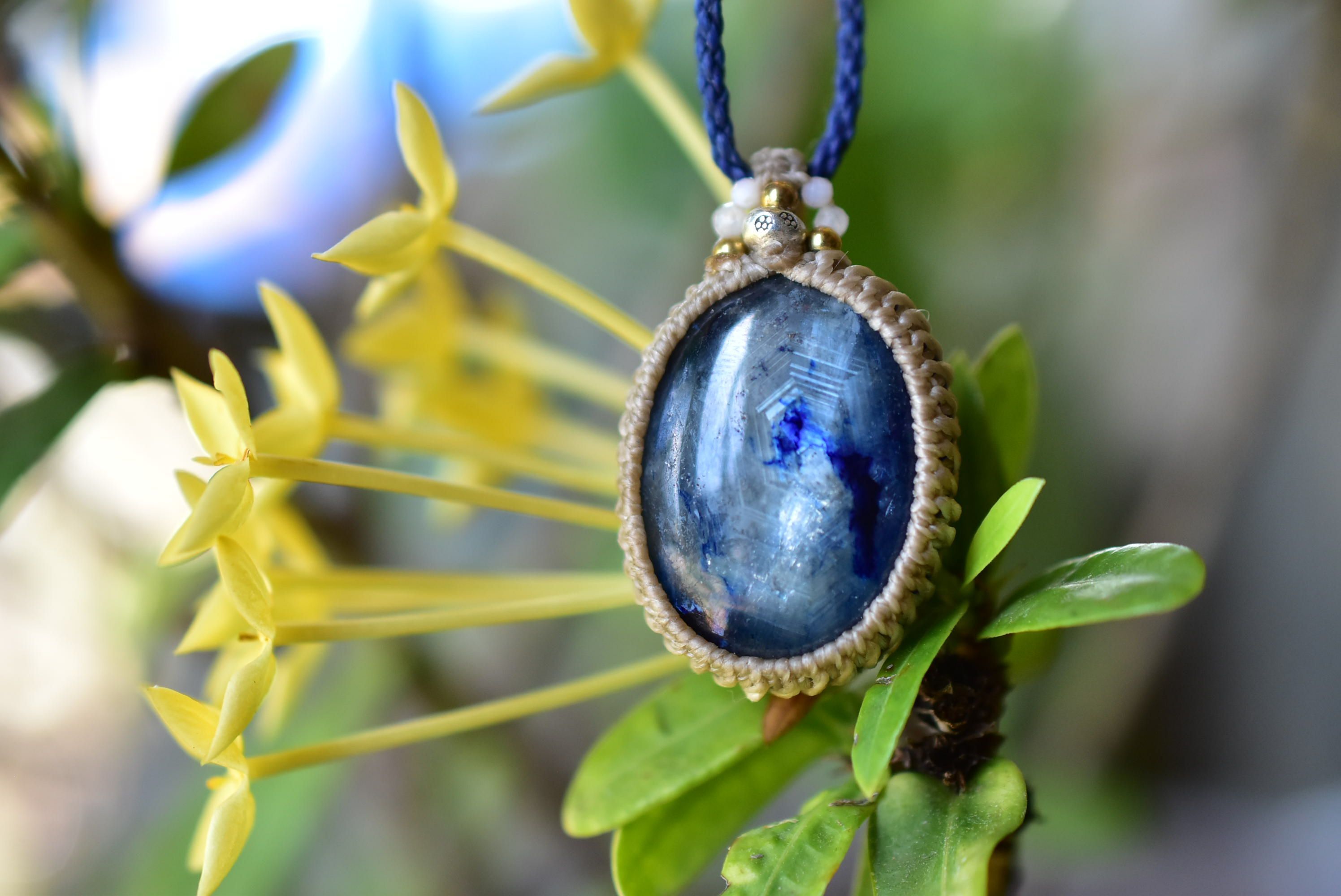 混じり合うブルーシラー★ブルーサファイア マクラメペンダント214