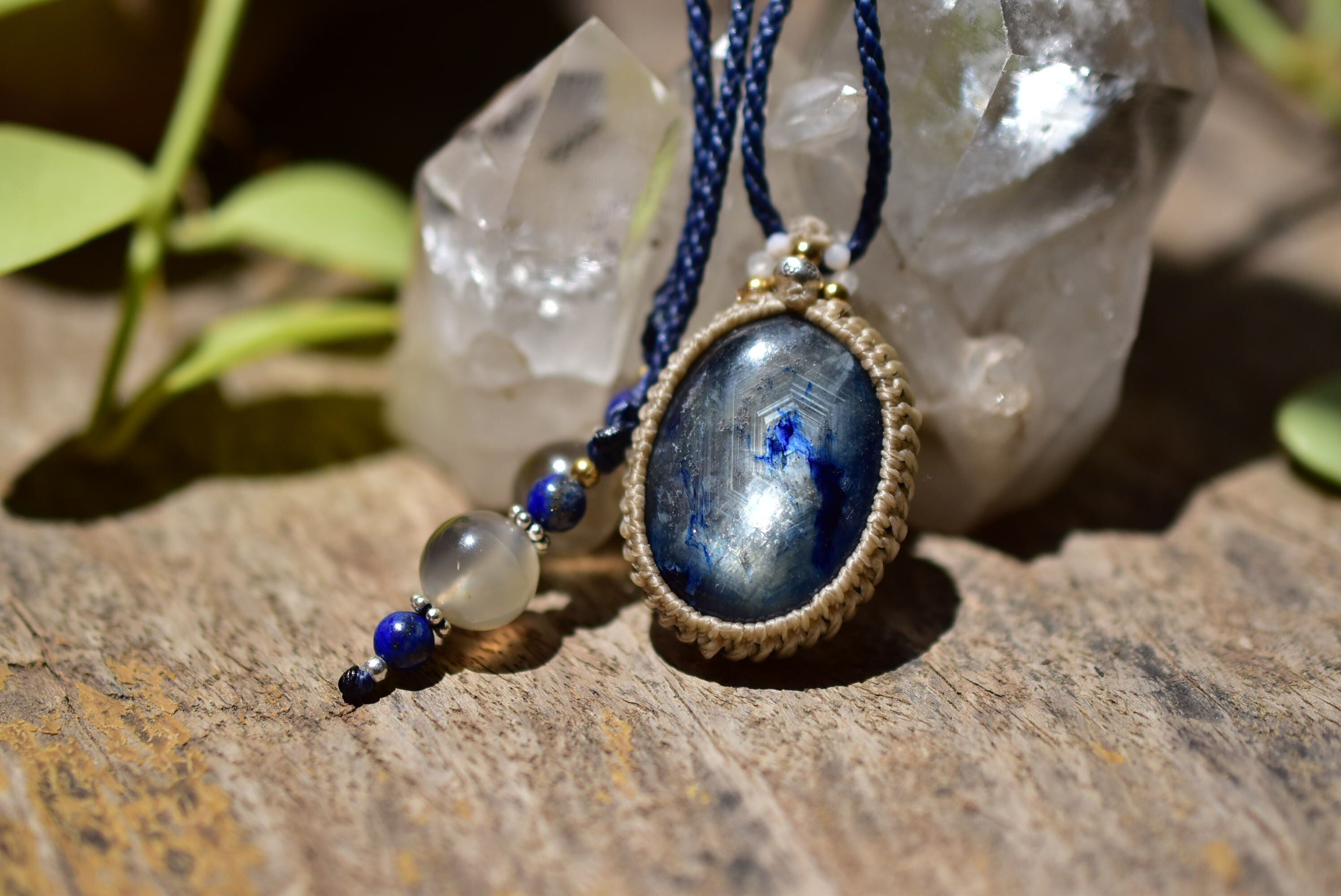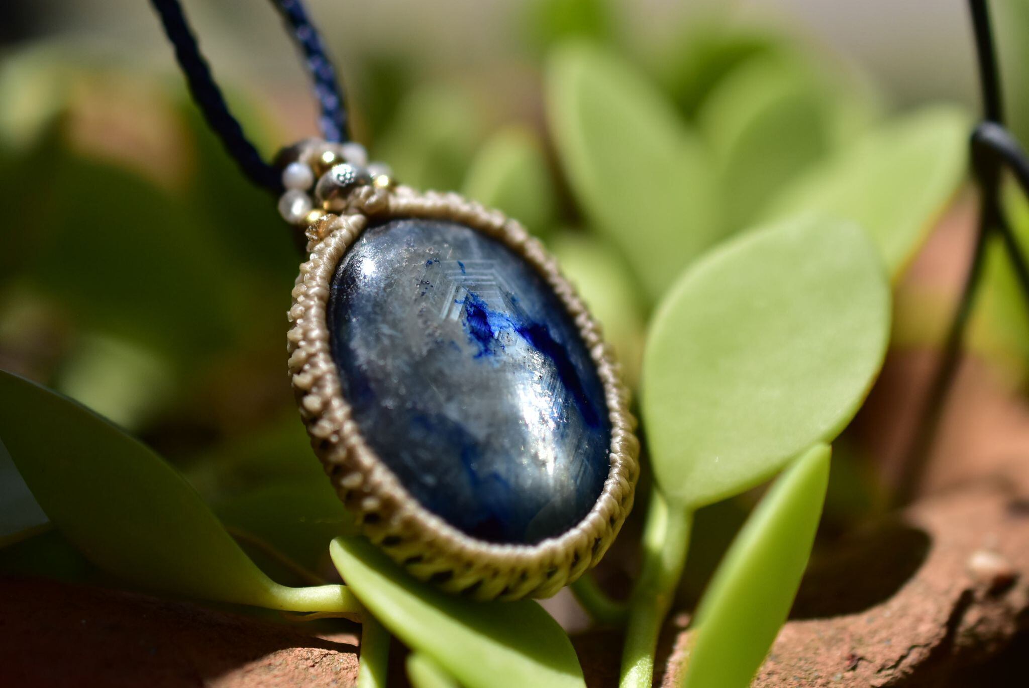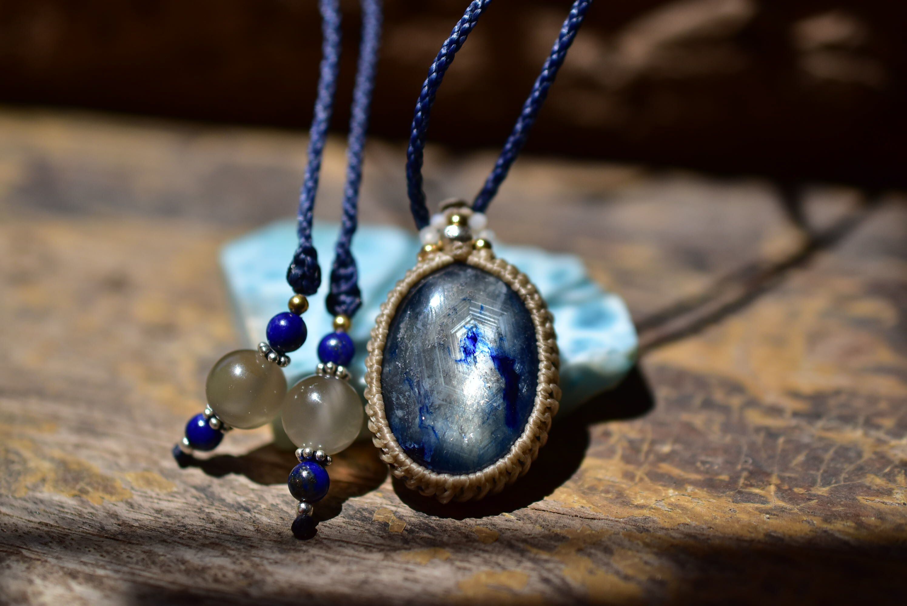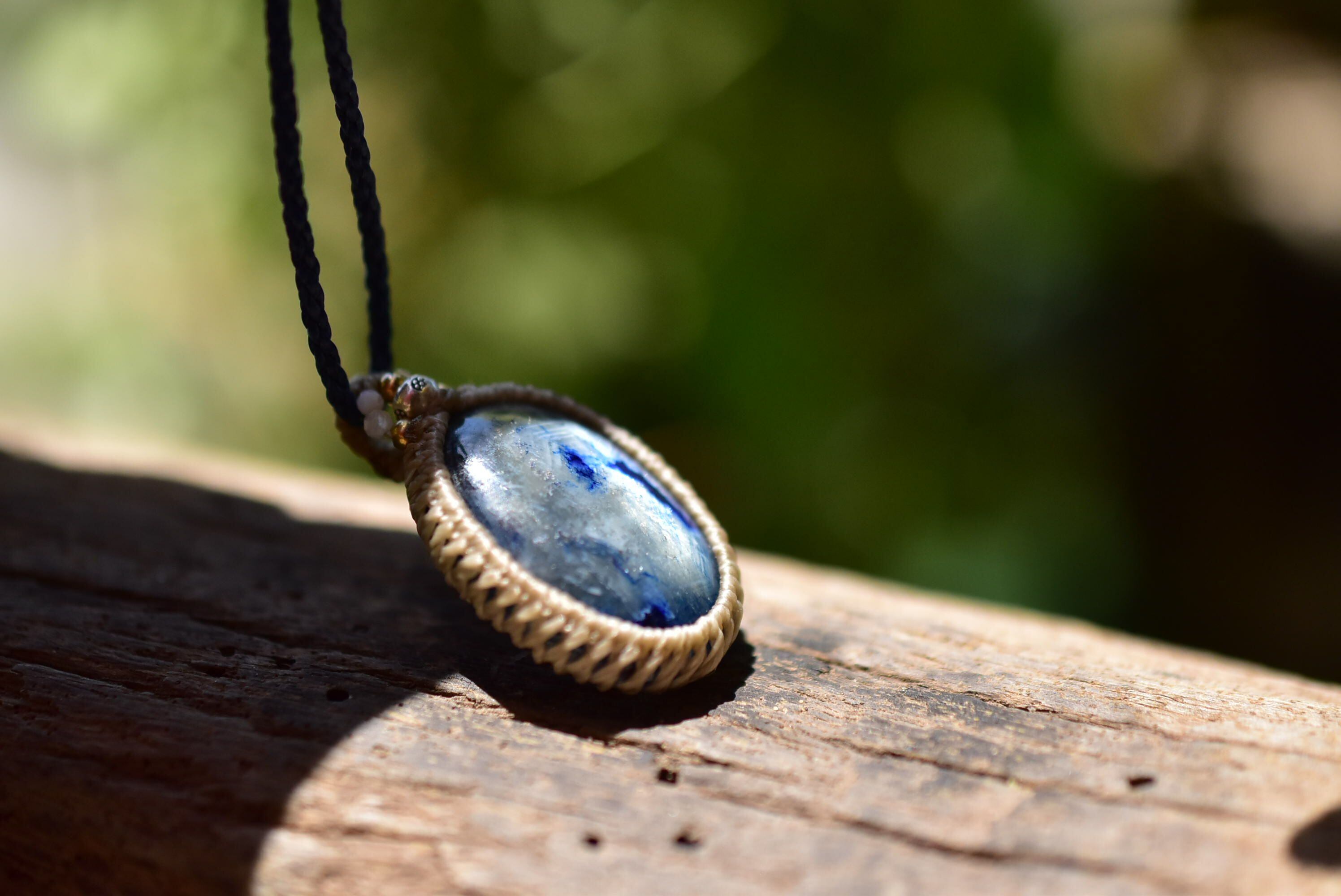 混じり合うブルーシラー★ブルーサファイア マクラメペンダント214