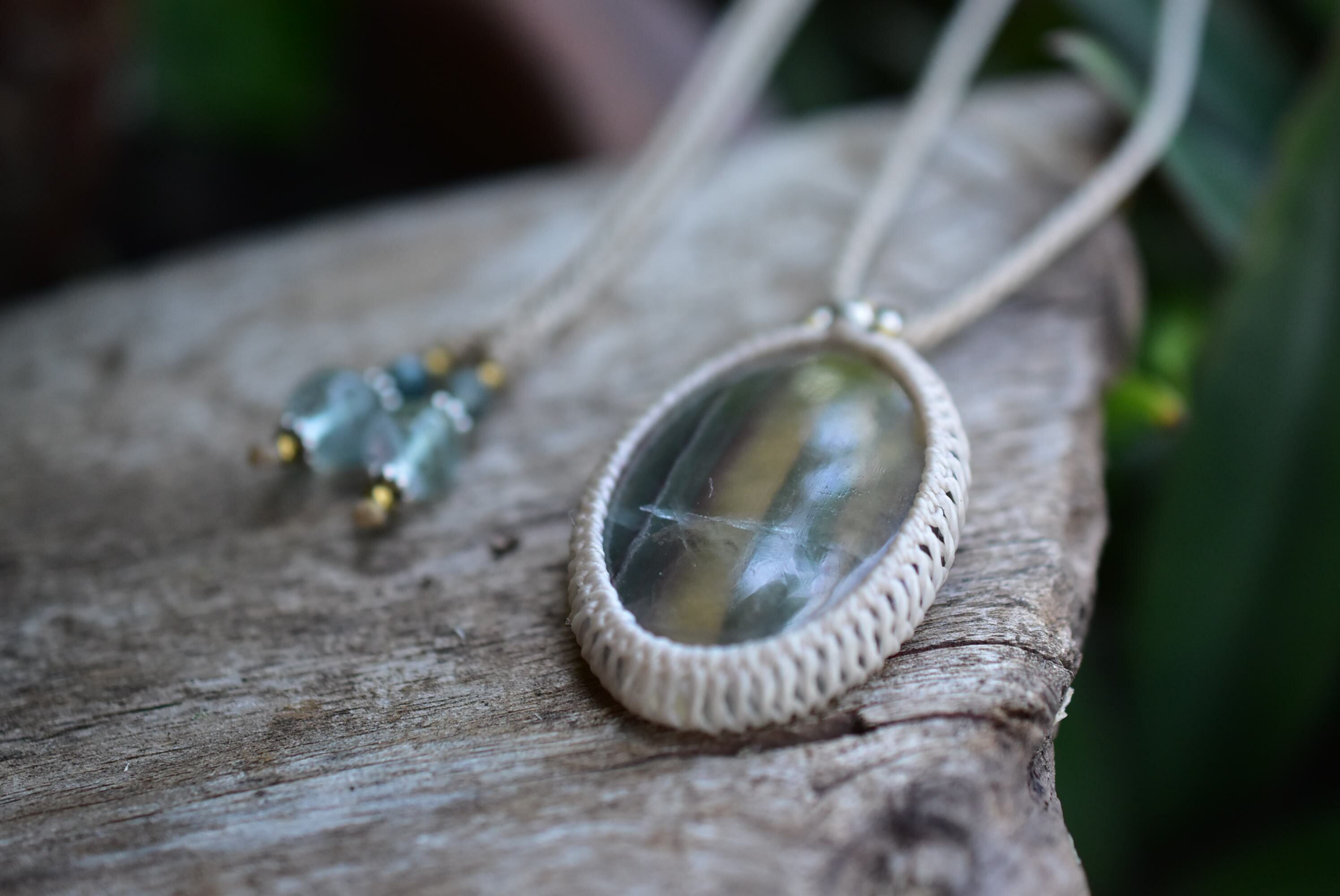 縦のグラデーション★ブルーフローライト マクラメペンダント 219