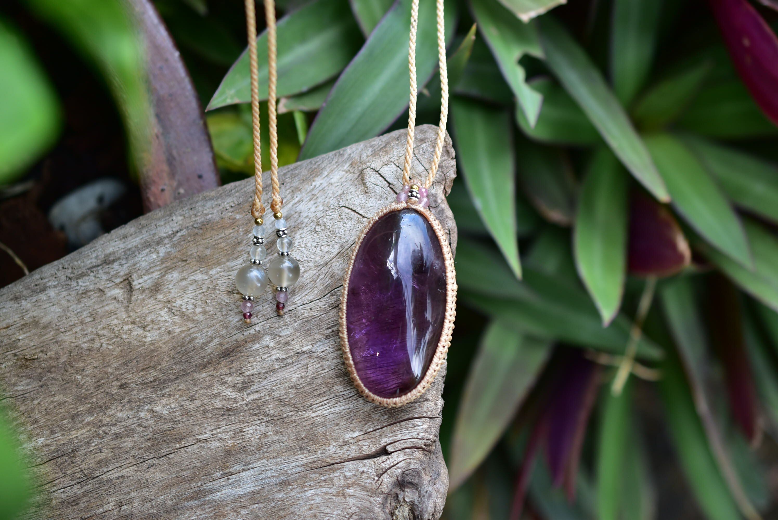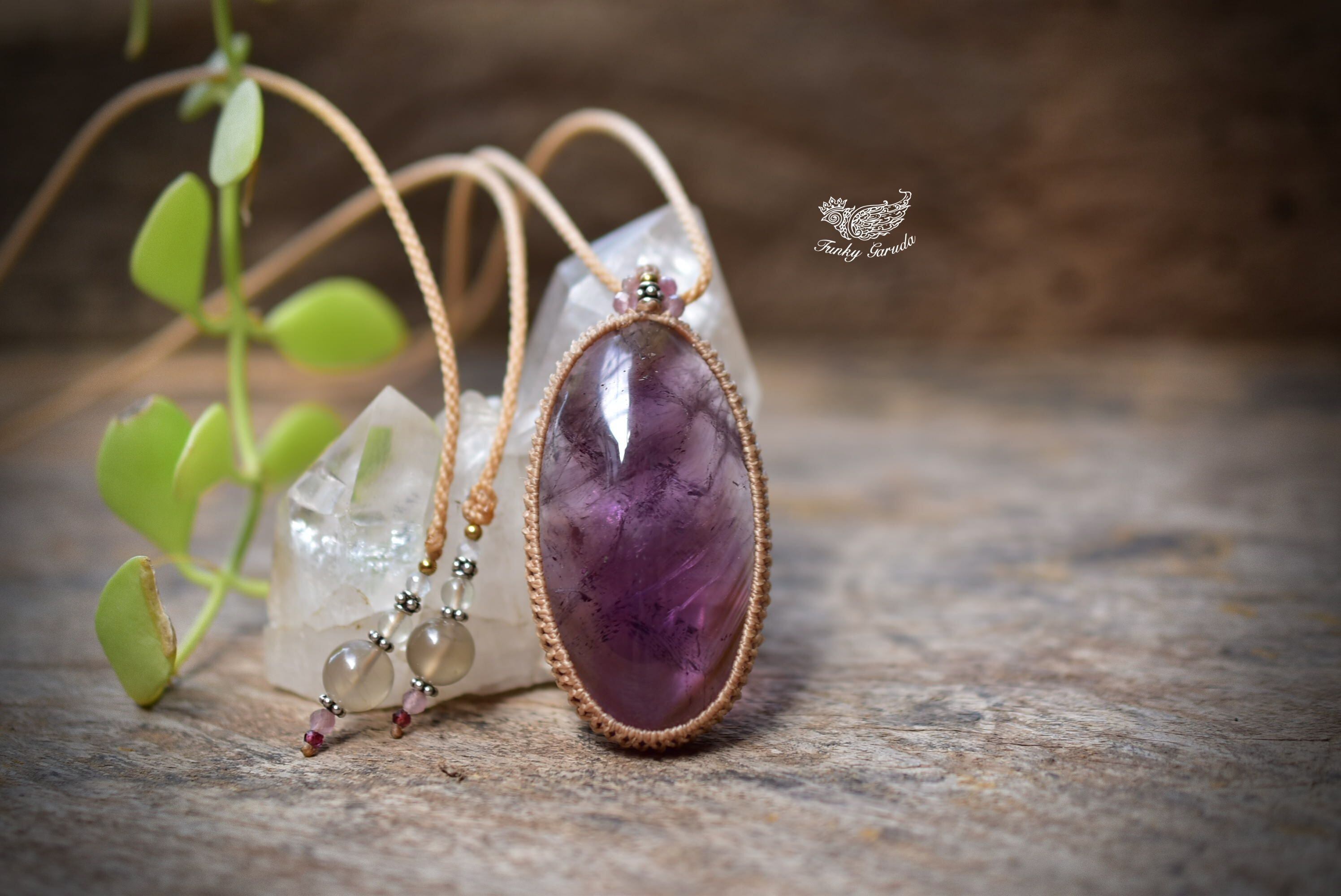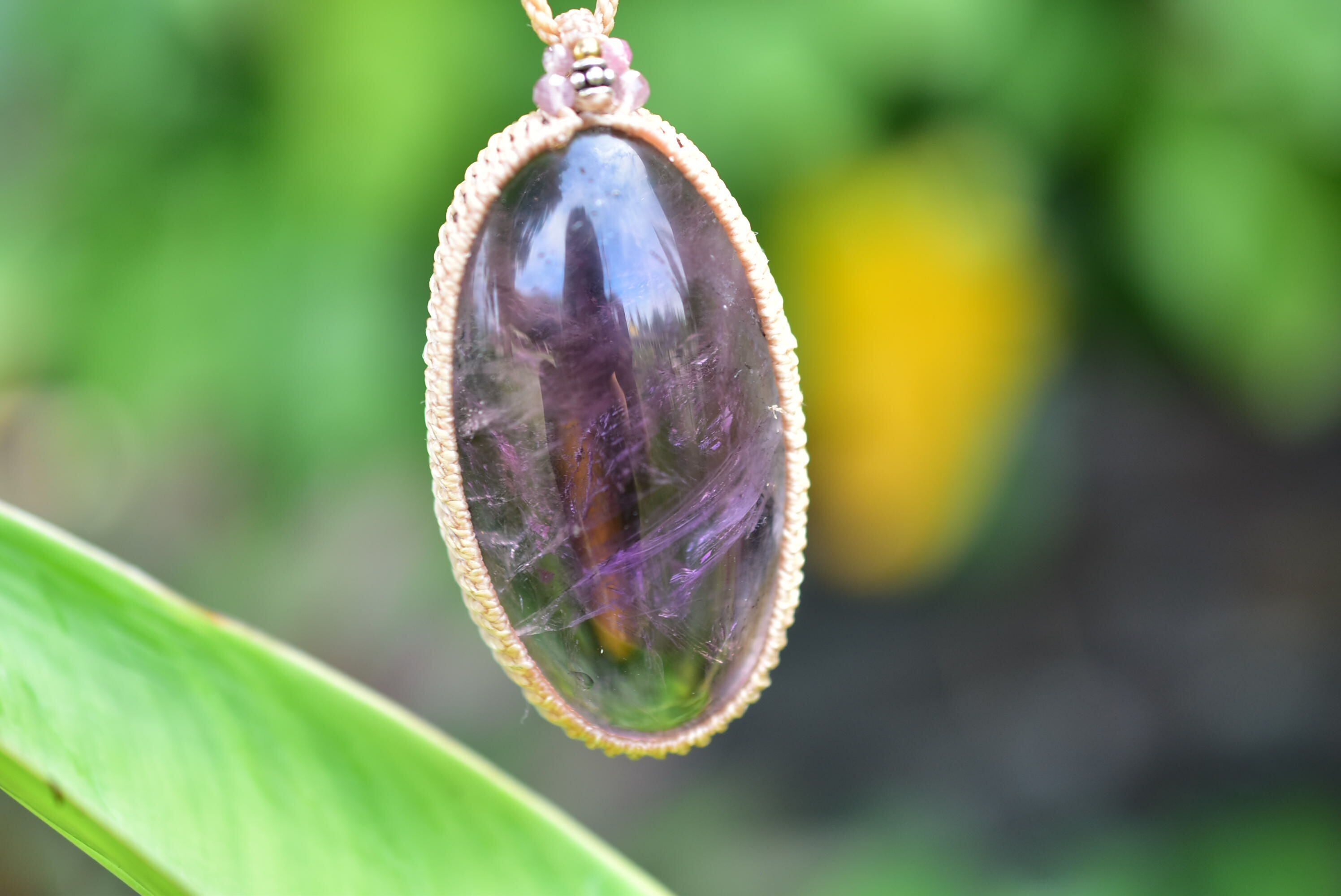 紫の春風★大粒★アメジスト マクラメペンダント214