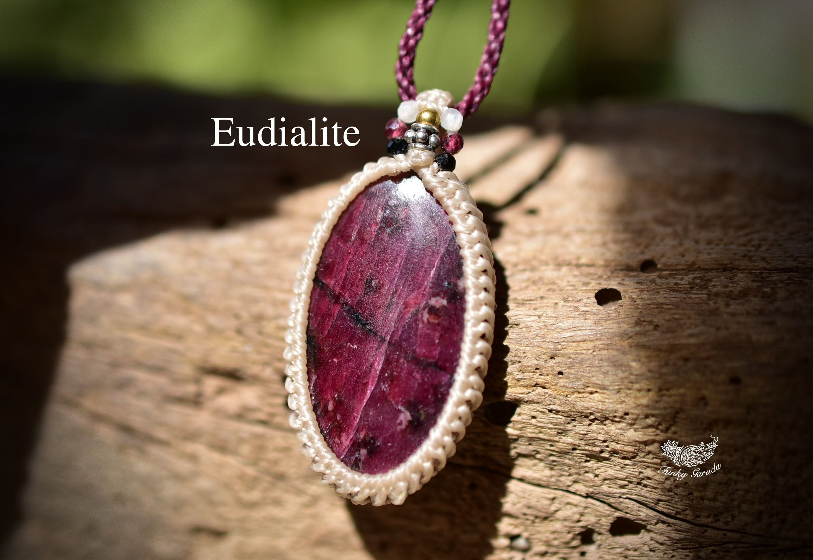 ユーディアライトを、シンプルなマクラメペンダントに仕上げました。