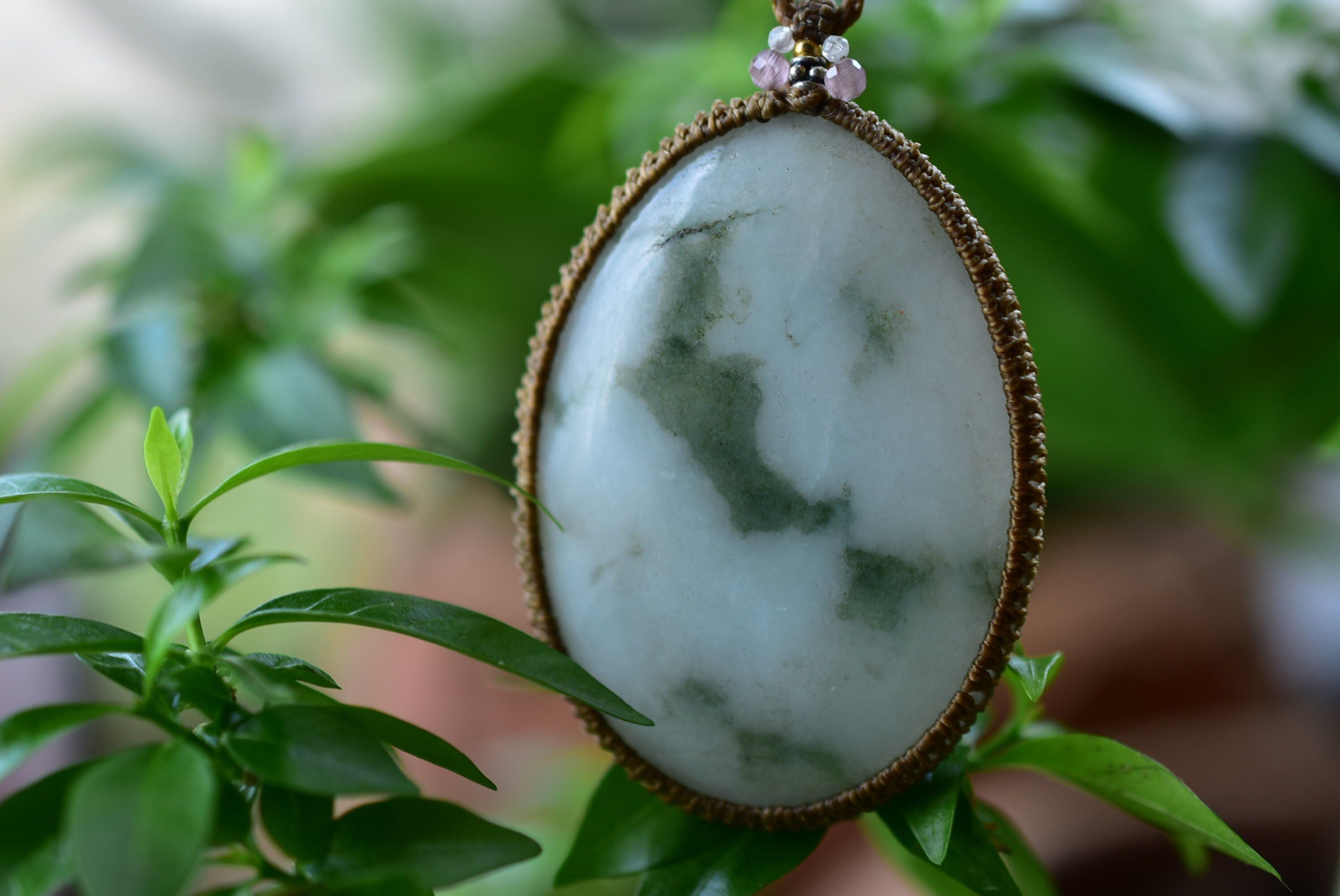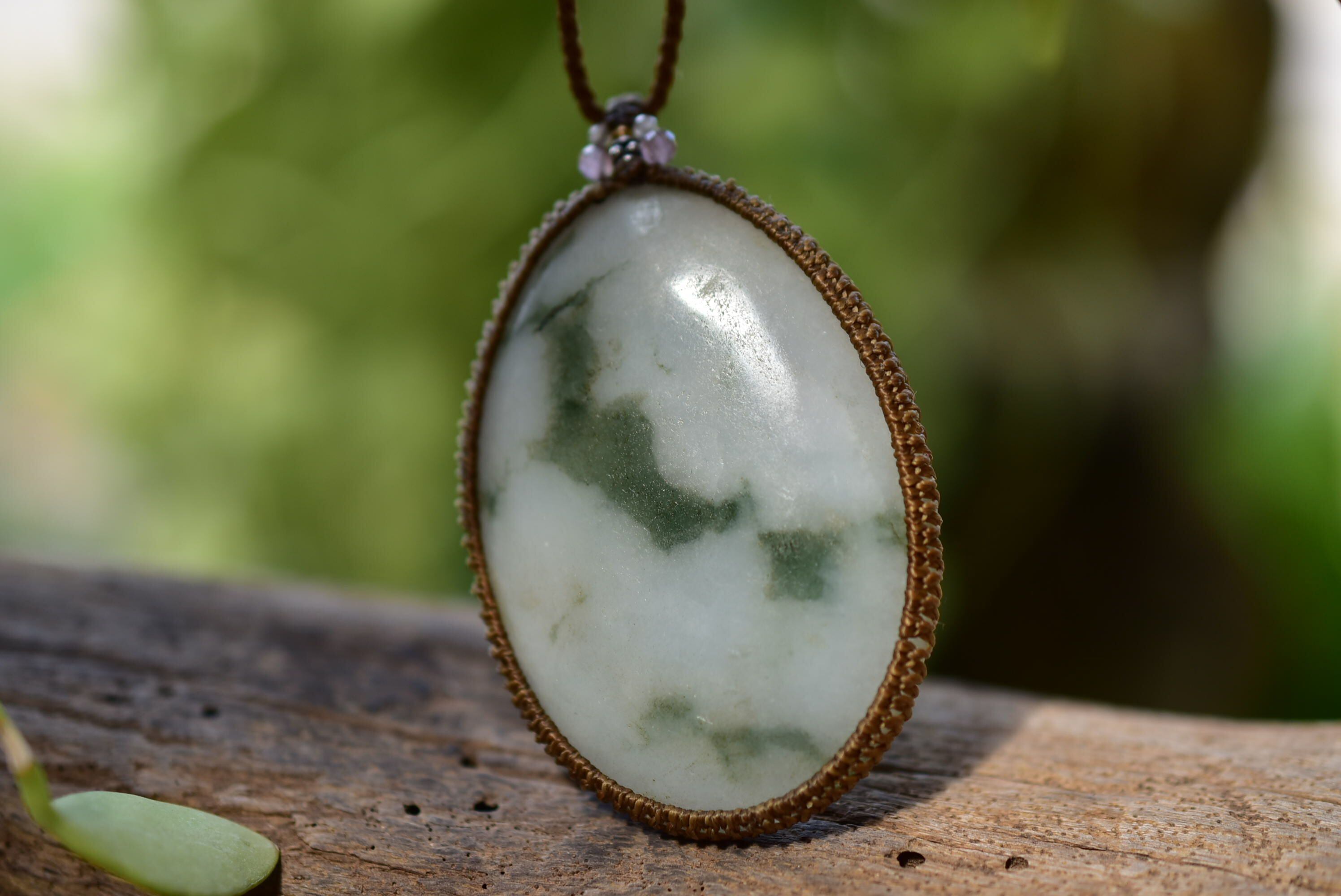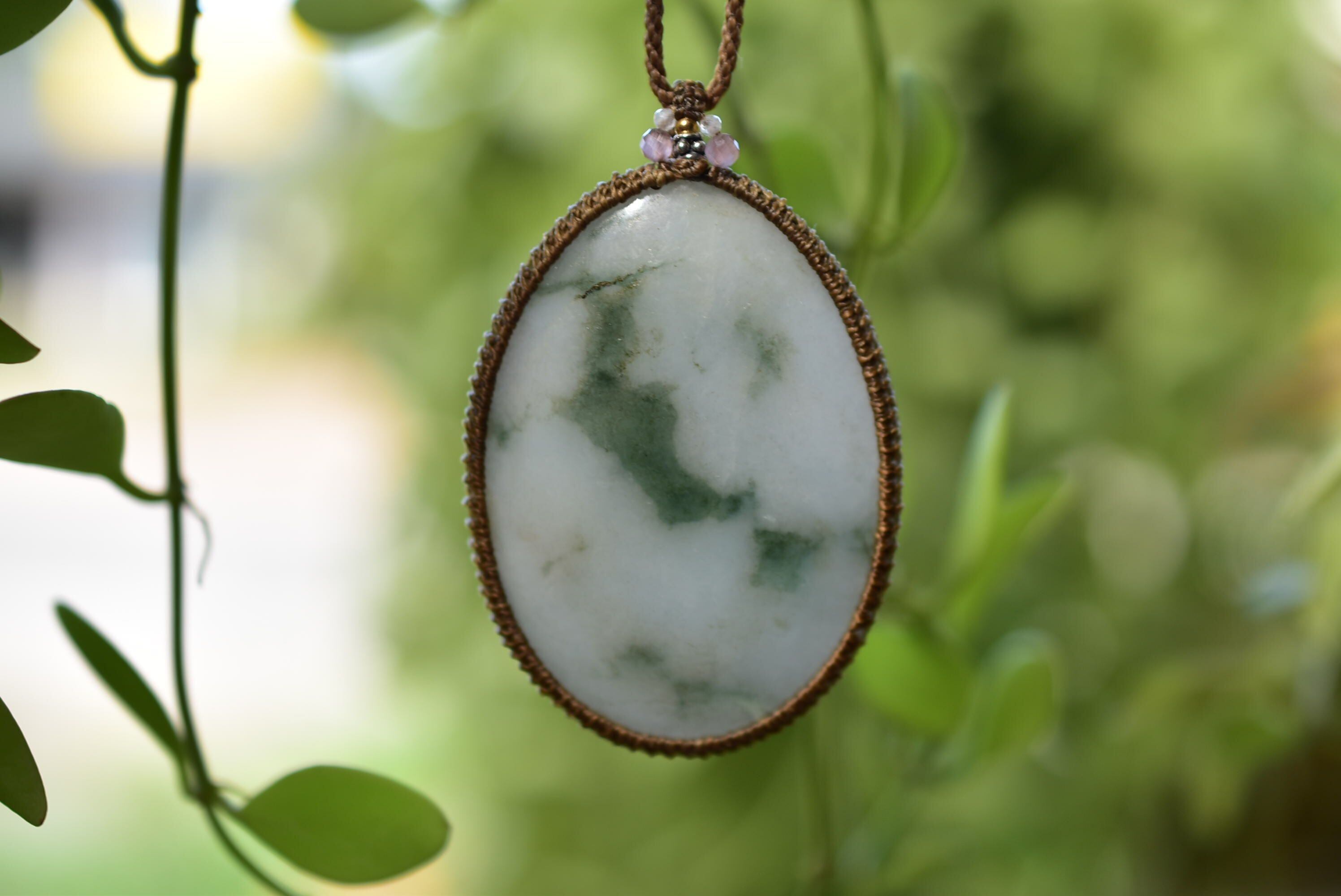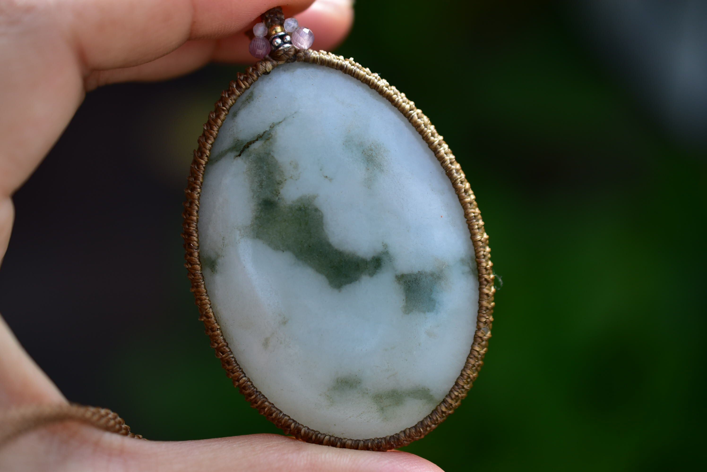 白い輝き★翡翠 ホワイトジェイド マクラメペンダント218