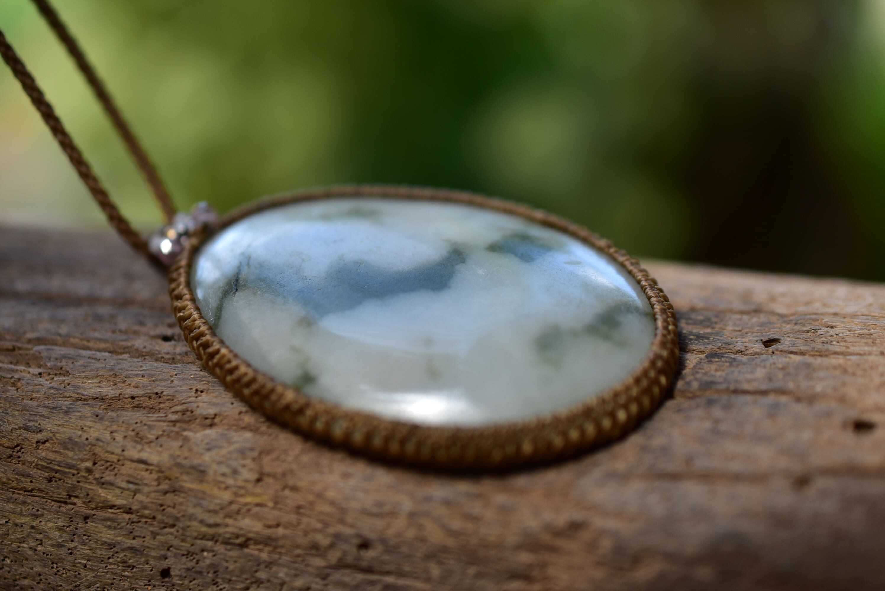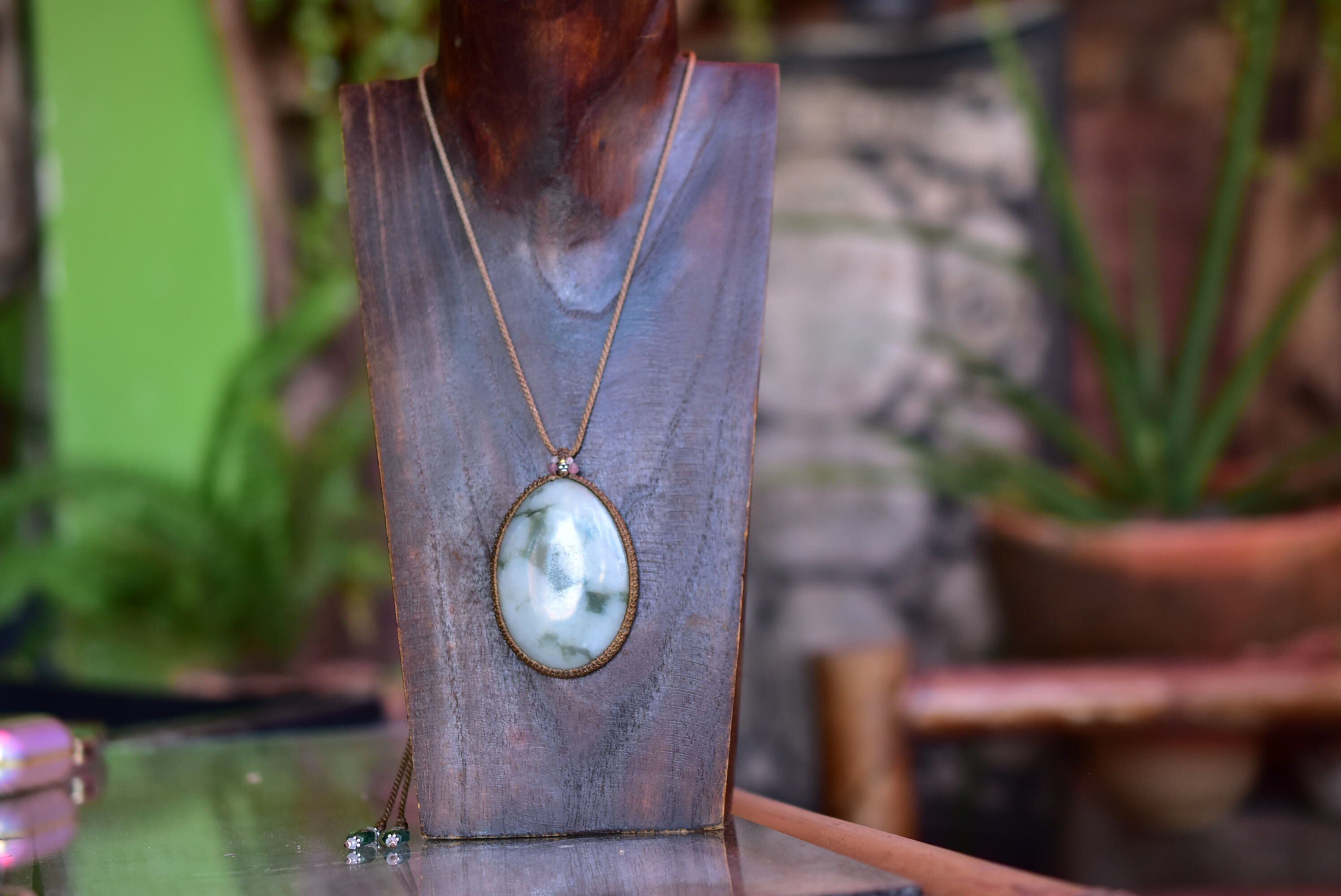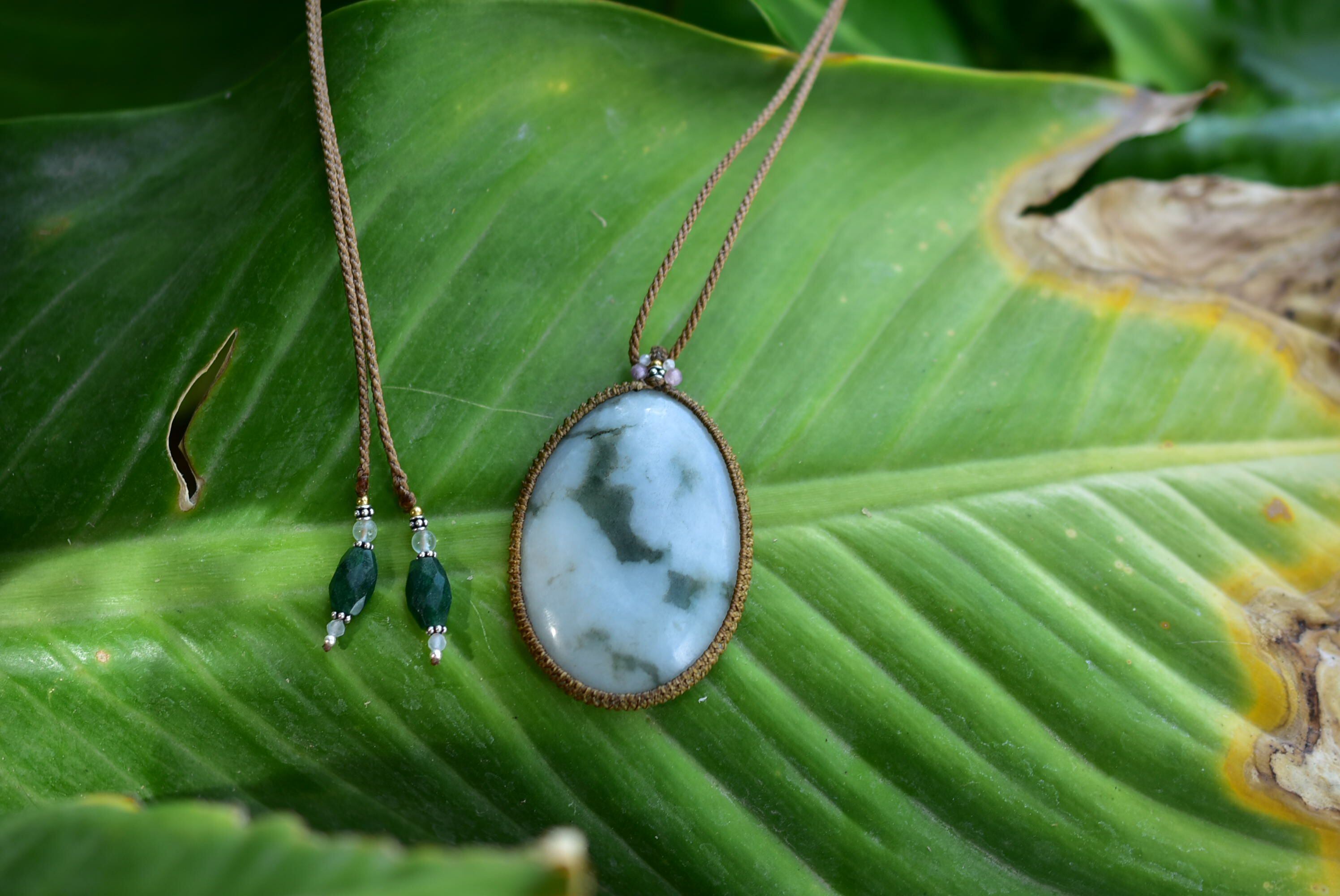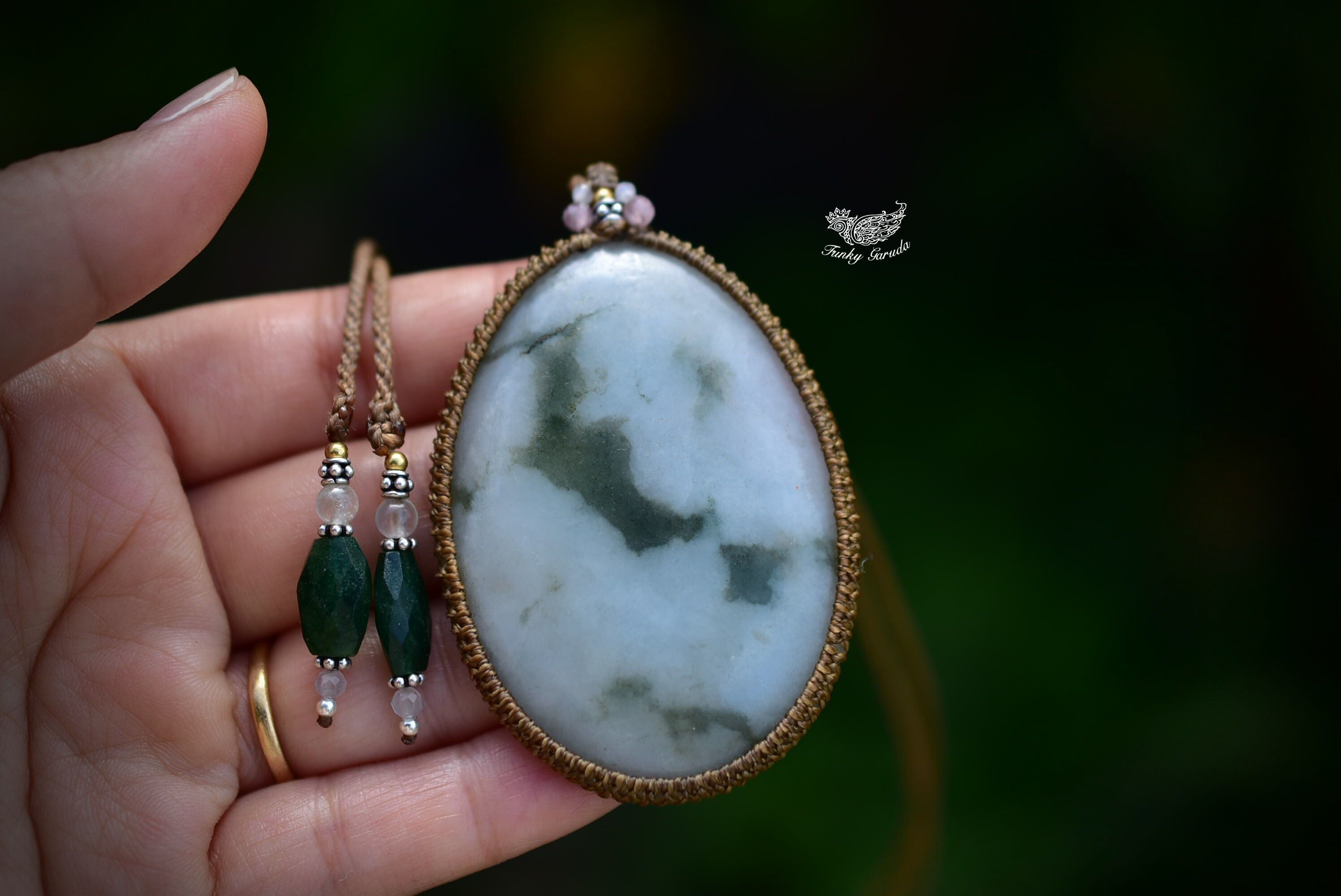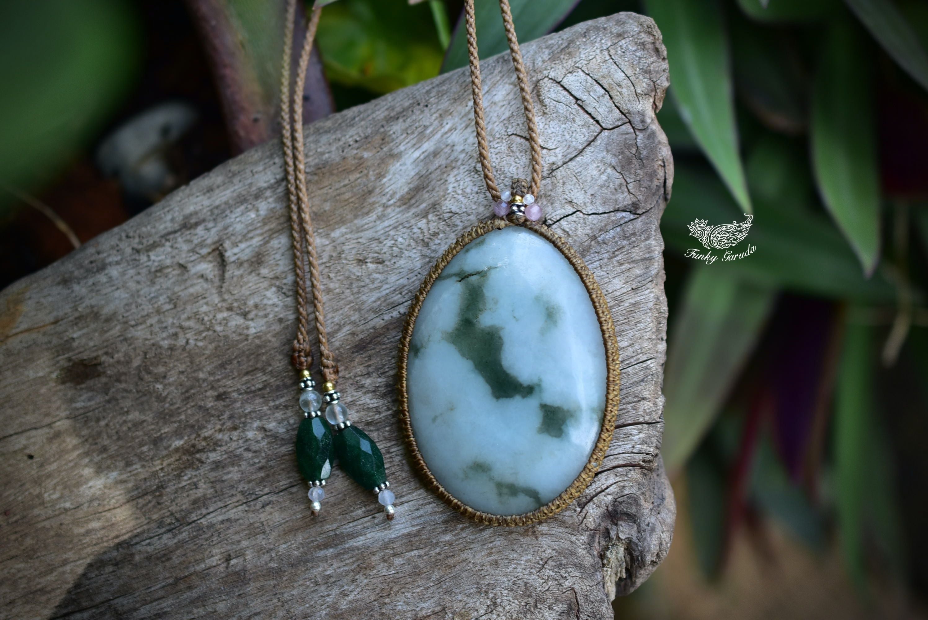 白い輝き★翡翠 ホワイトジェイド マクラメペンダント218