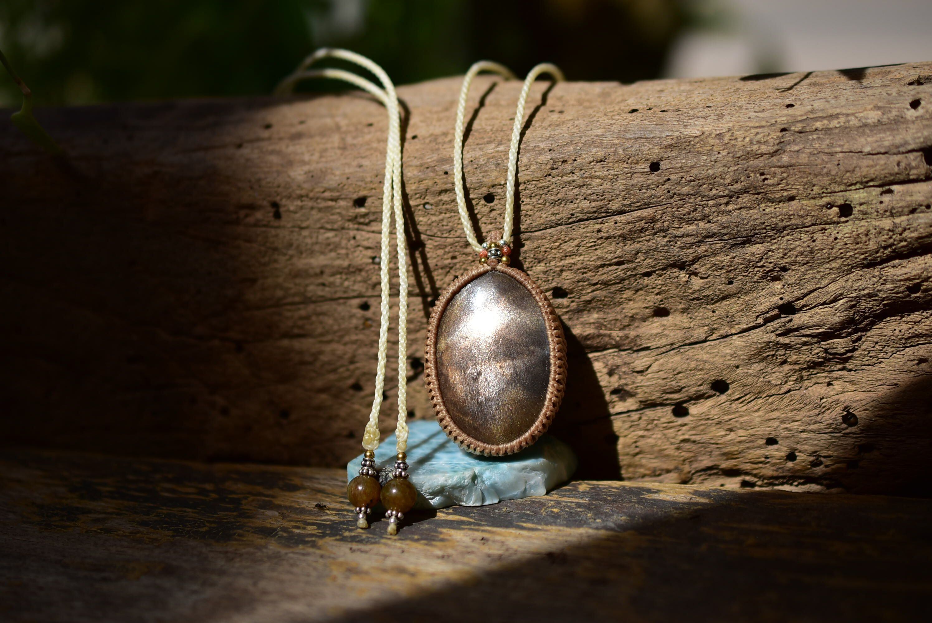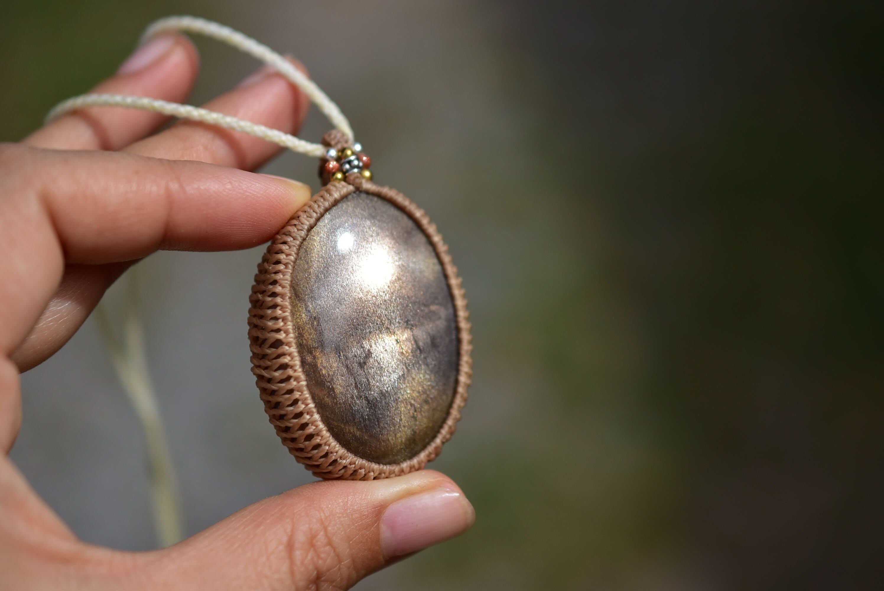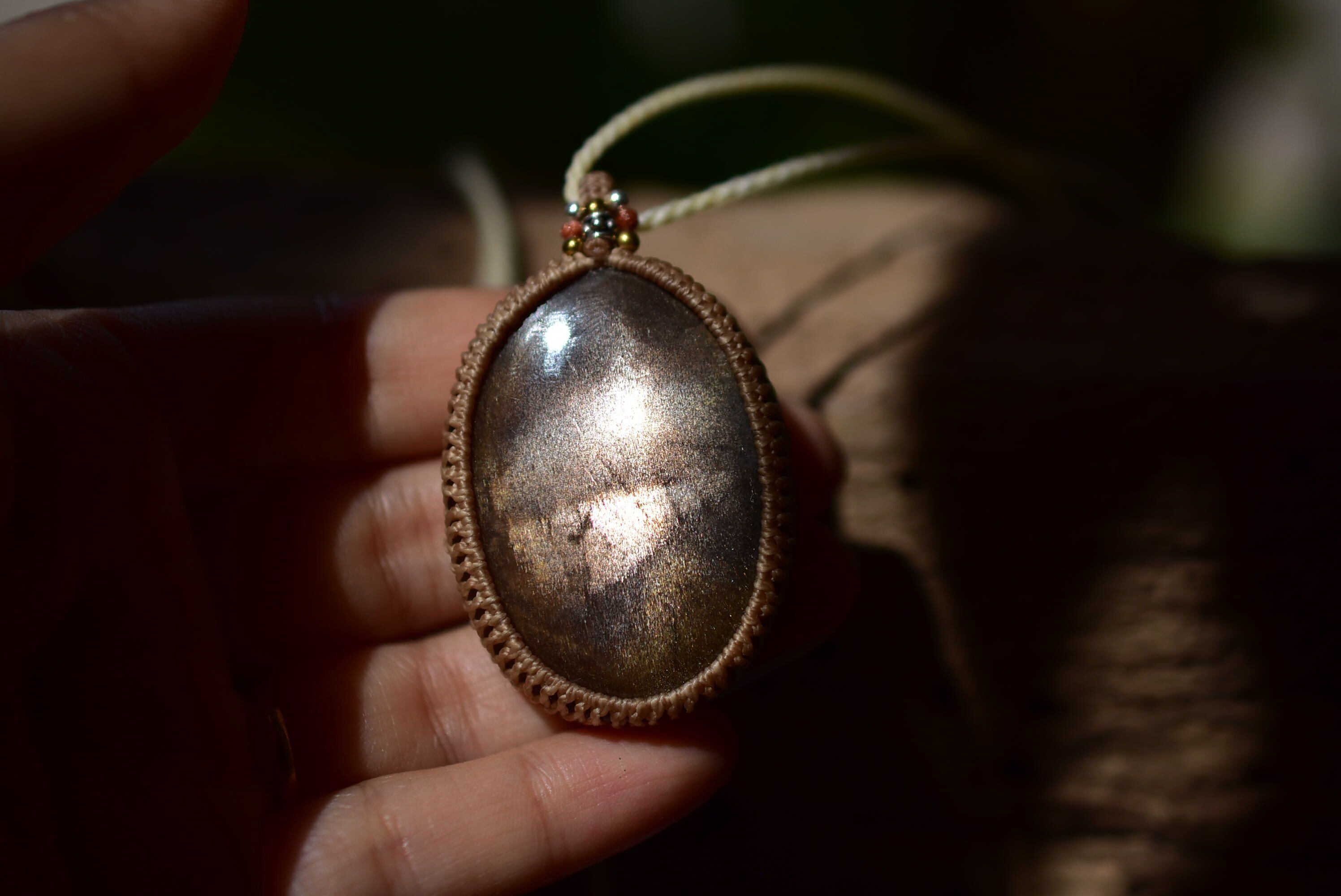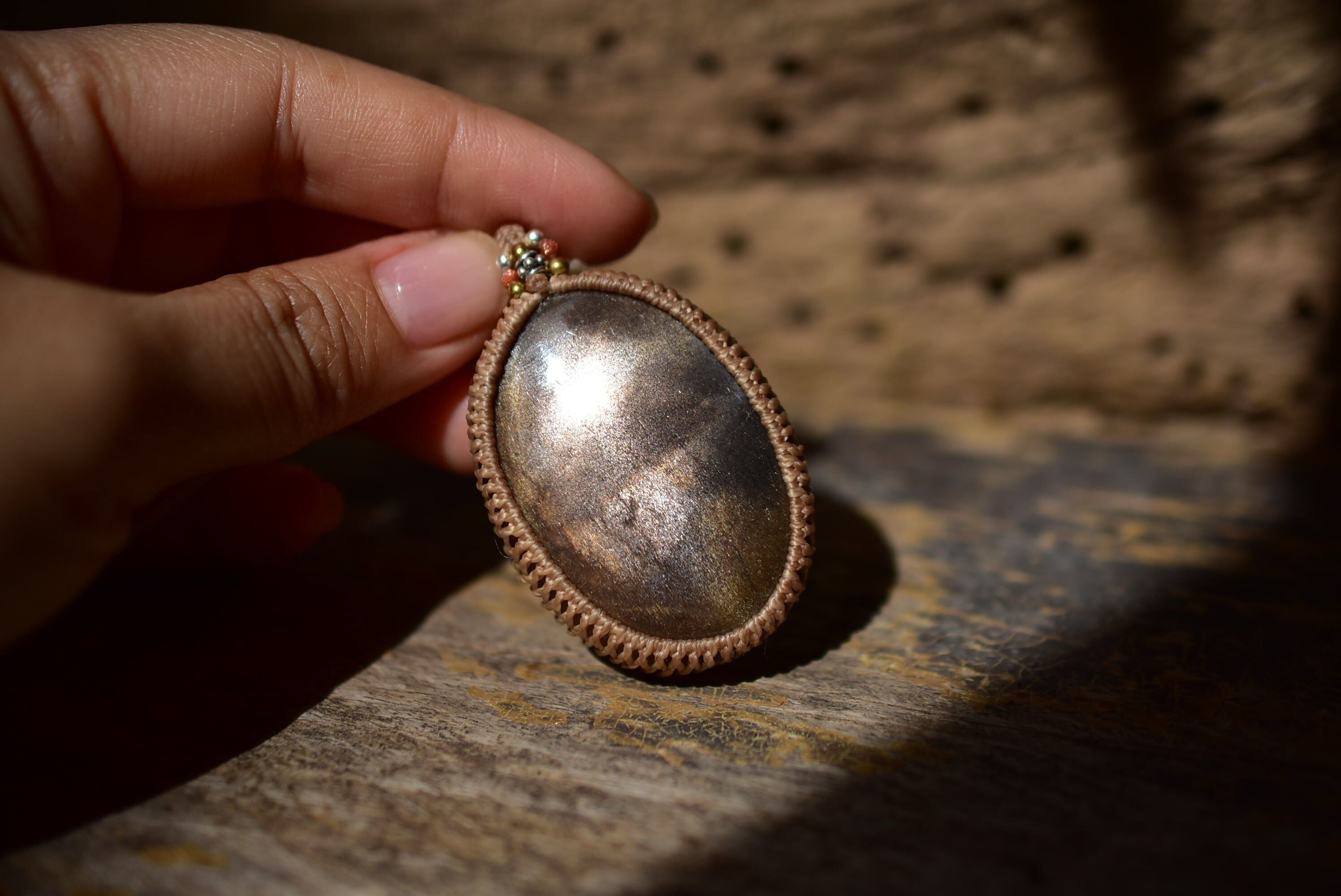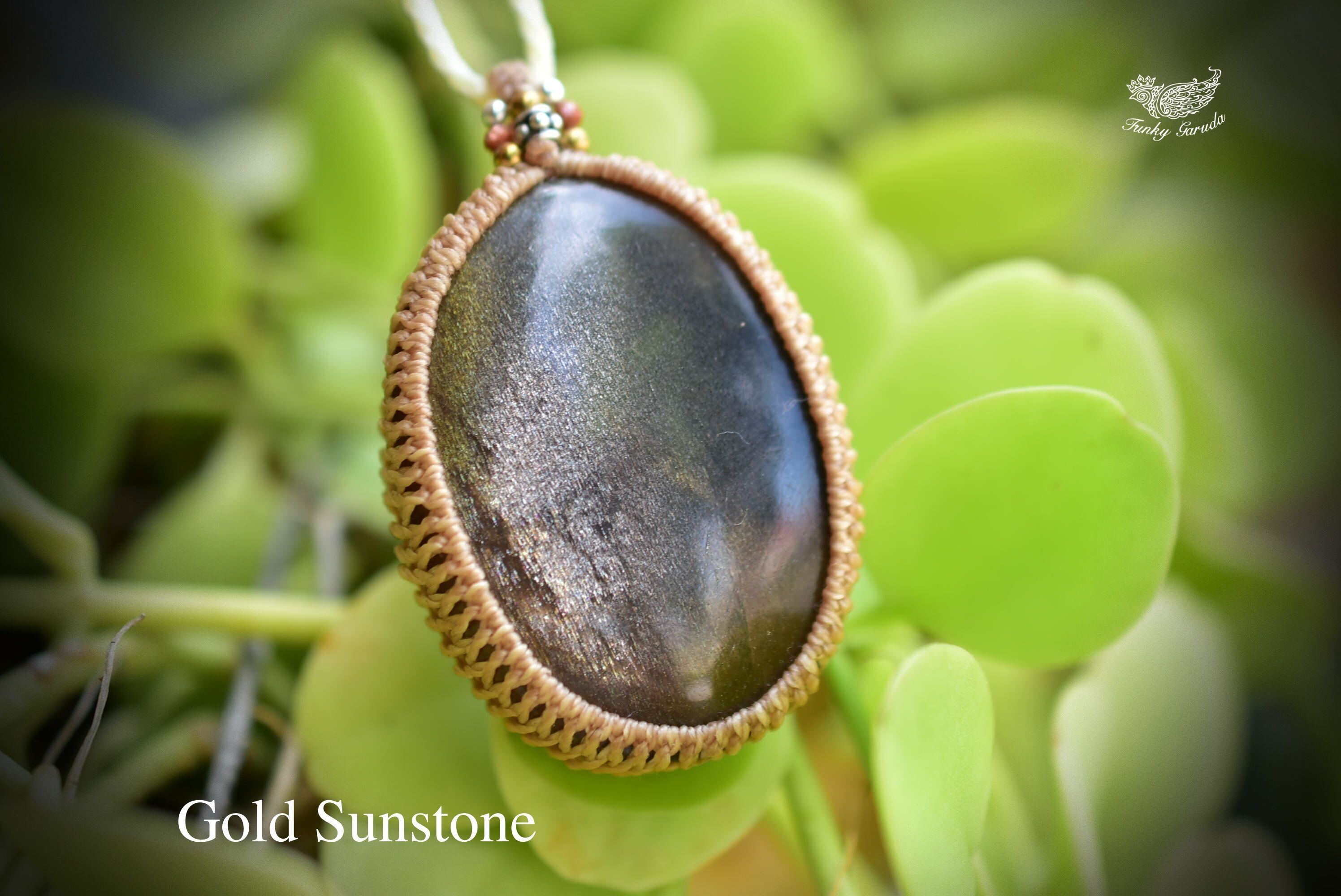 特大★夜明けの光★ゴールドサンストーン マクラメペンダント219