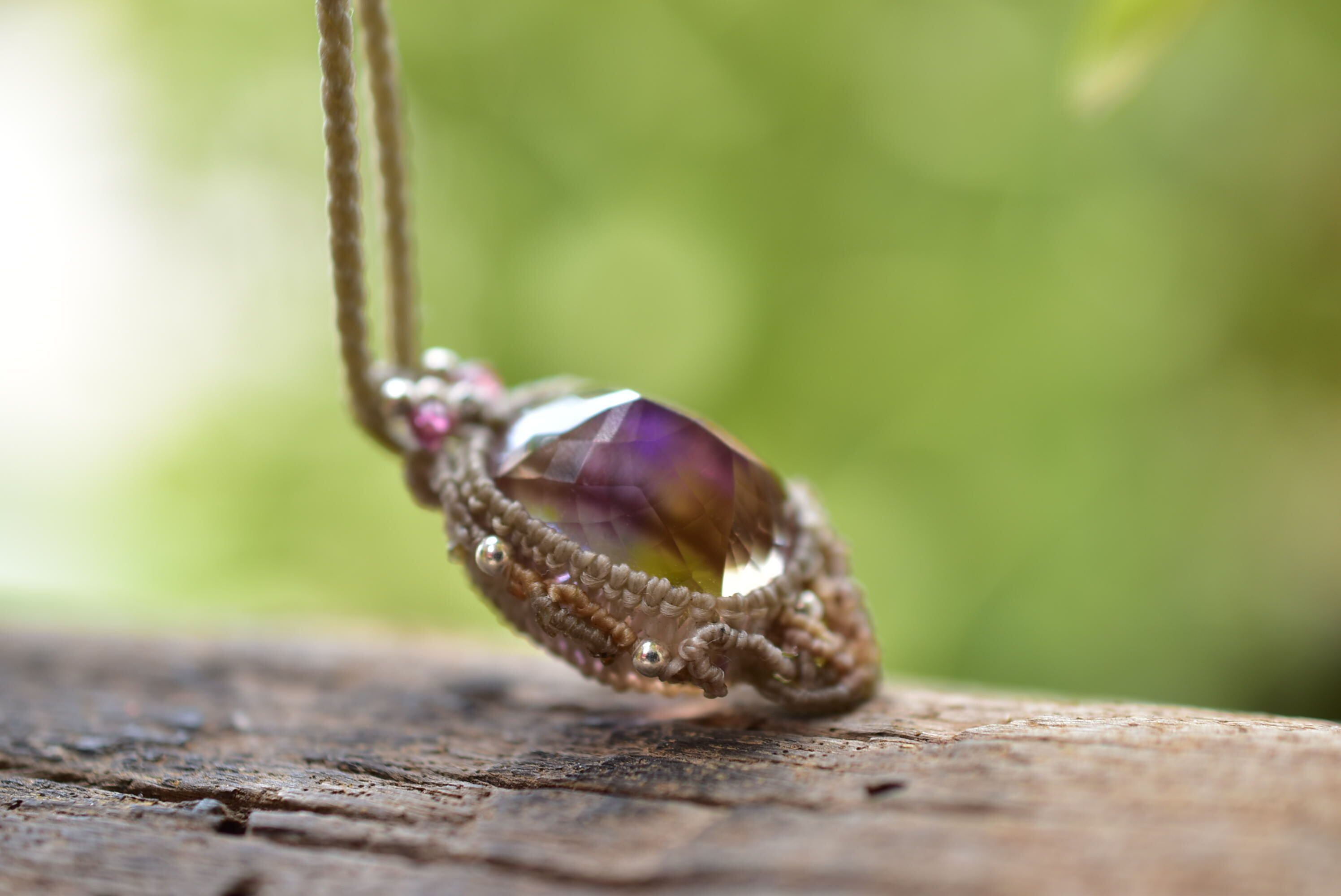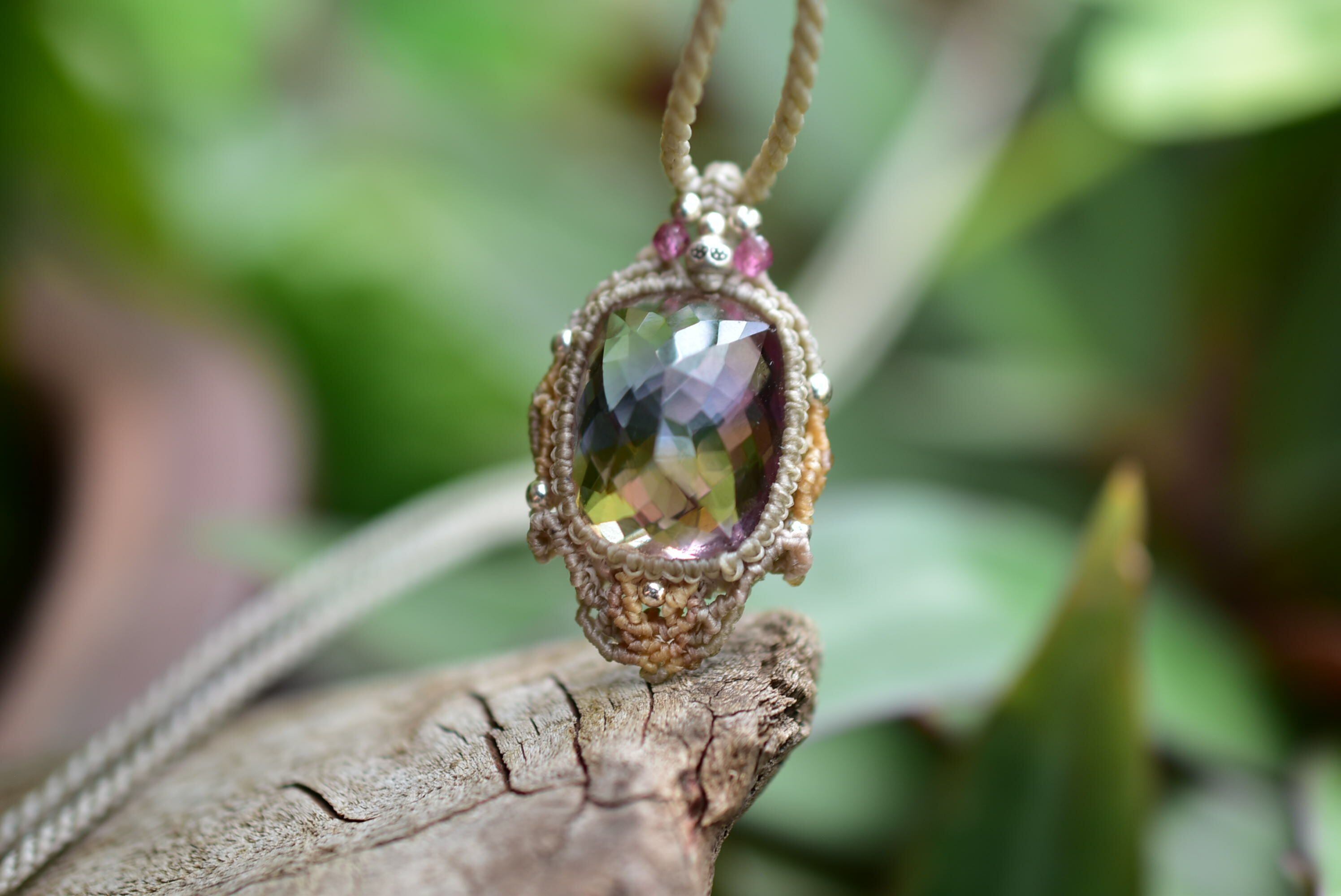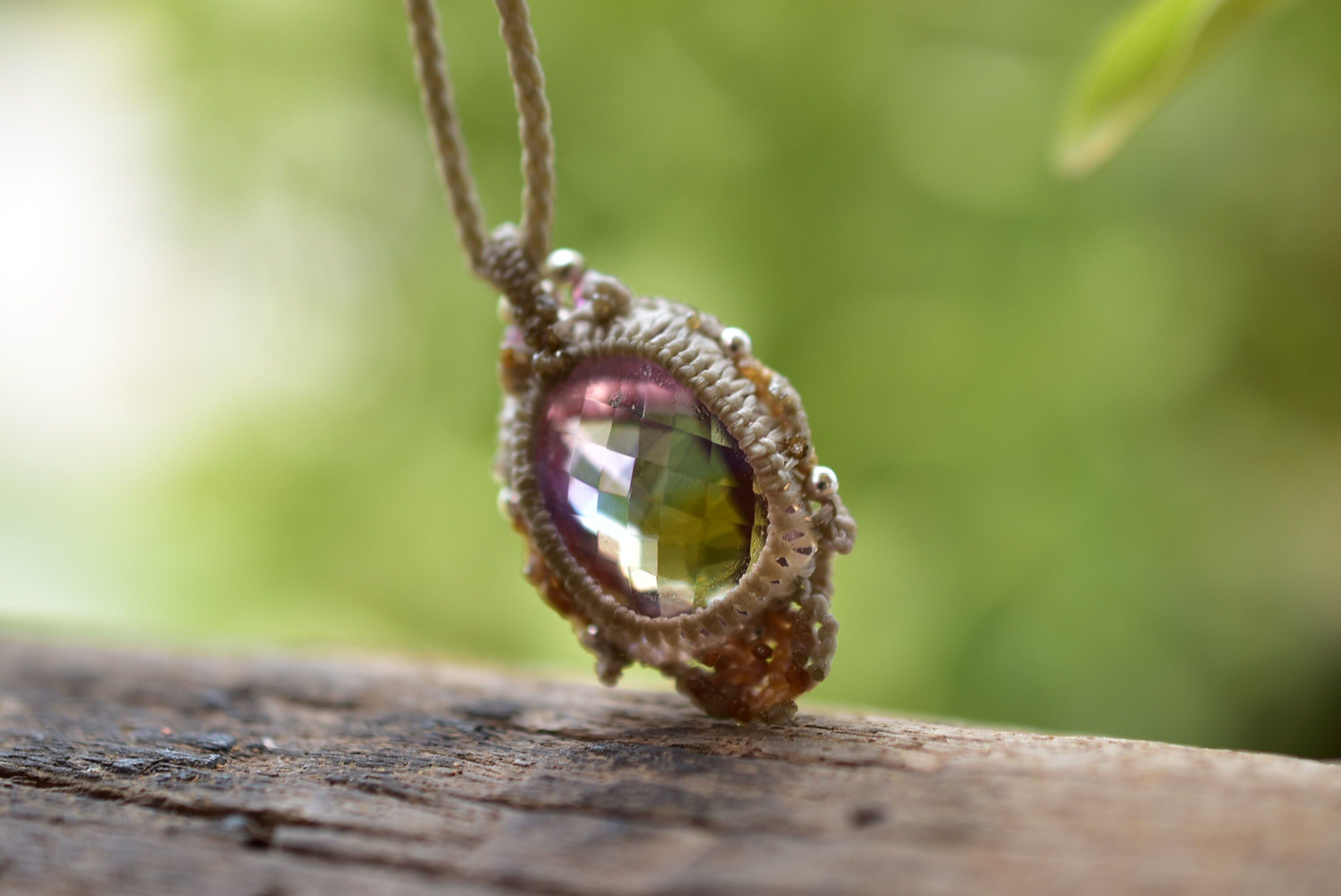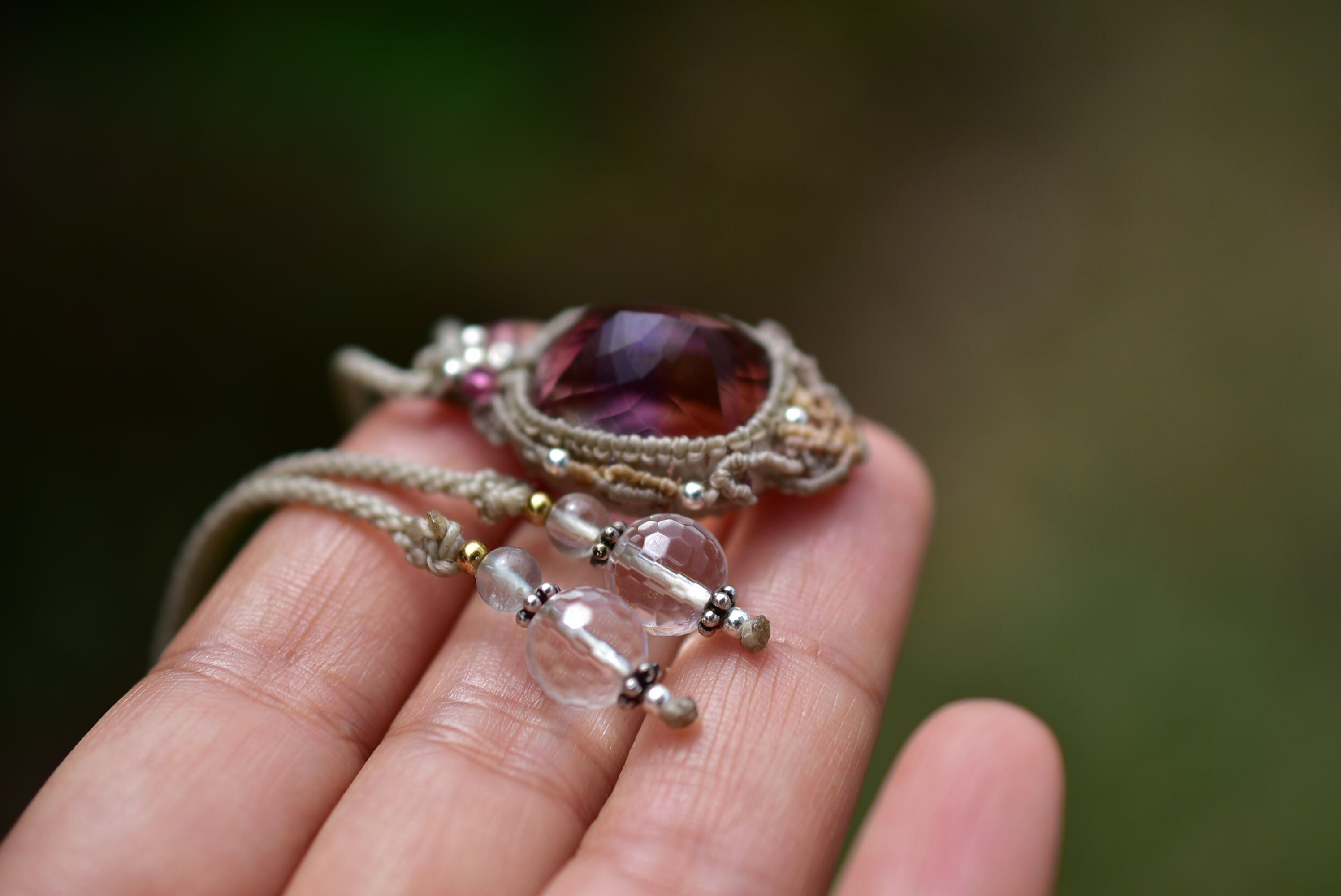 良質な宝石ピースとマクラメ編みの世界を考えて