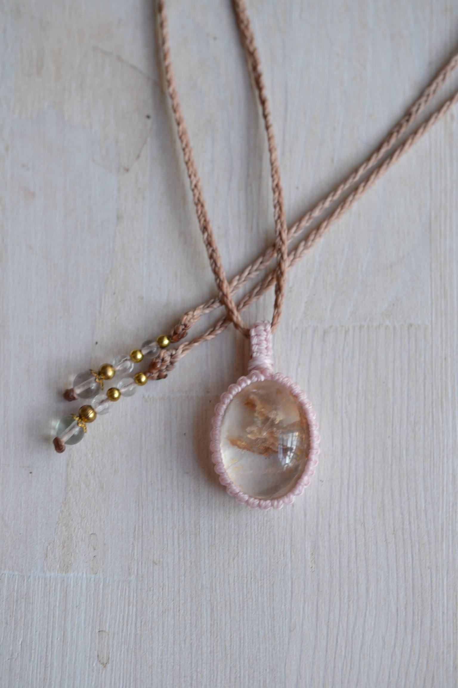 ピンクな丘★ガーデンクォーツ マクラメペンダントgarm108