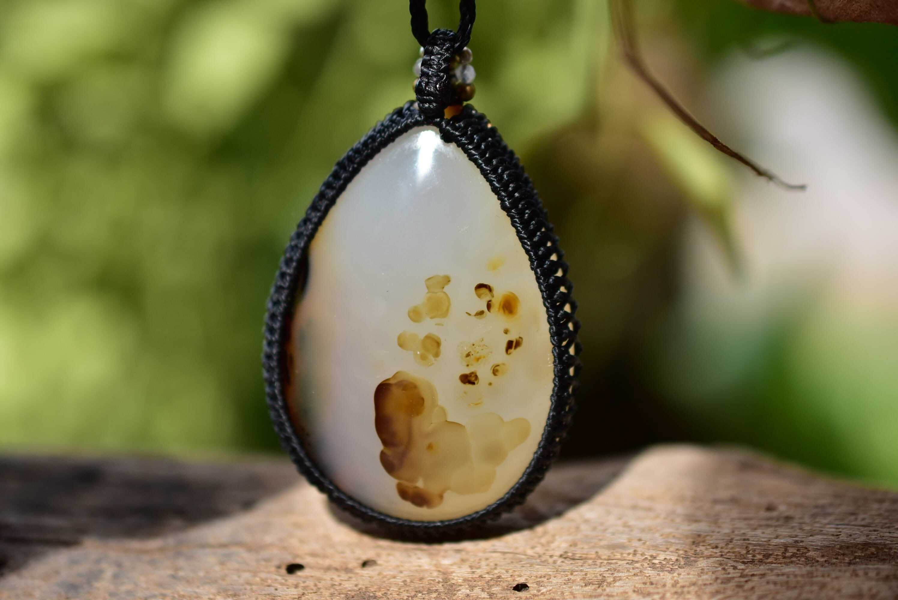 斑点絵画模様★大粒★ブラウンアゲート マクラメペンダント253