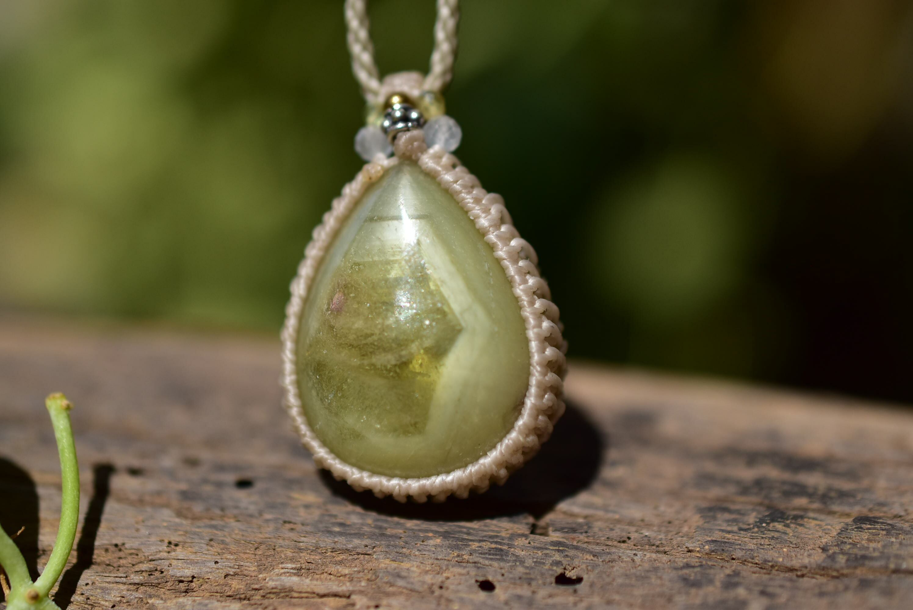 シルキーコランダム★イエローサファイア マクラメペンダント254