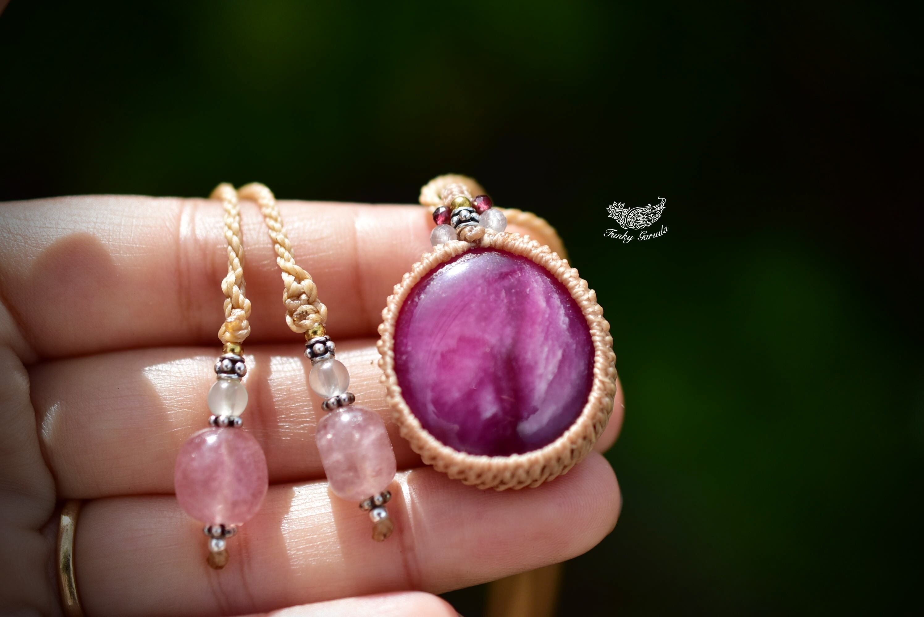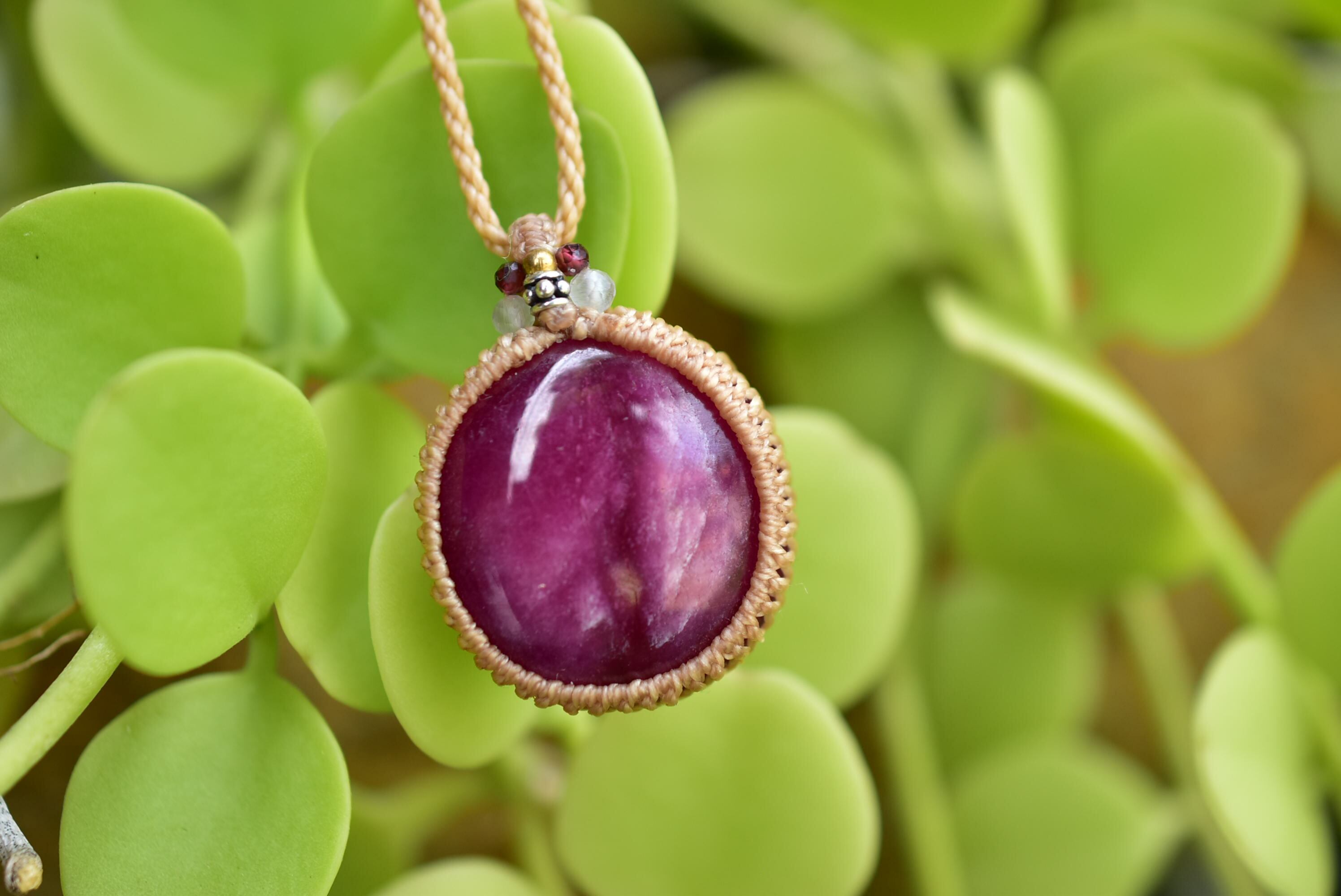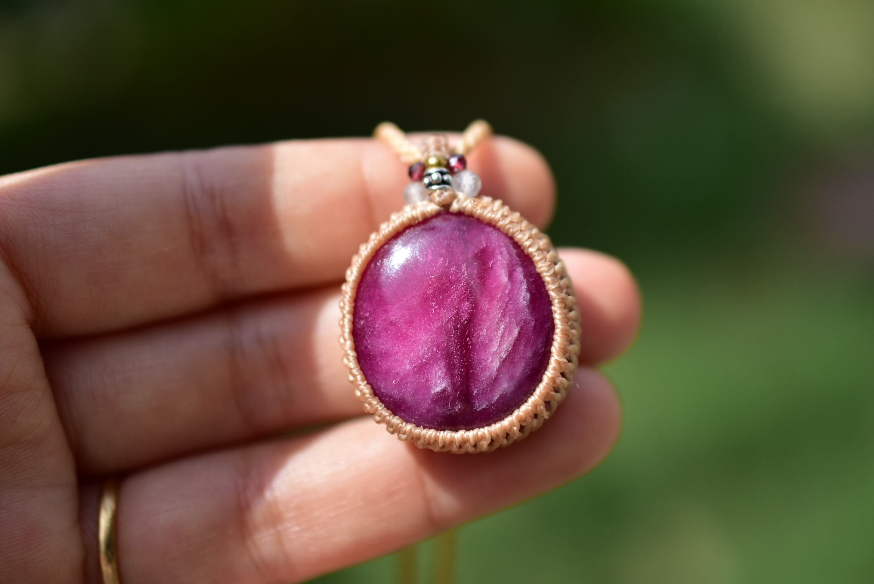 ディープローズ★中粒★ルビー マクラメペンダント259