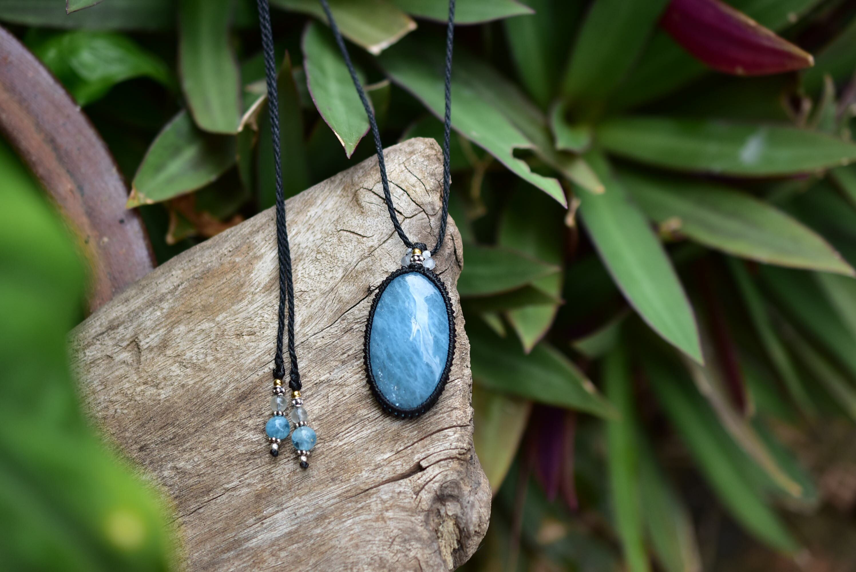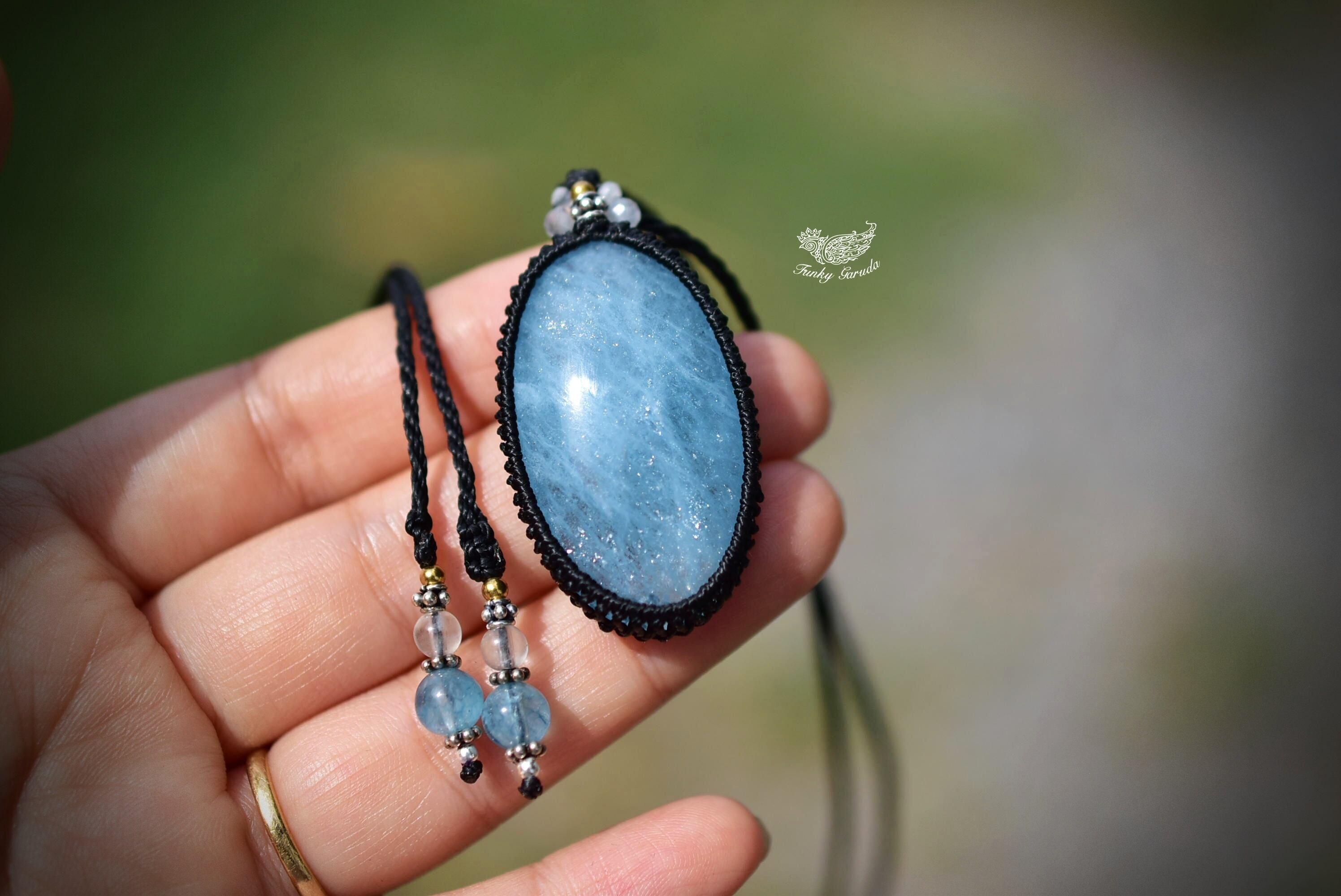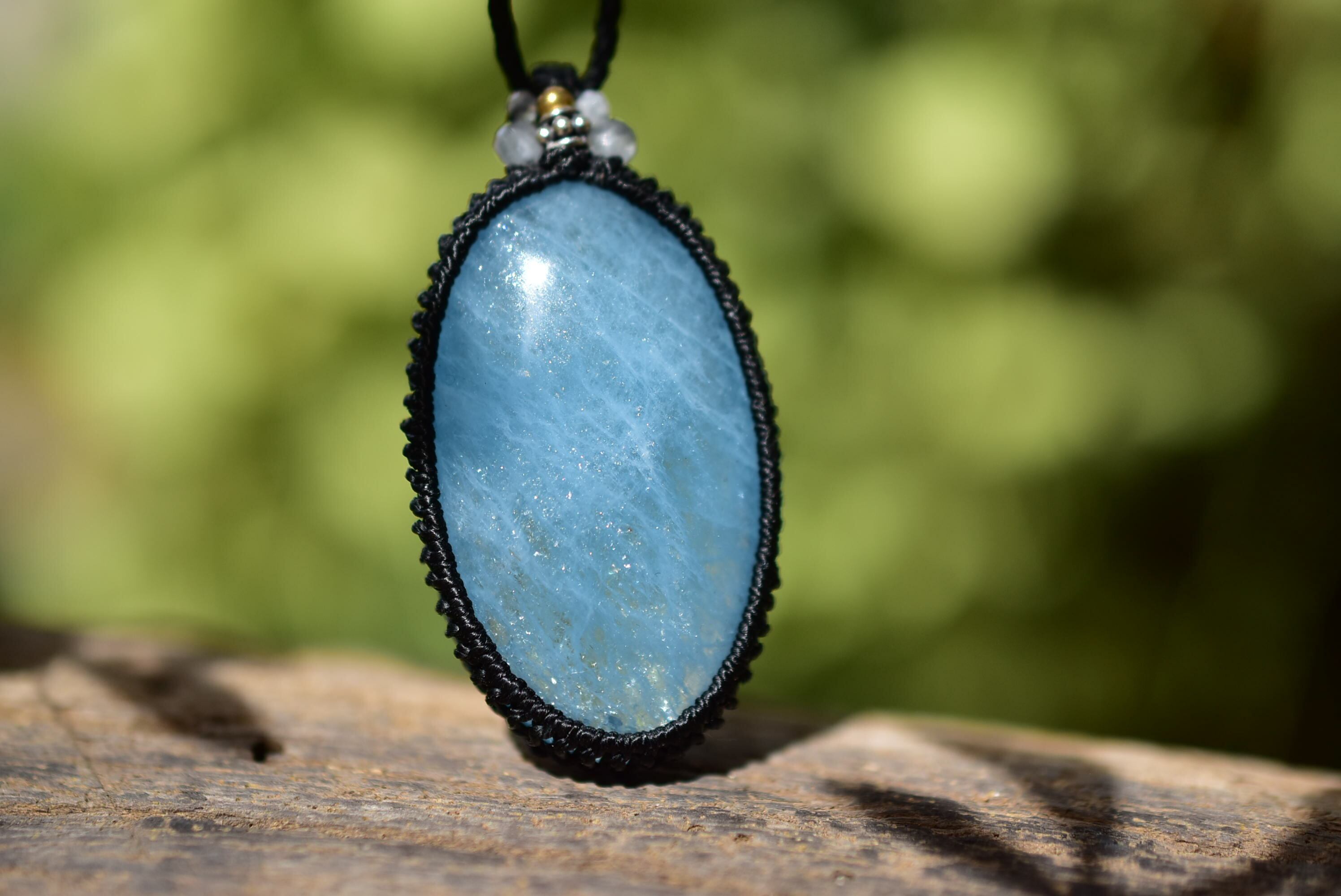 キラキラの流星★高品質★アクアマリン マクラメペンダント262