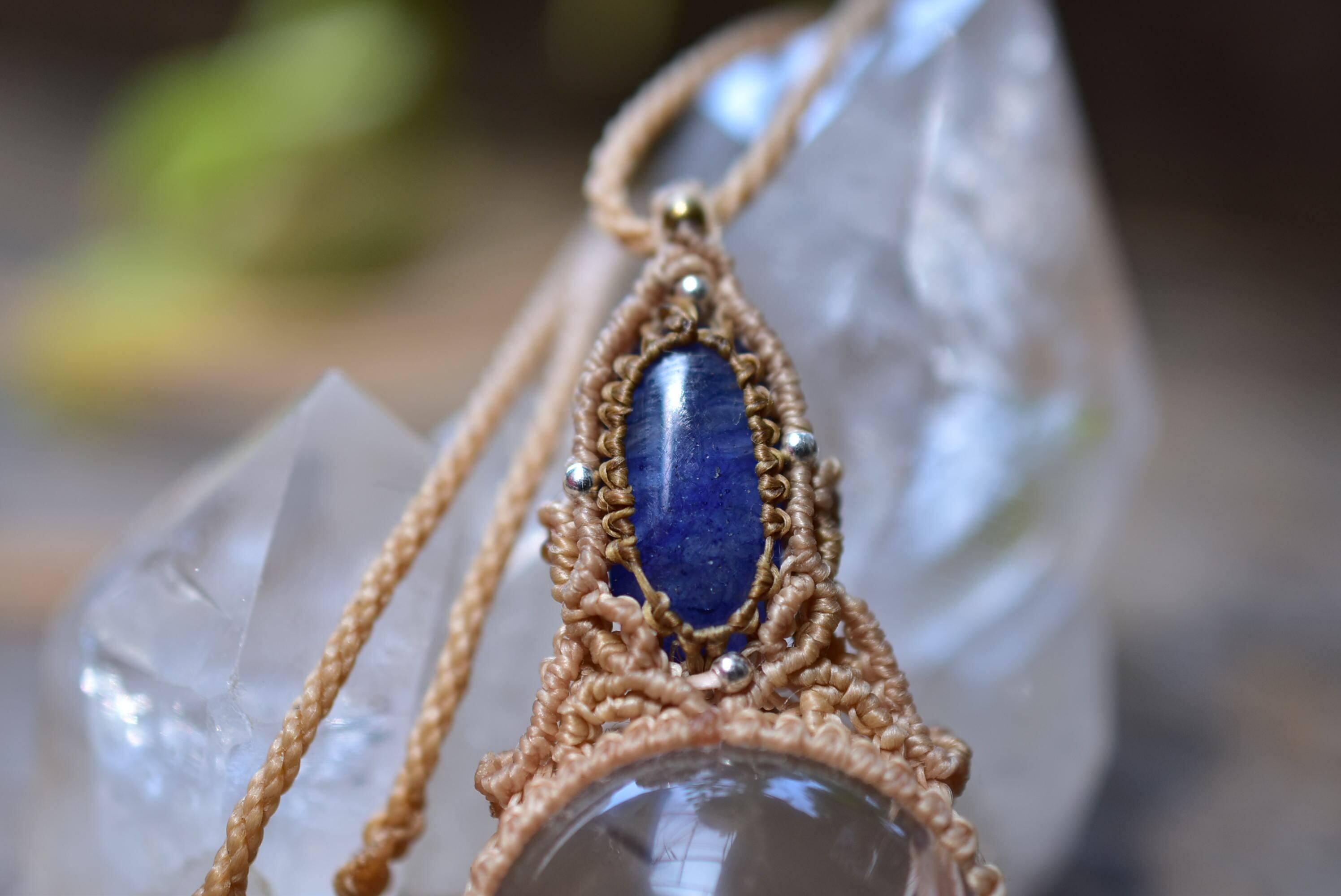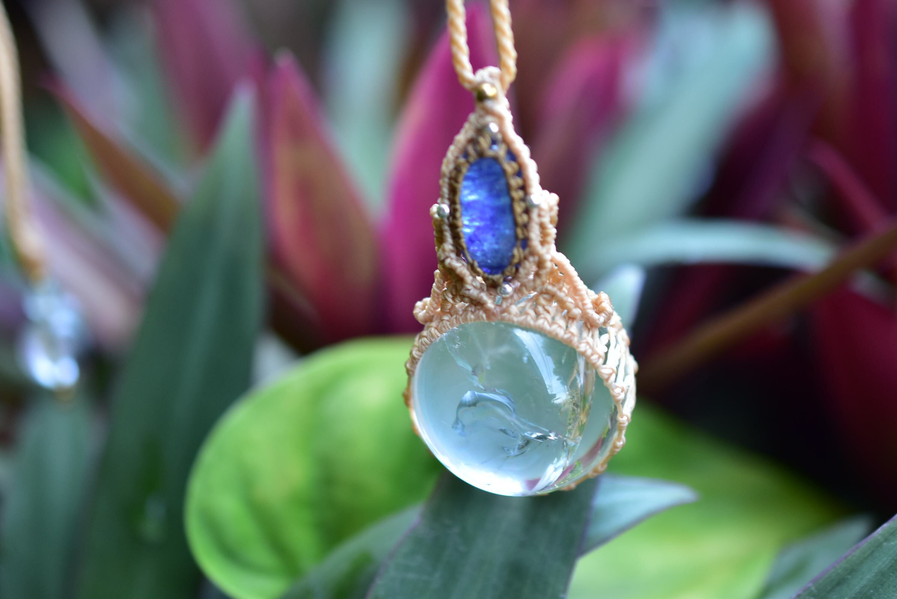 サファイアと虹★レインボークォーツ マクラメペンダント270
