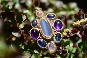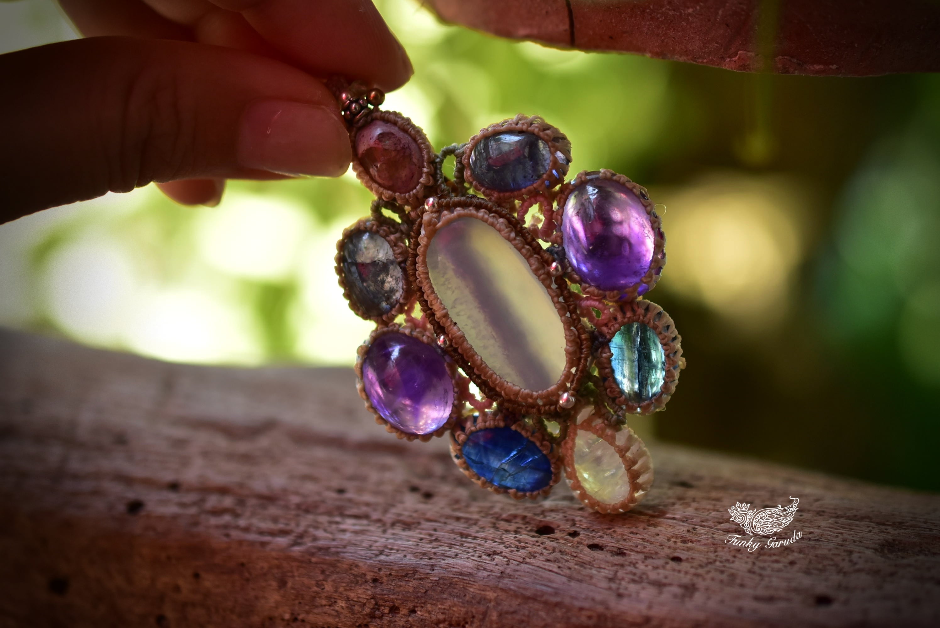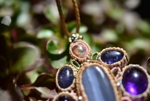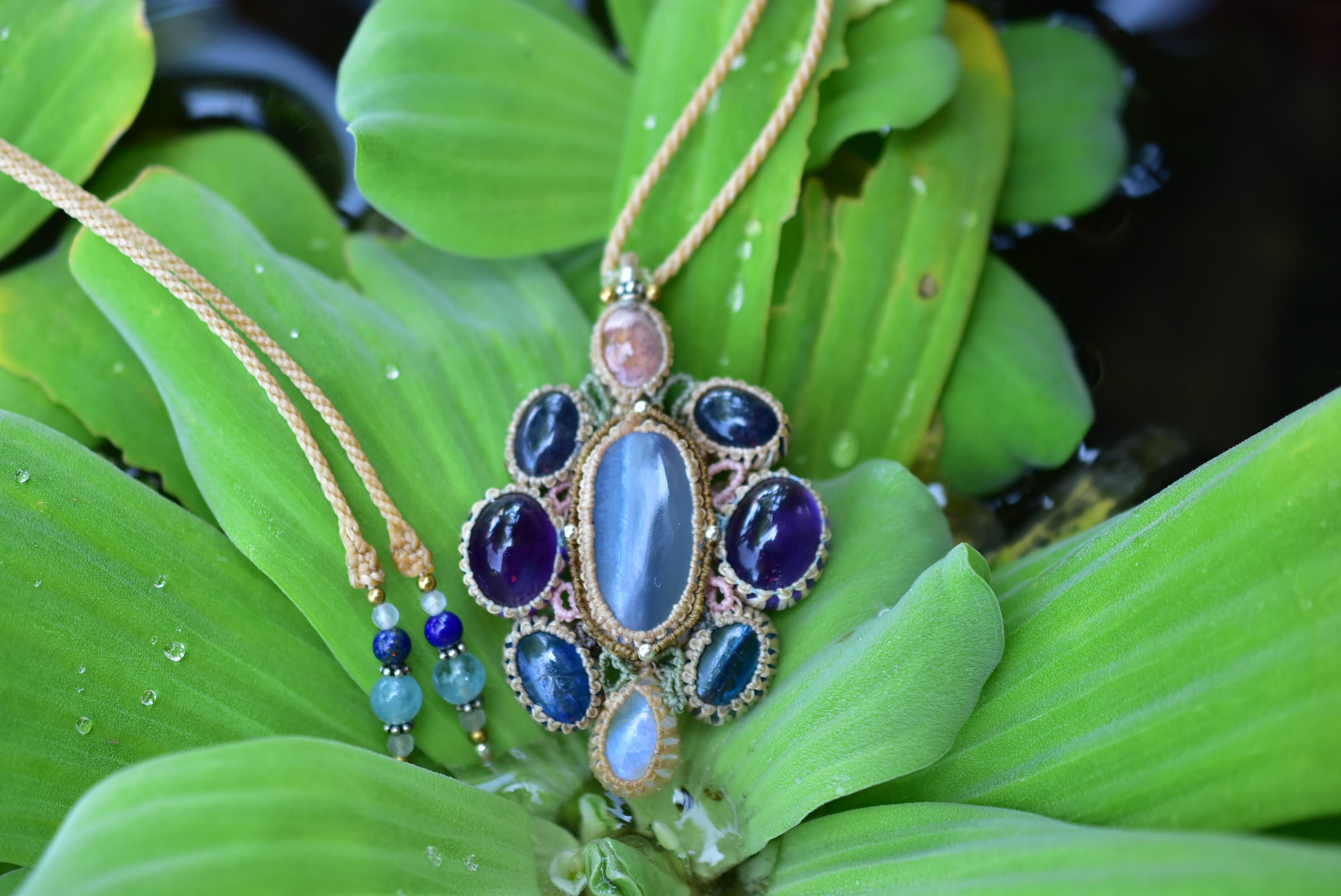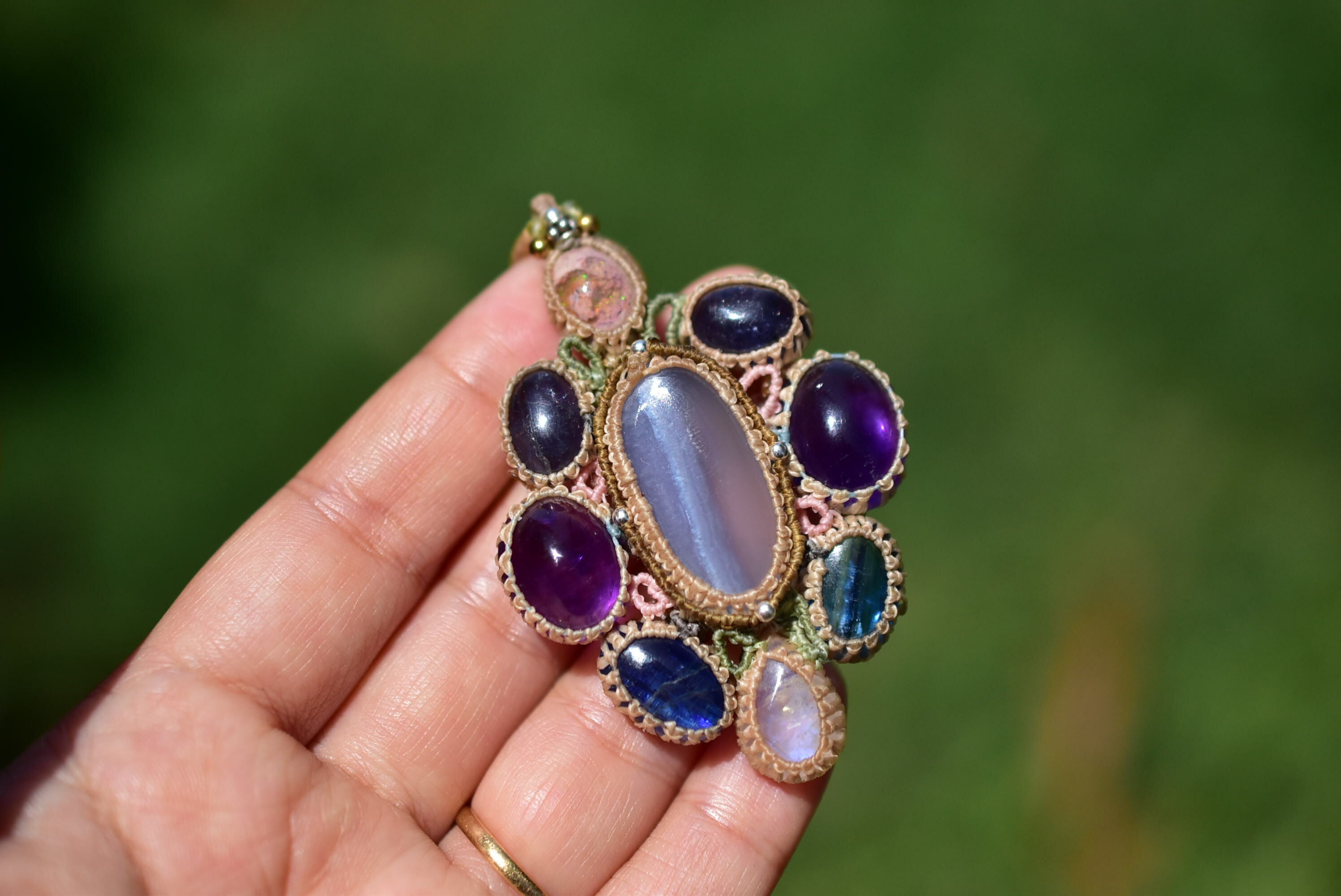 鮮やかなお花★アメジスト カンテラオパール カイヤナイト マクラメペンダント271