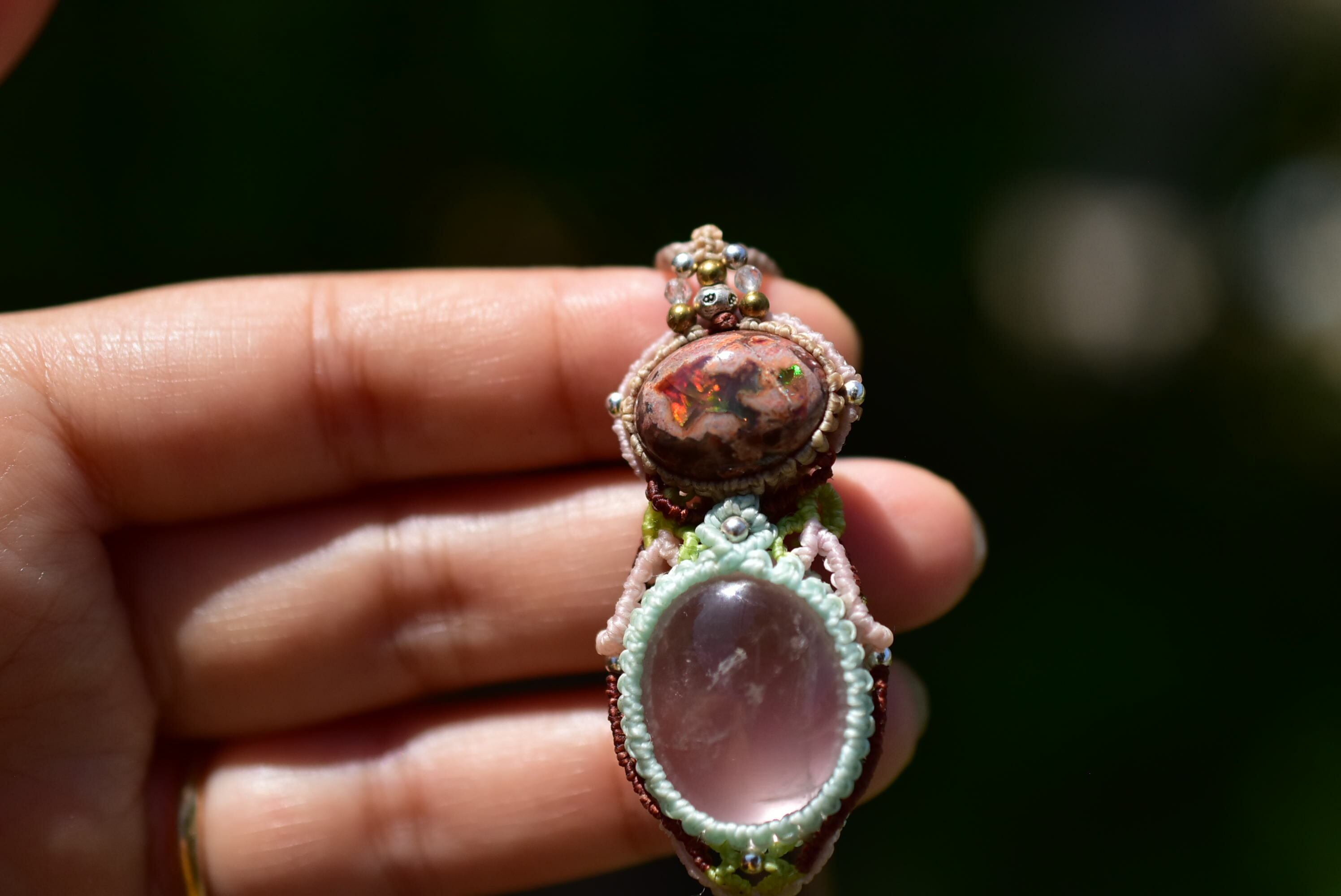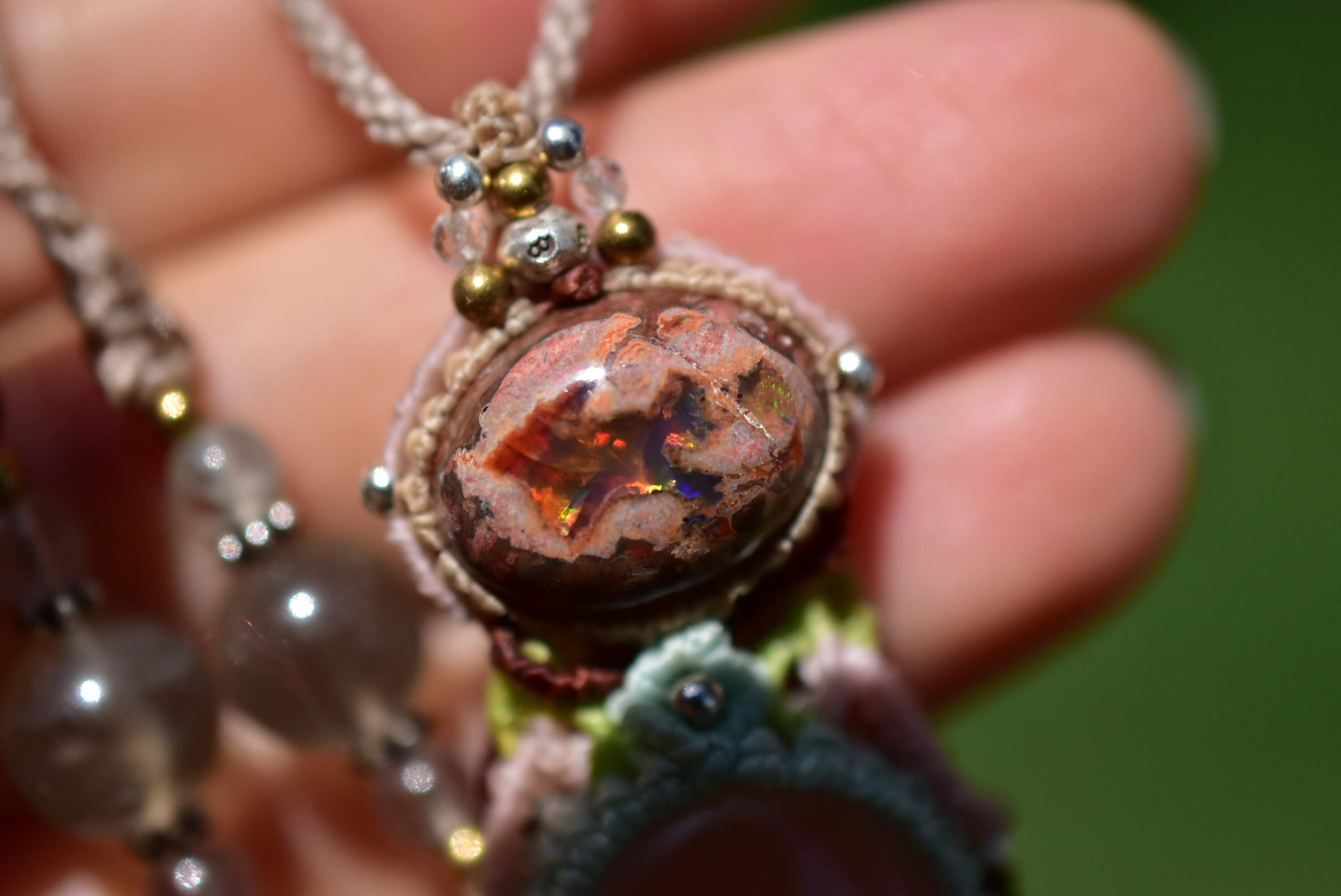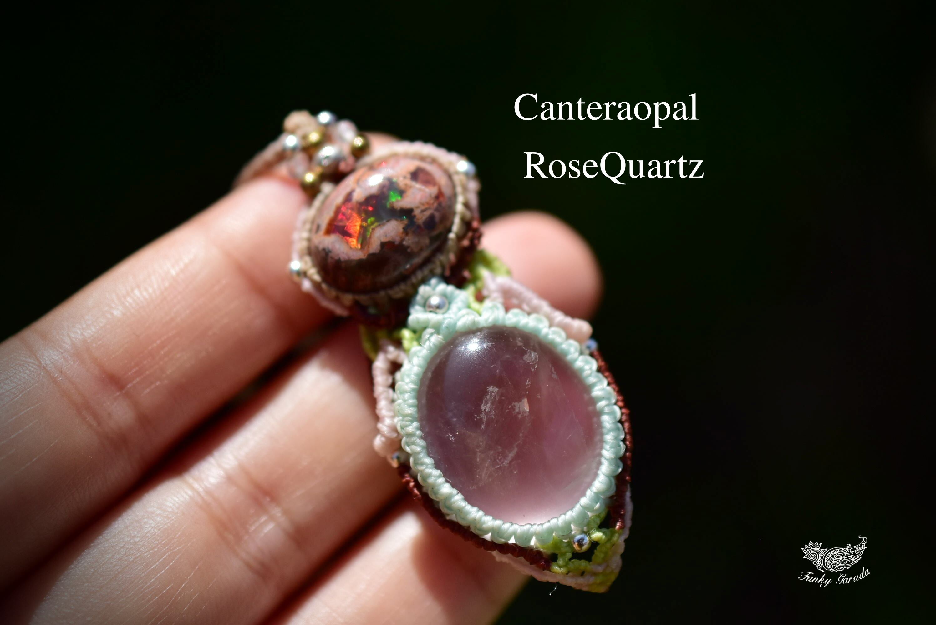 春の火山★カンテラオパール 高品質ローズクォーツマクラメペンダント273