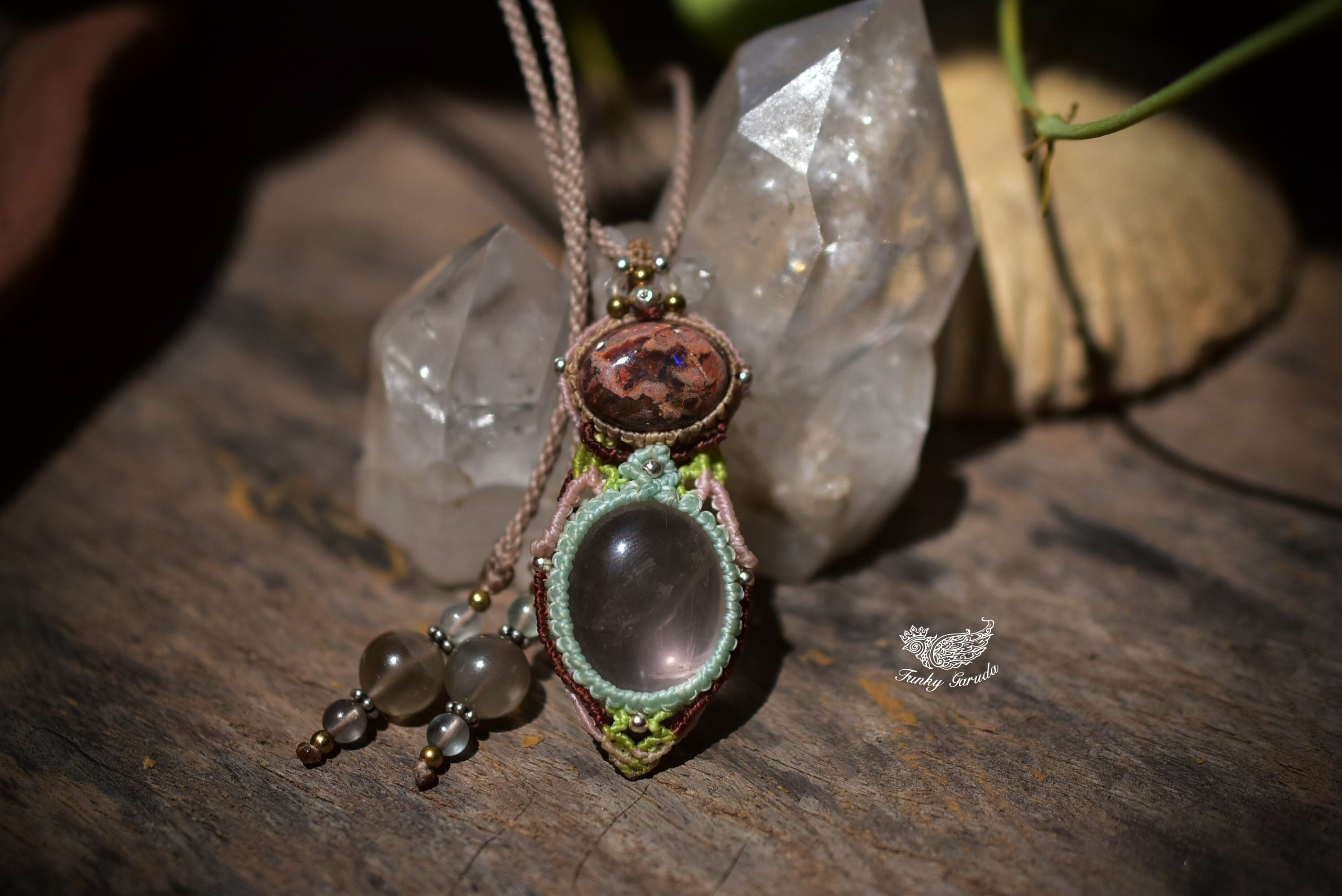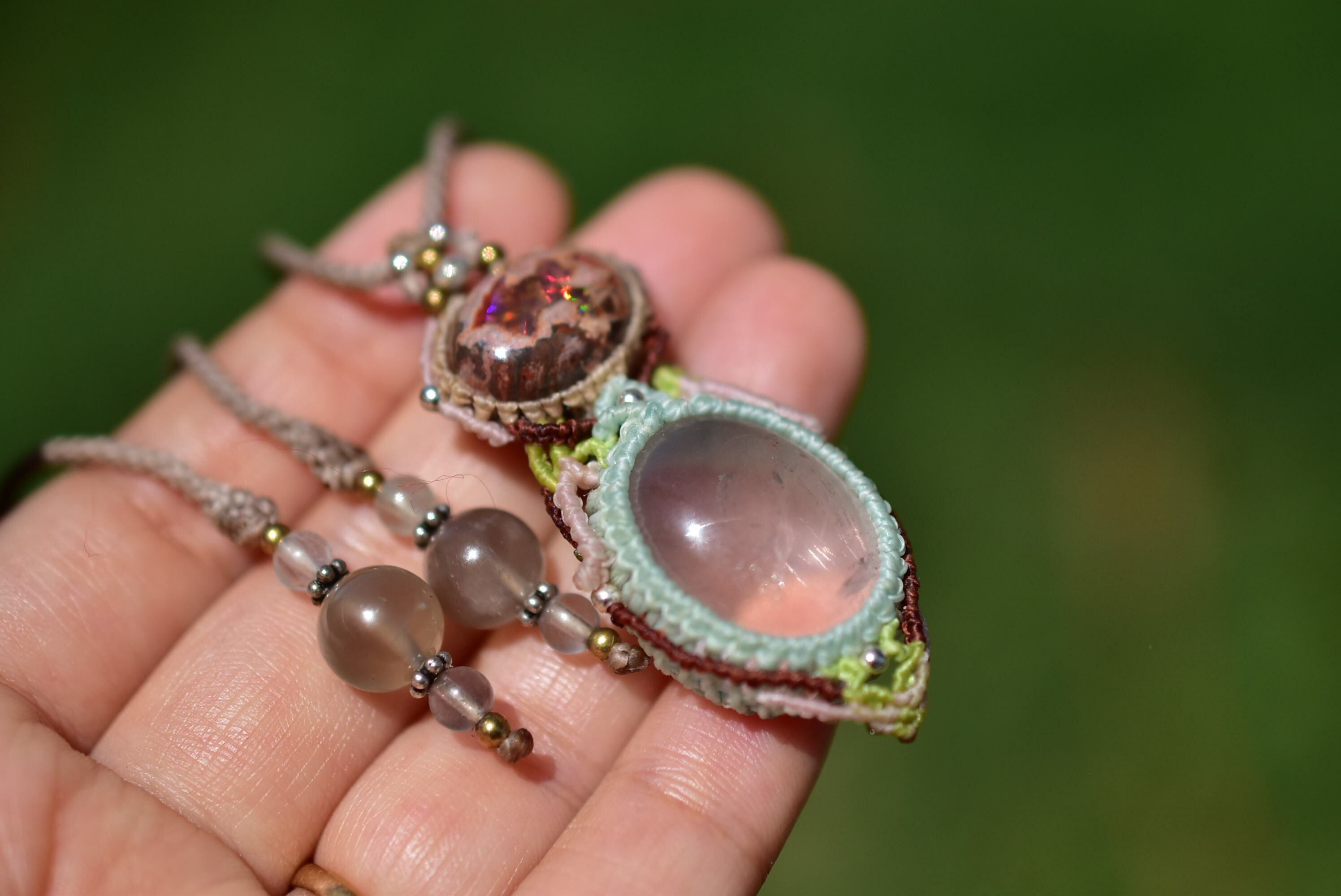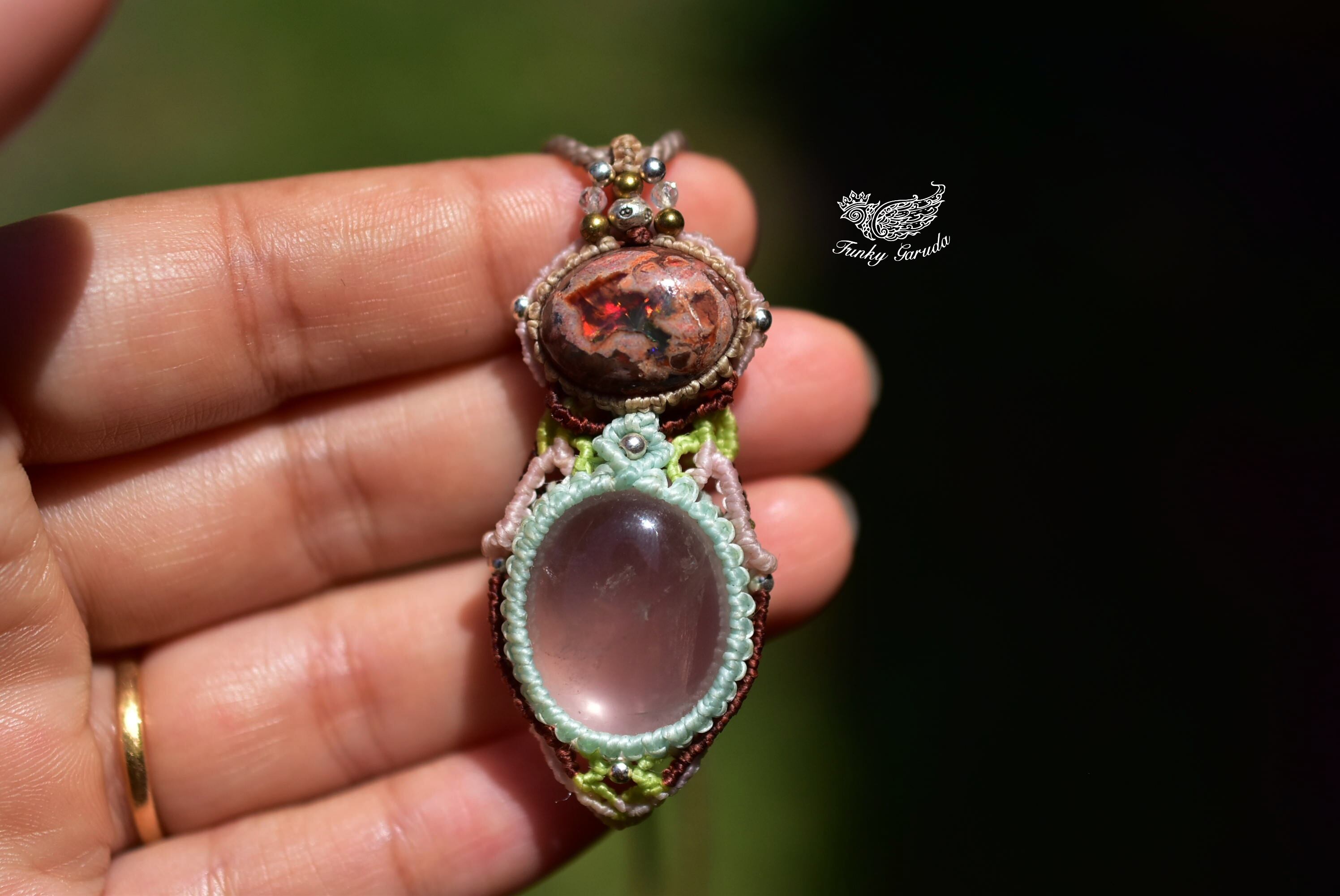 春の火山★カンテラオパール 高品質ローズクォーツマクラメペンダント273