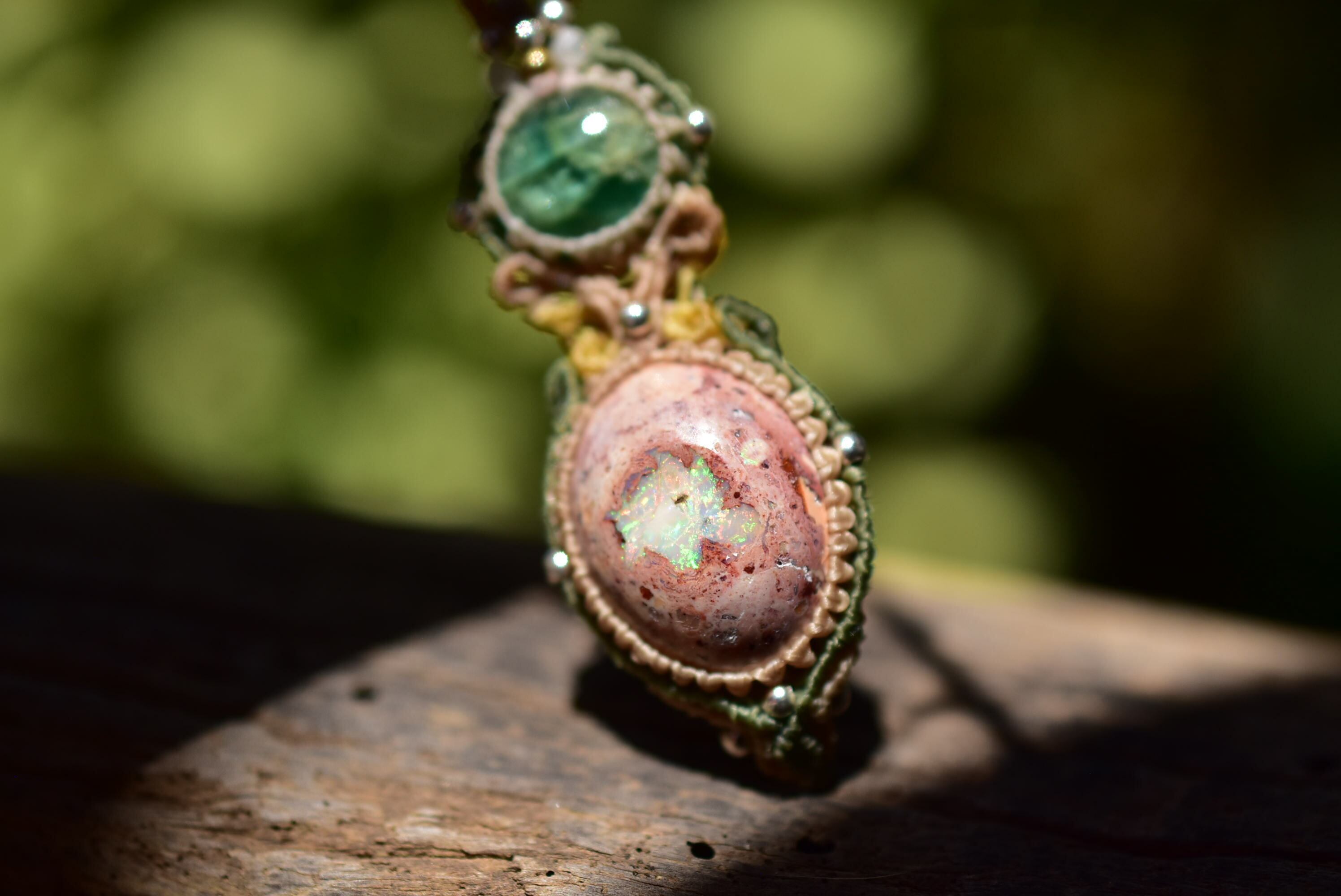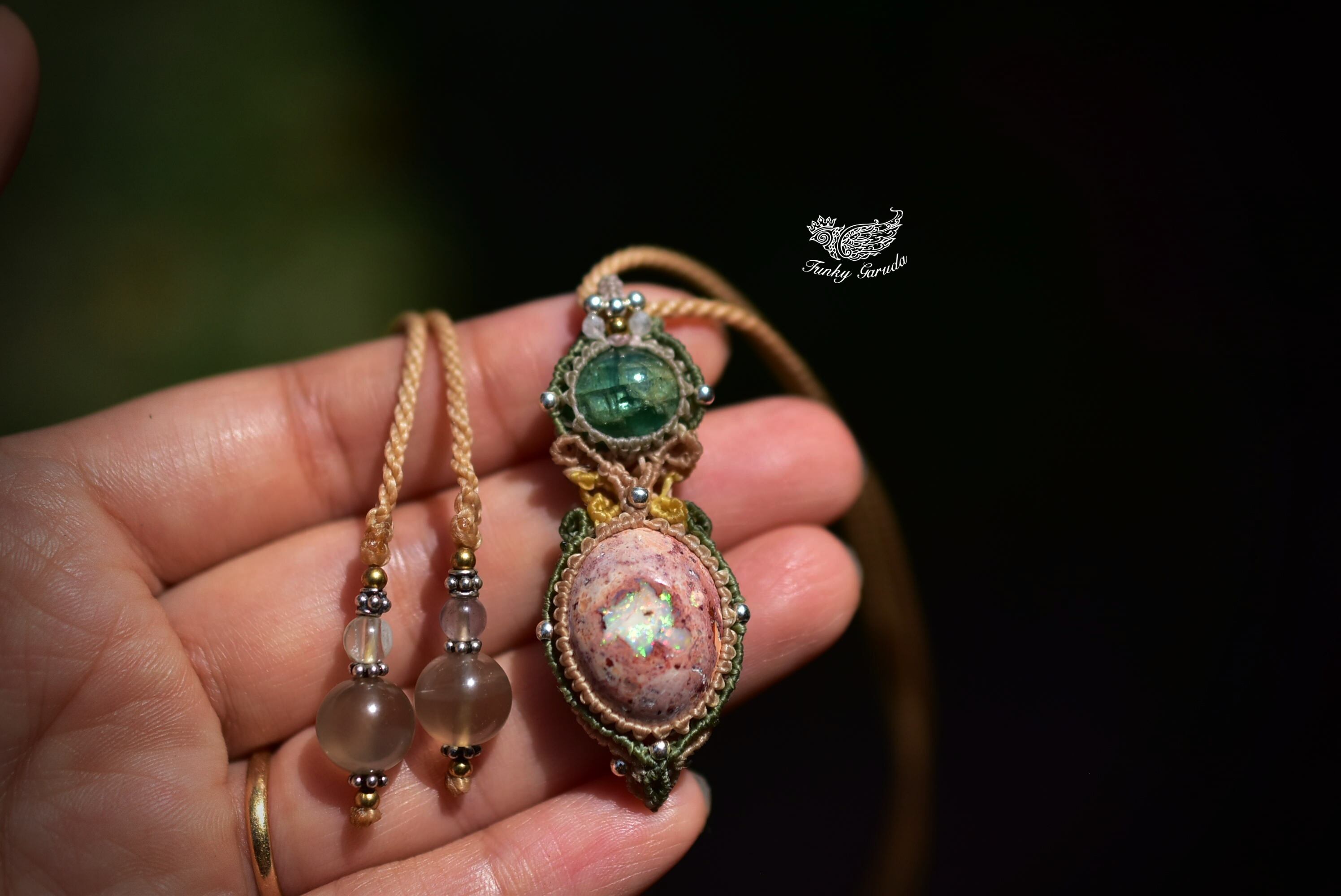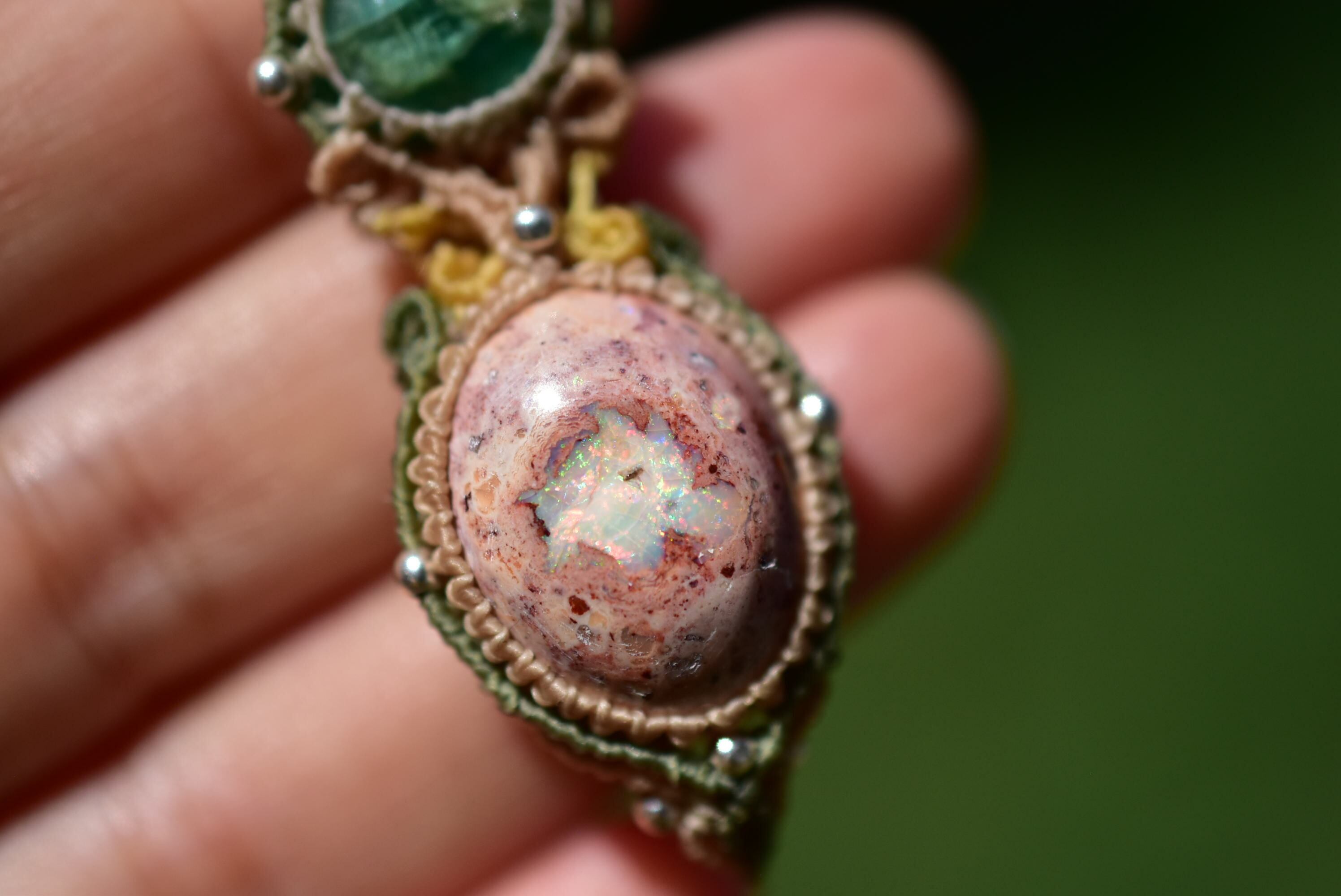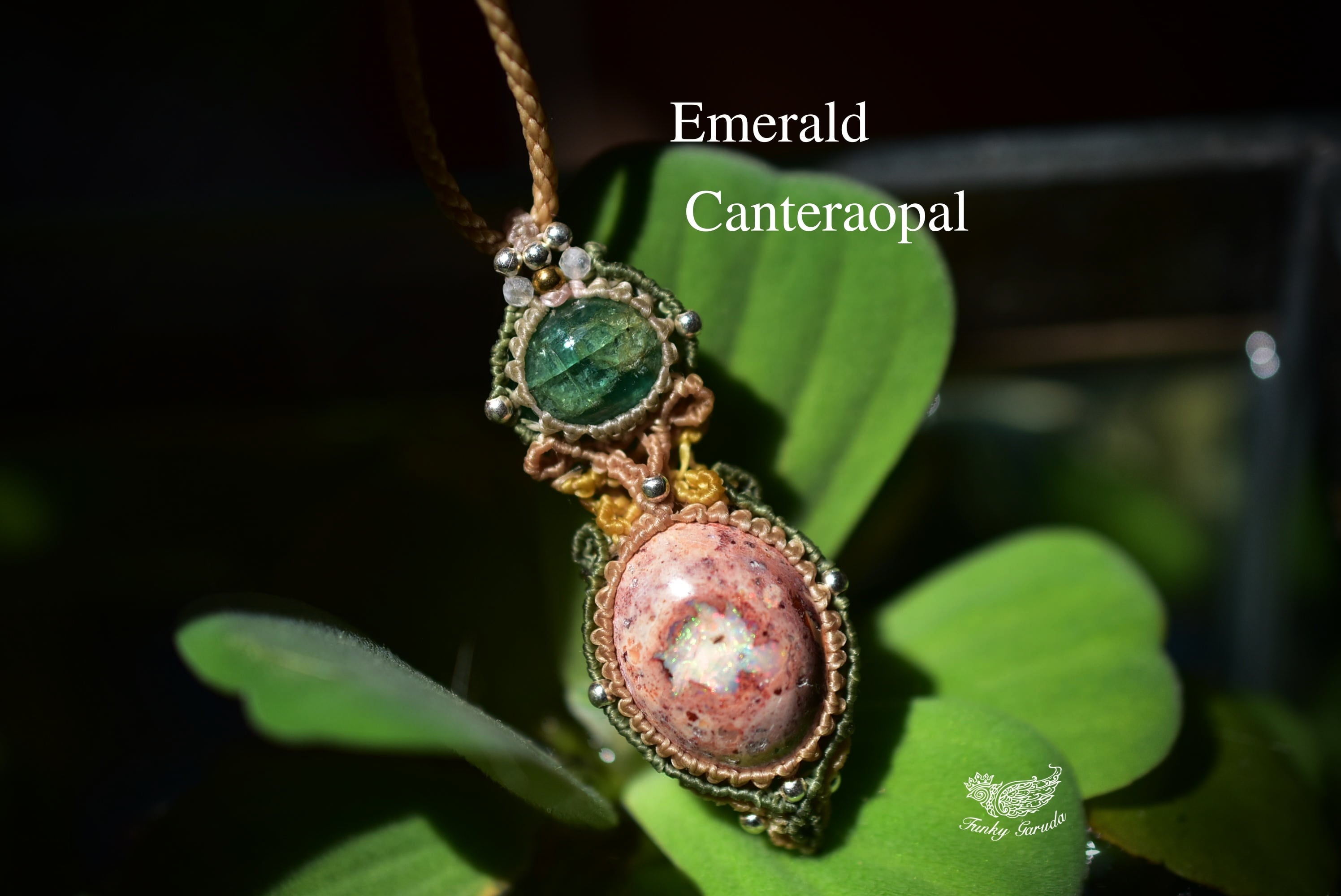2石の虹の夢★エメラルド カンテラオパール マクラメペンダント274