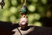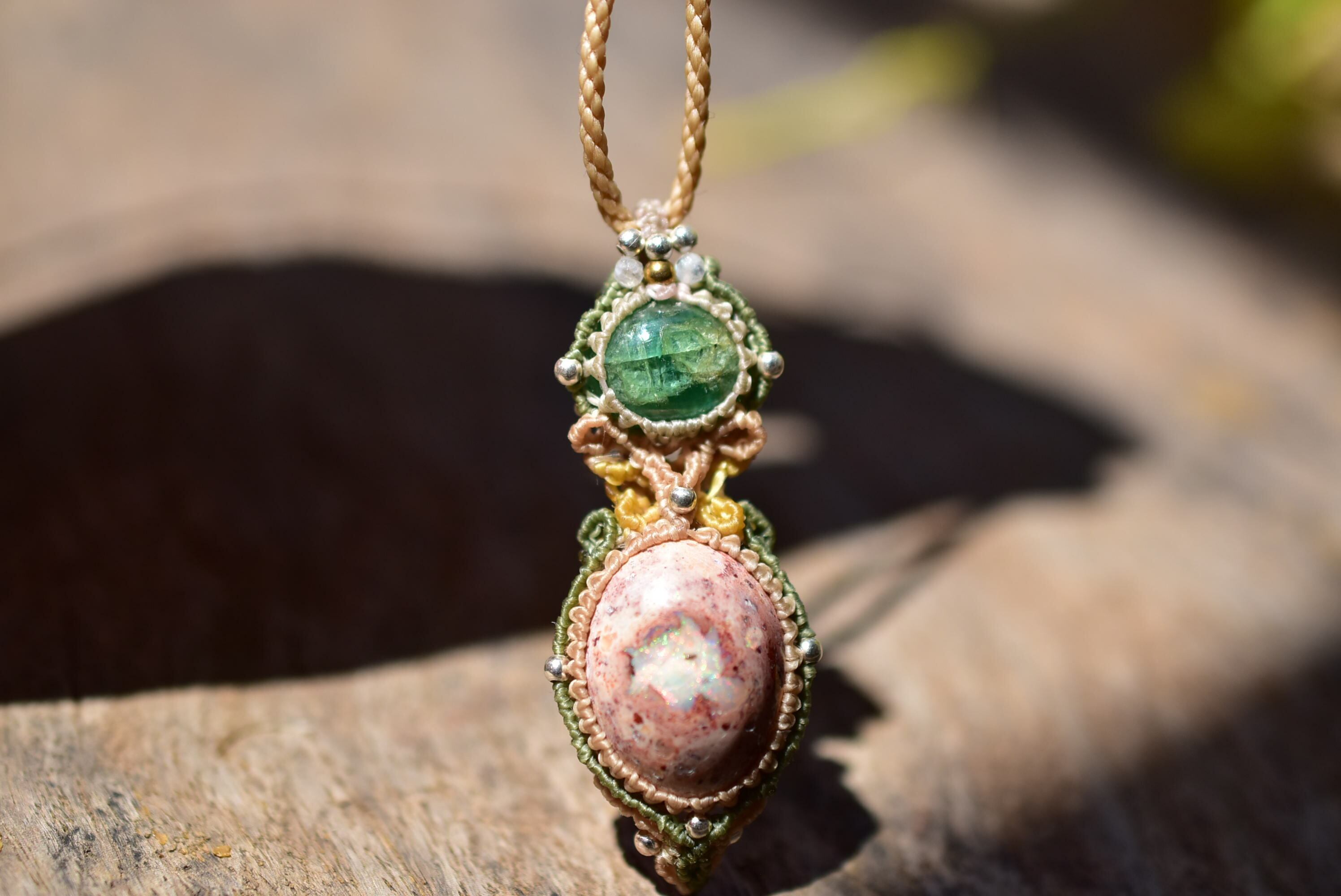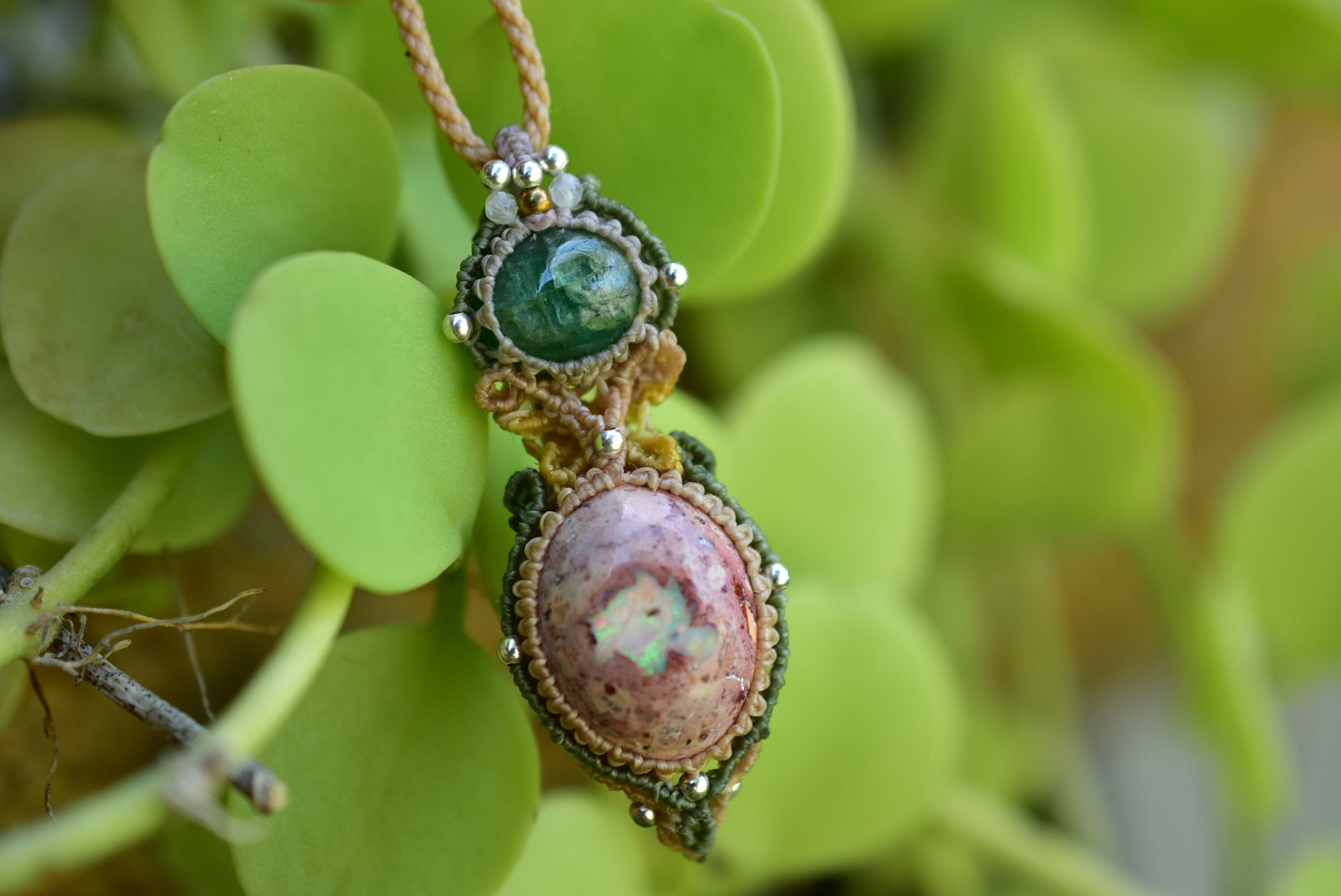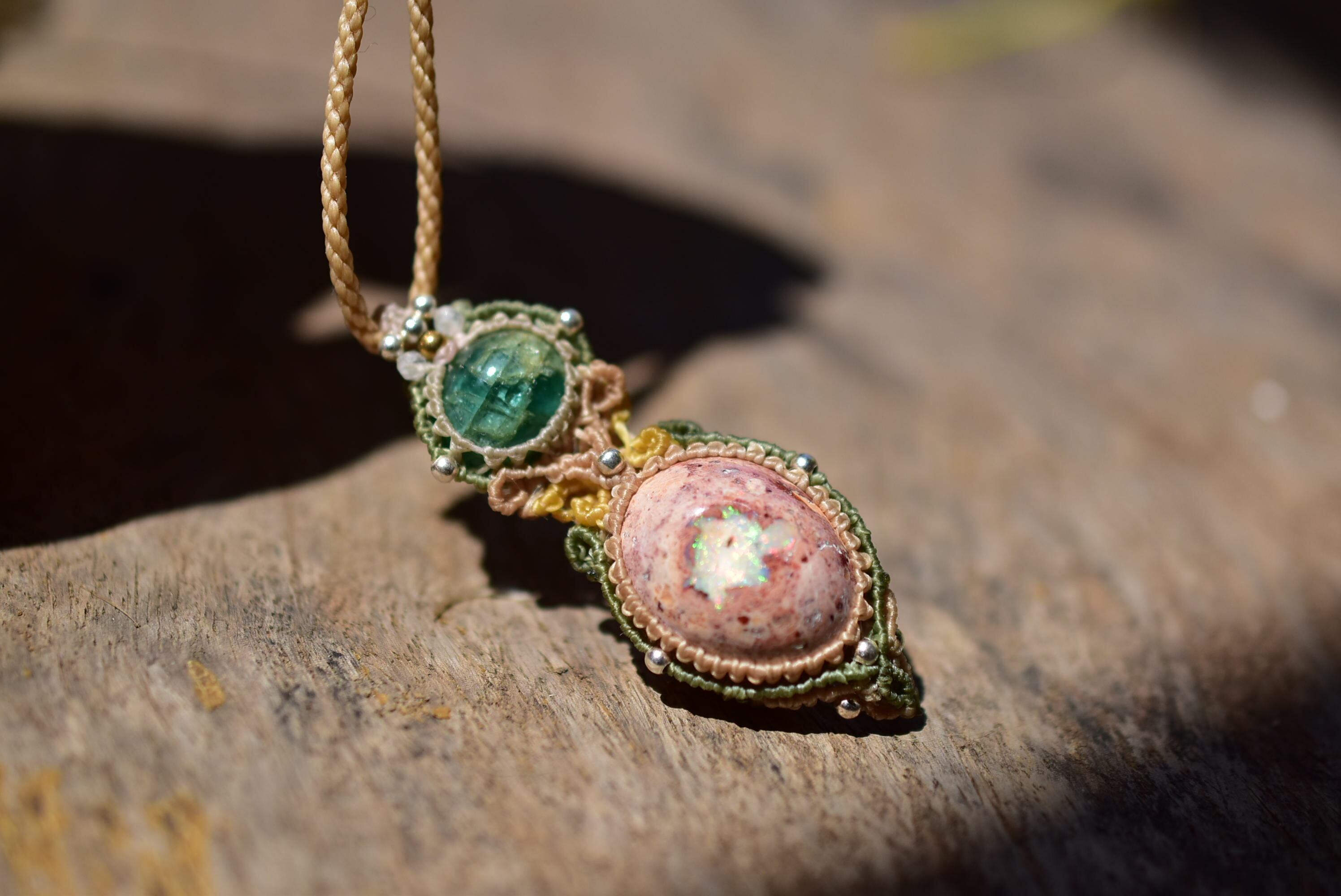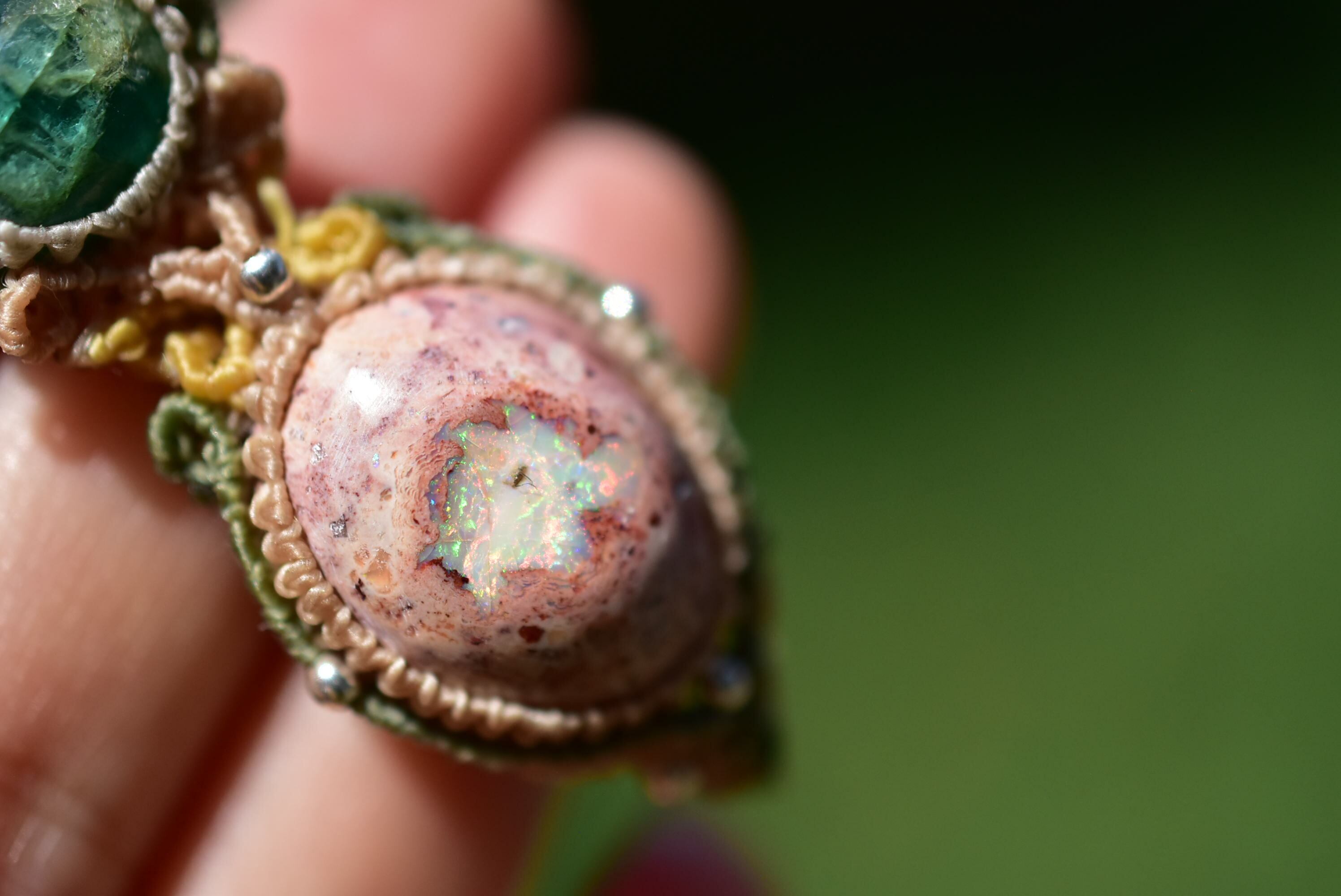 2石の虹の夢★エメラルド カンテラオパール マクラメペンダント274