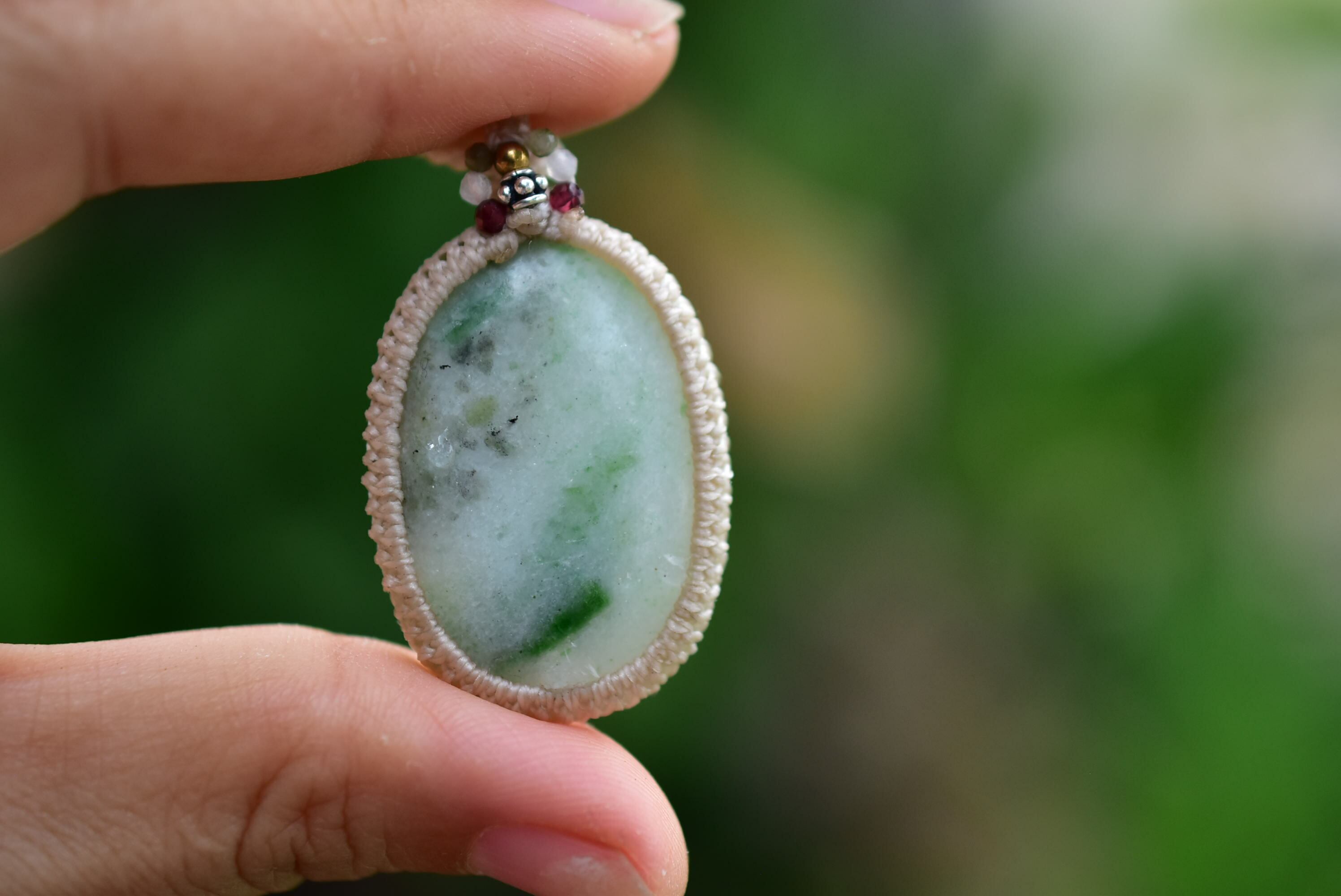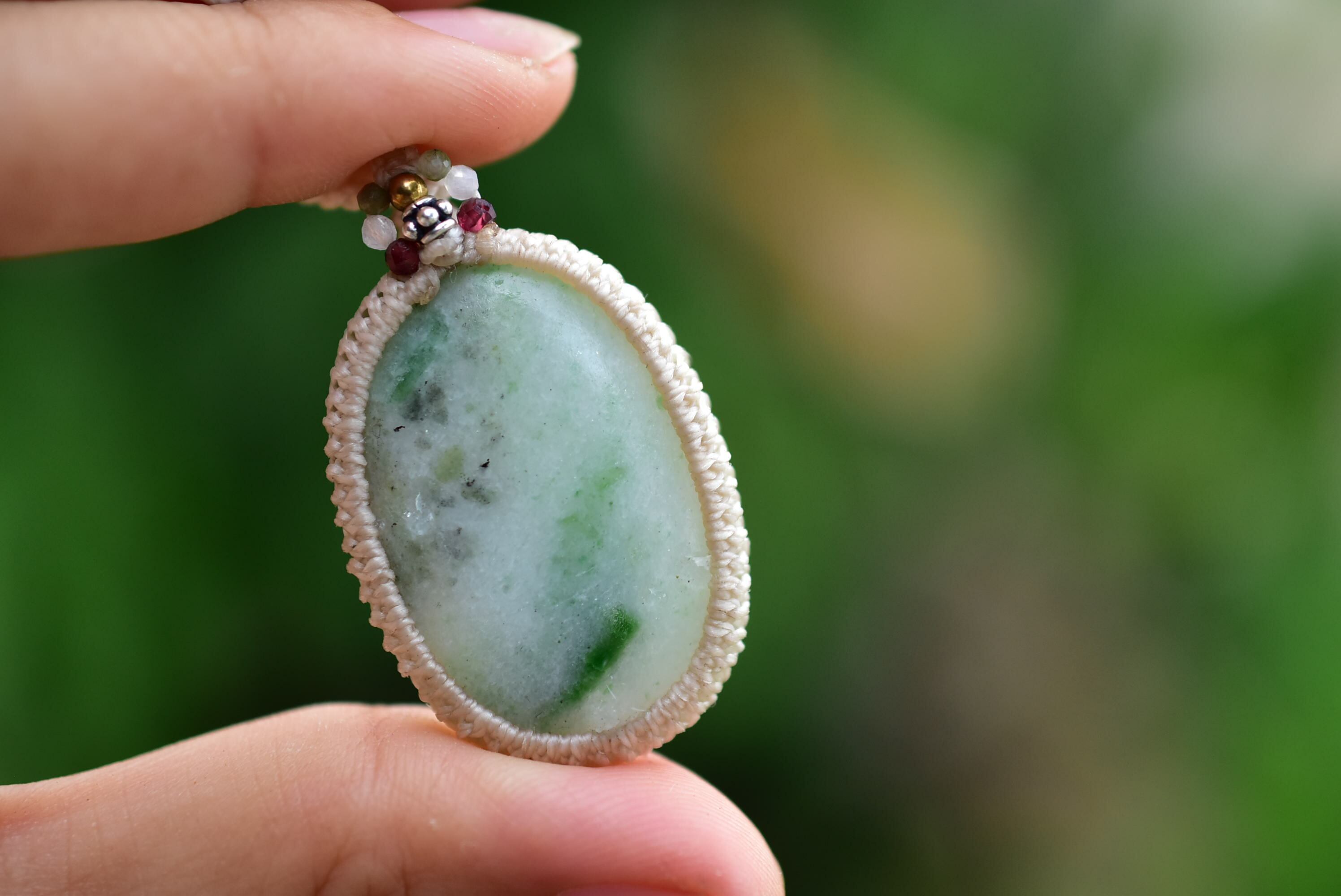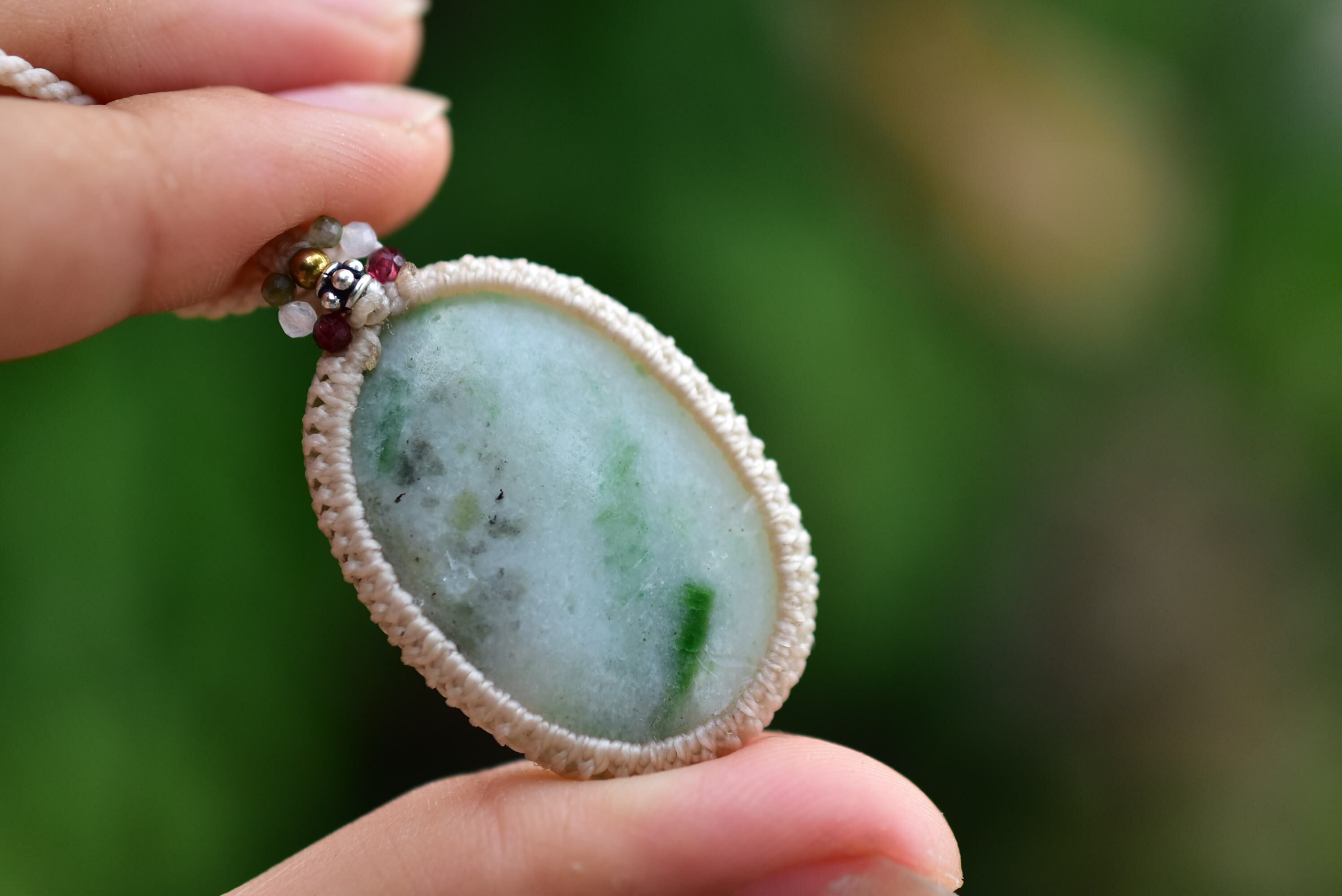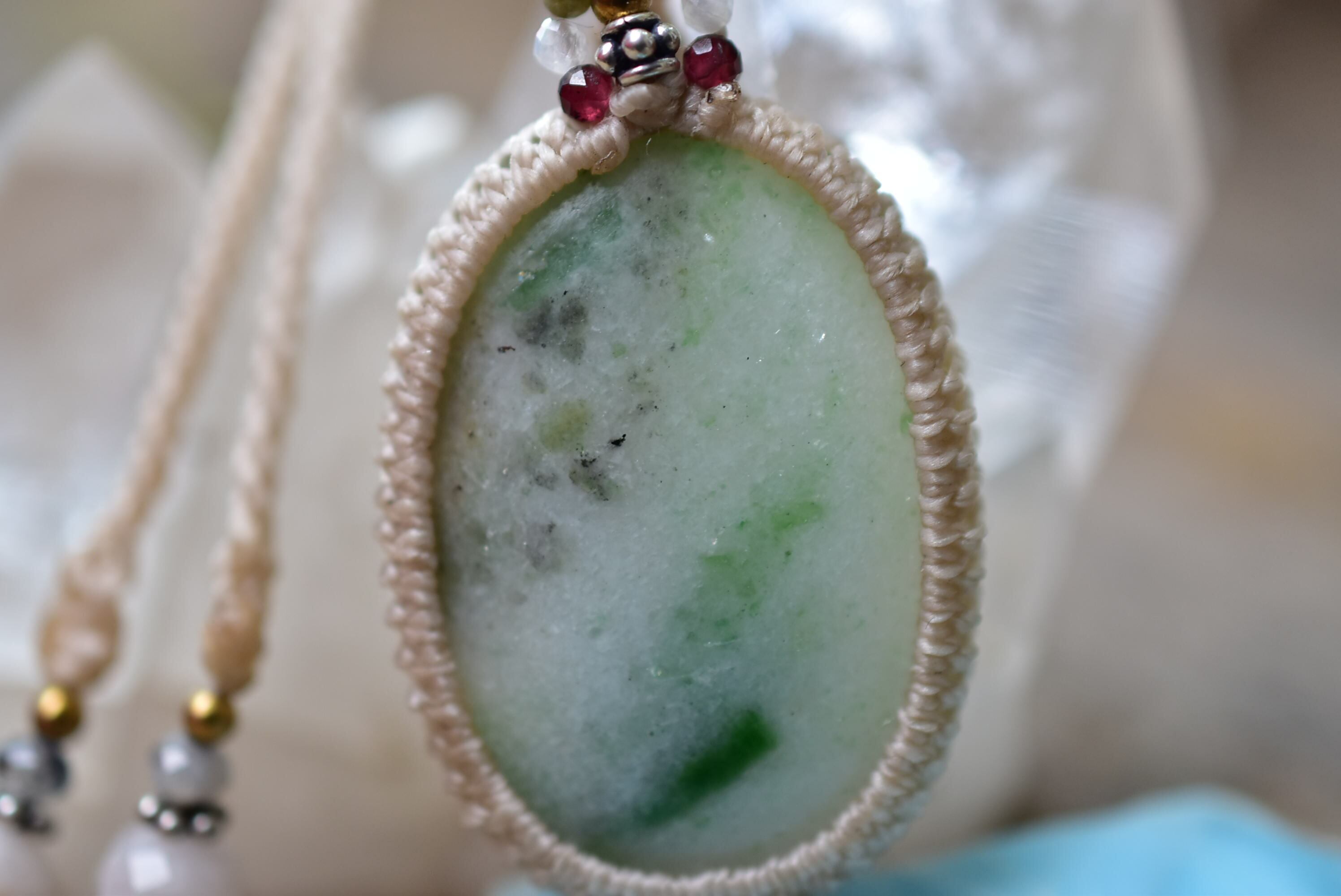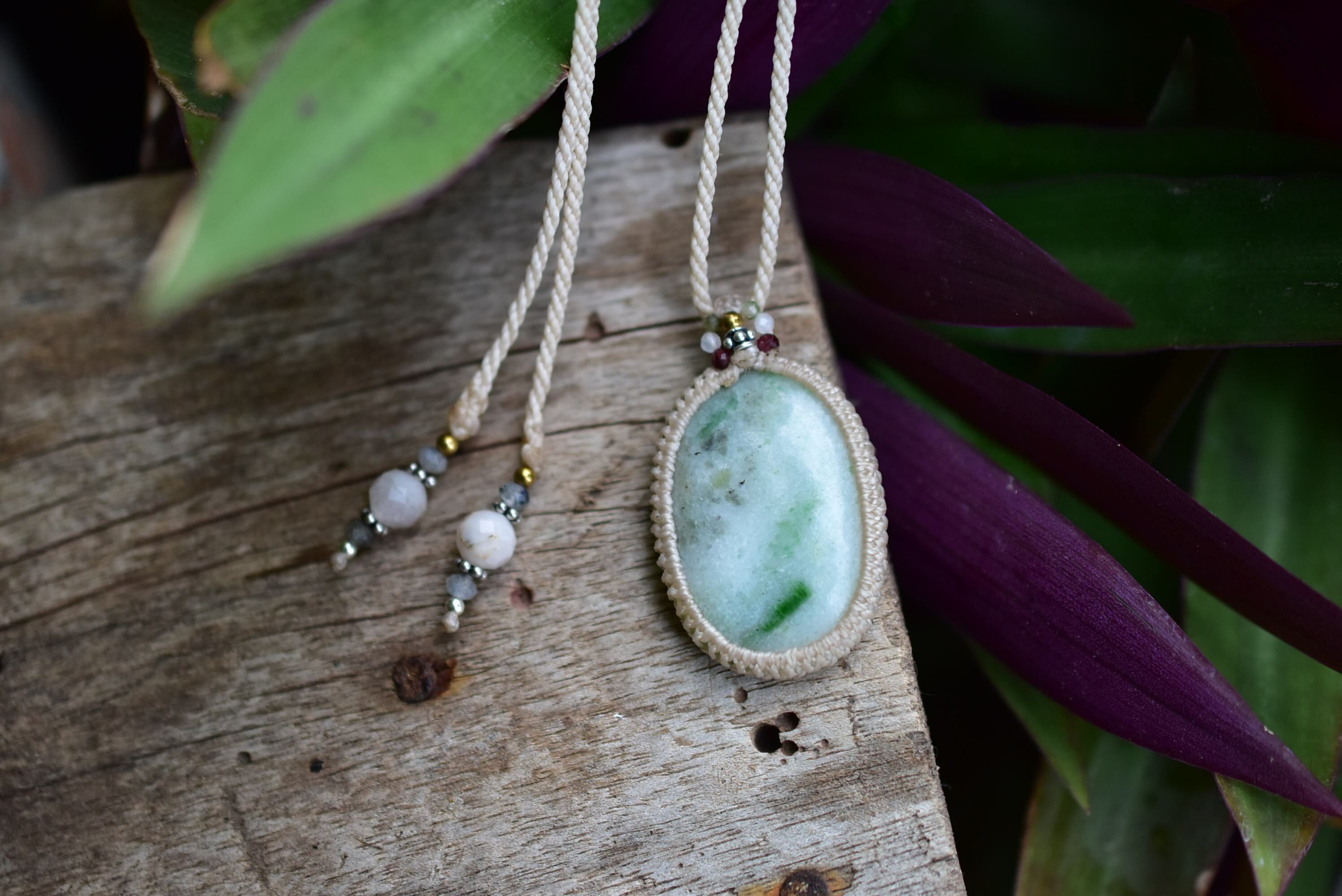 植物絵の具★ミャンマー翡翠 マクラメペンダント289