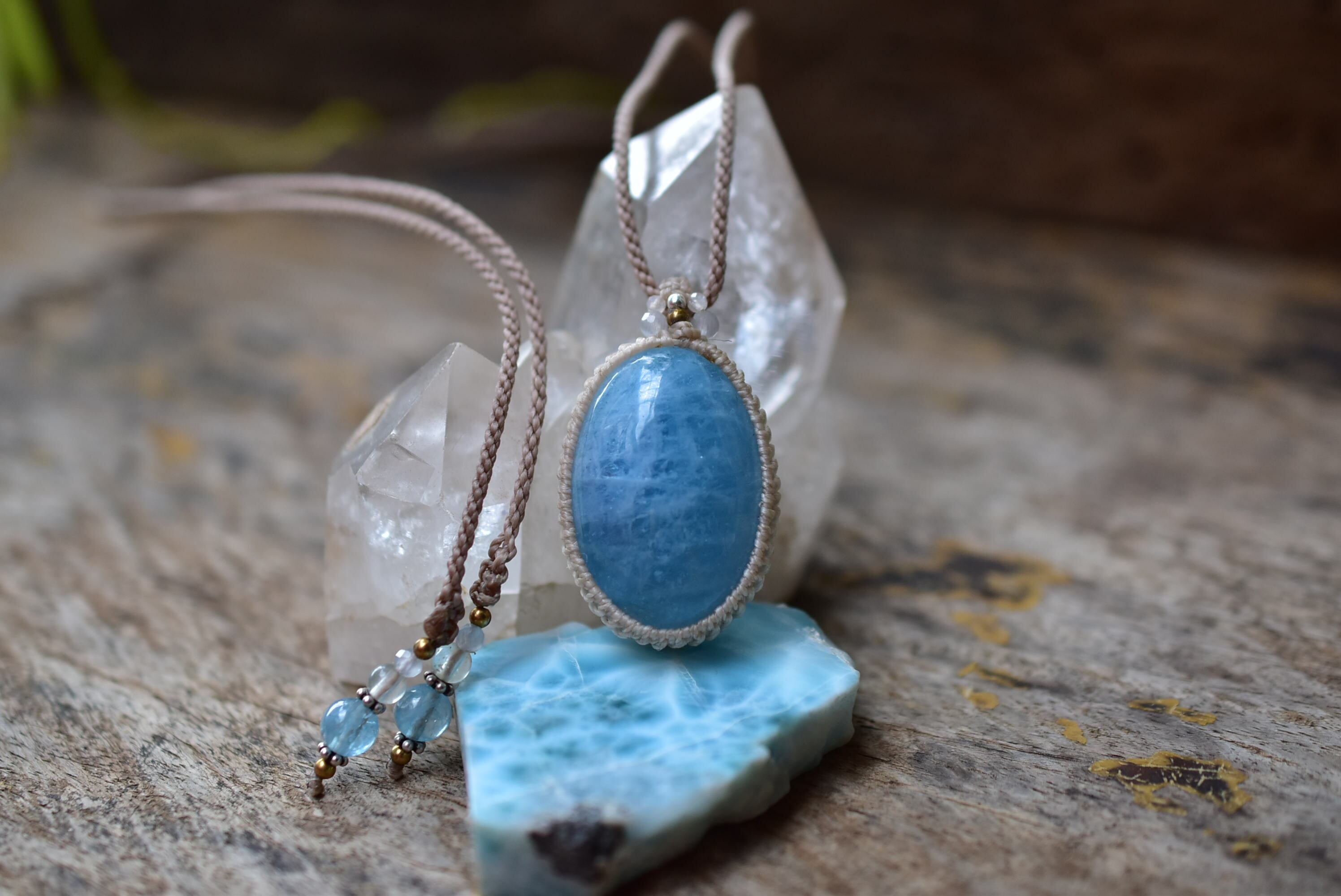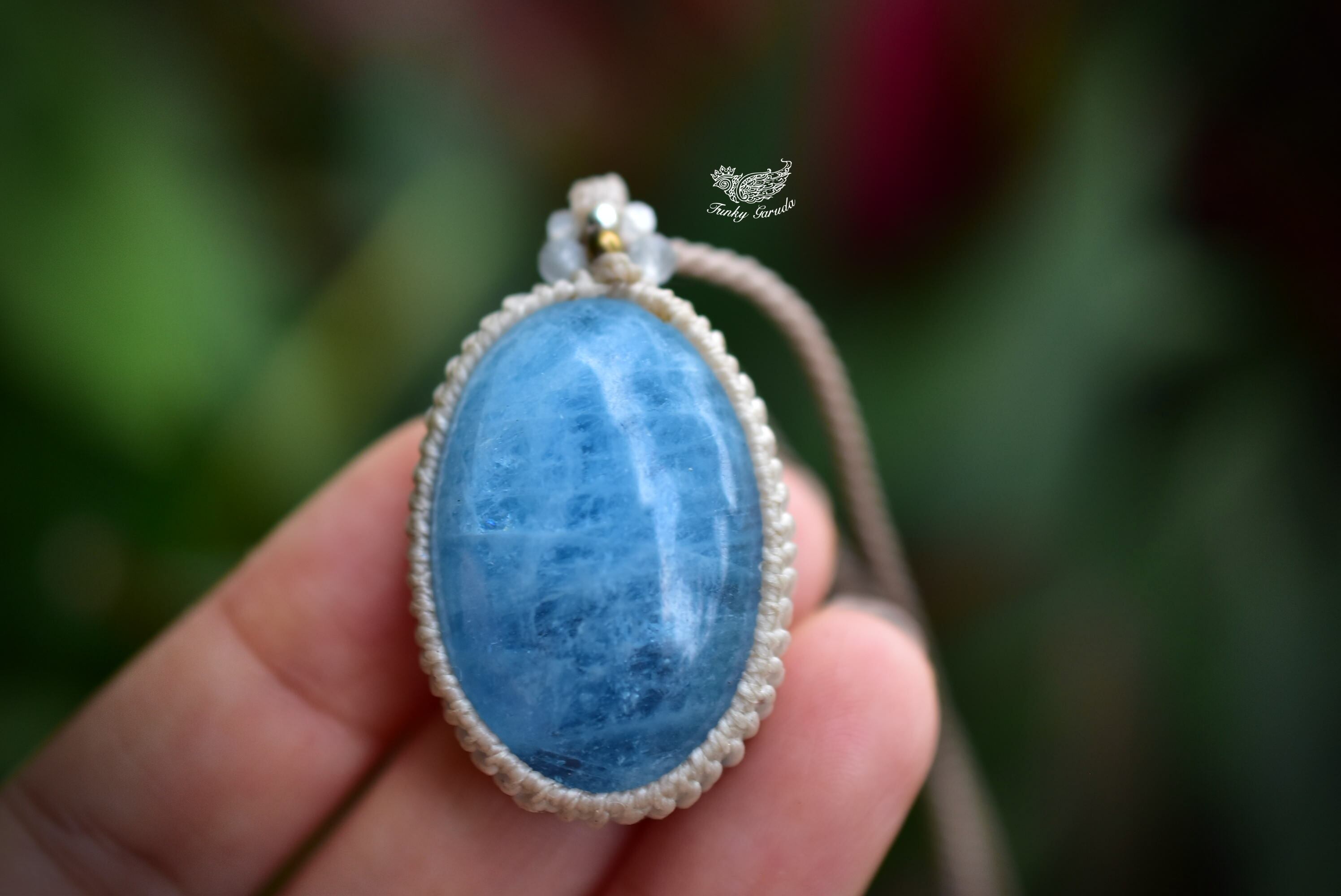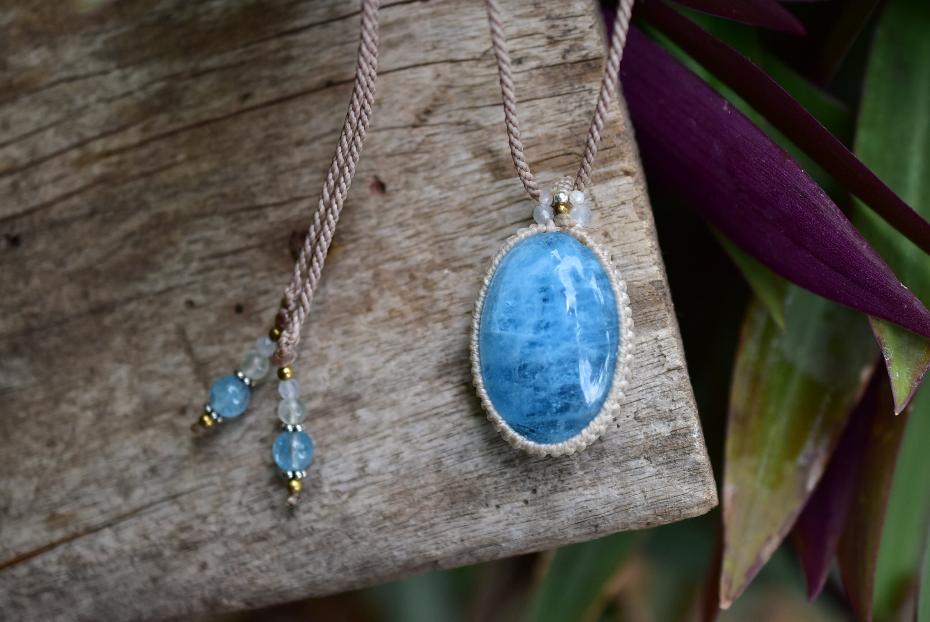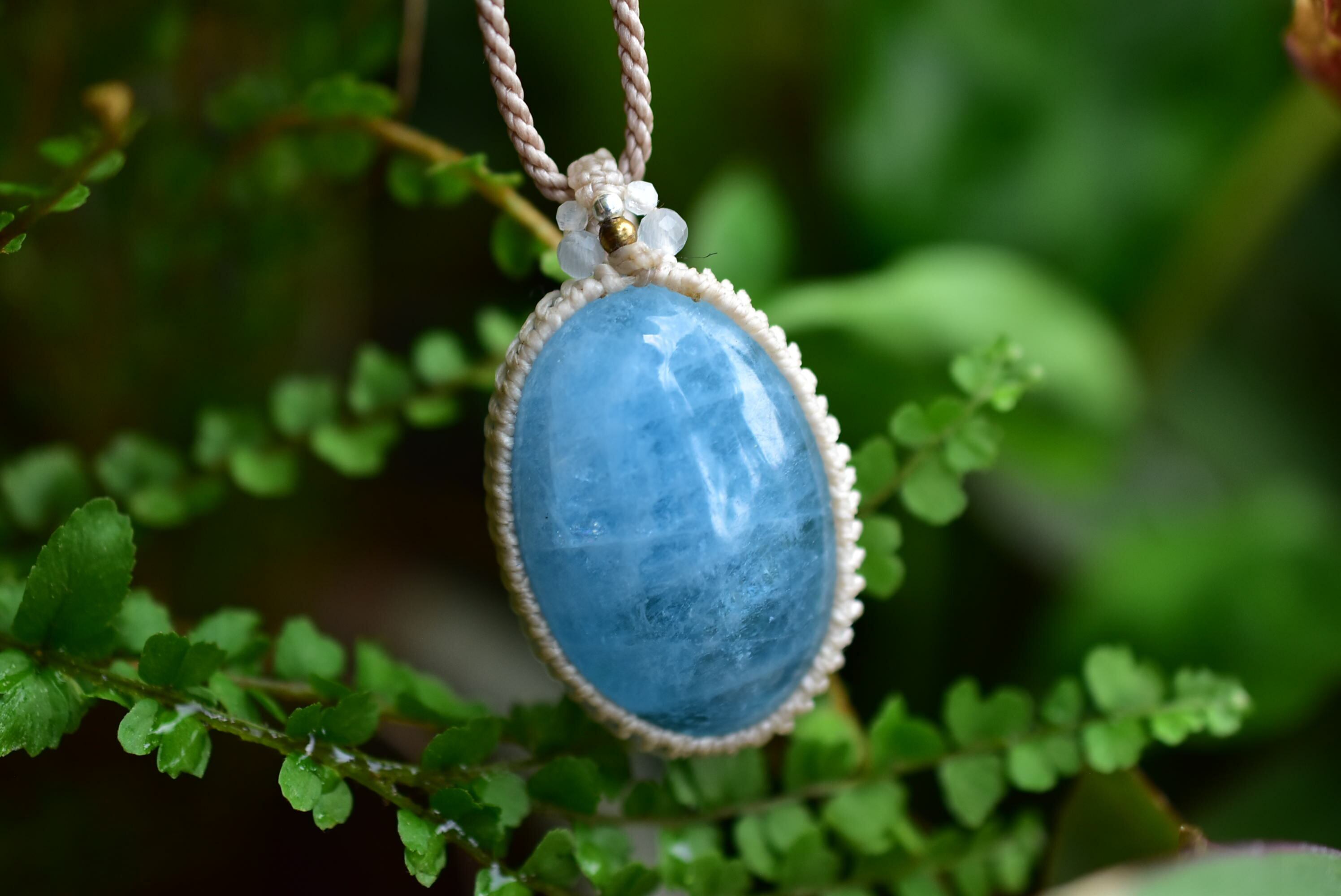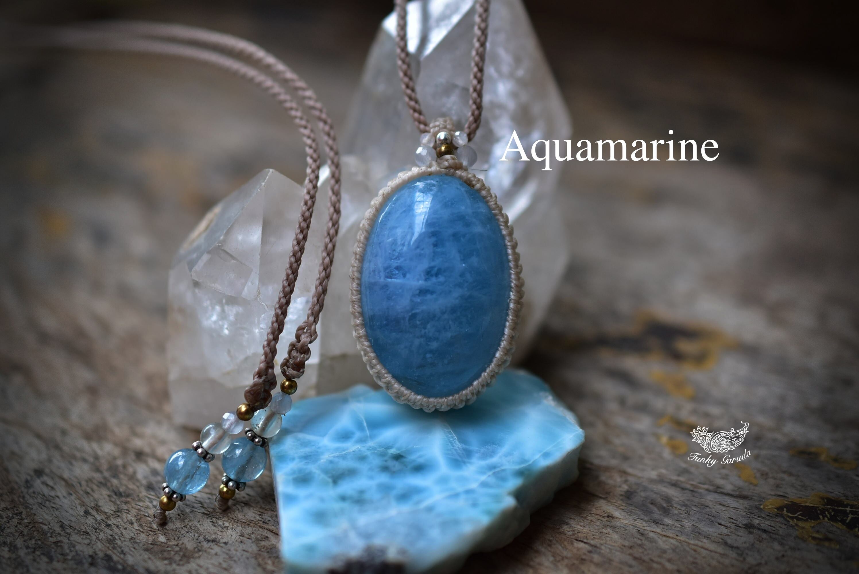 水色の涙★高品質★アクアマリン マクラメペンダント291