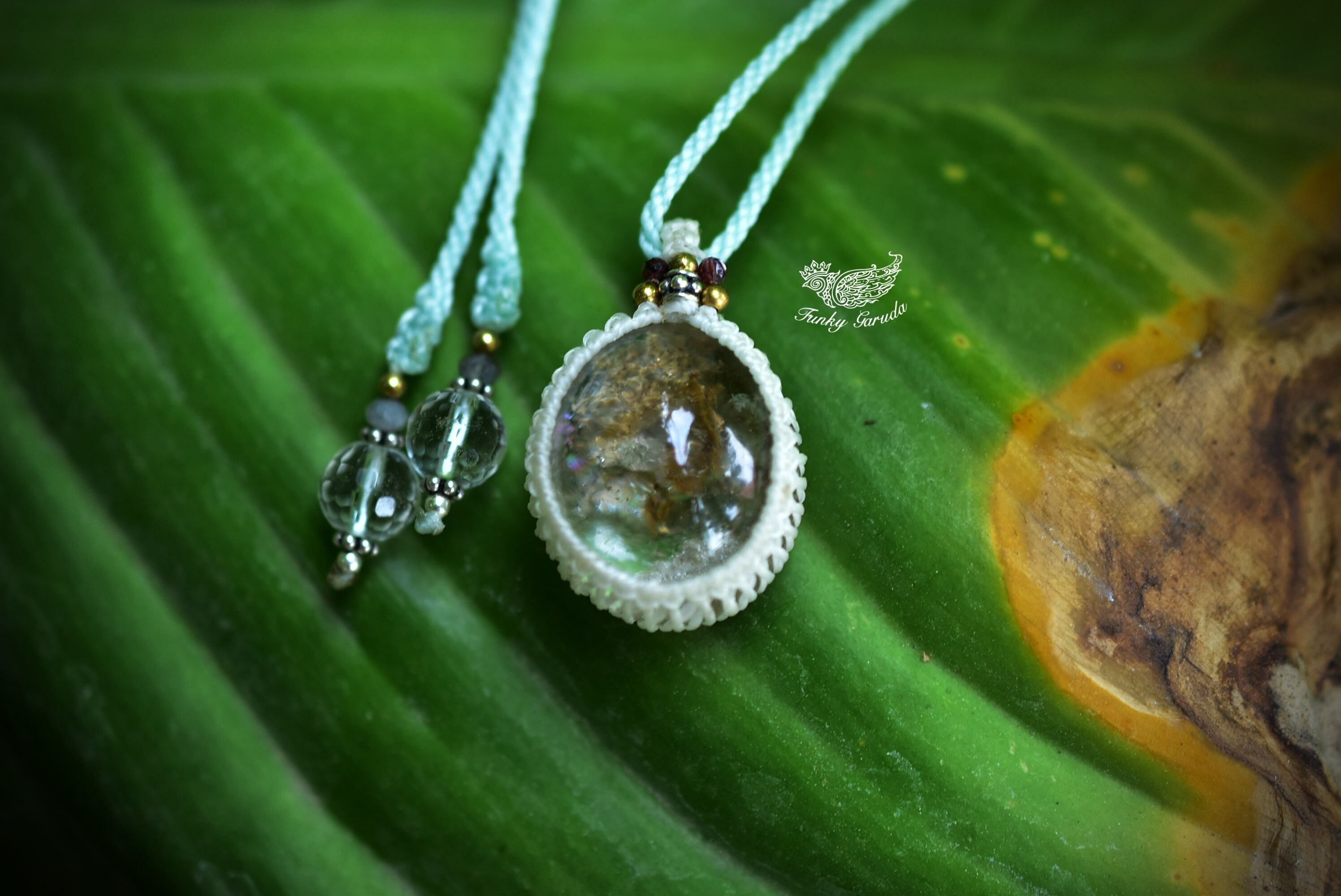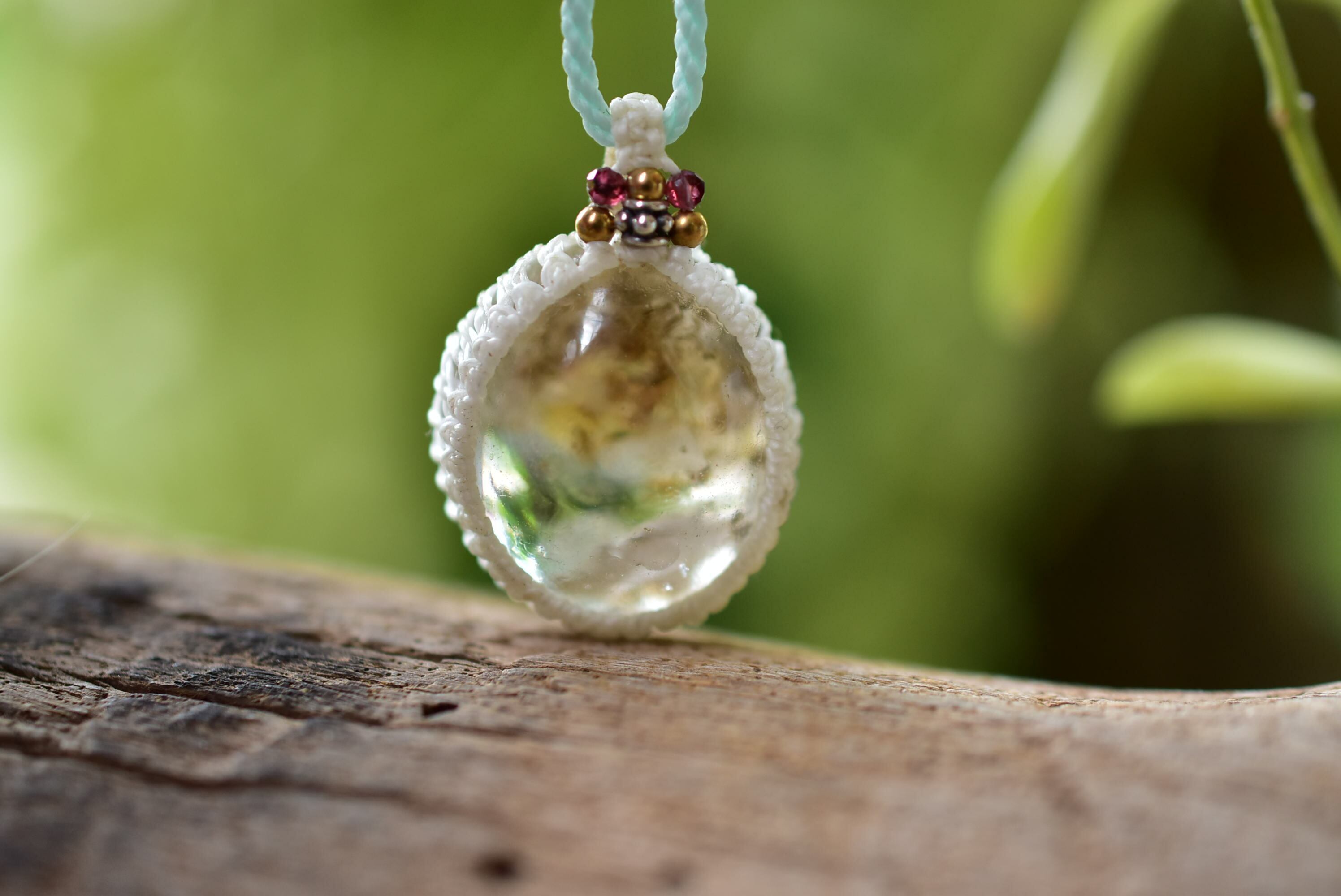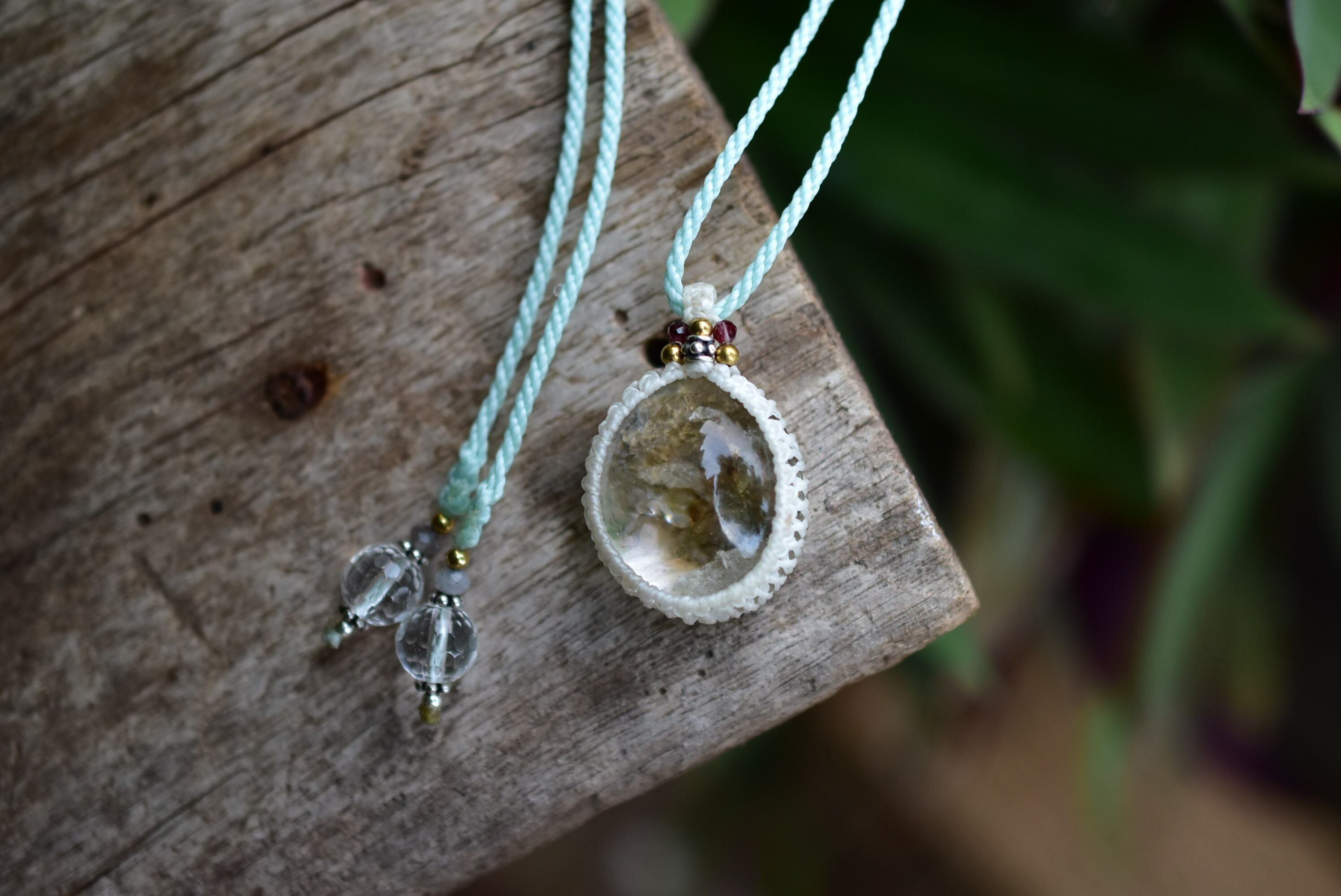 虹入りライモナイト★シラーの滝★ガーデンクォーツ マクラメペンダント 293