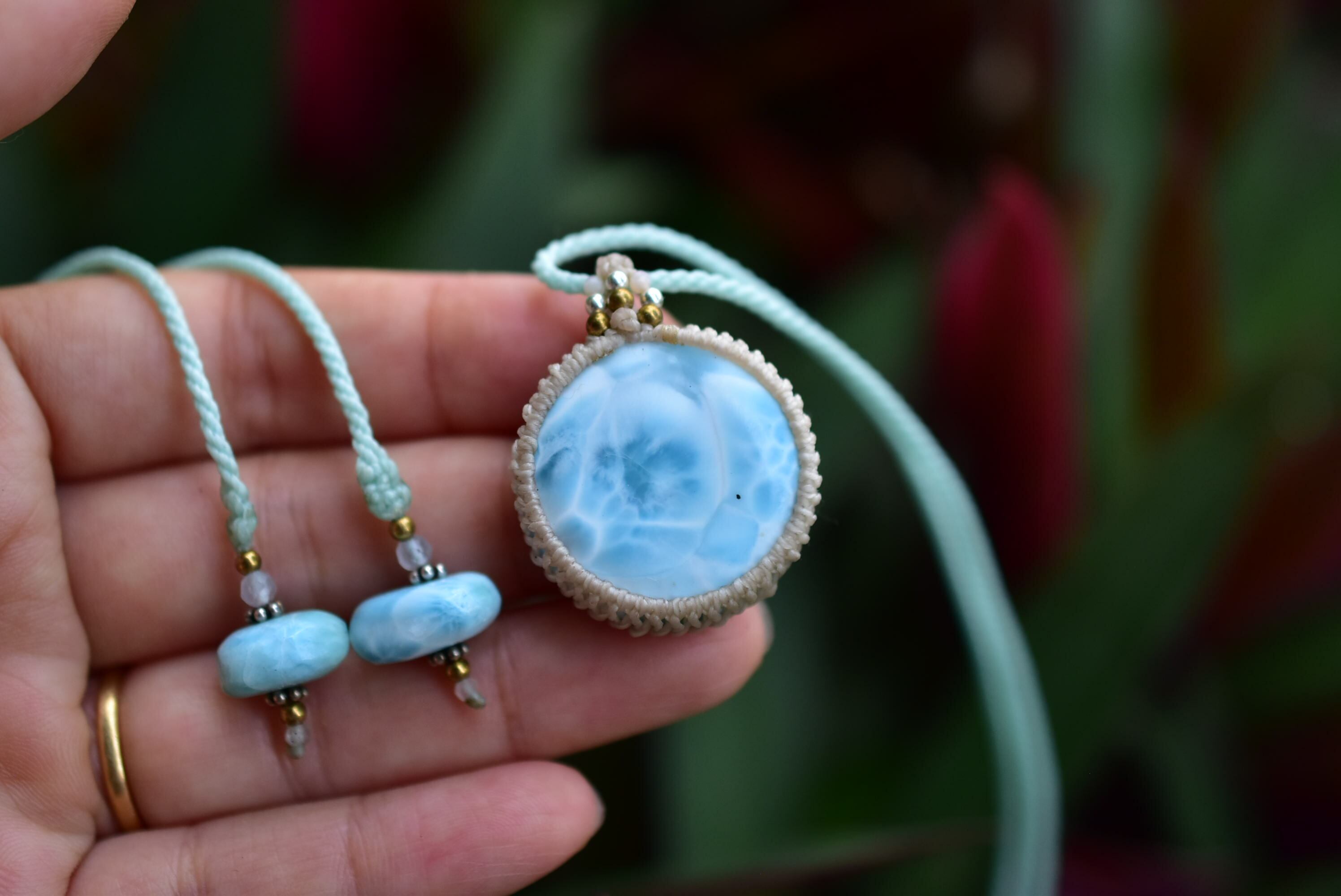 まんまるシャトヤンシー★ラリマー マクラメペンダント296
