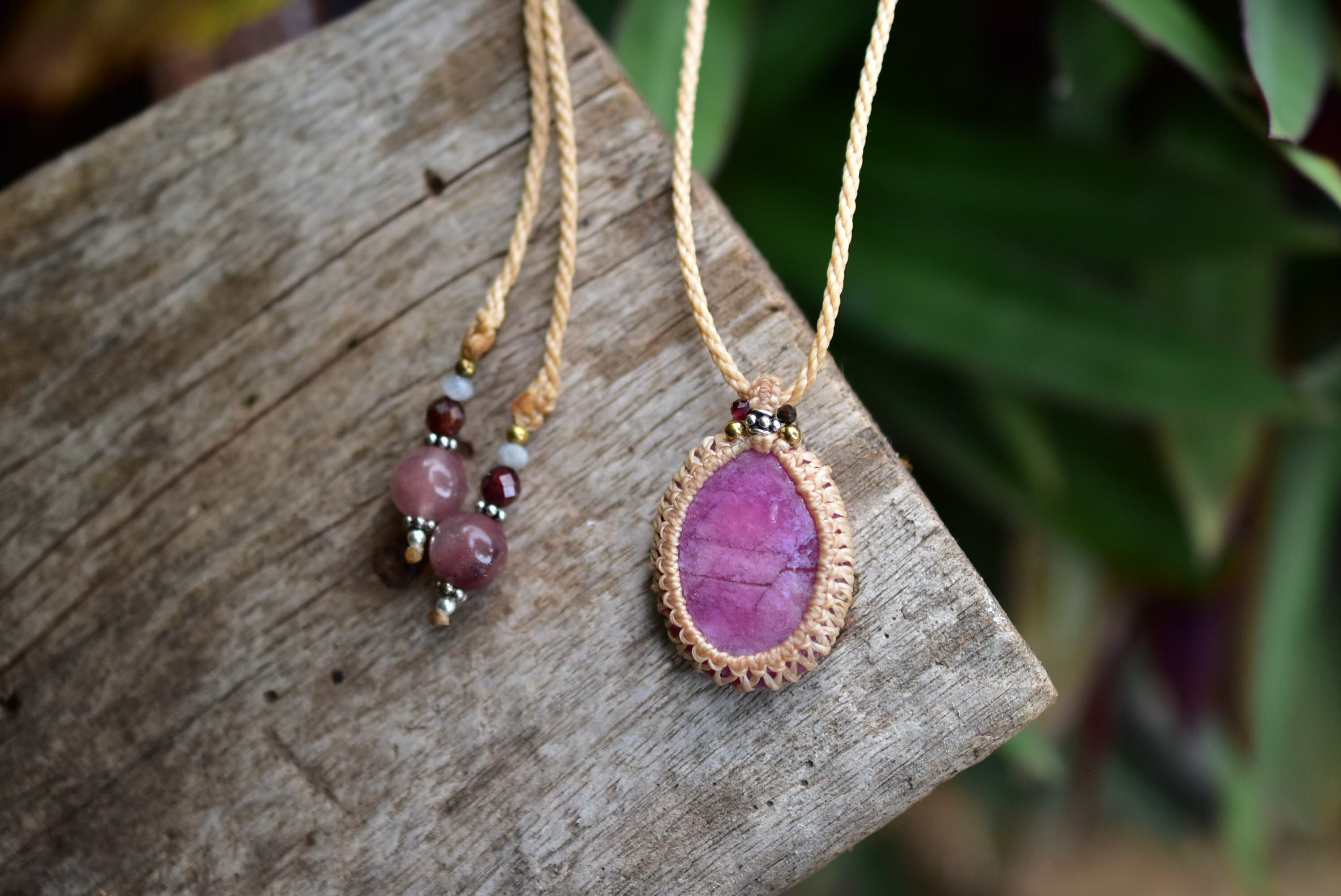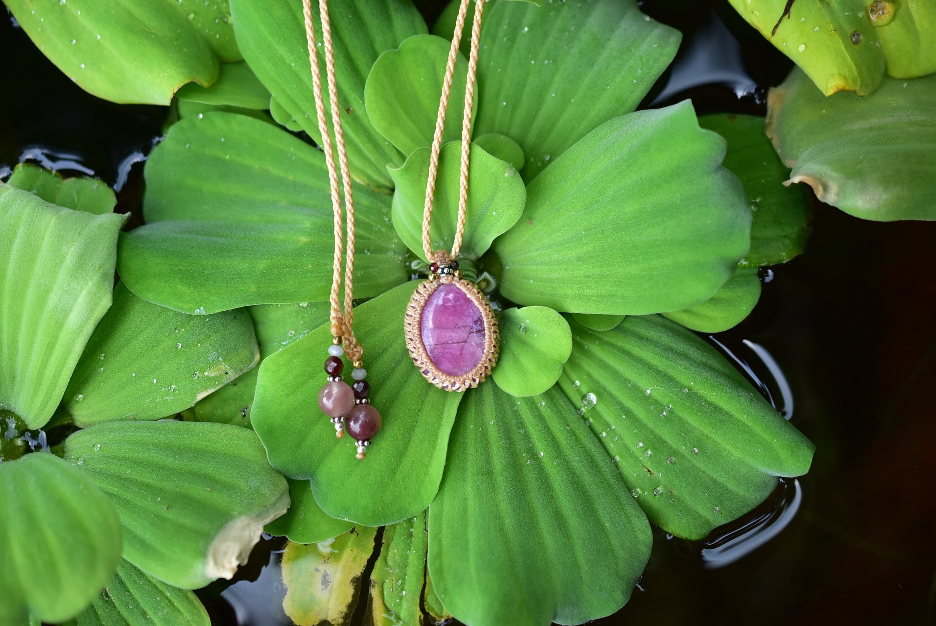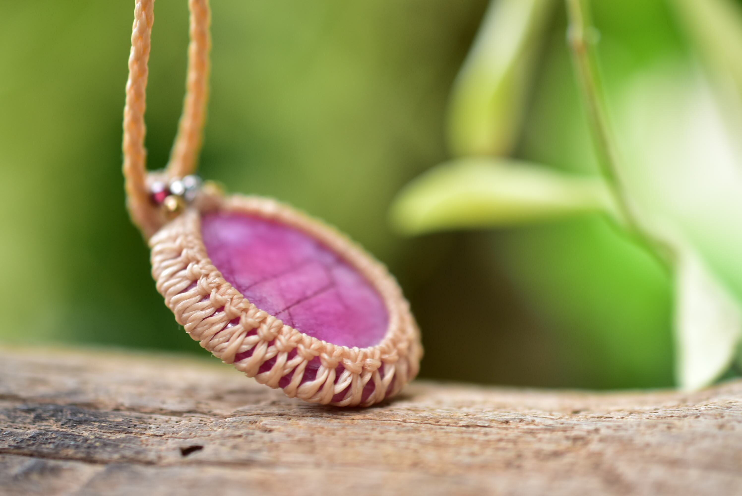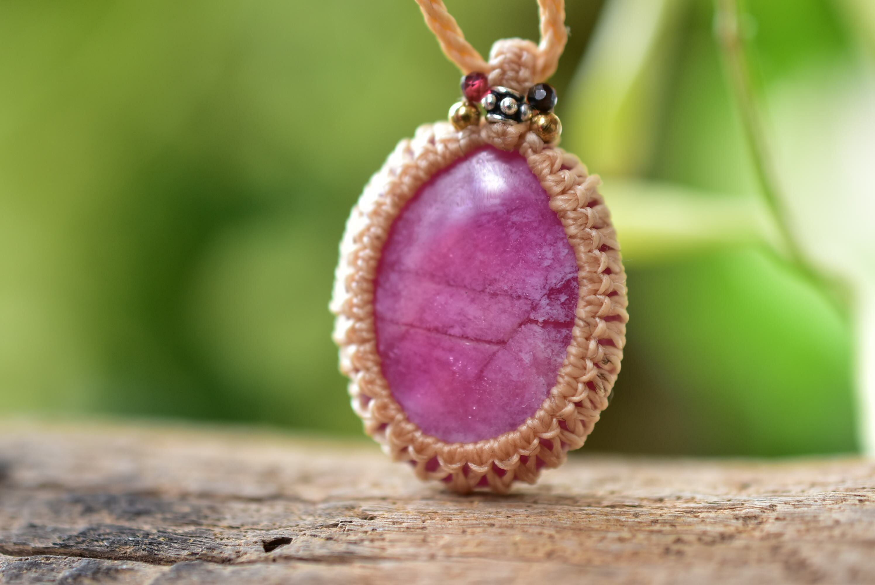小刻みな形★ピンクルビー マクラメペンダント297