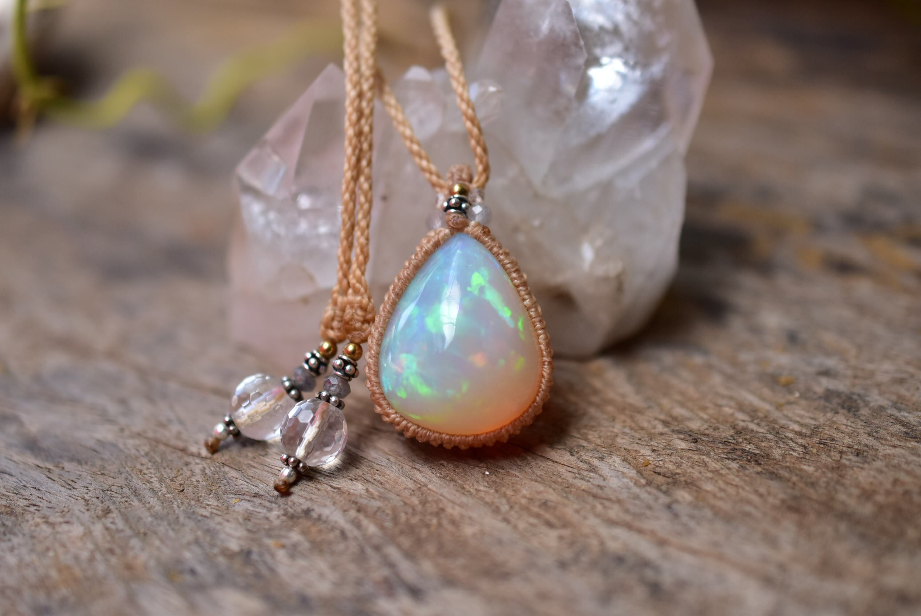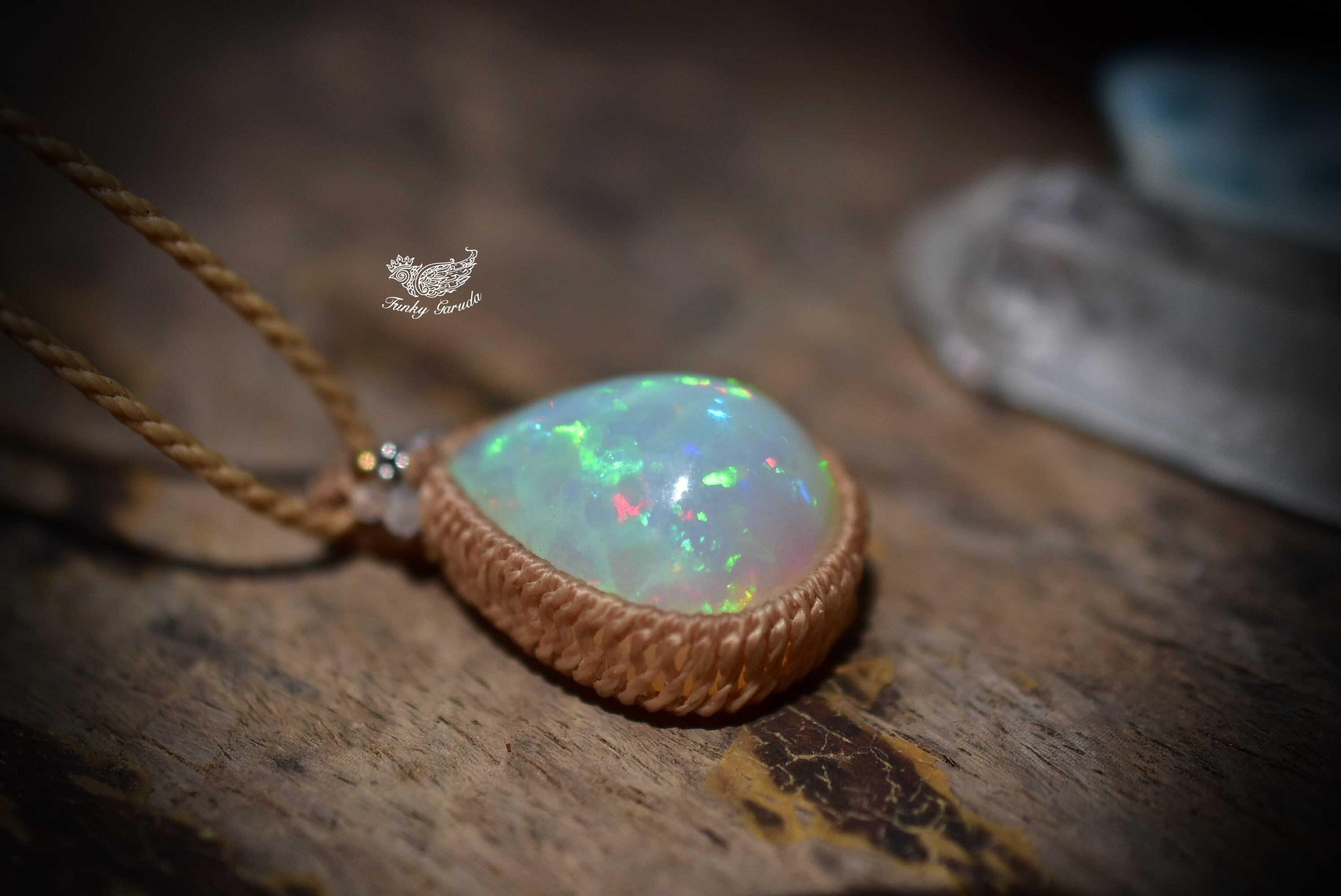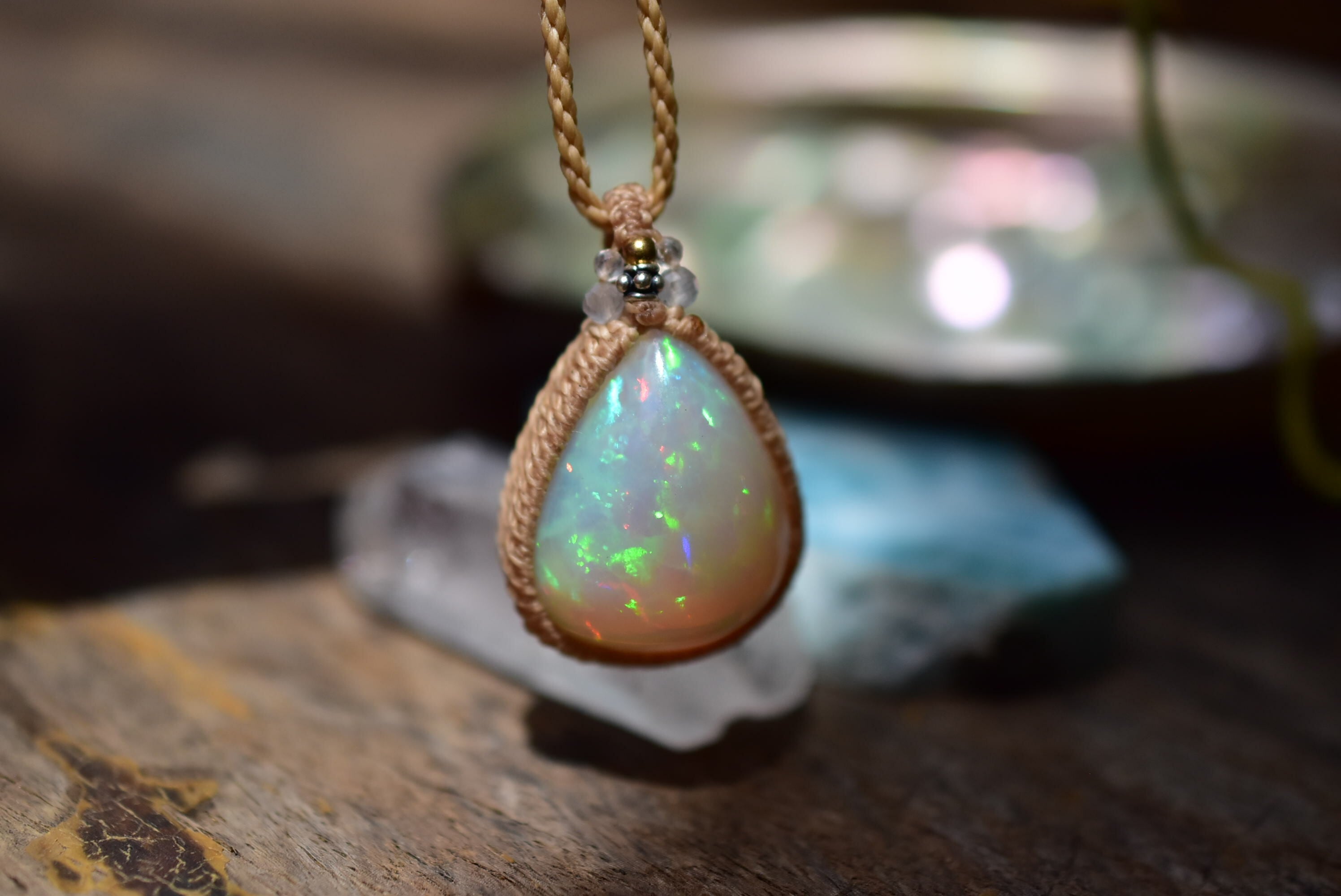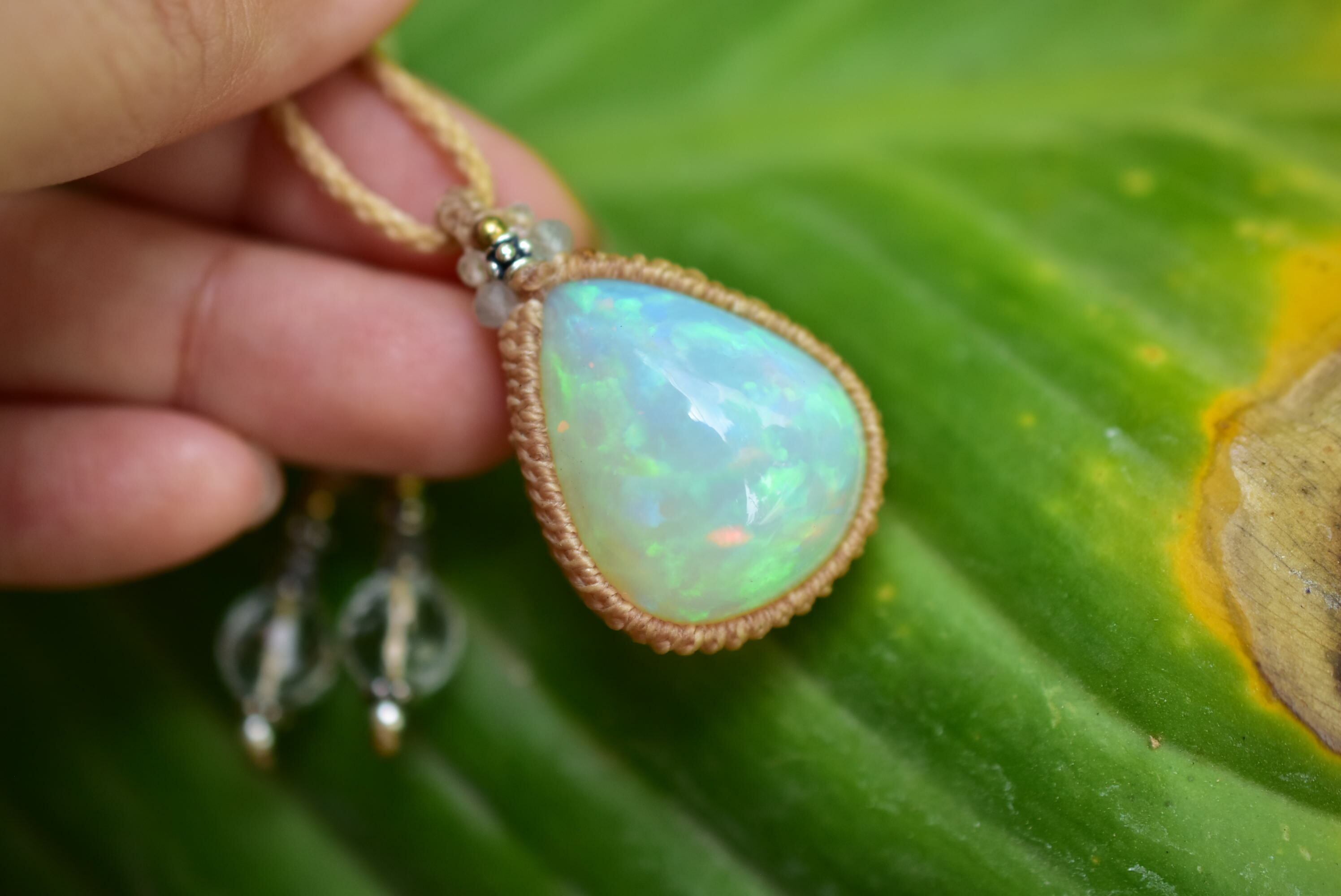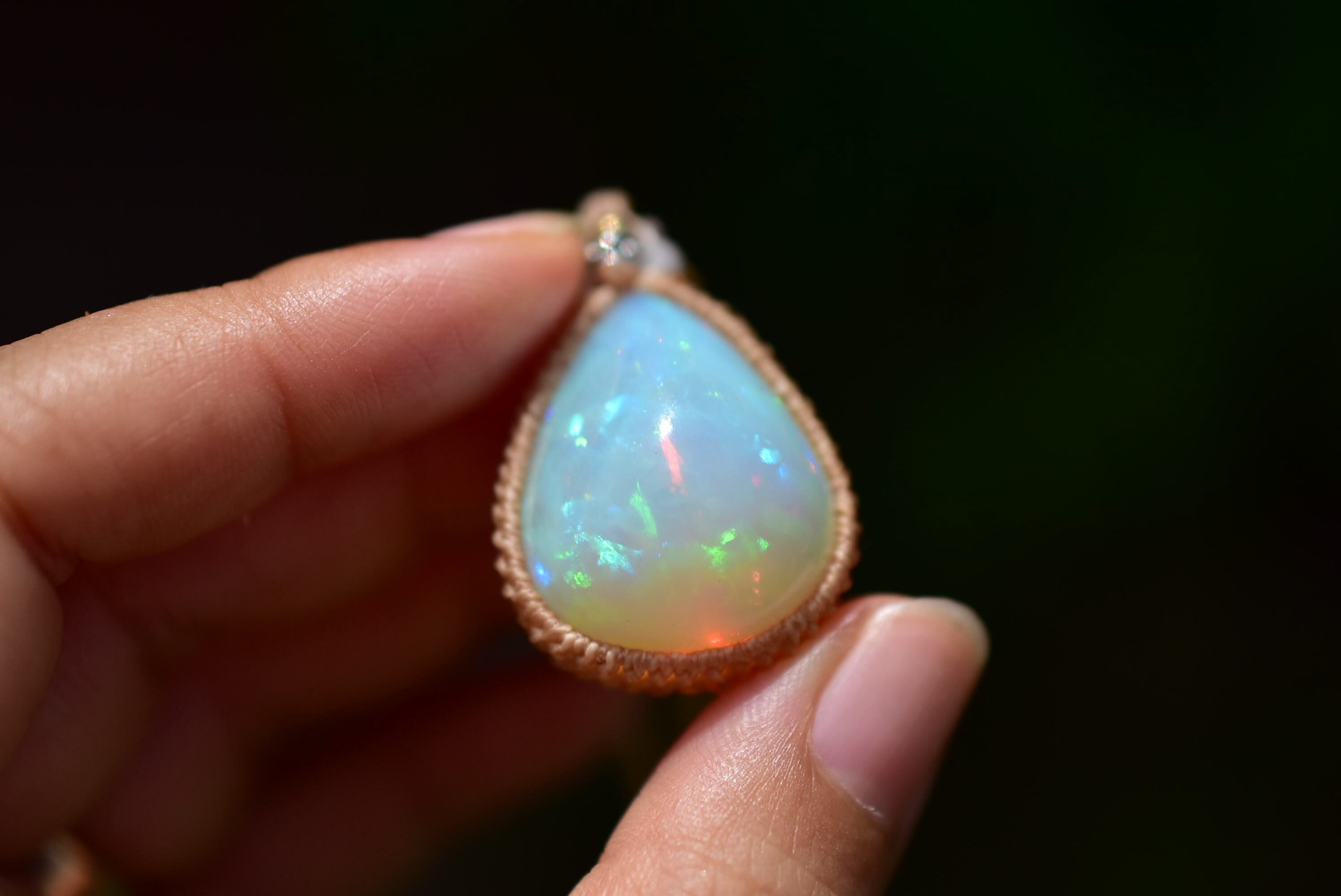 虹の粒★32.5ct★エチオピア産プレシャスオパール マクラメペンダントA311
