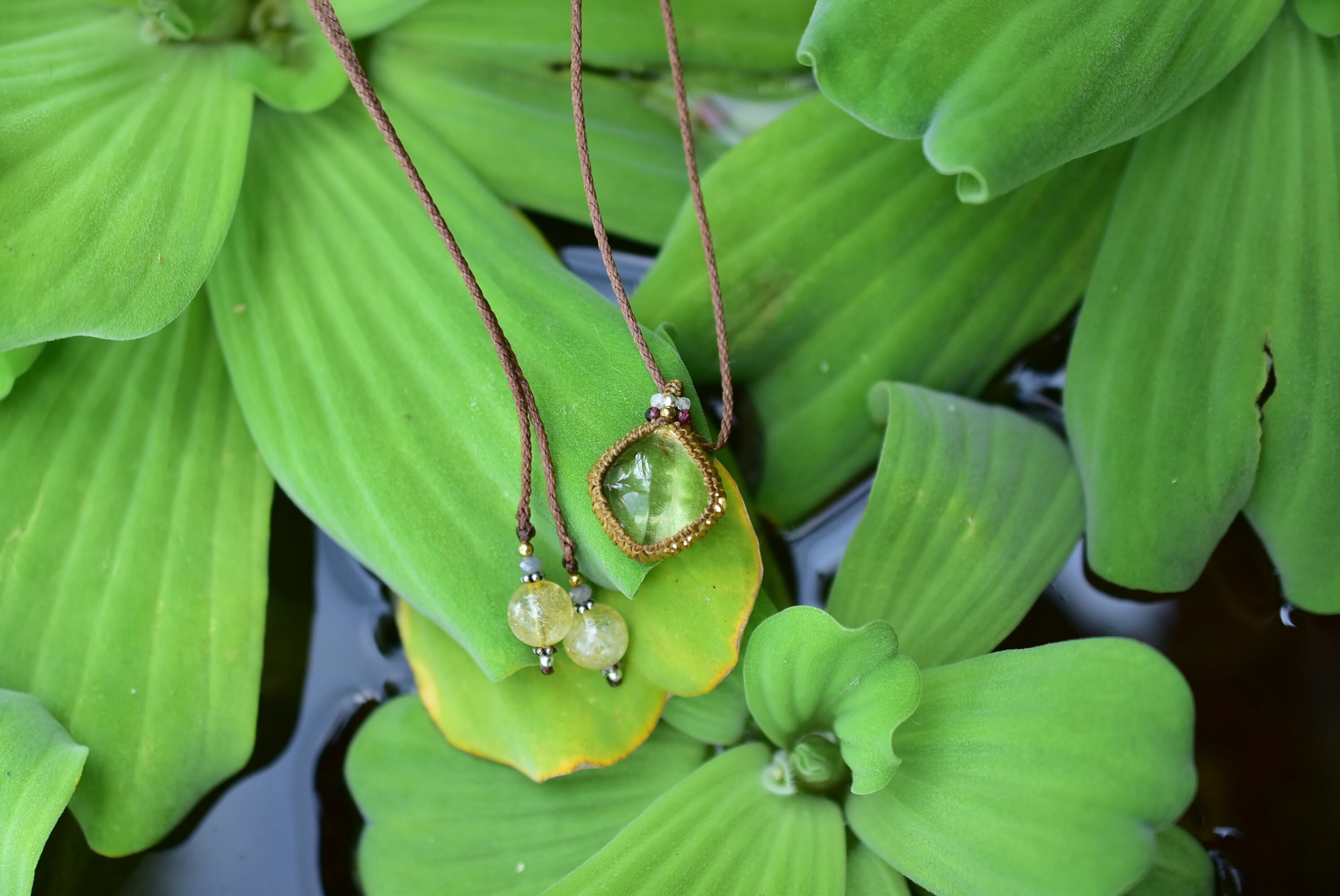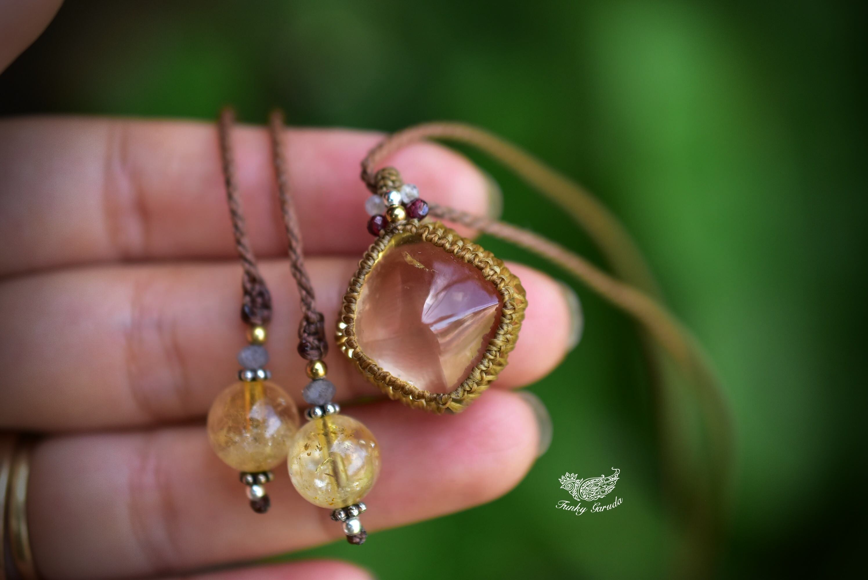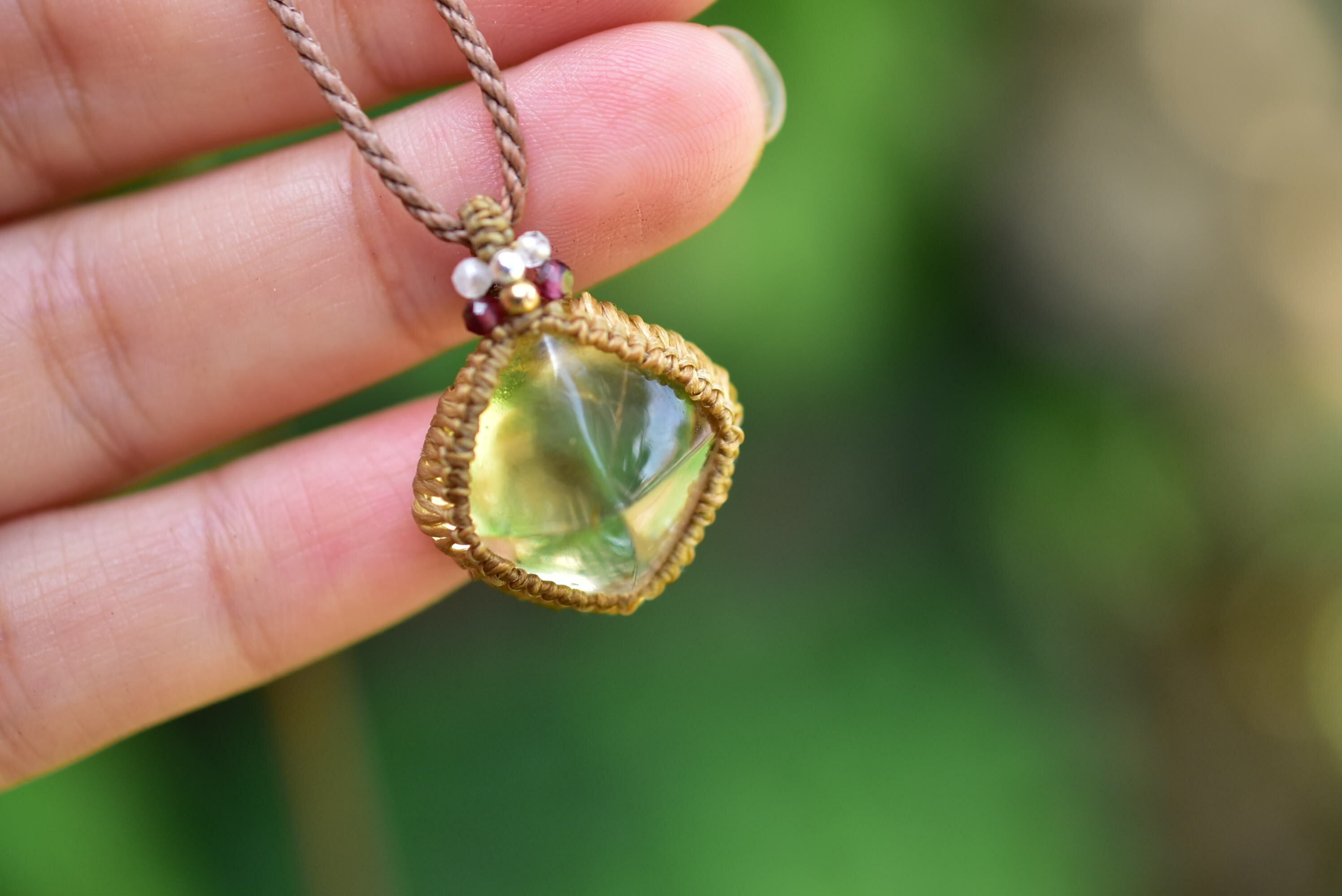 肌馴染みあるマクラメペンダントで黄金カラーの艶やかなシトリンを