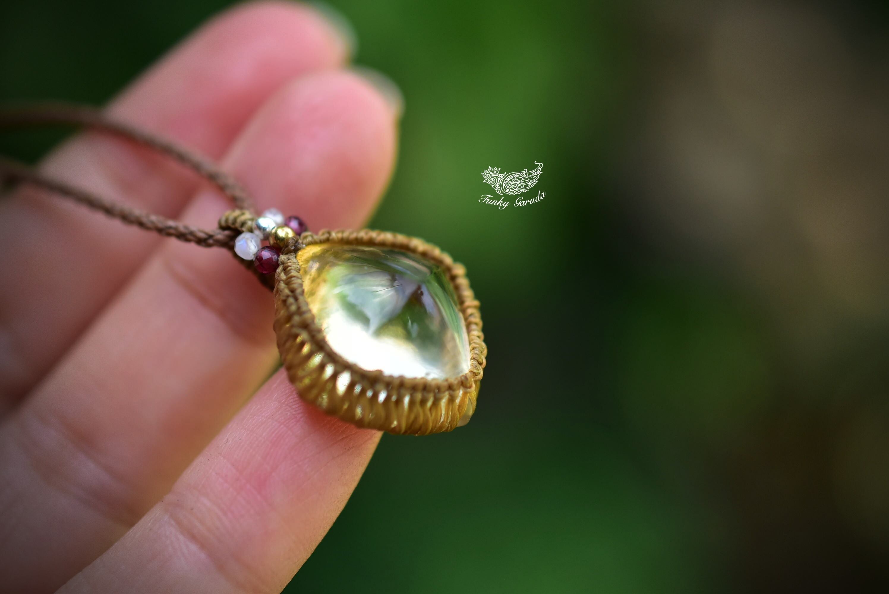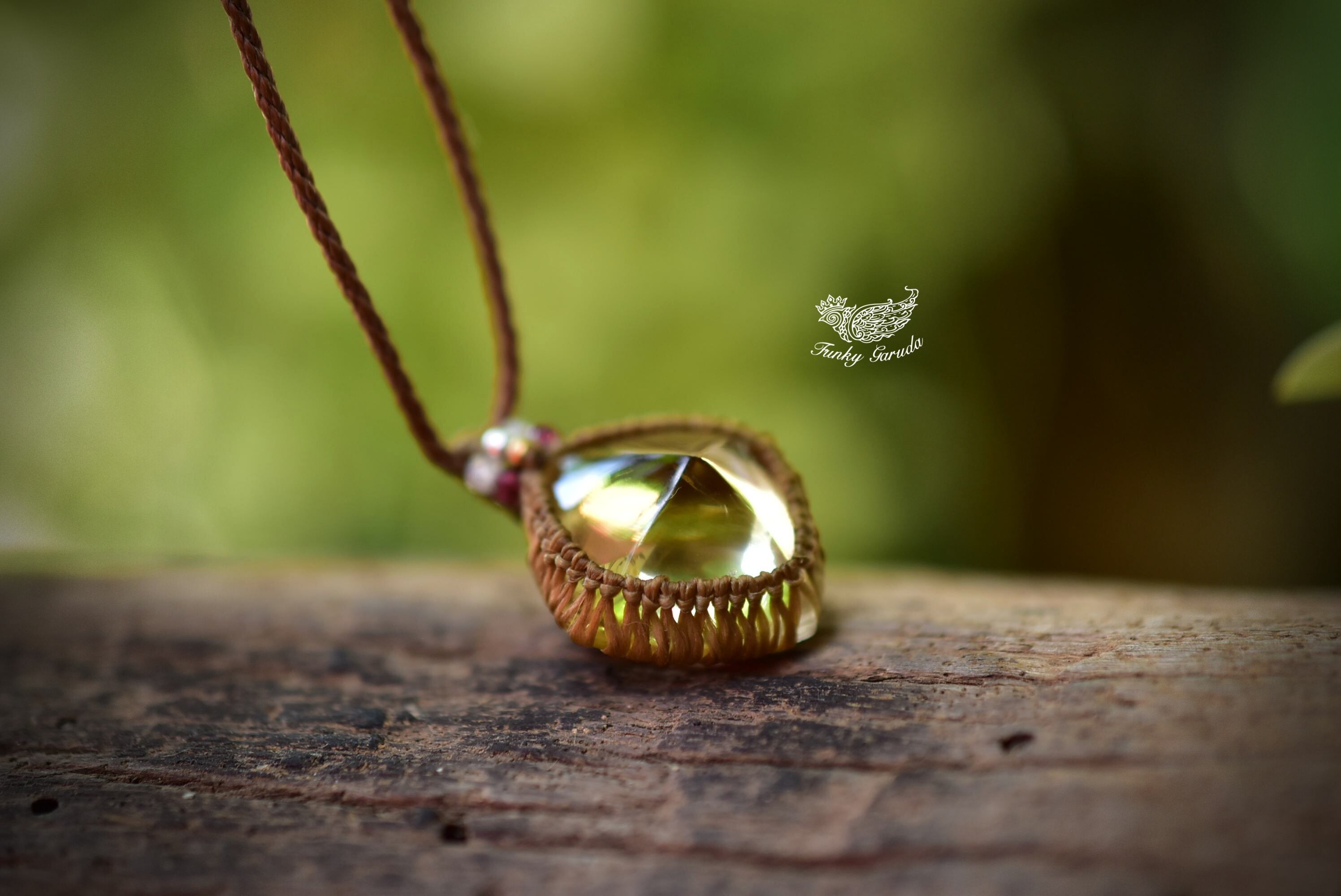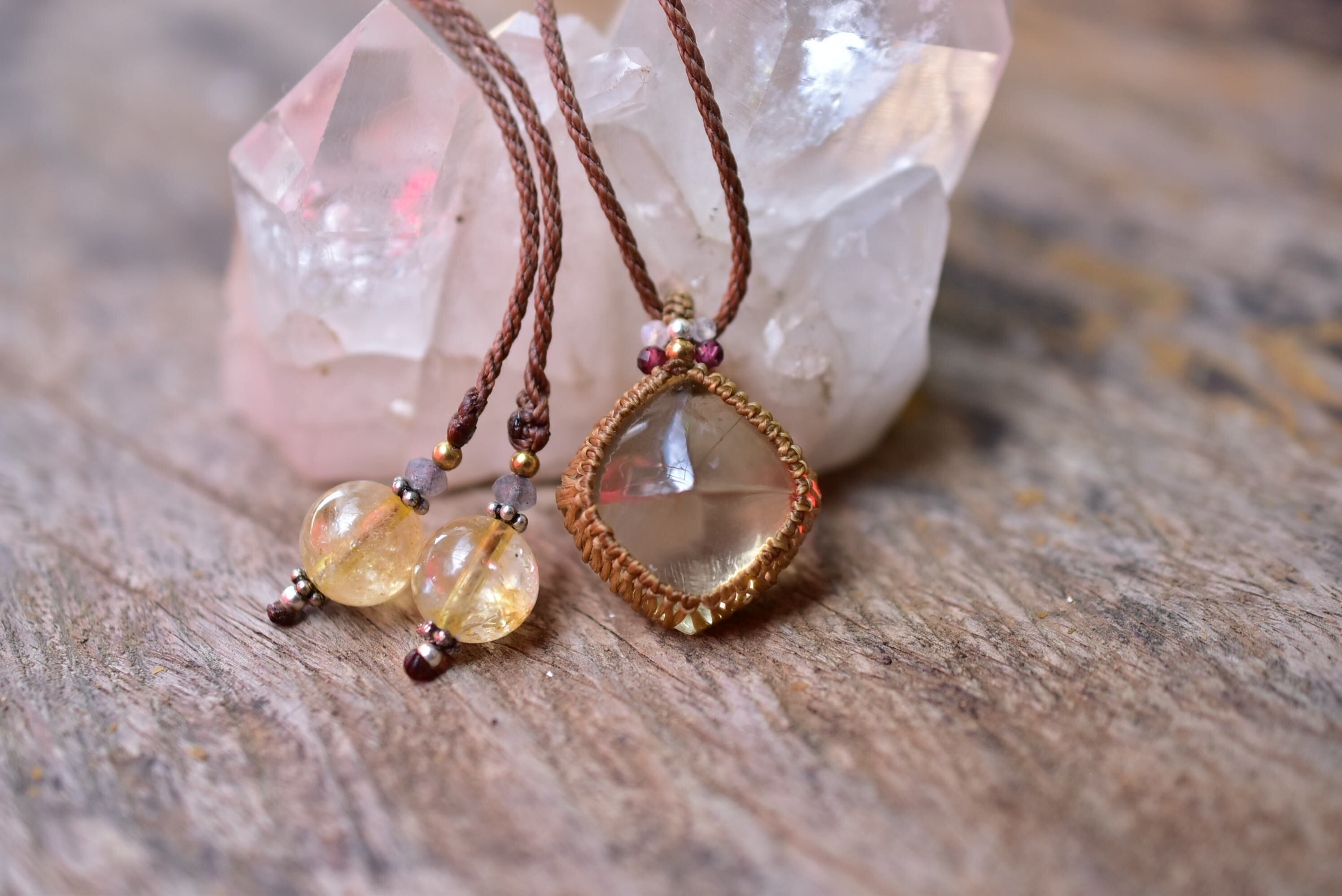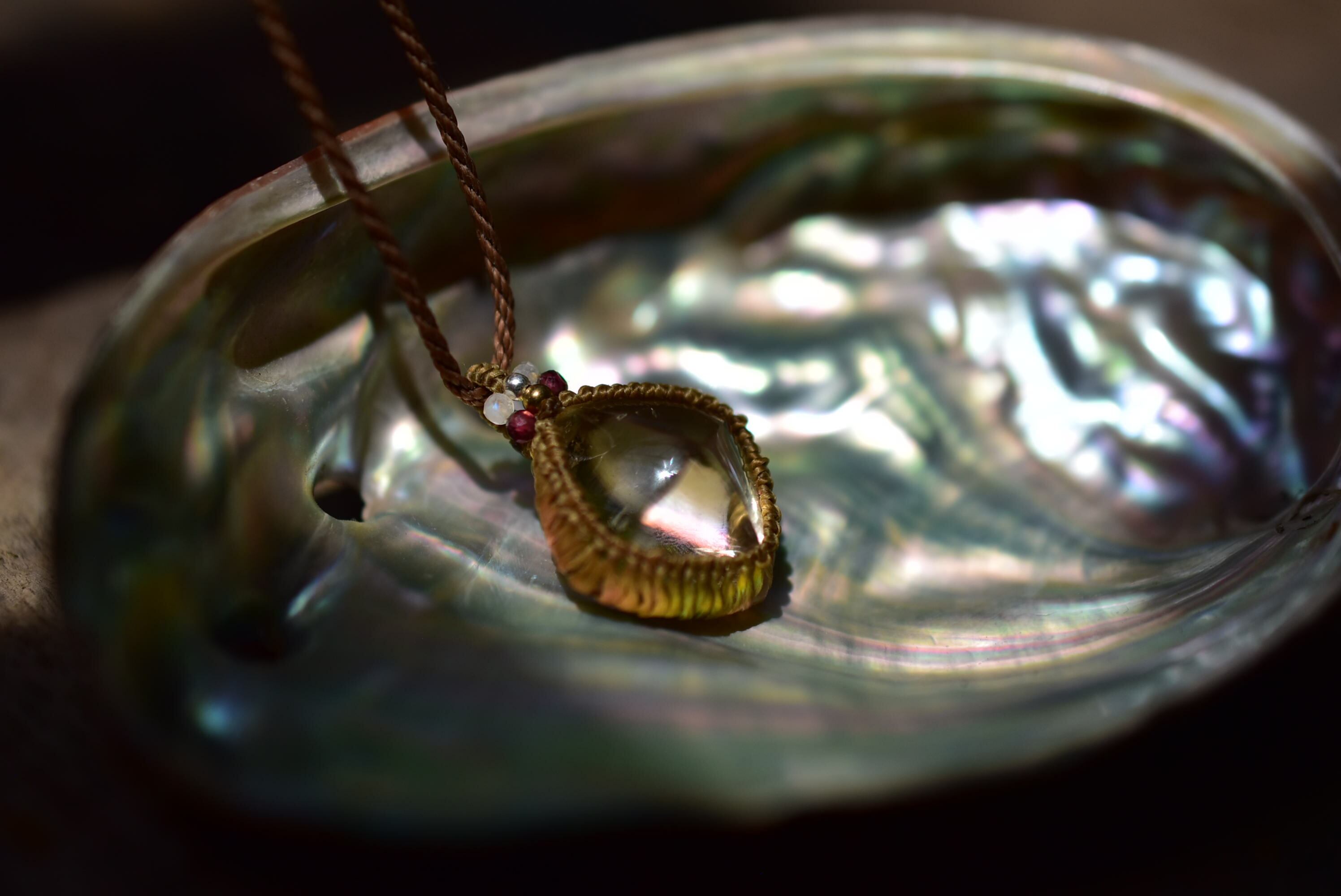 肌馴染みあるマクラメペンダントで黄金カラーの艶やかなシトリンを