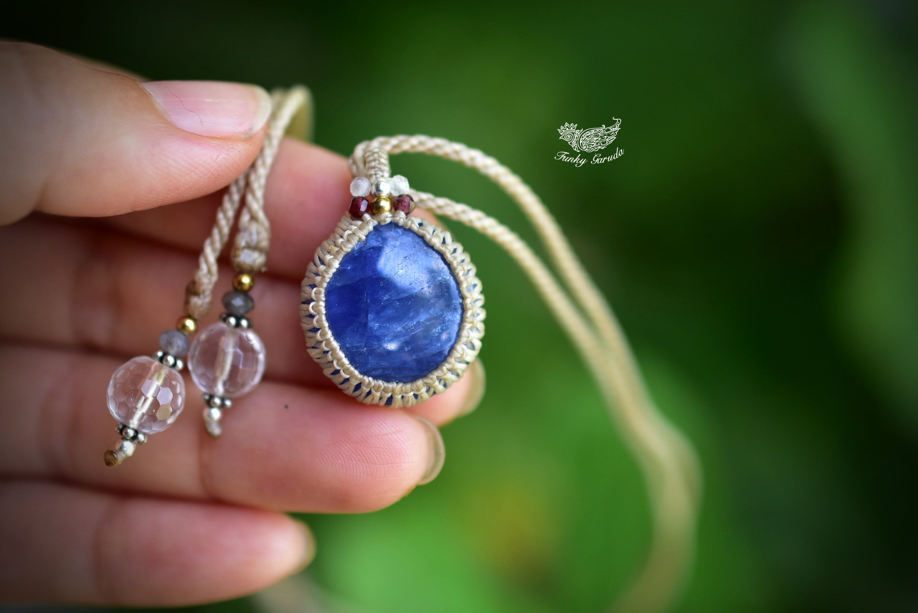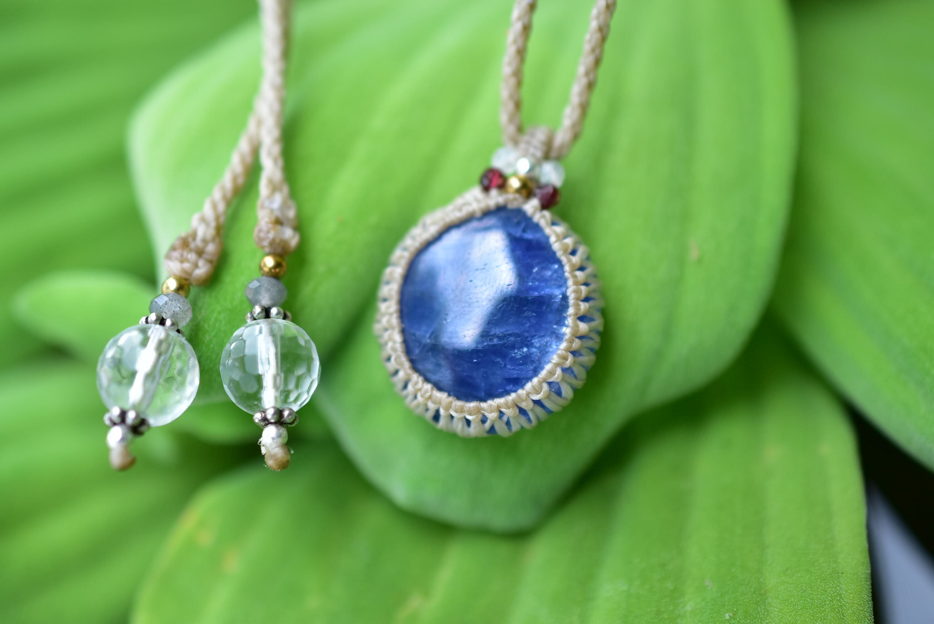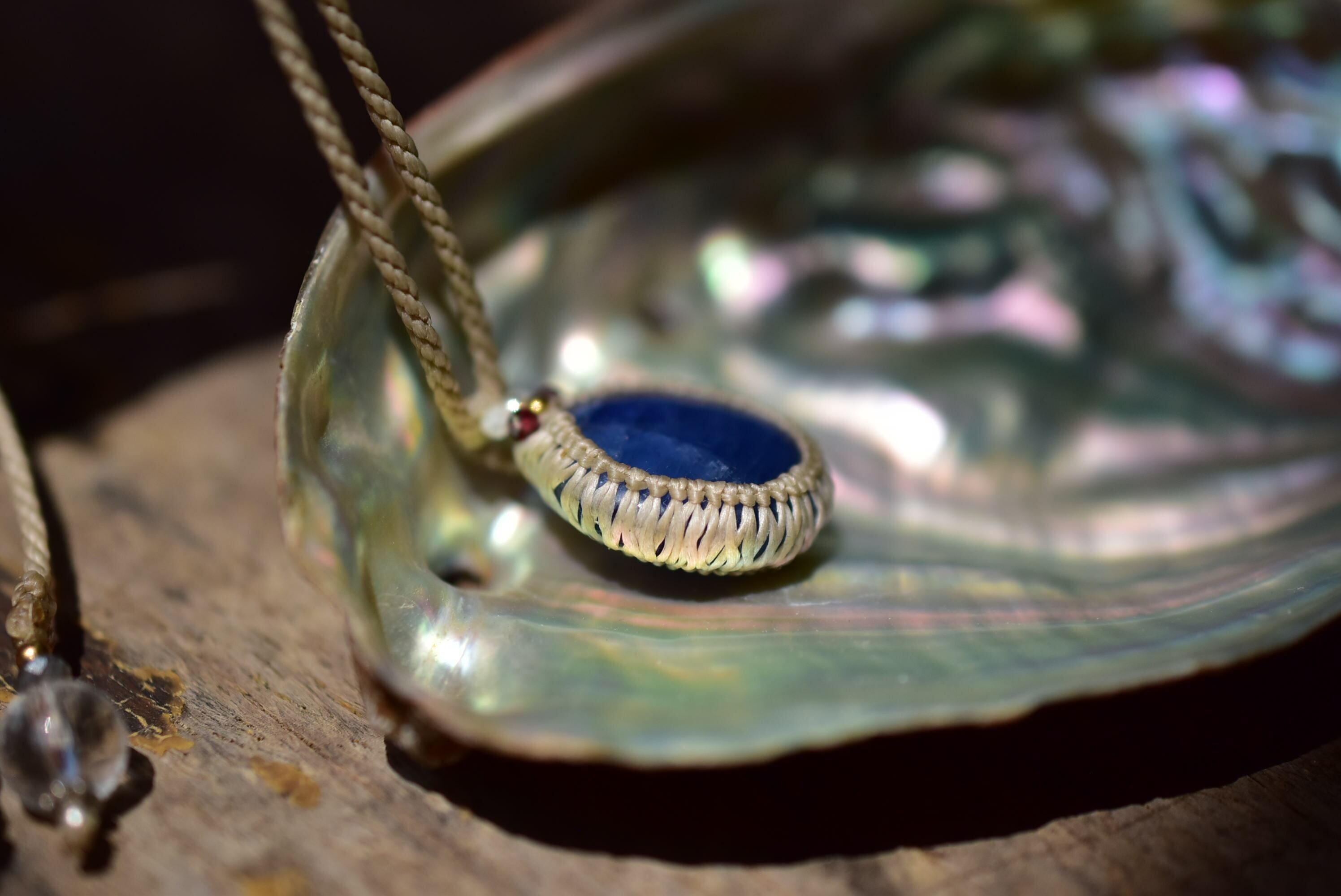 小さく丁寧にマクラメ編みペンダントに仕上げました。