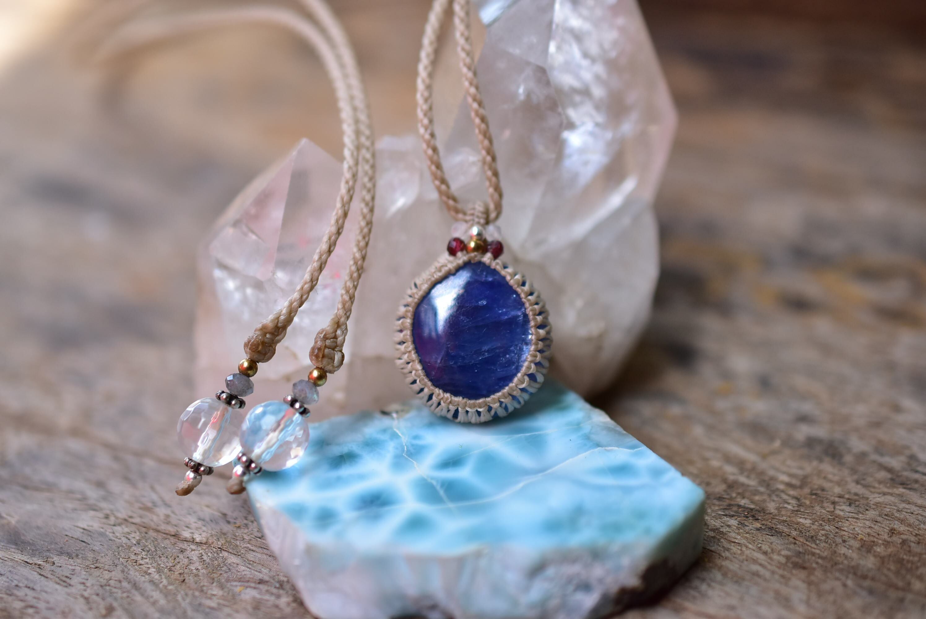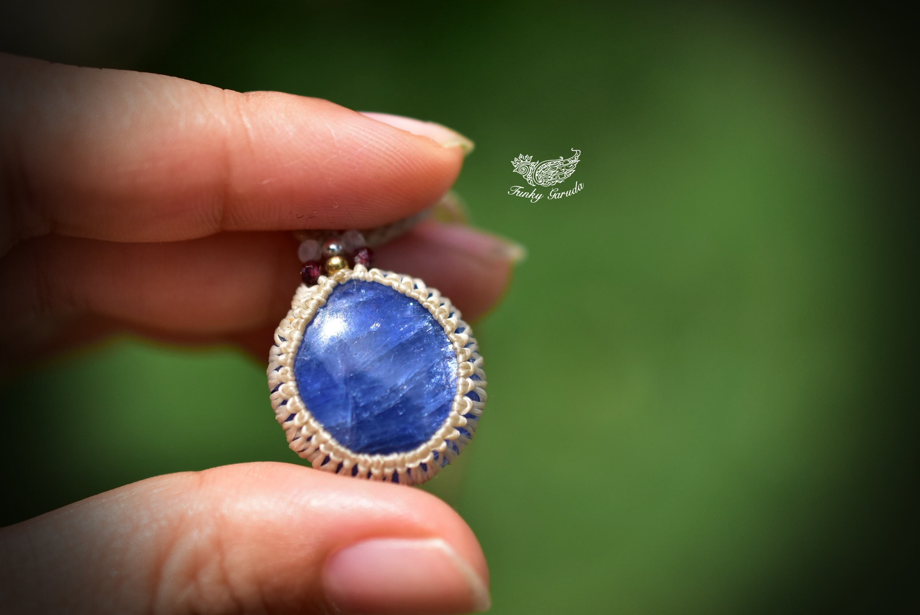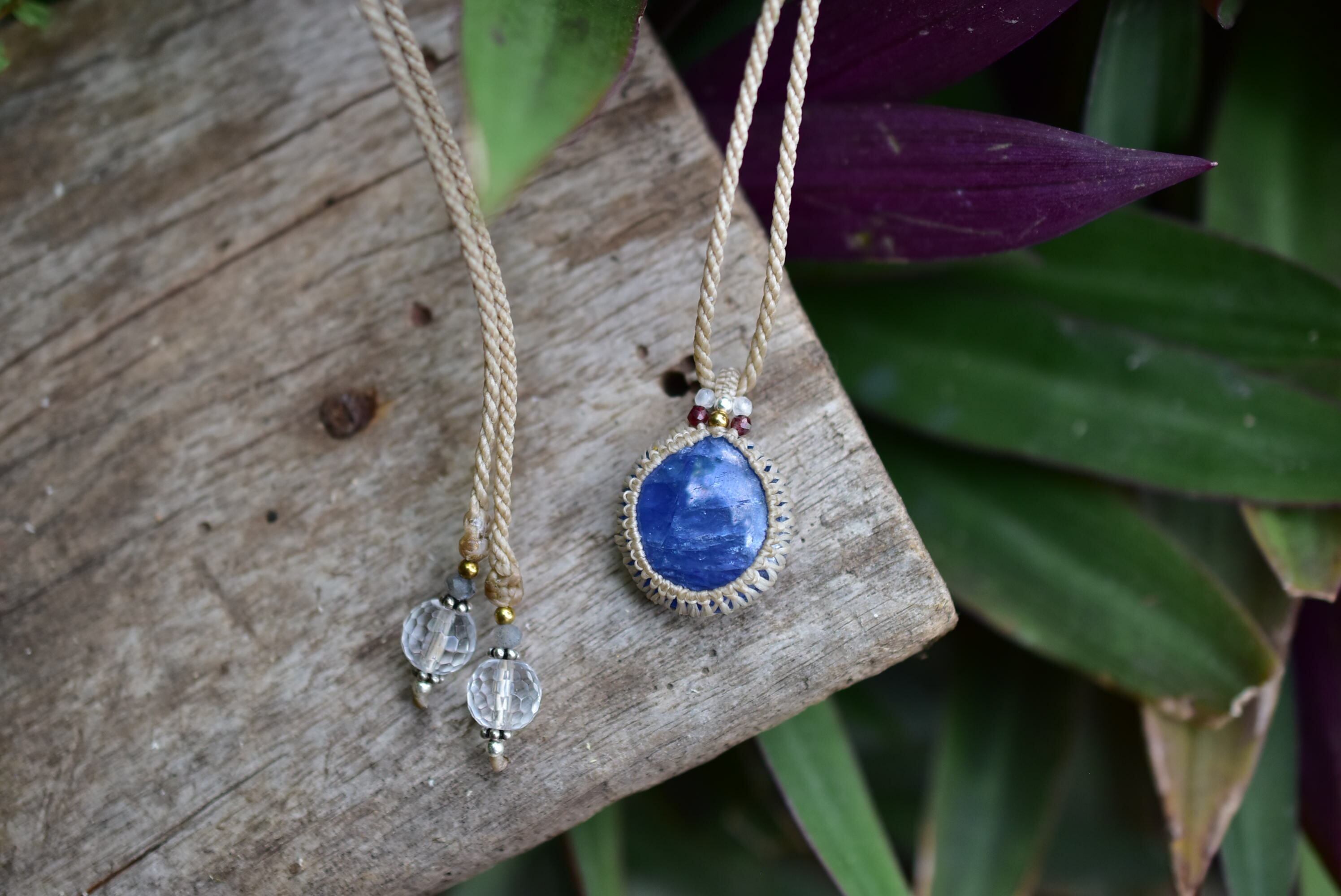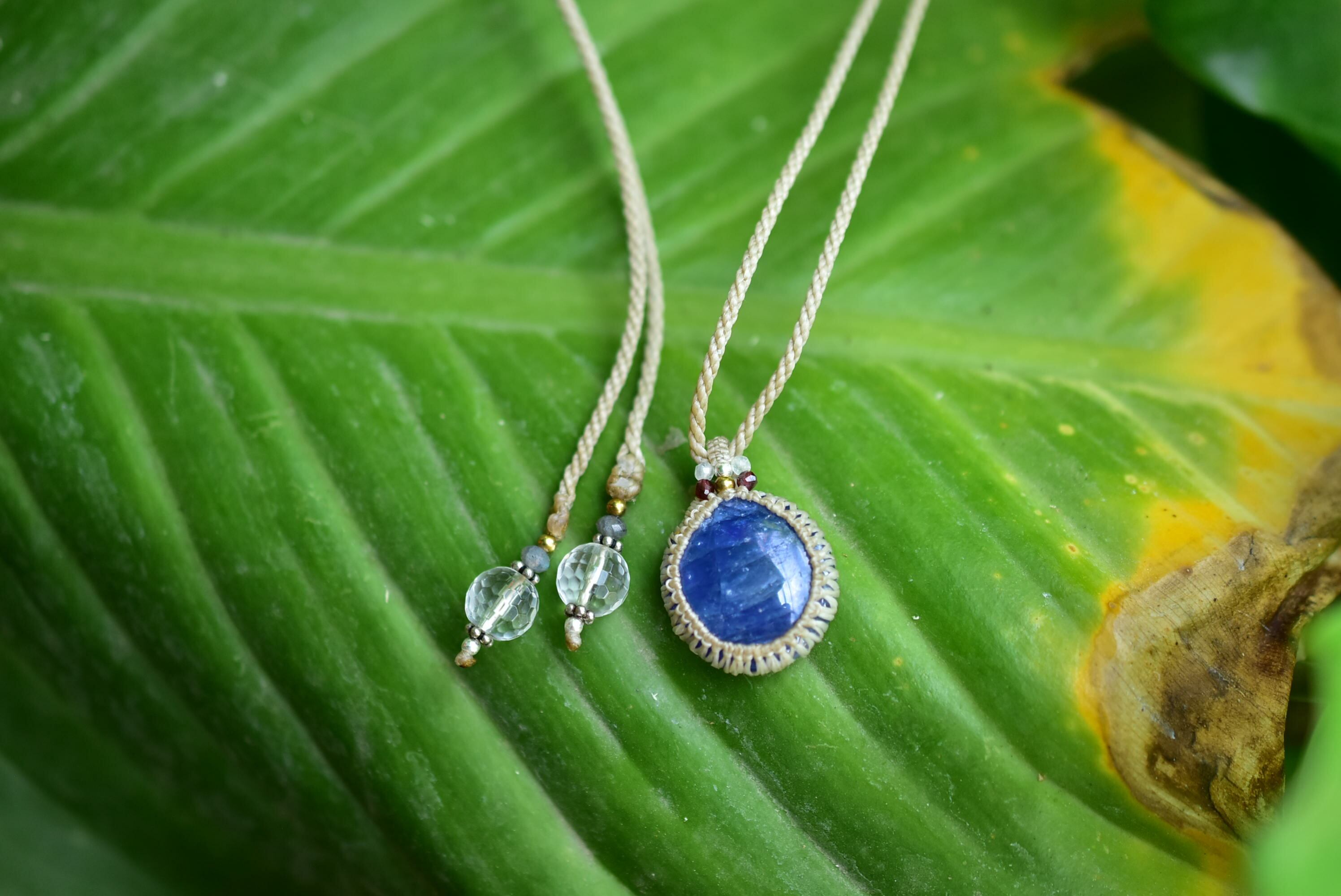 小さく丁寧にマクラメ編みペンダントに仕上げました。