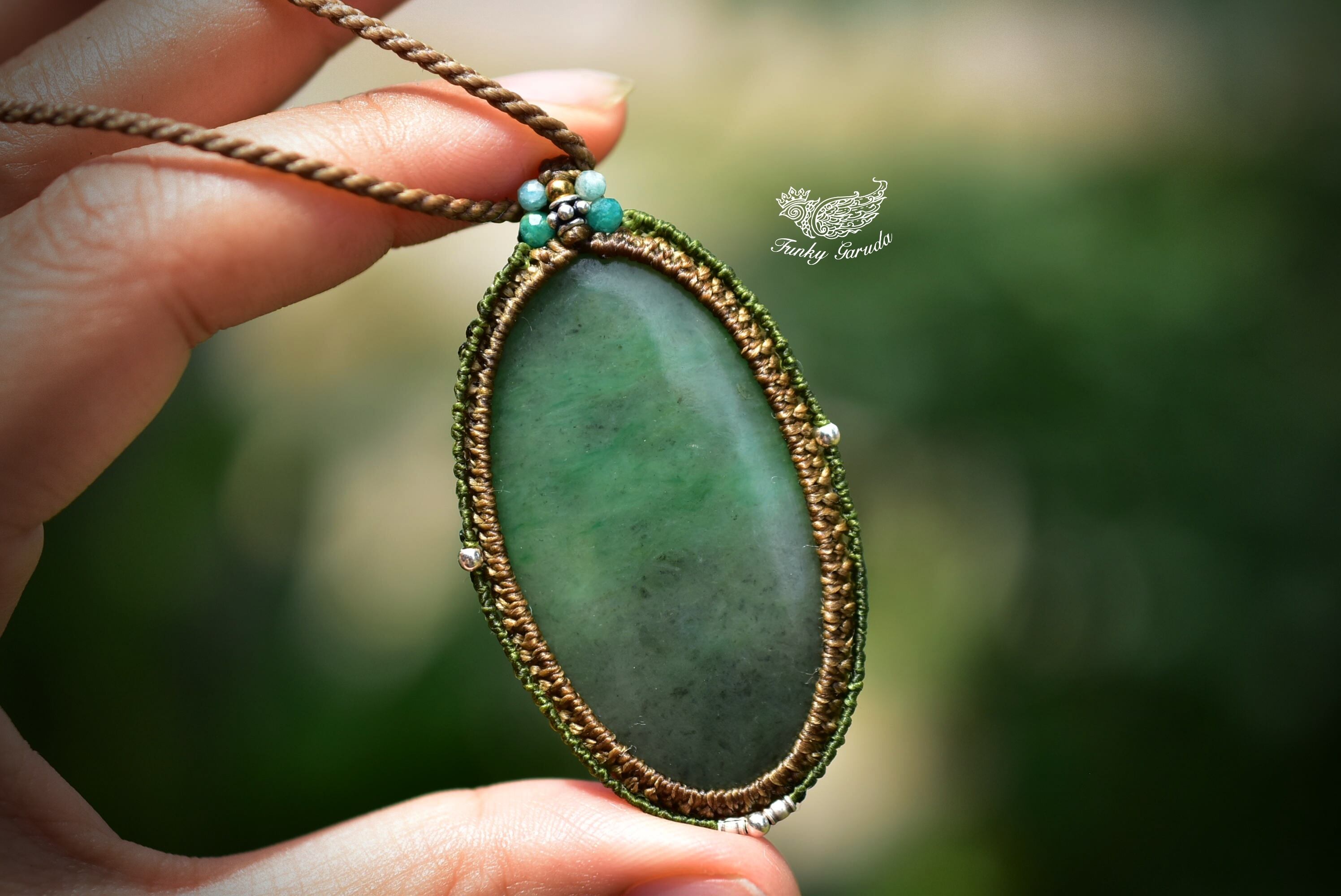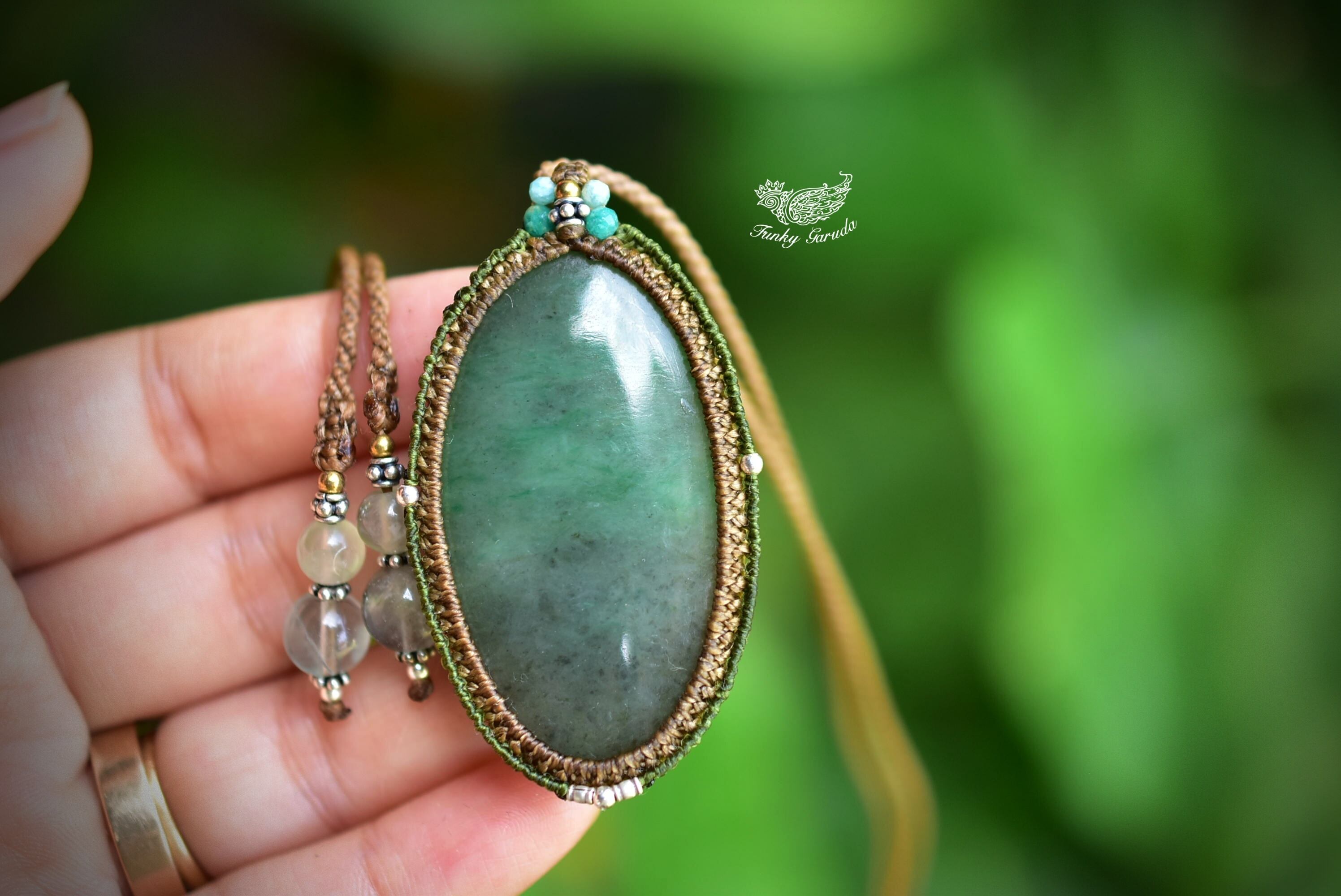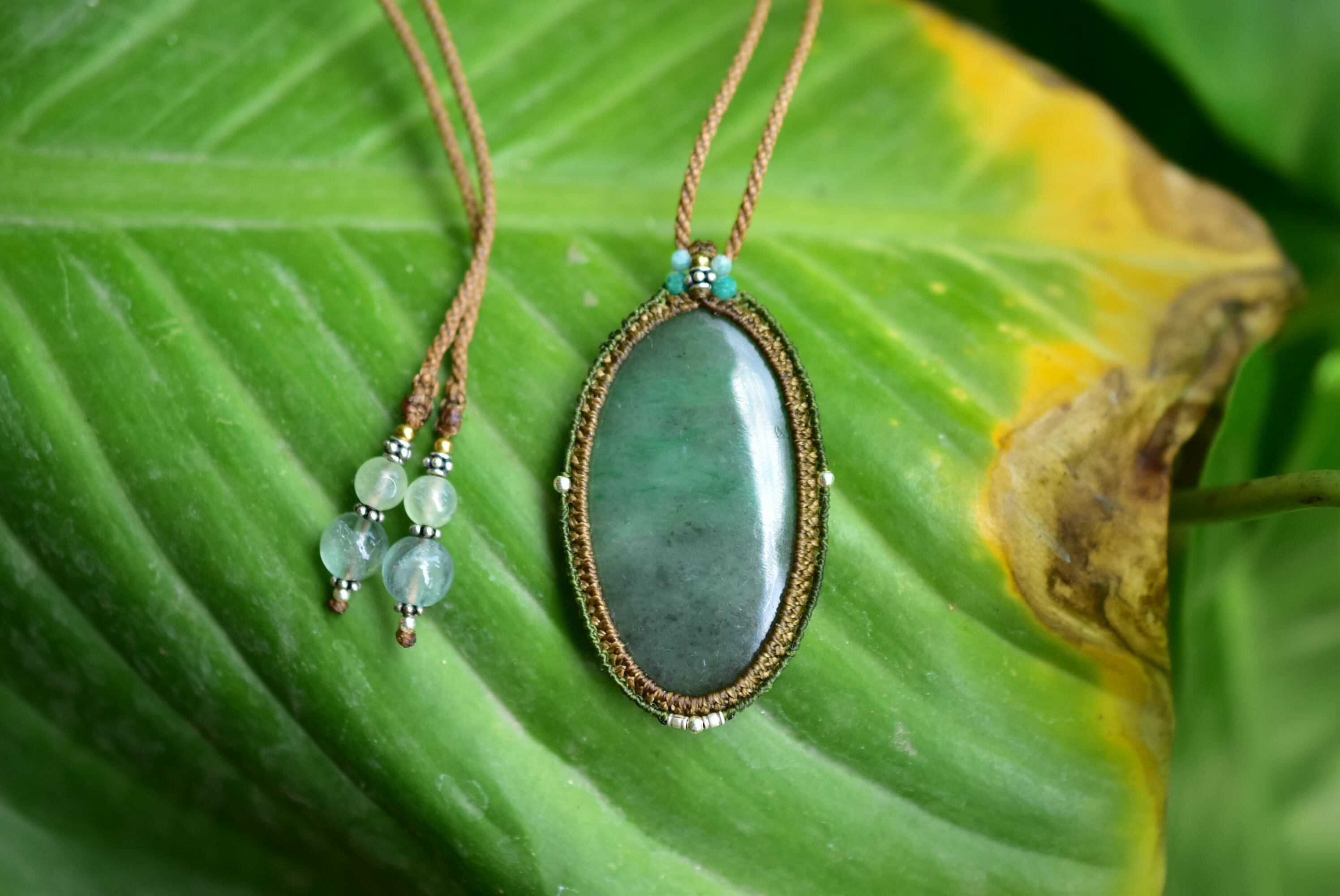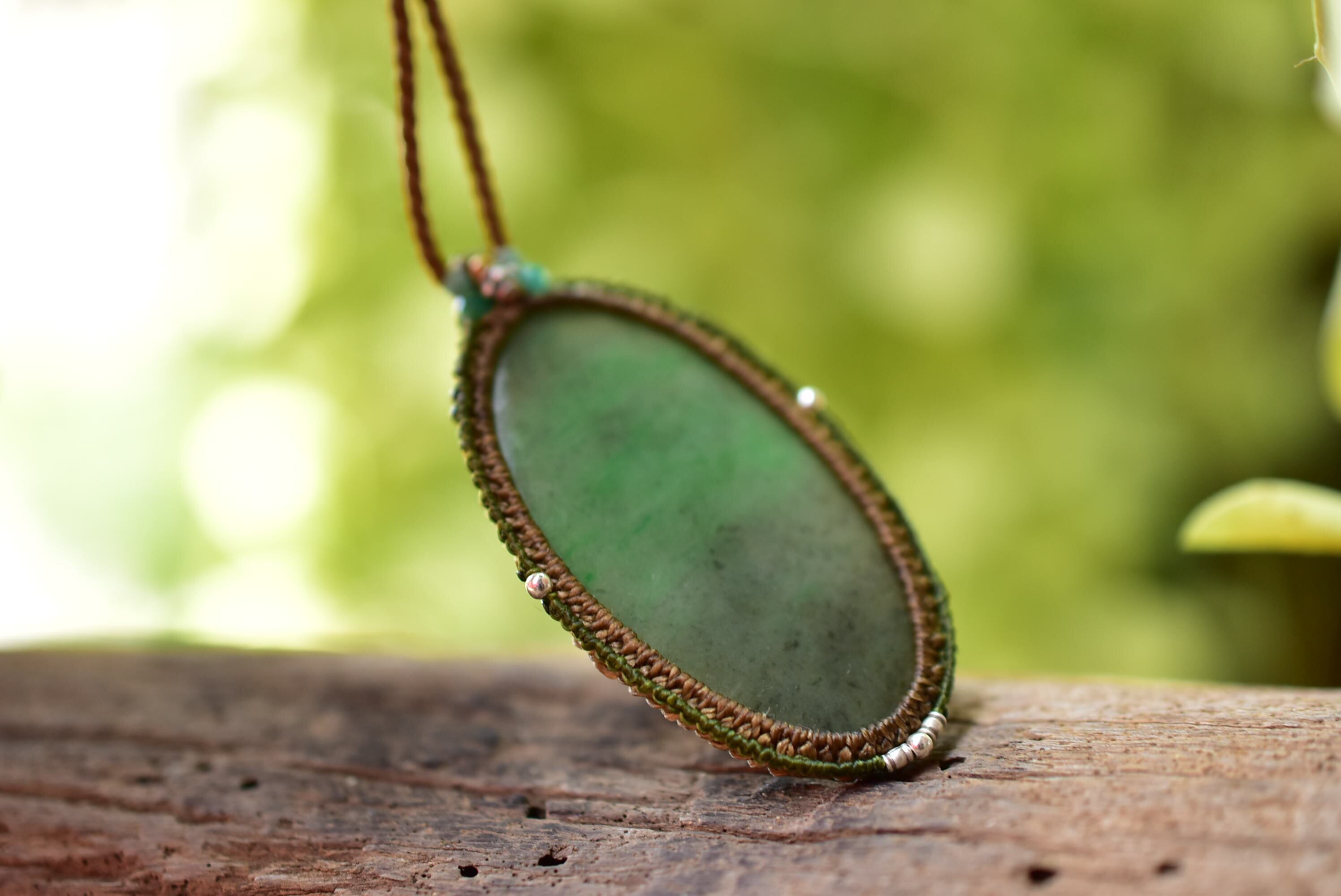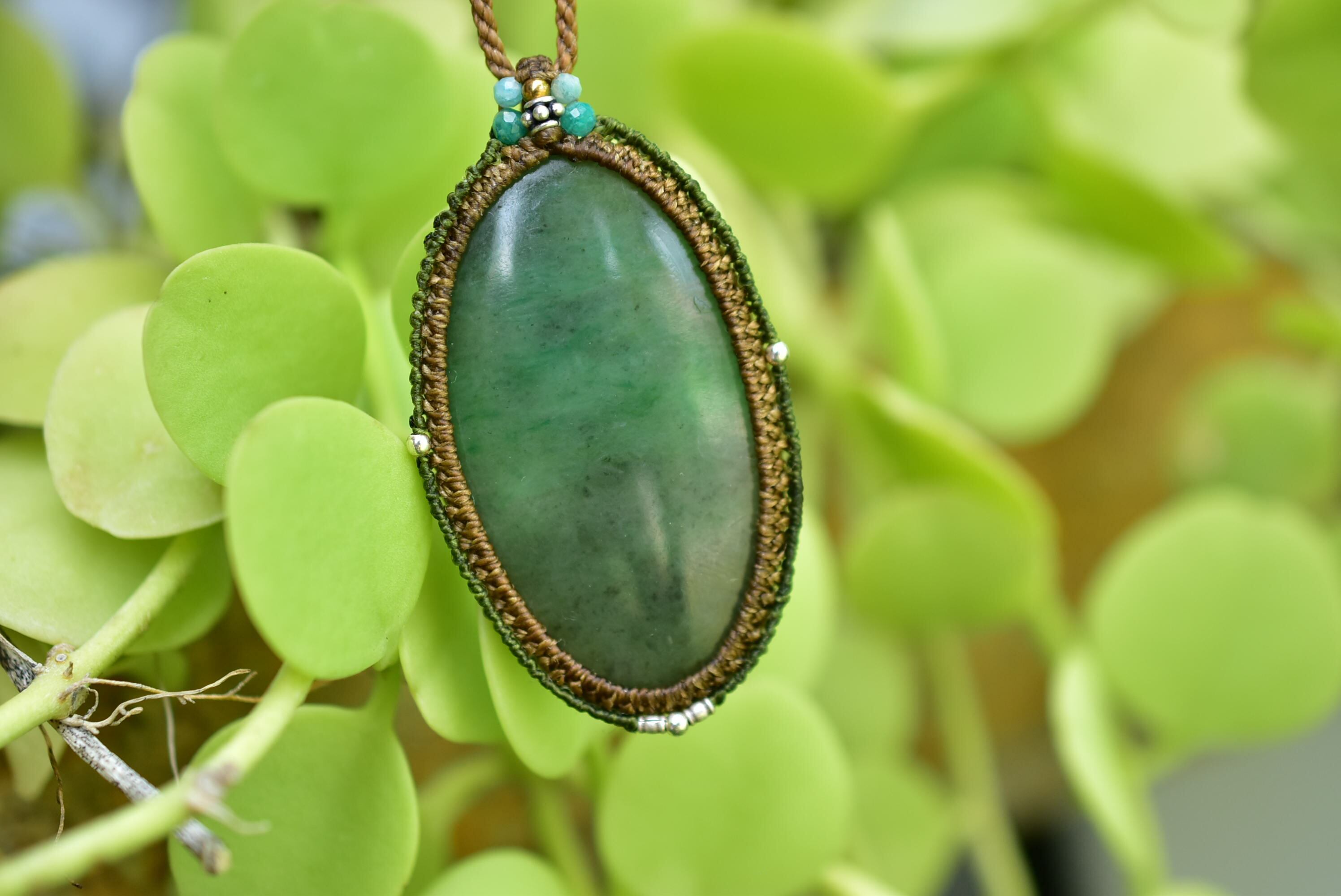 鮮やかな自然グリーン★ミャンマー翡翠 マクラメペンダント321