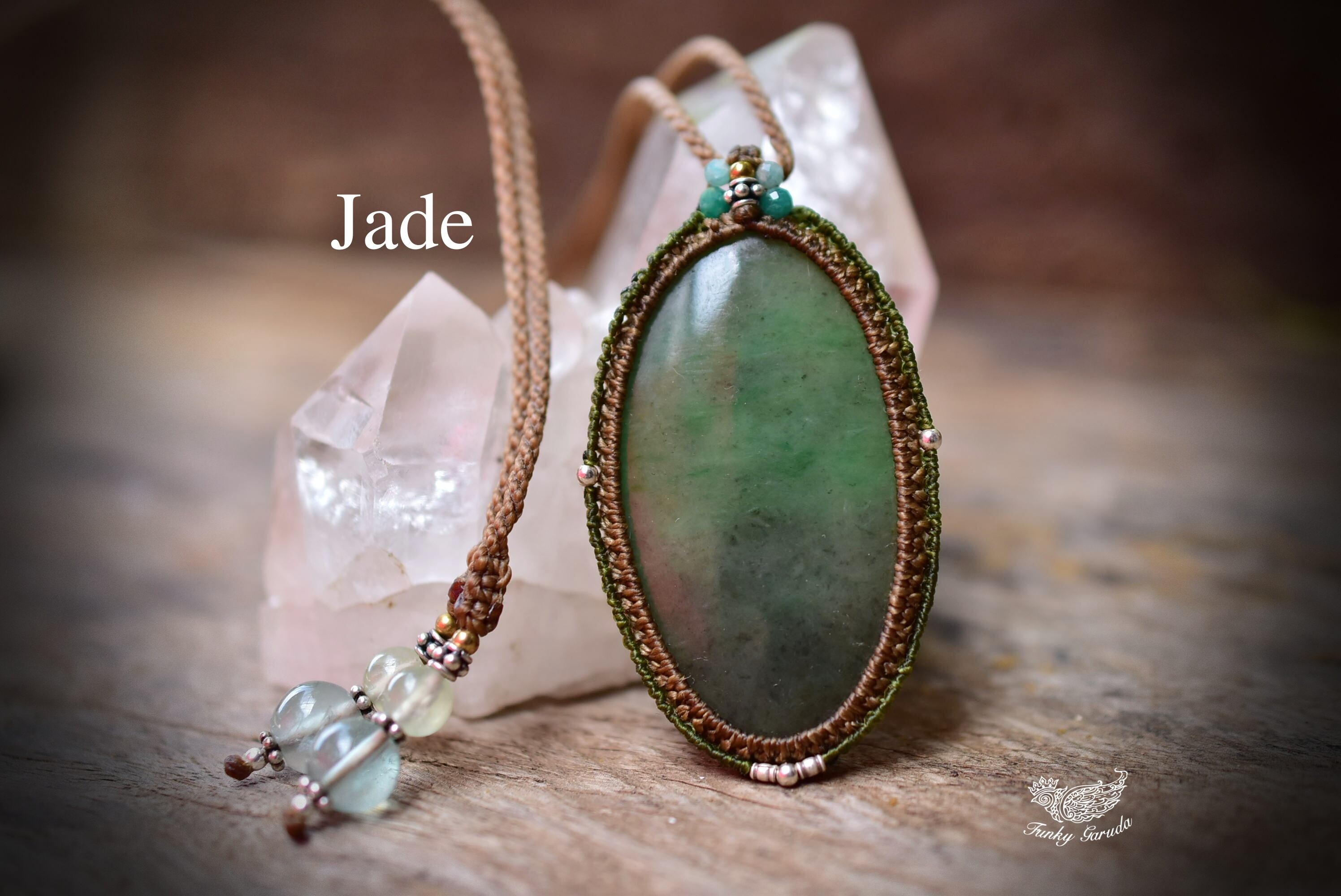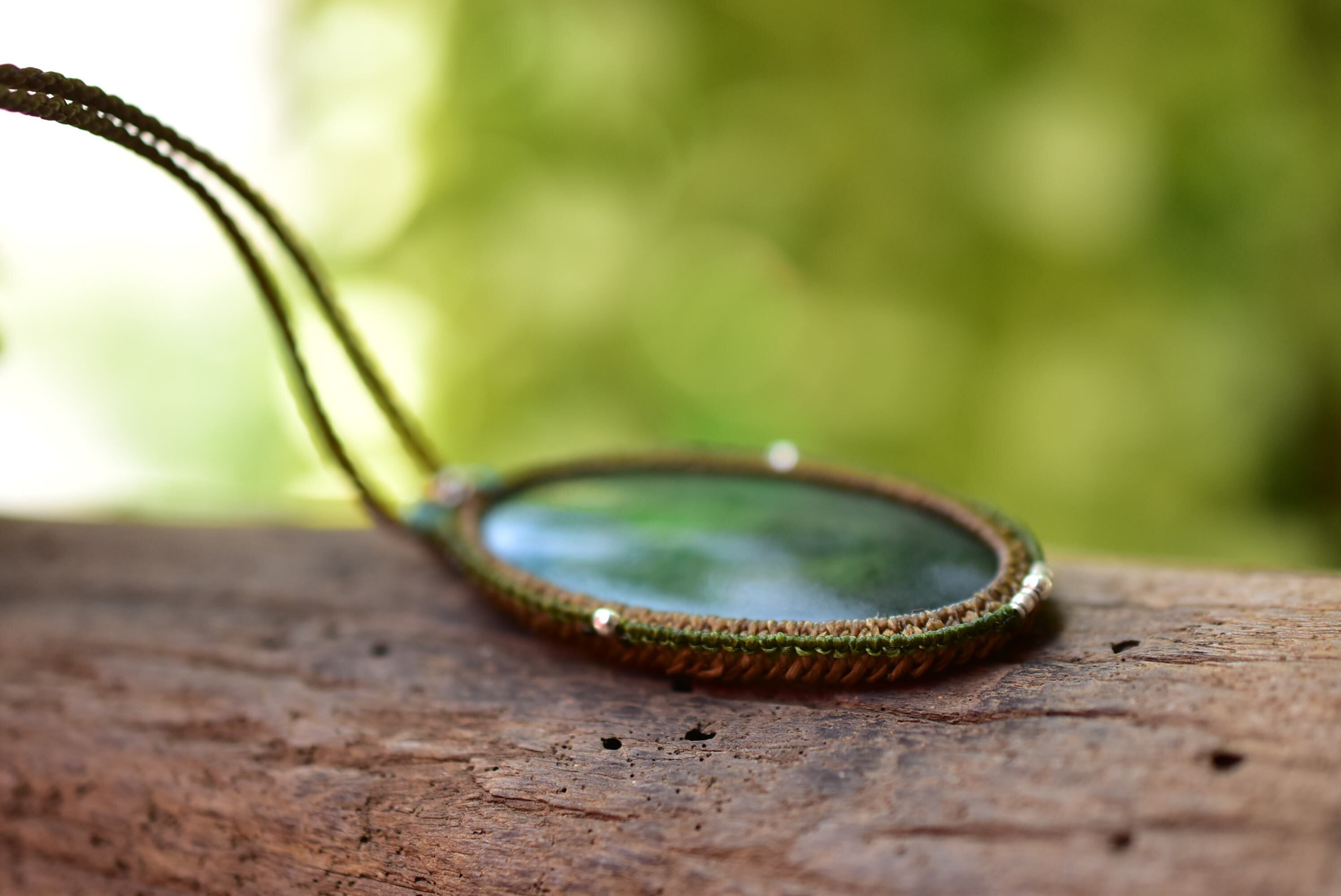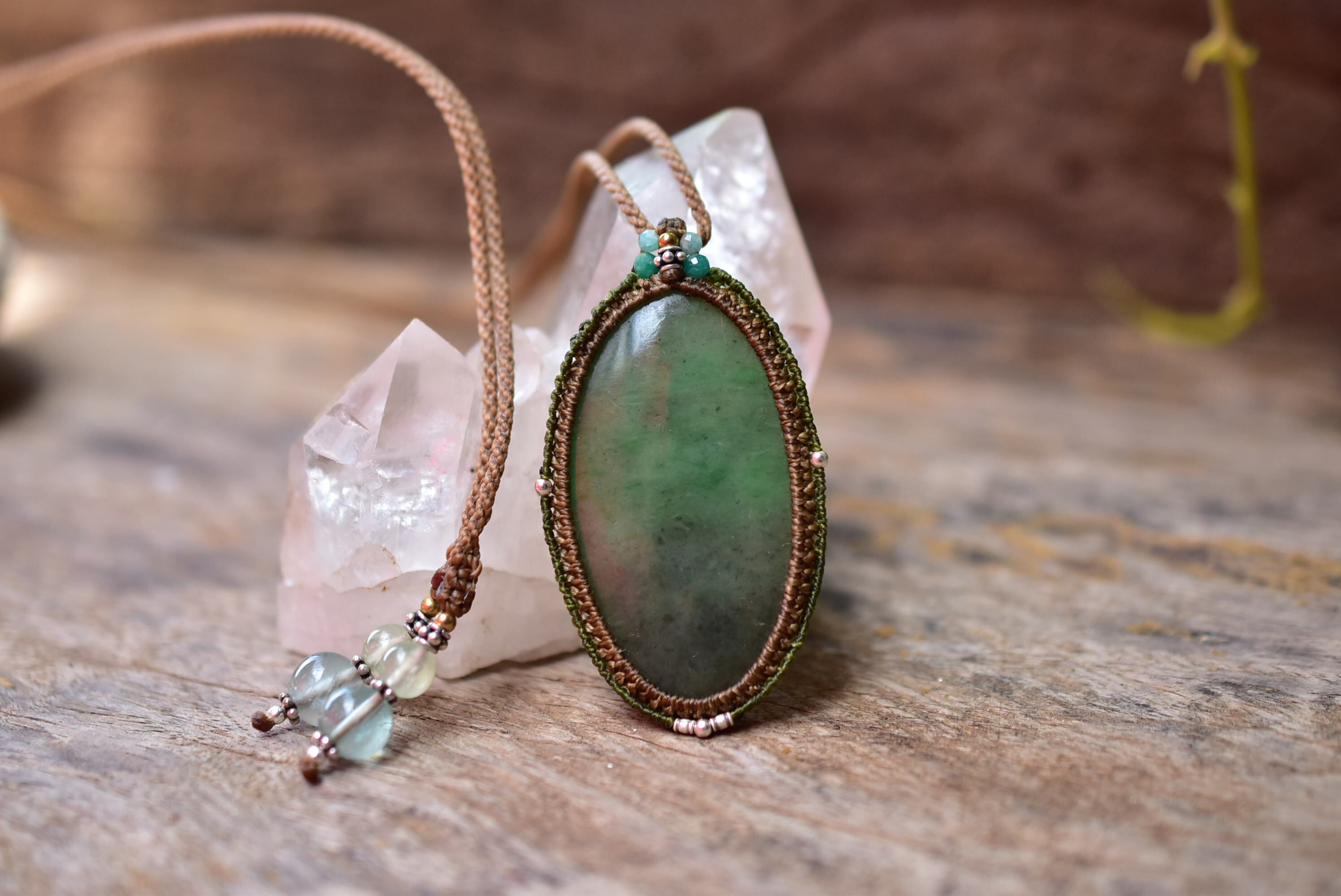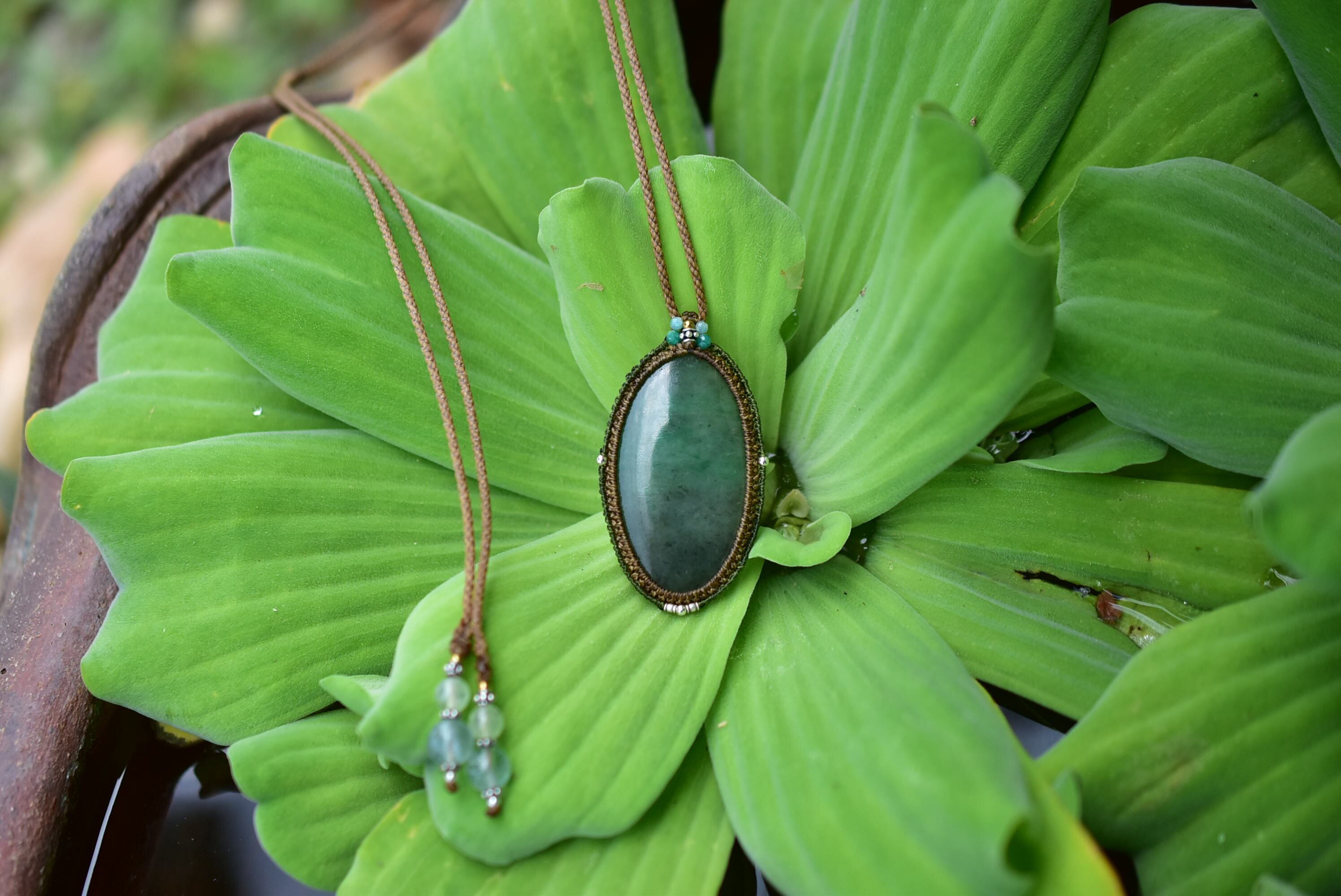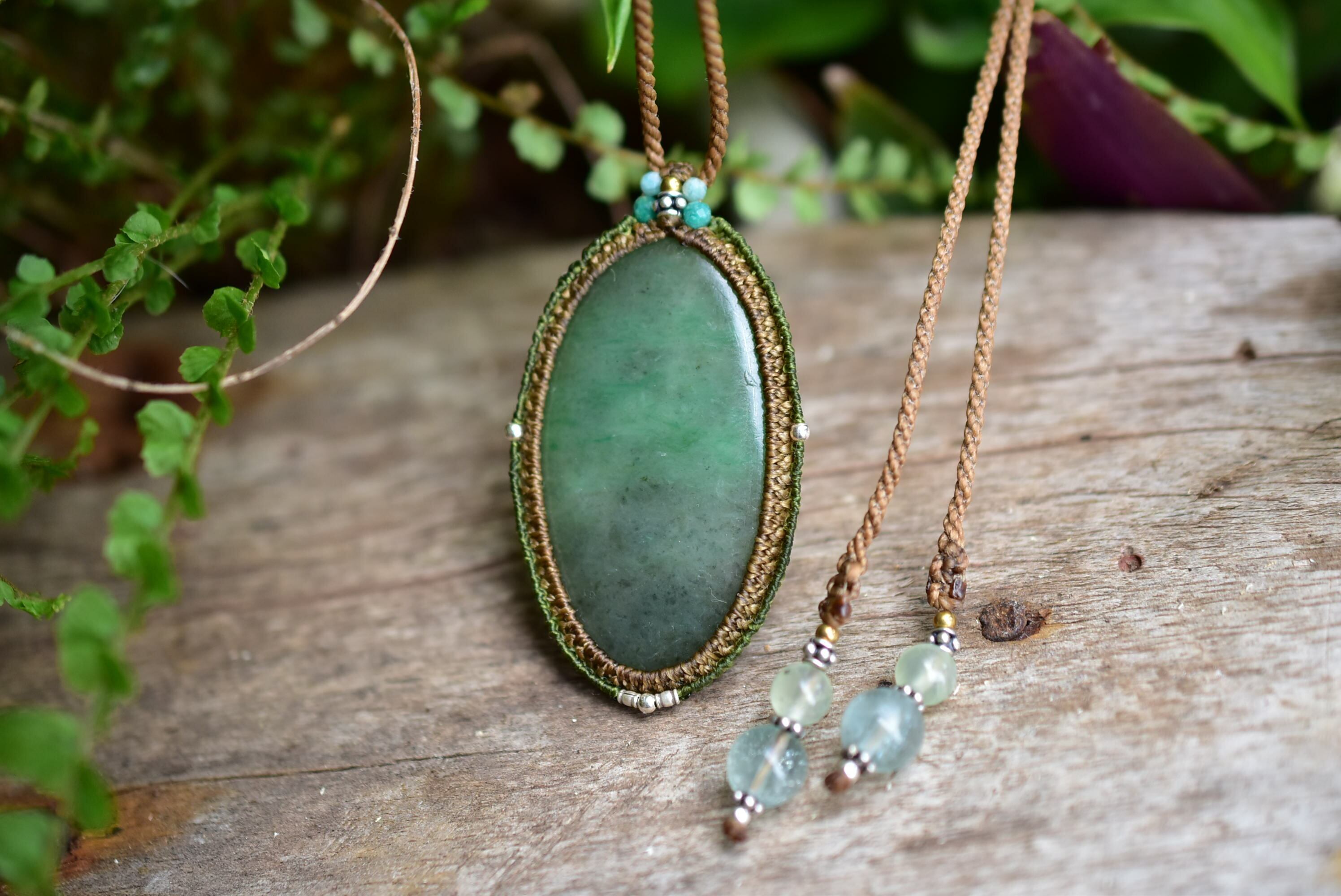 鮮やかな自然グリーン★ミャンマー翡翠 マクラメペンダント321