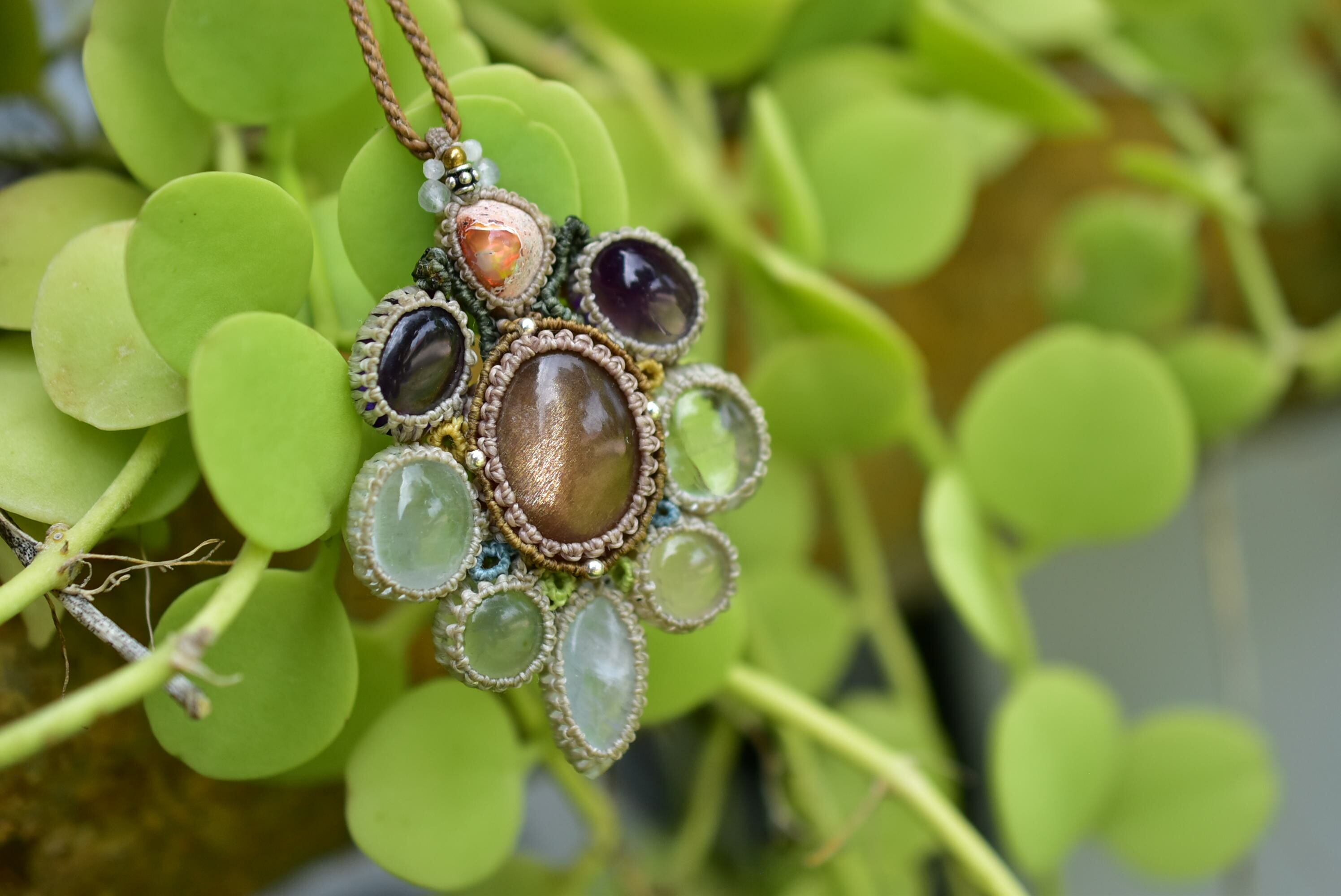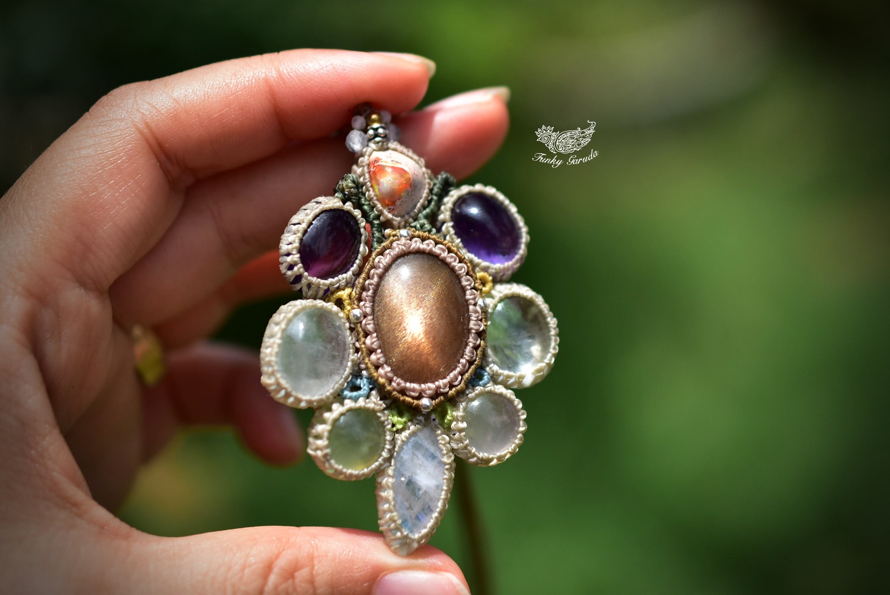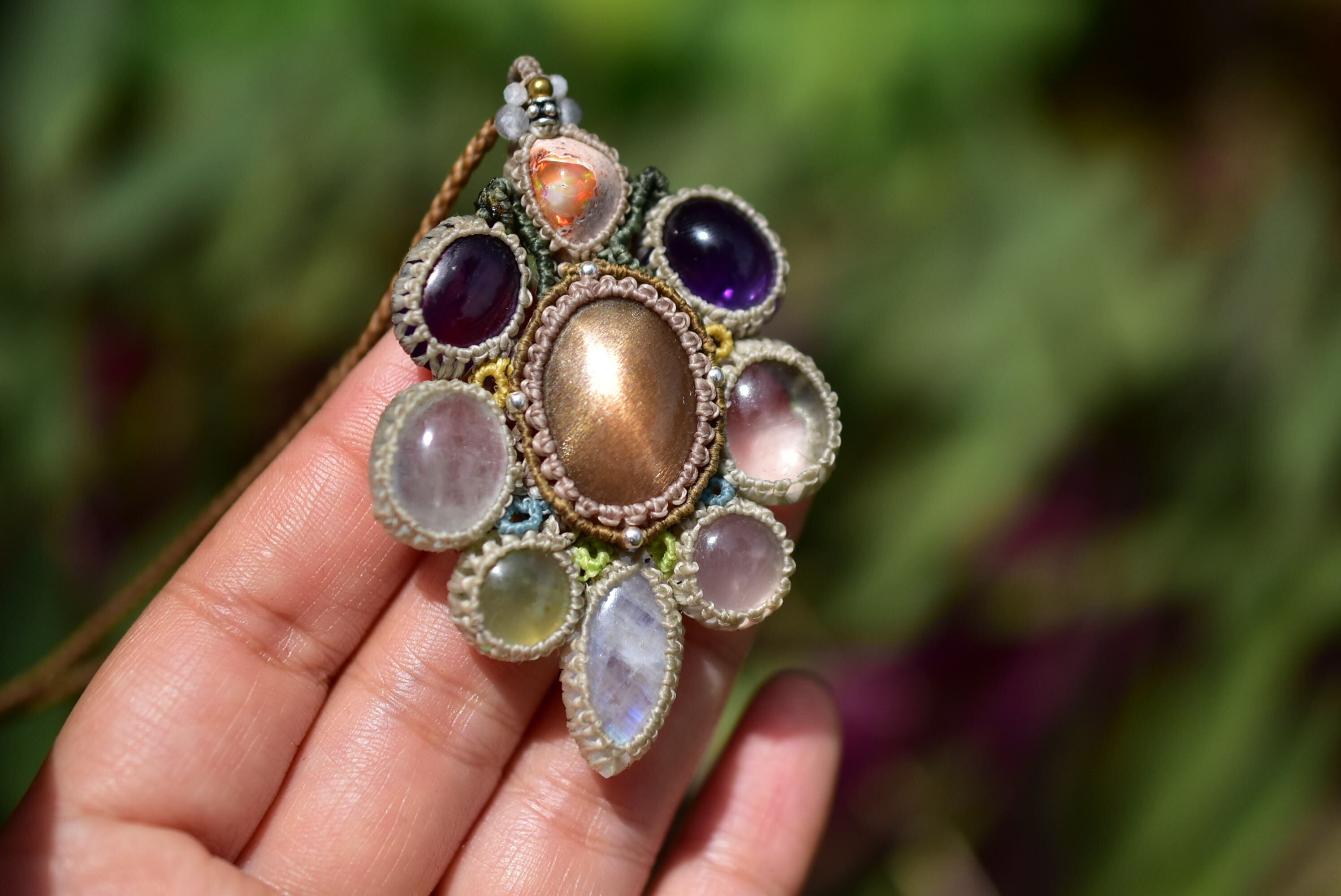 ひらめきのお花★ゴールドサンストーン マクラメペンダント322