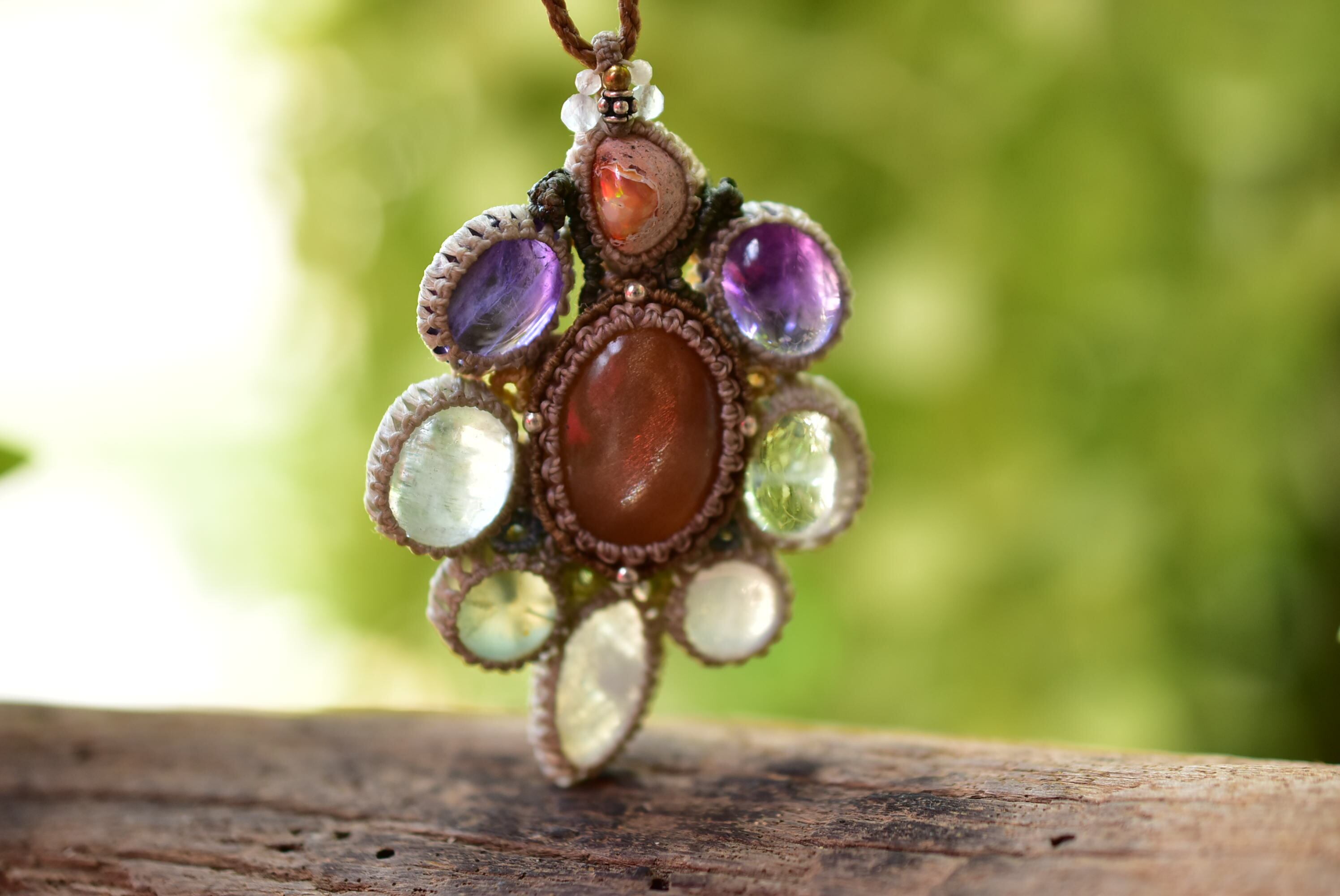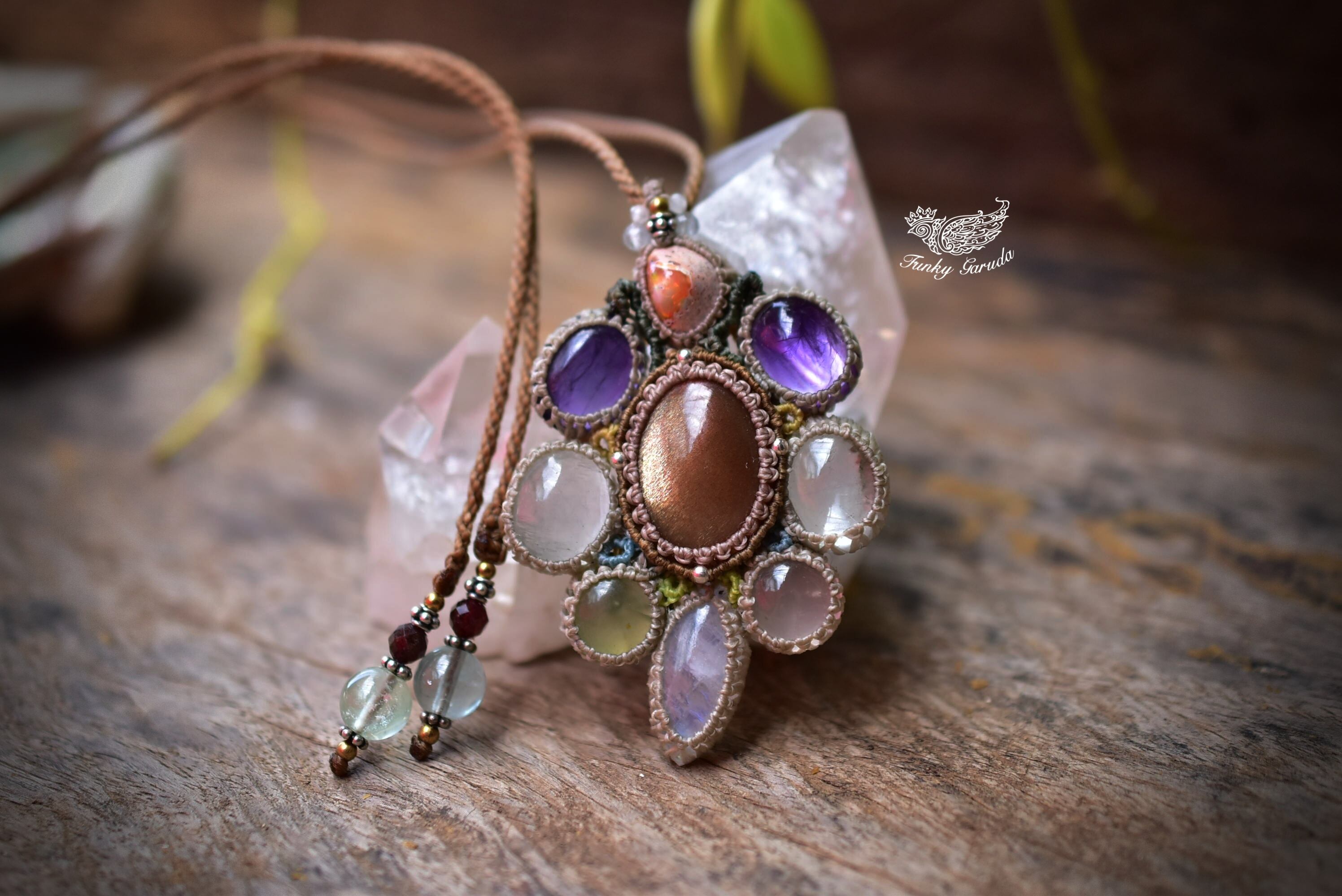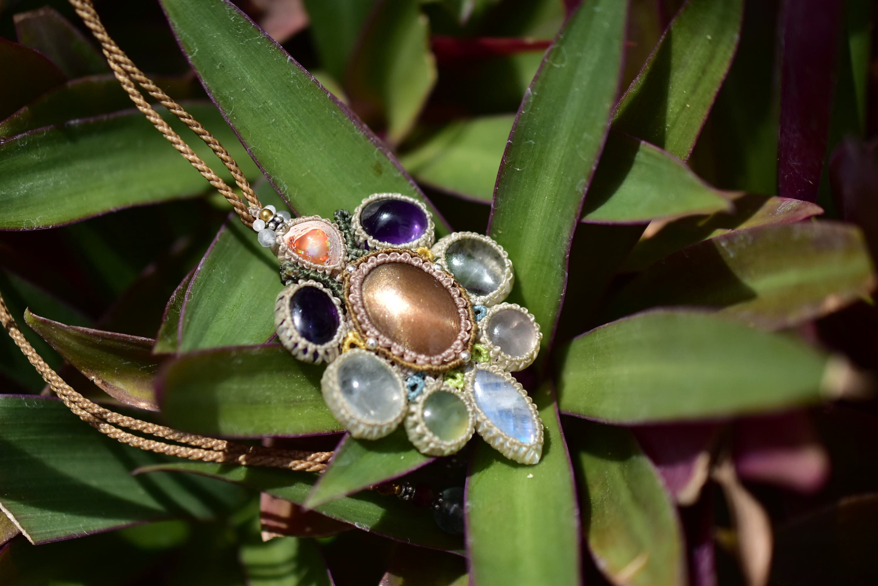 ひらめきのお花★ゴールドサンストーン マクラメペンダント322