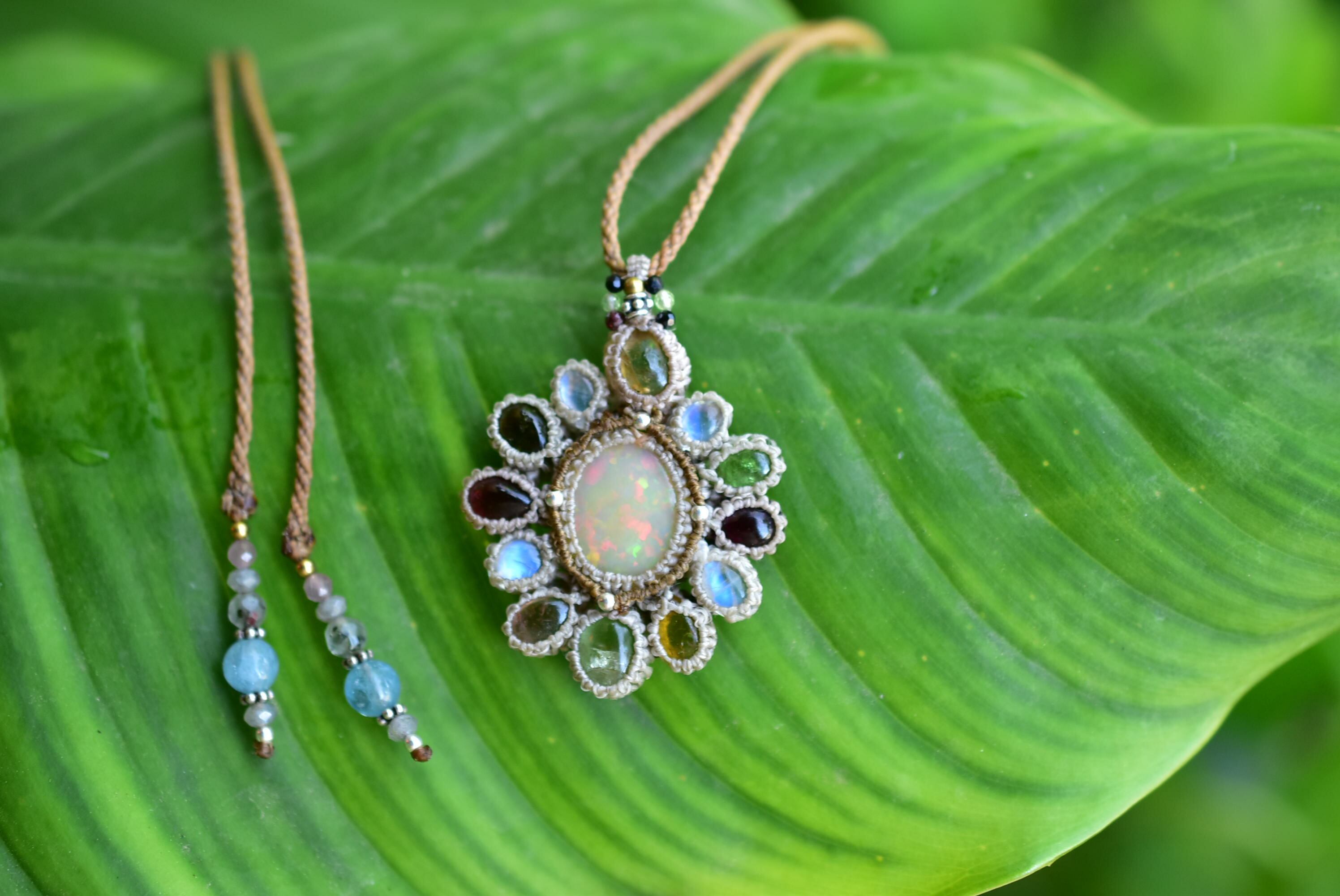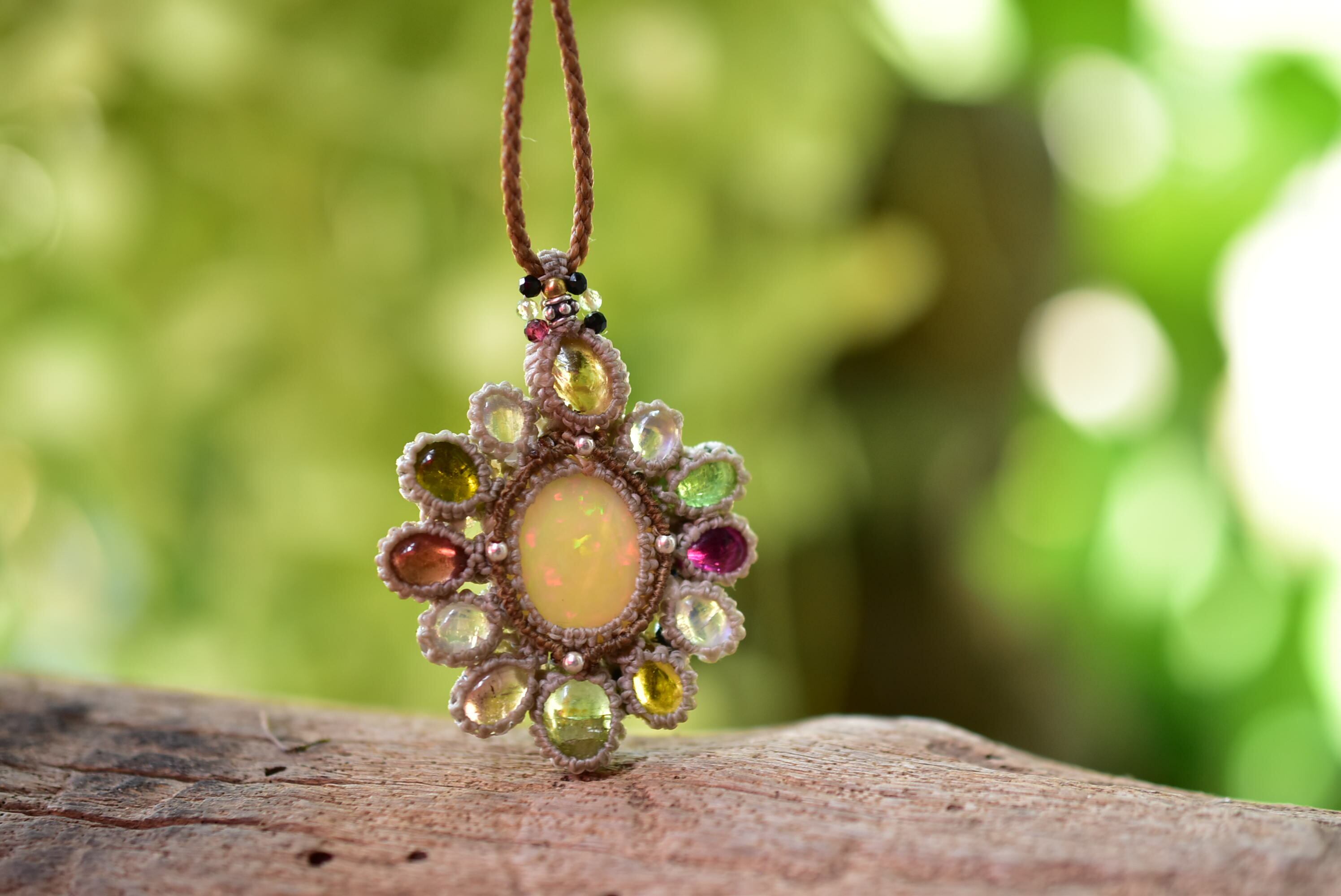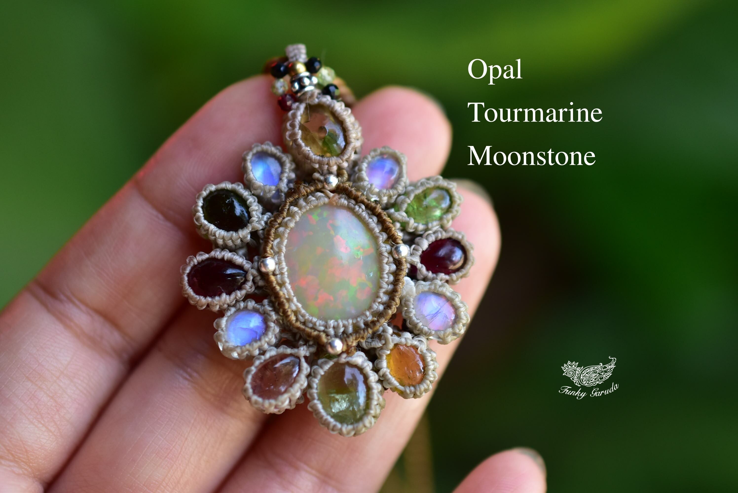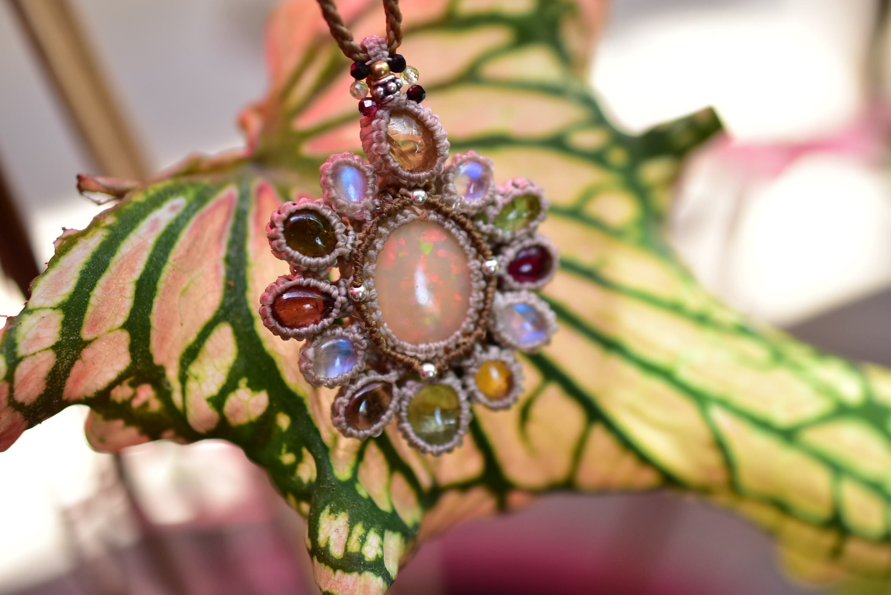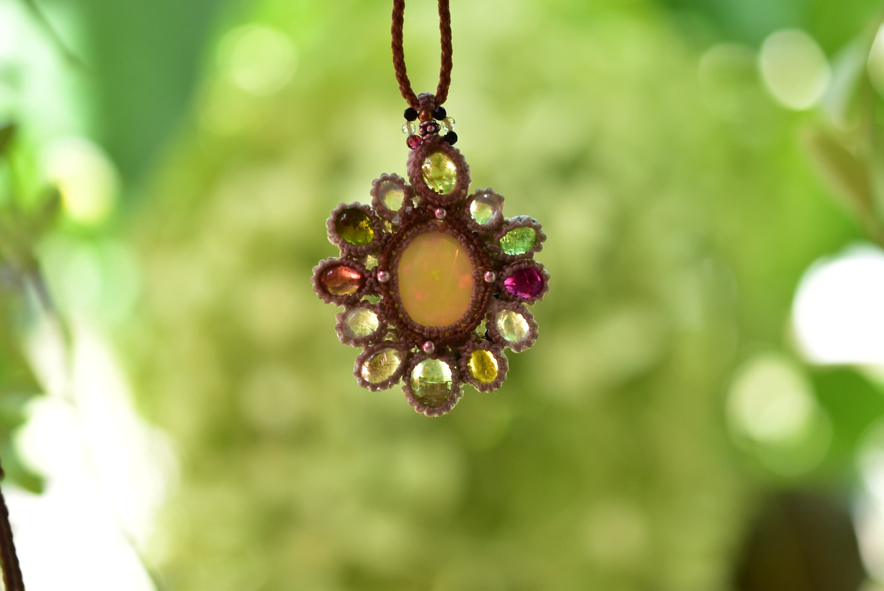 プリズム花火★オパール トルマリン マクラメペンダント327