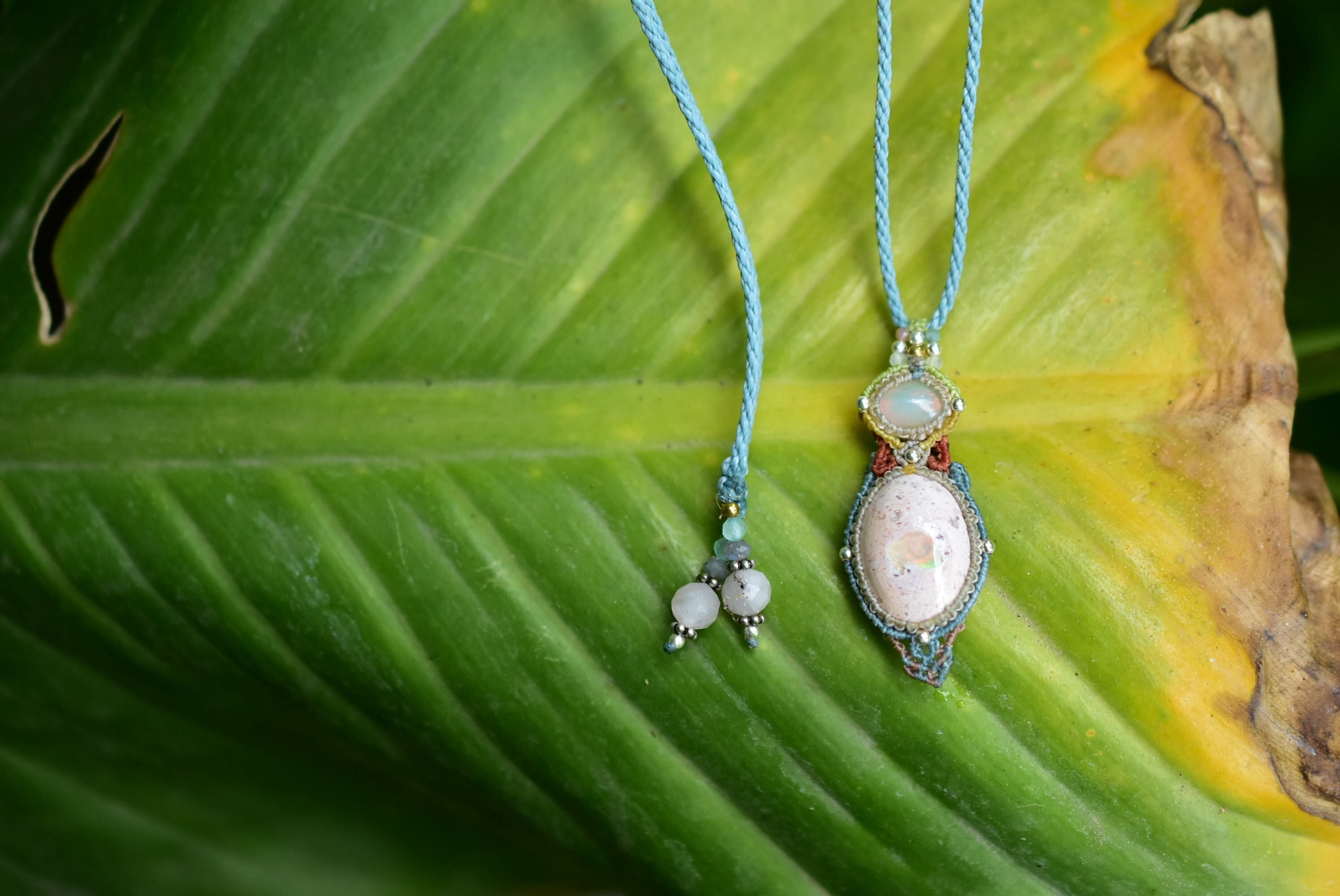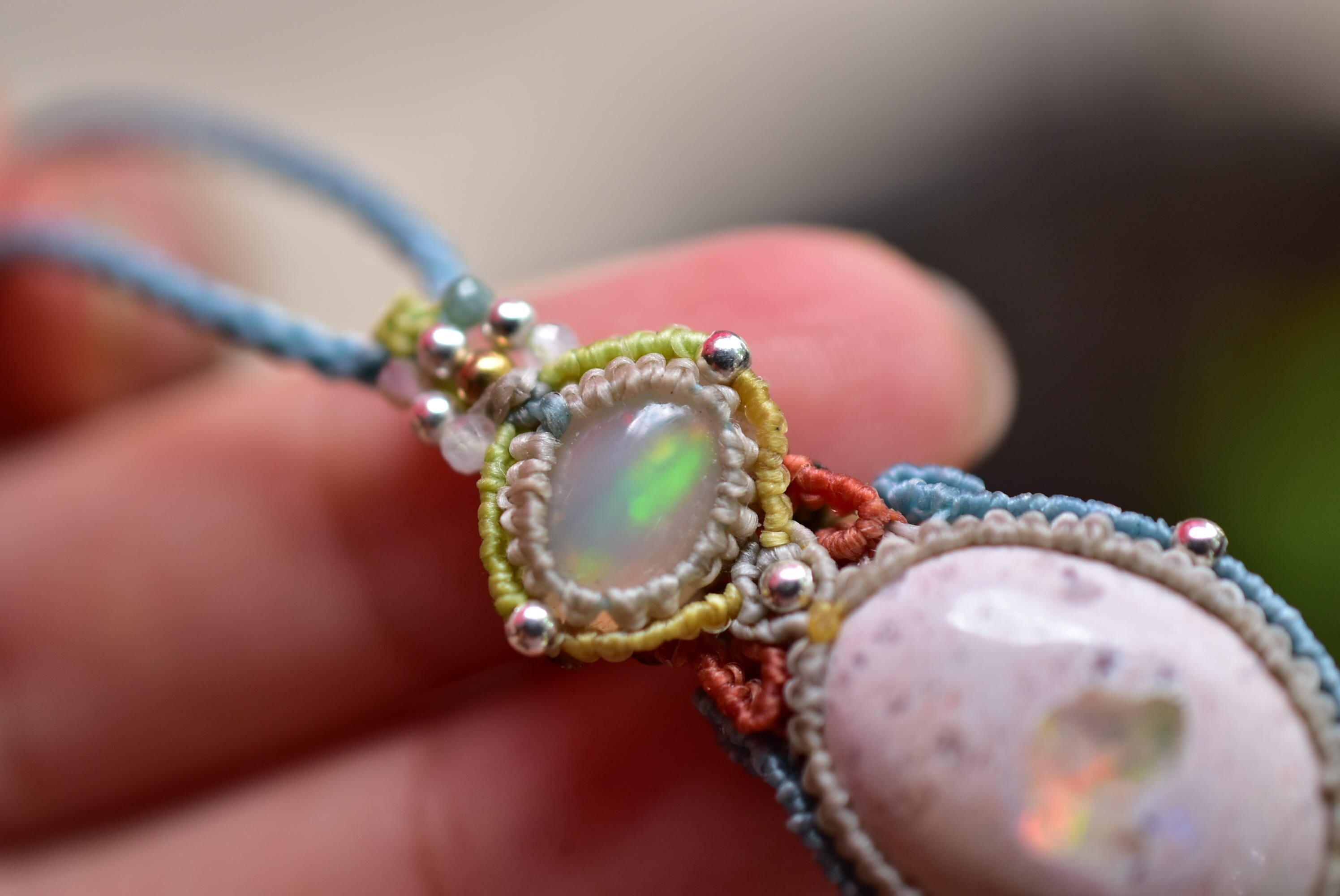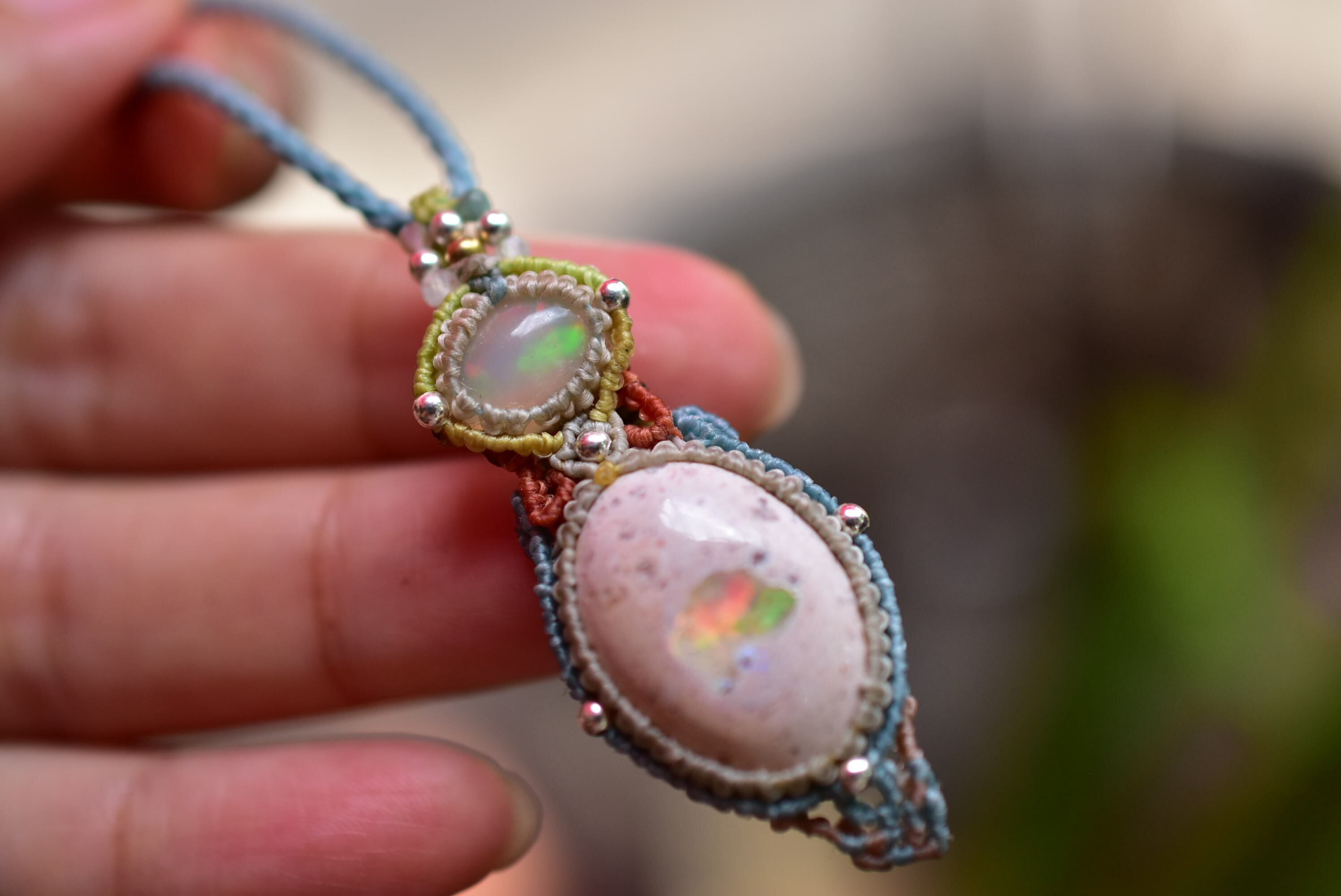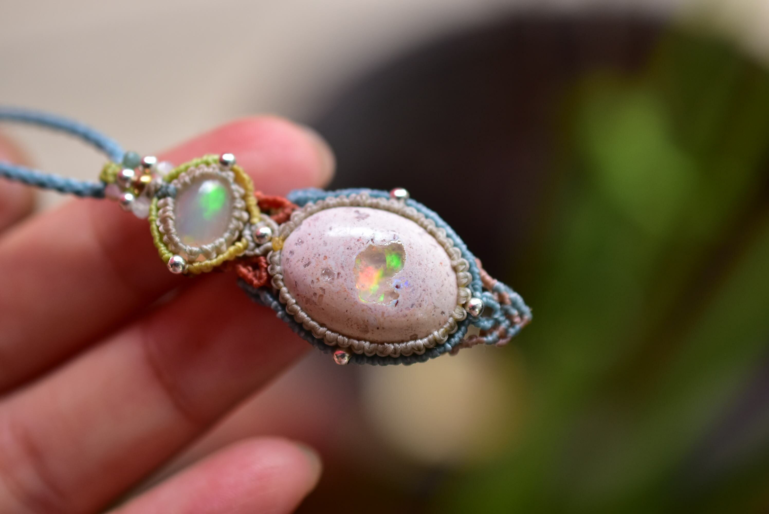 ダブルの虹プリズム★オパール カンテラオパール マクラメペンダント333