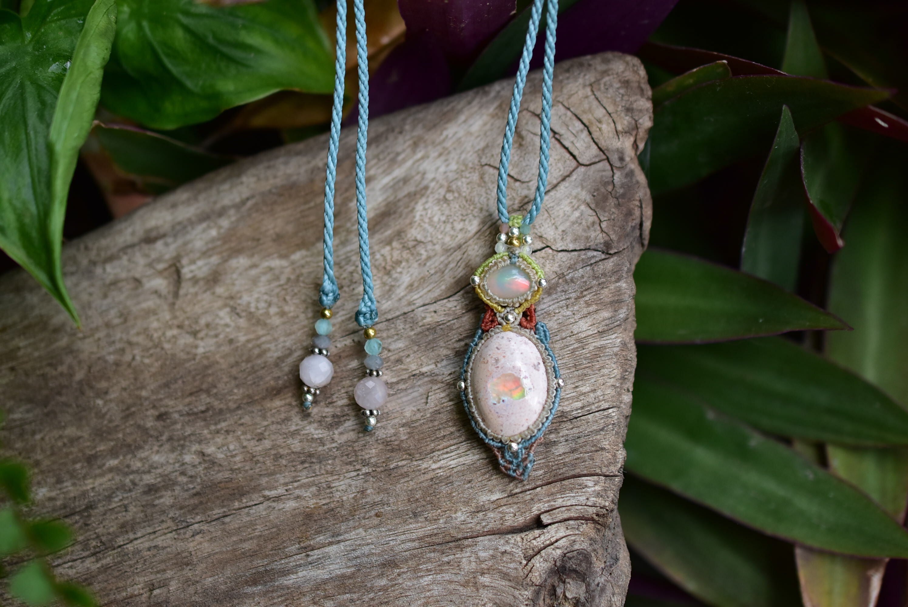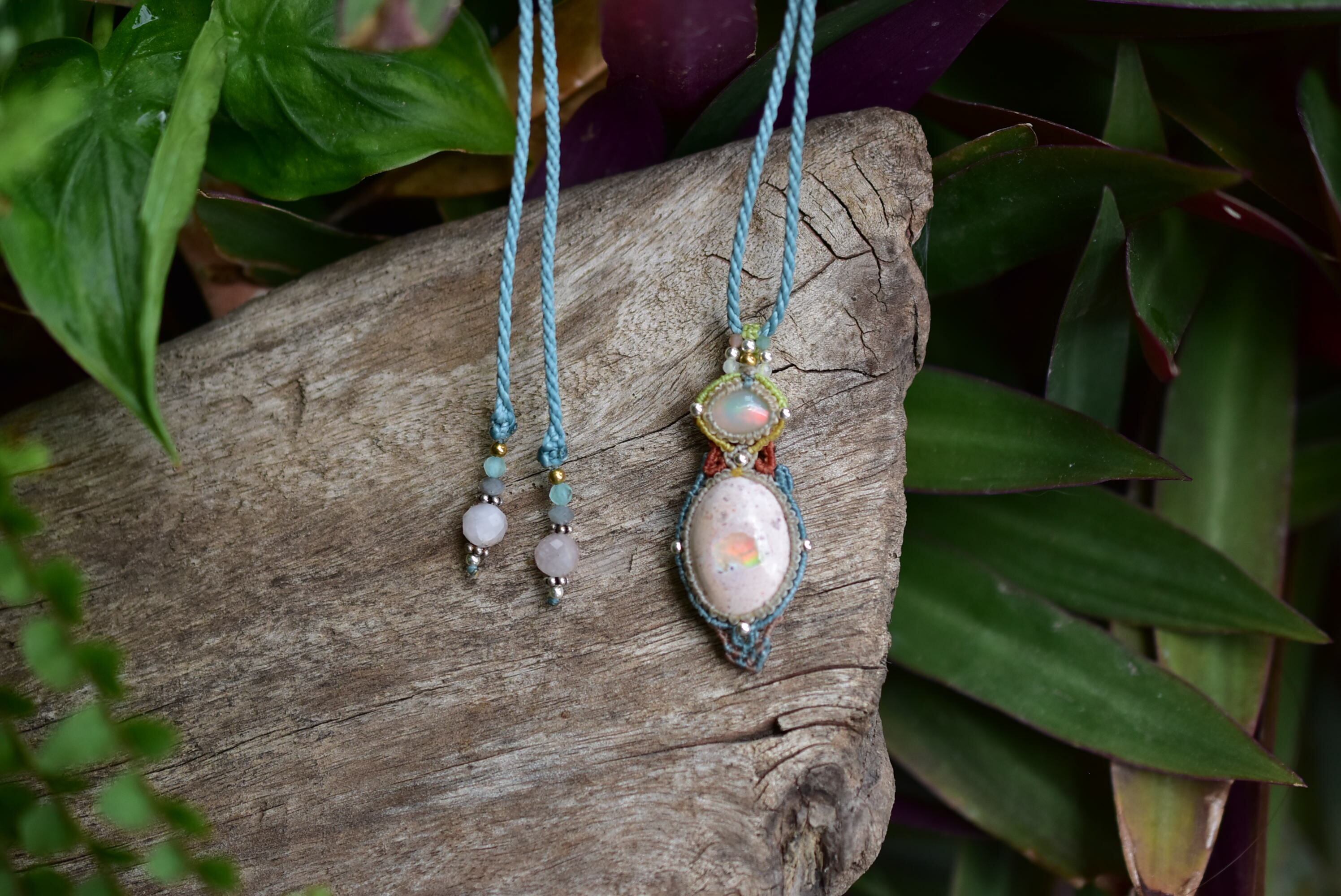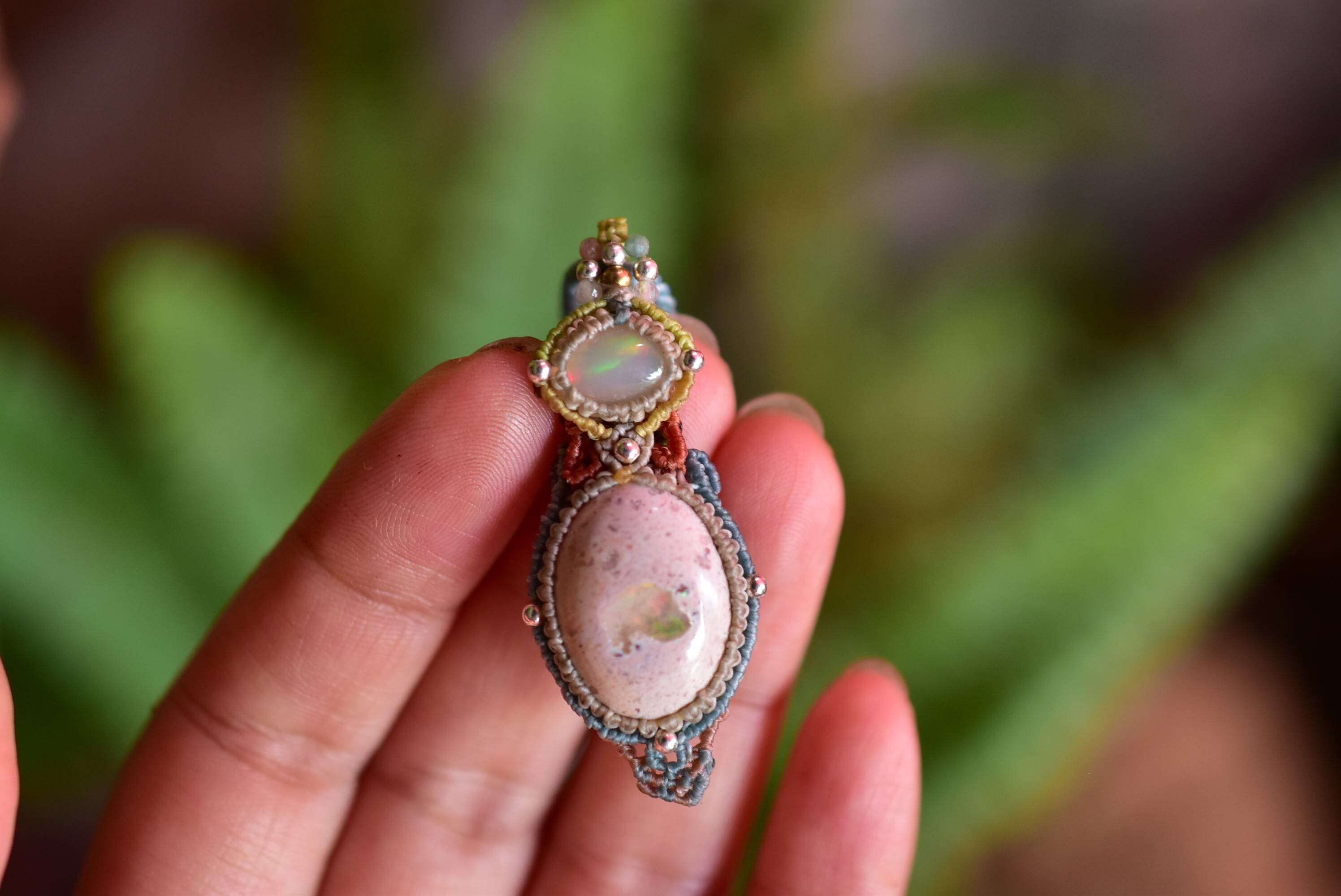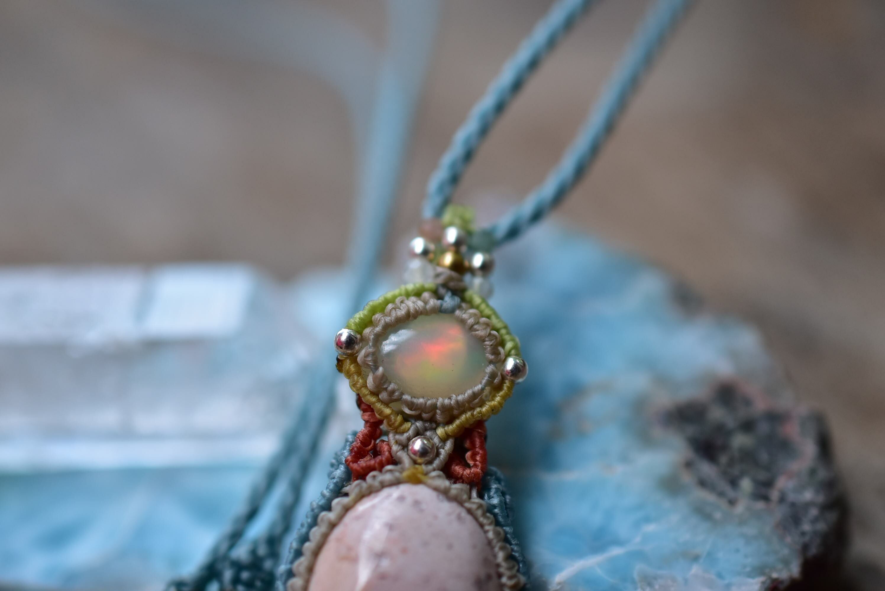 ダブルの虹プリズム★オパール カンテラオパール マクラメペンダント333