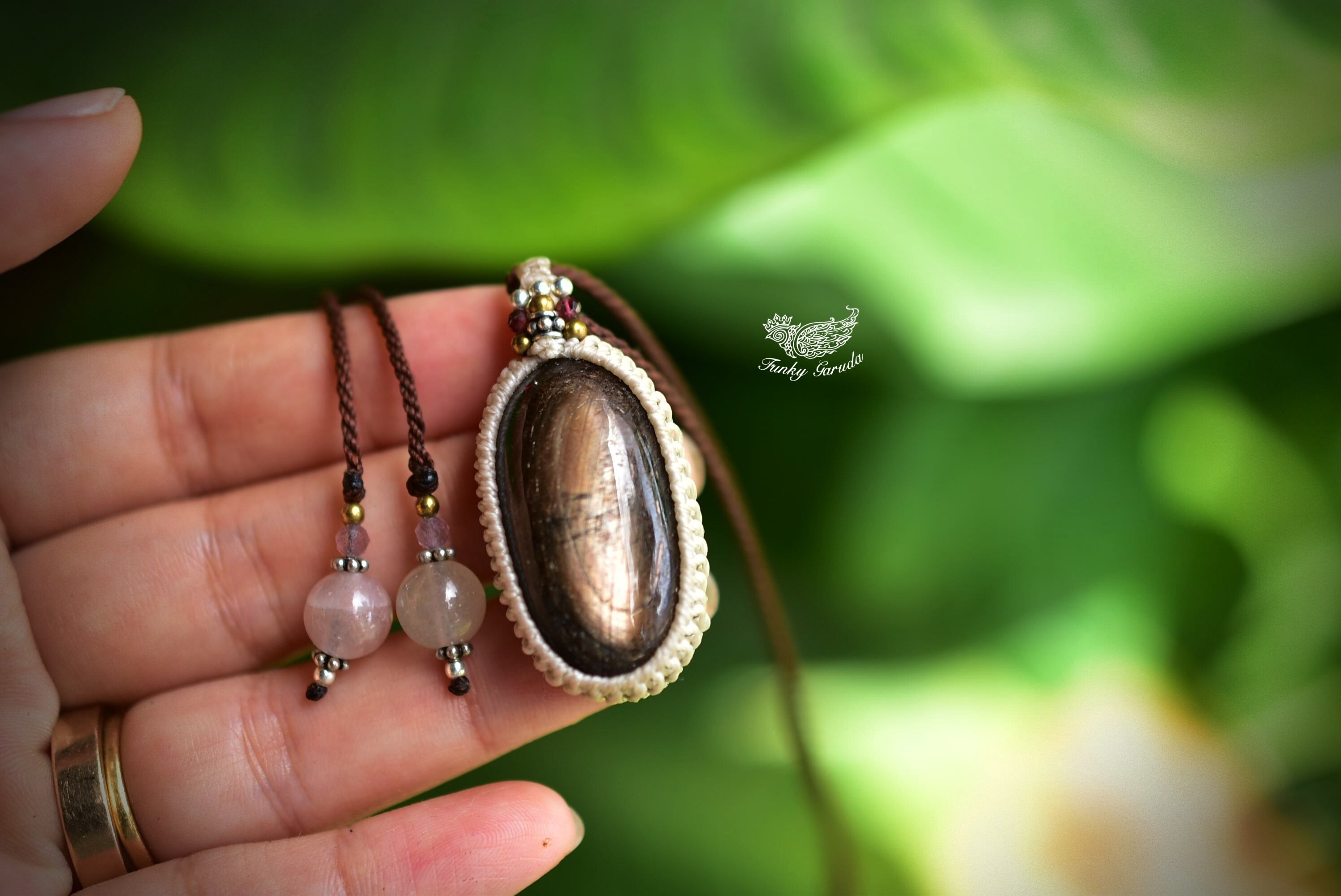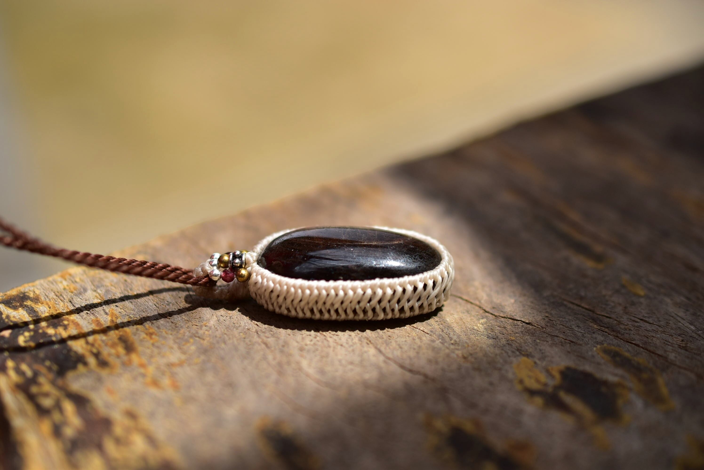 高貴な輝き★高品質★ブラックサファイア マクラメペンダント348