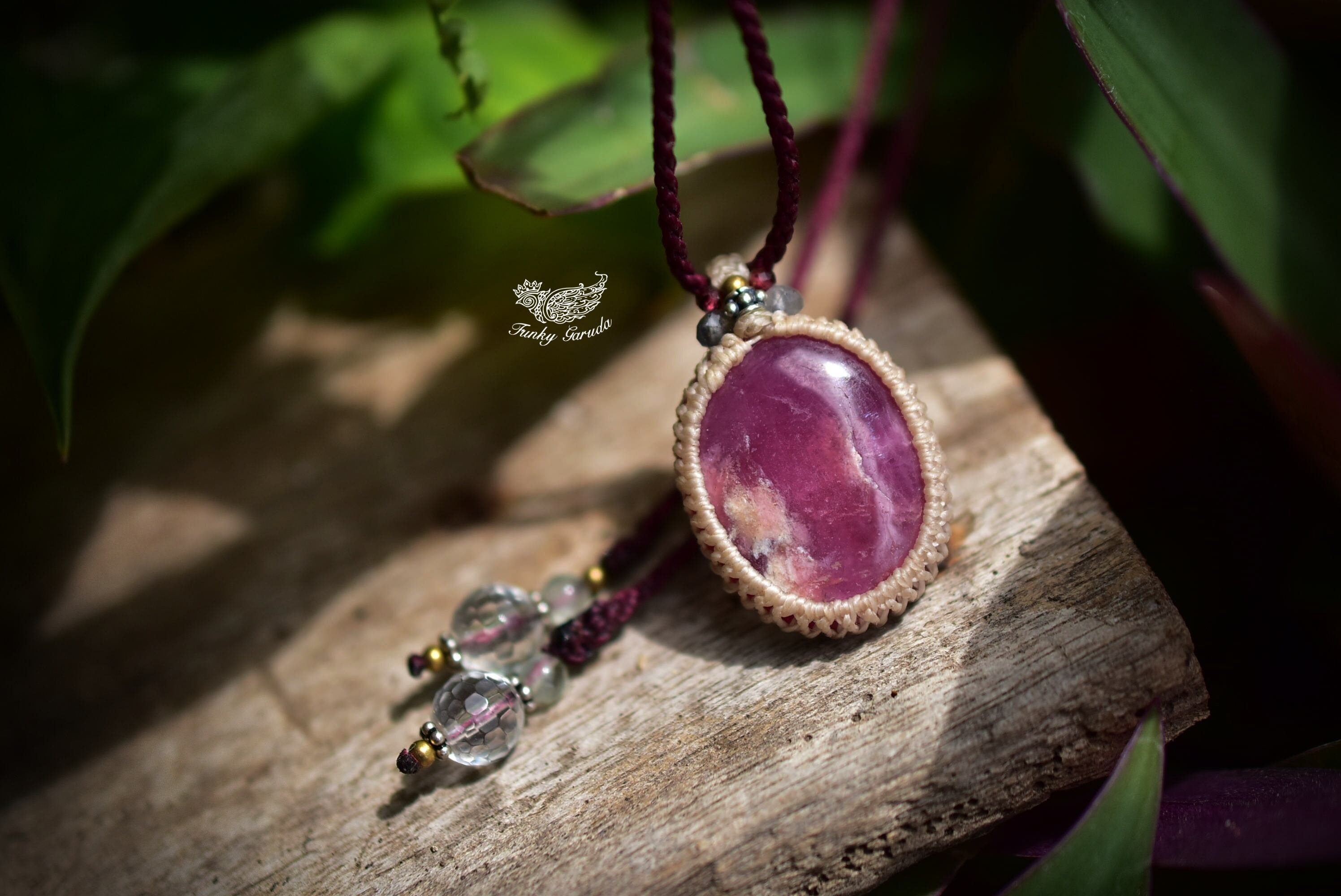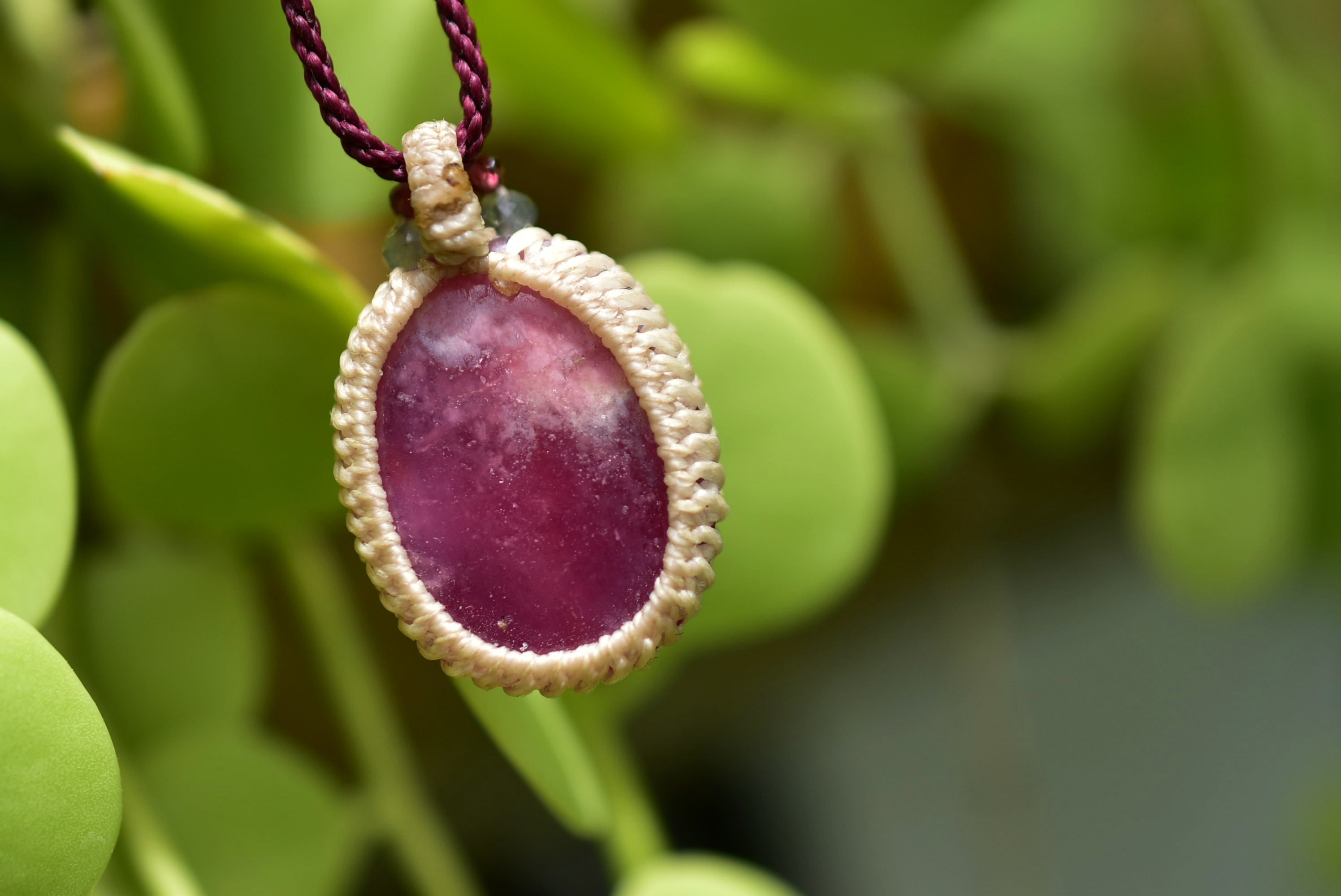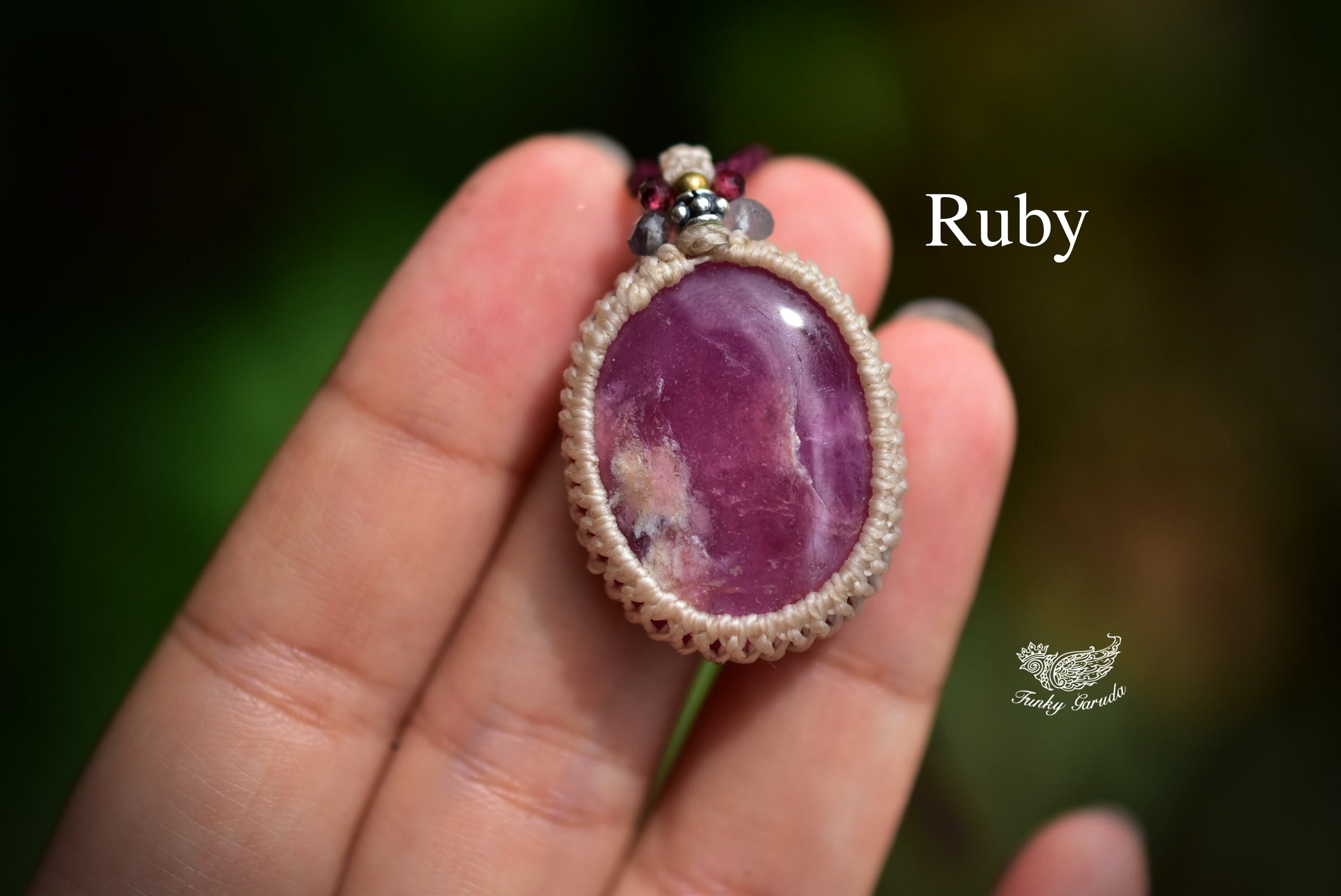 深い赤★ローズルビー マクラメペンダント351