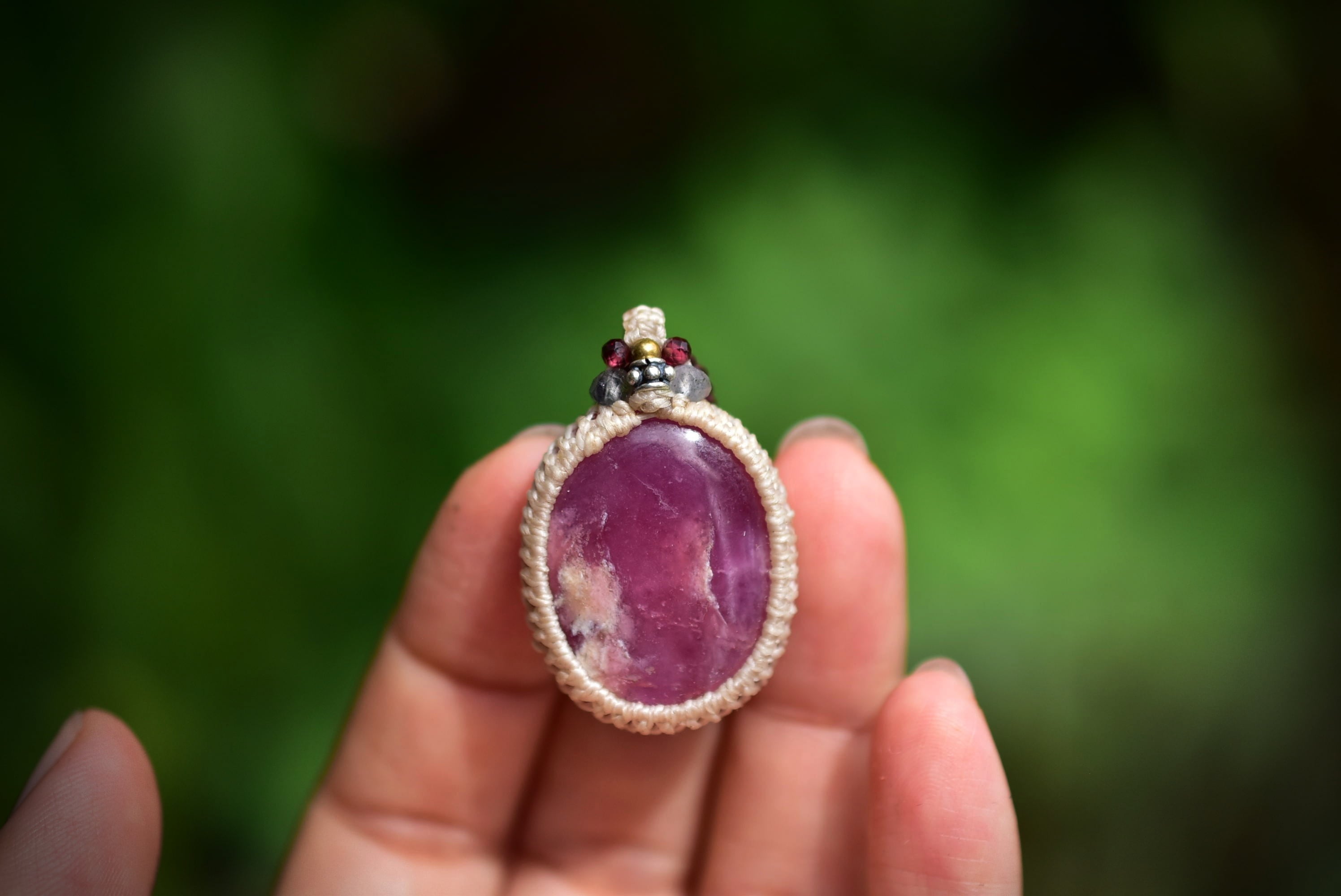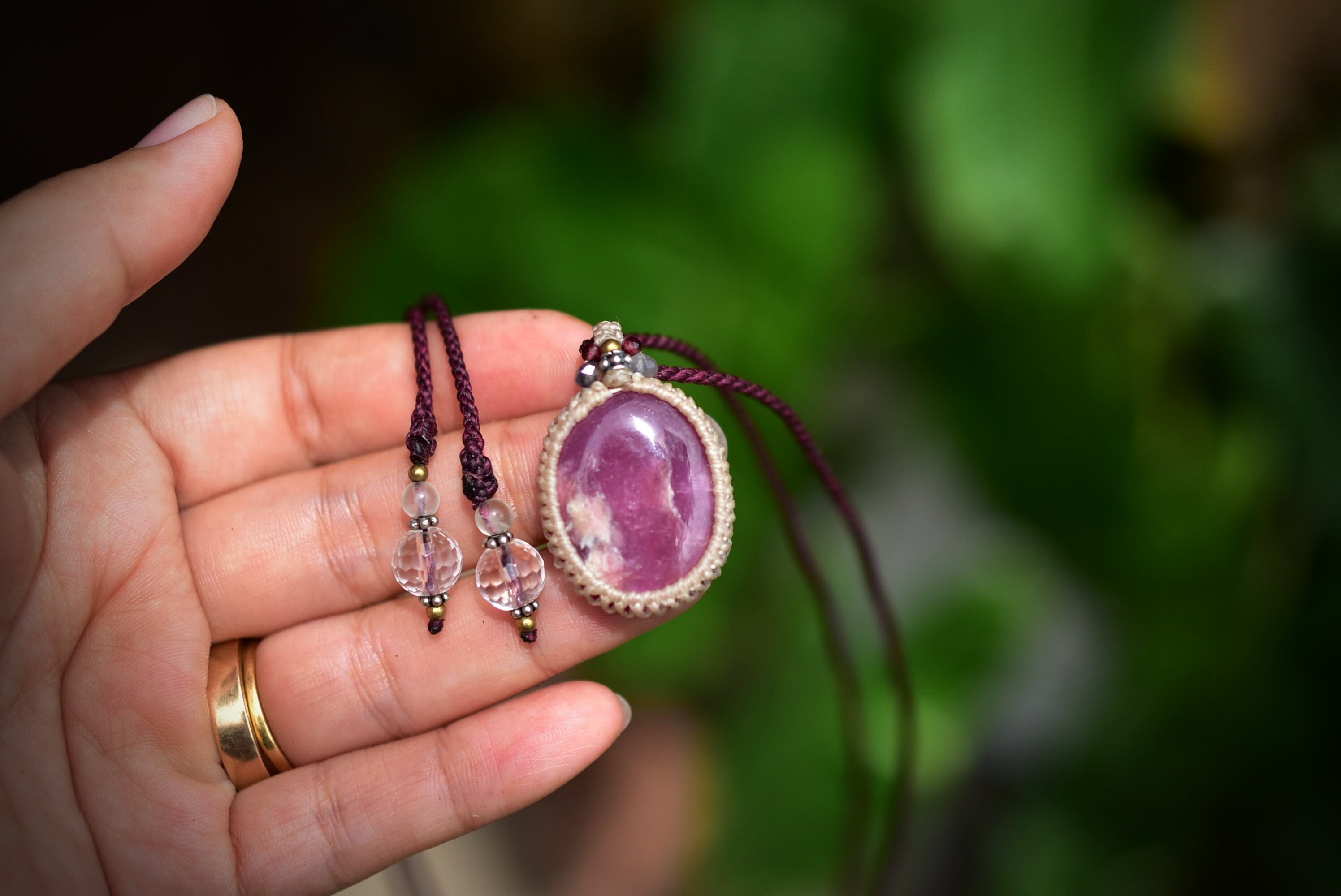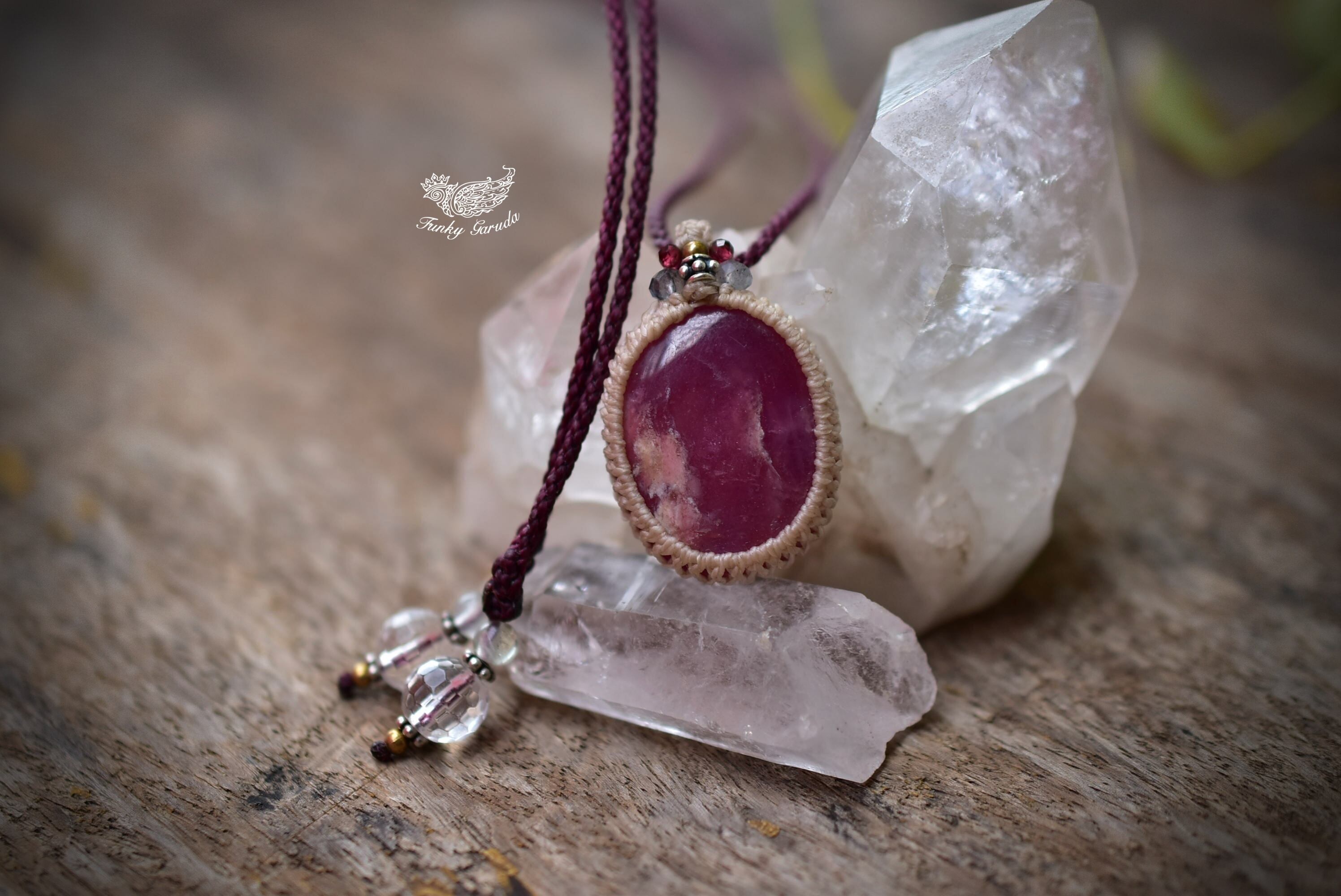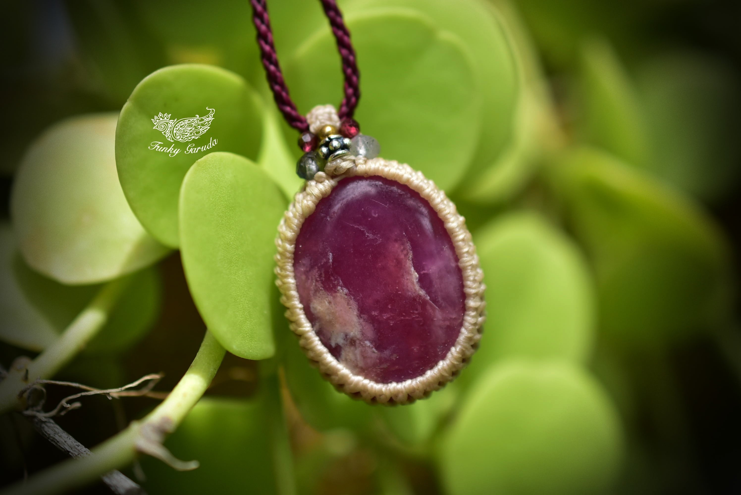 深い赤★ローズルビー マクラメペンダント351