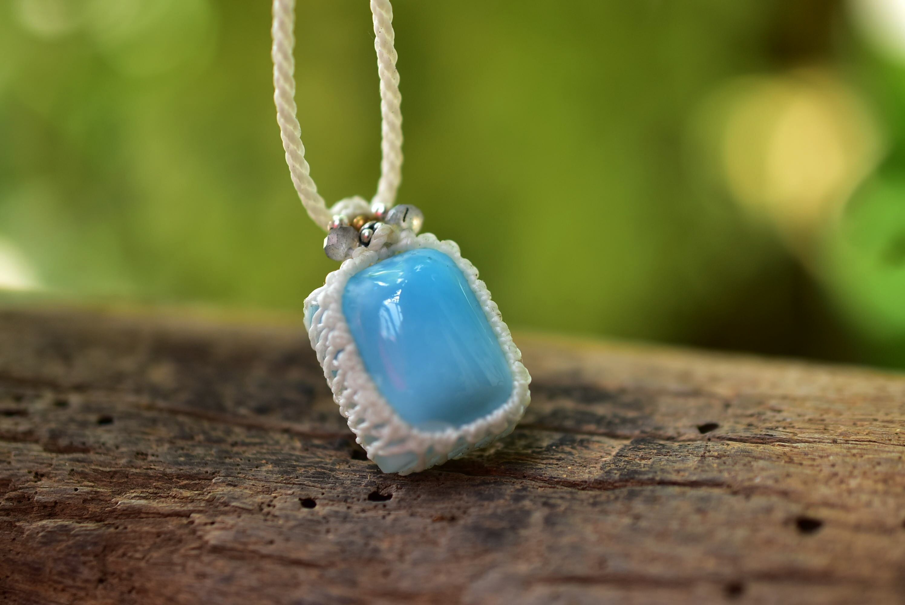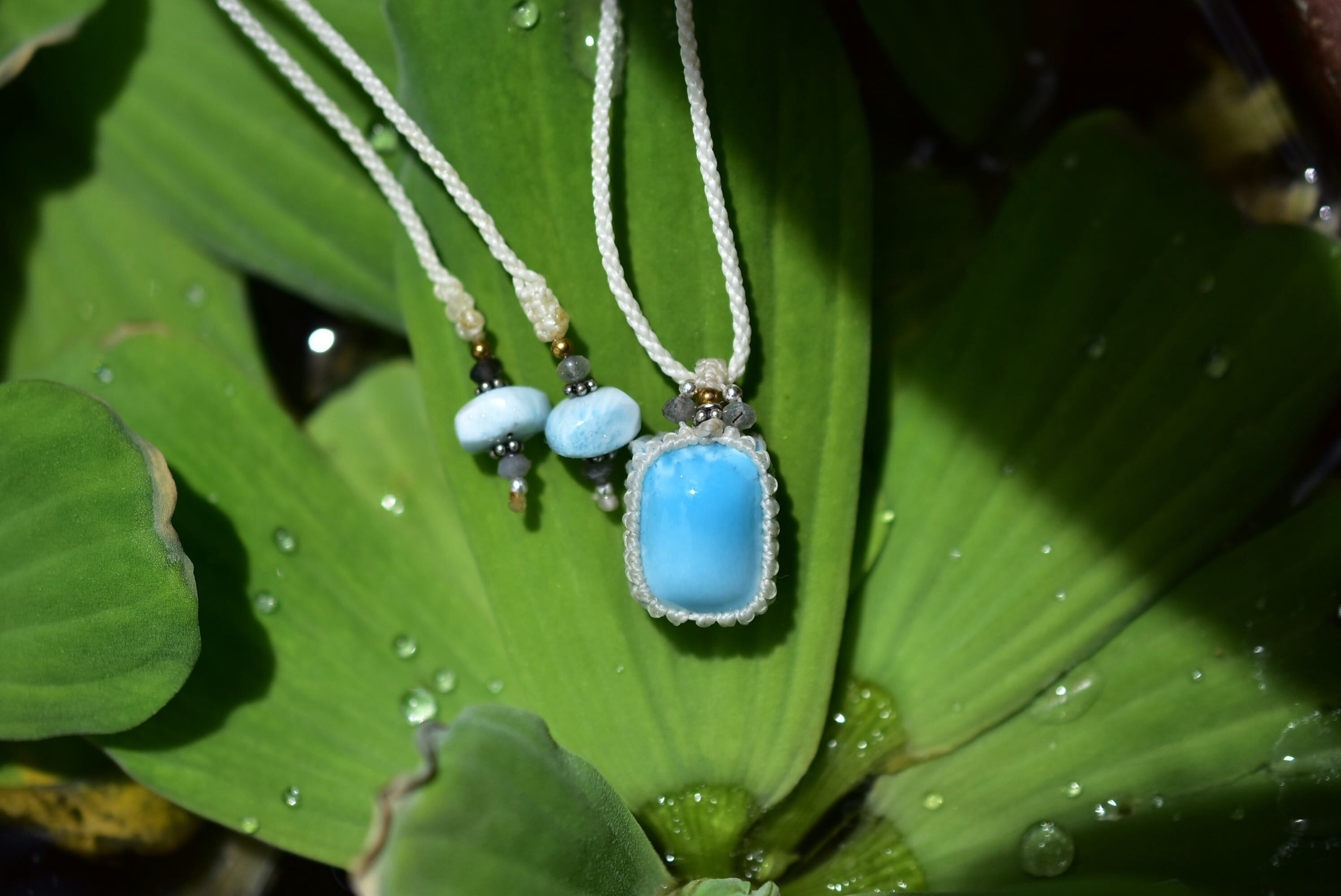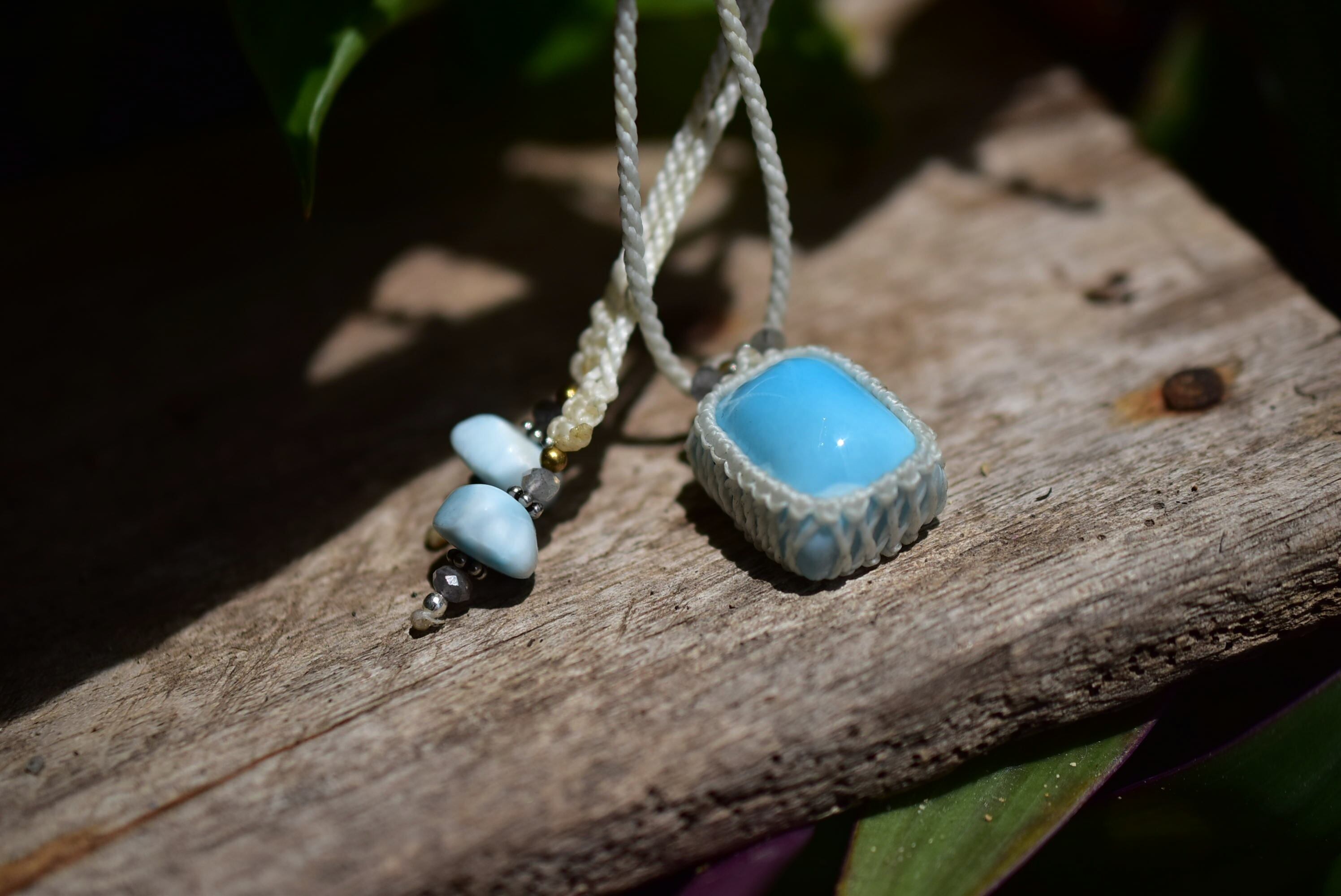 爽やかブルー★高品質★ラリマー マクラメペンダント352b