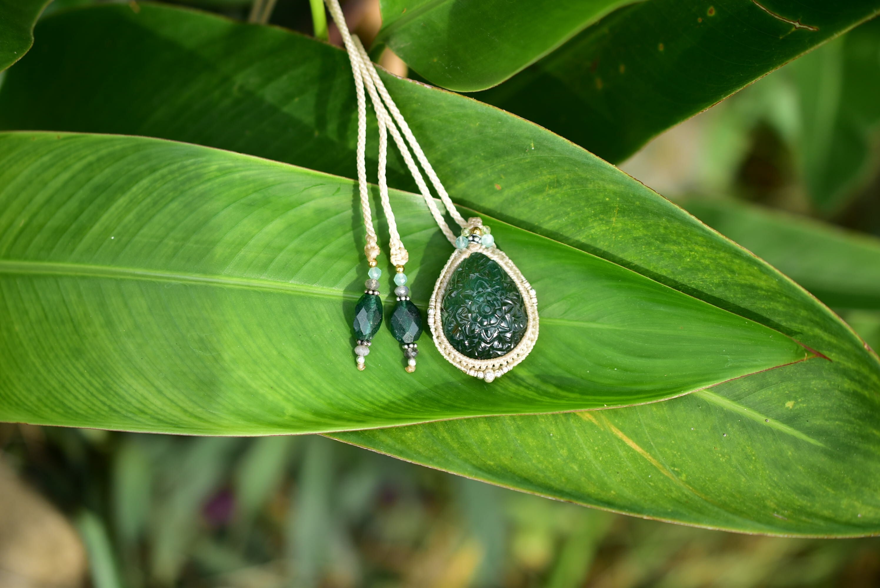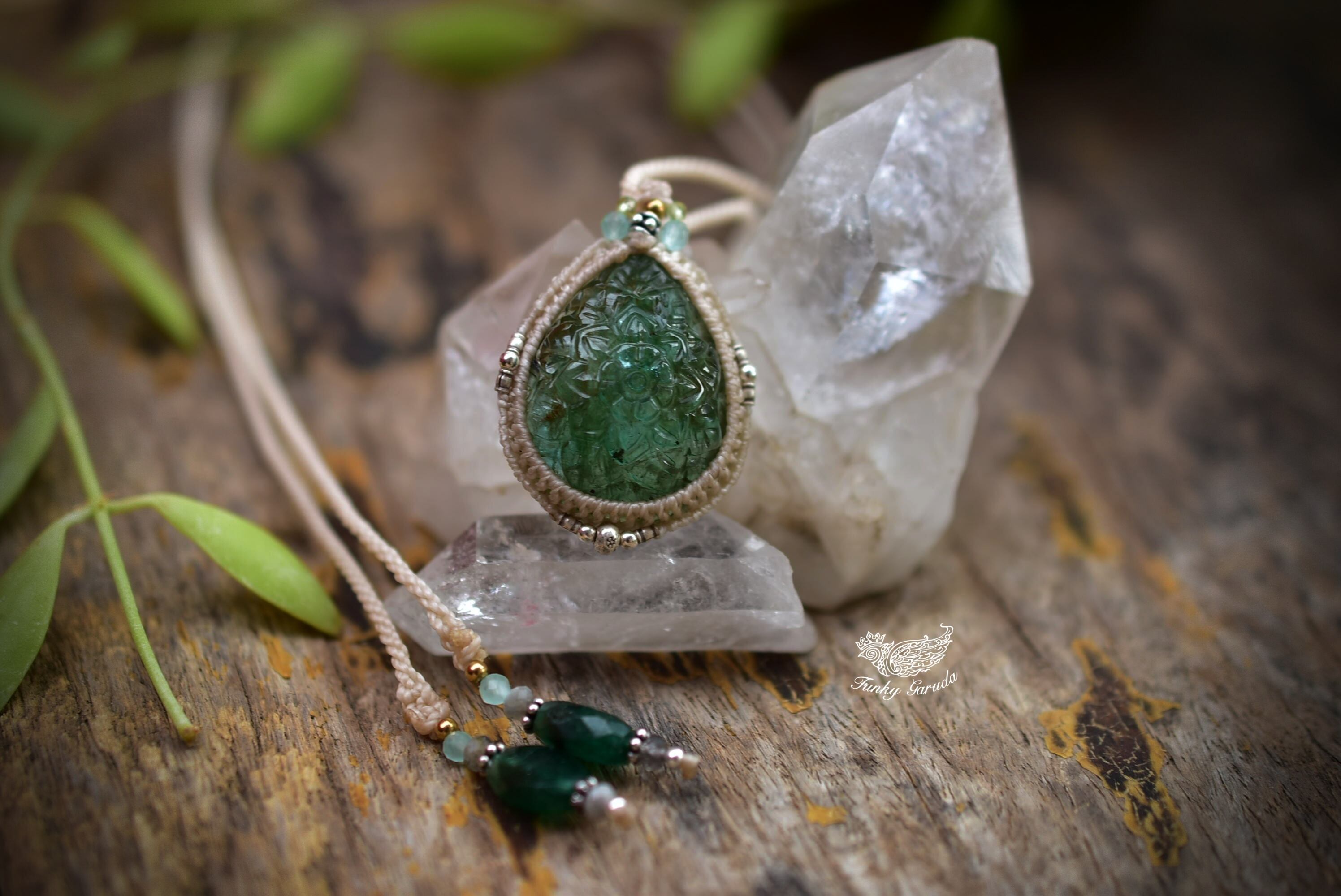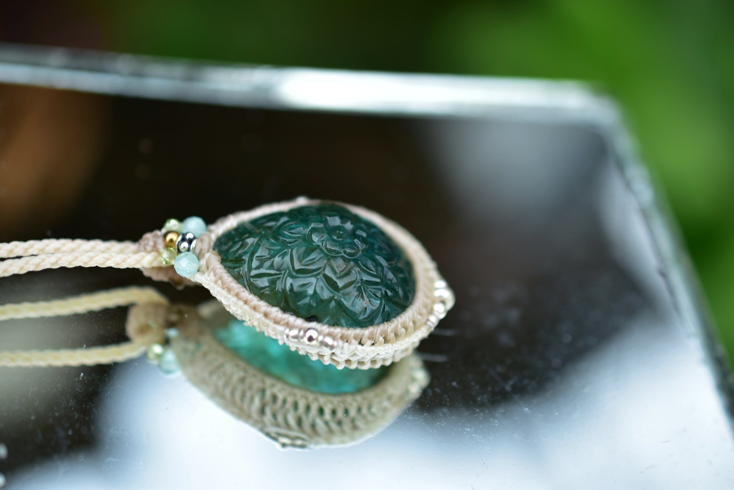 曼荼羅の花★ザンビア産★エメラルド マクラメペンダントA382