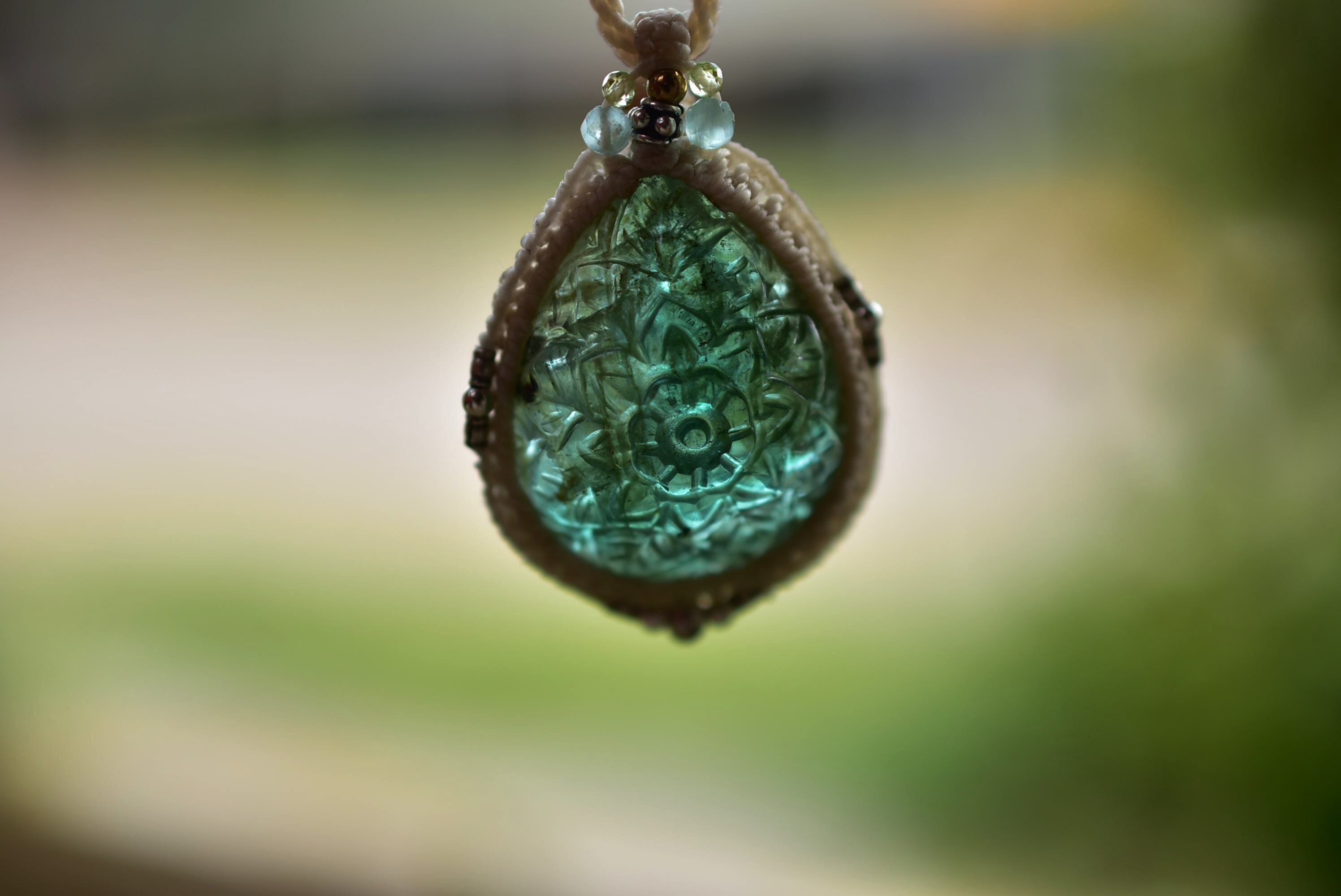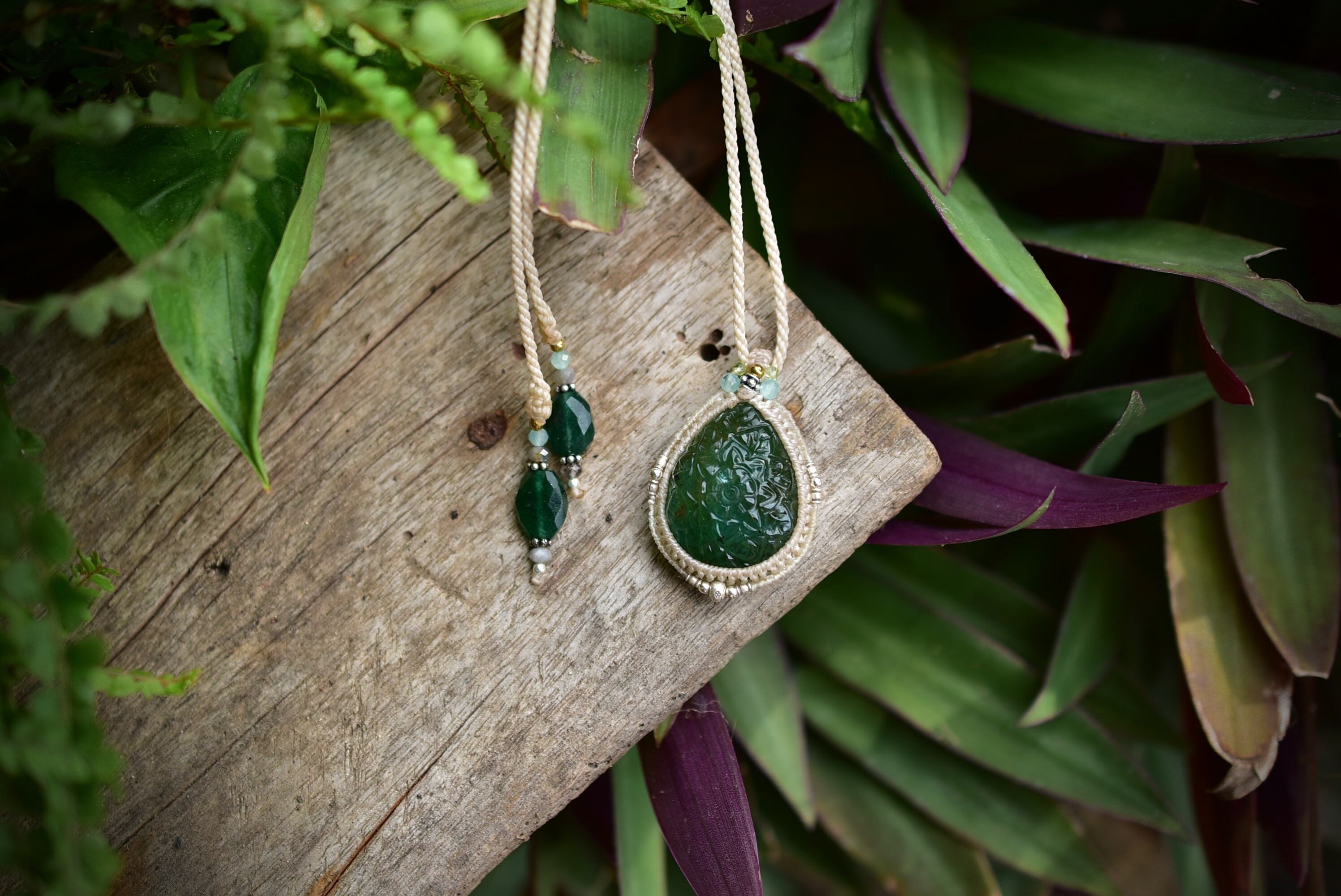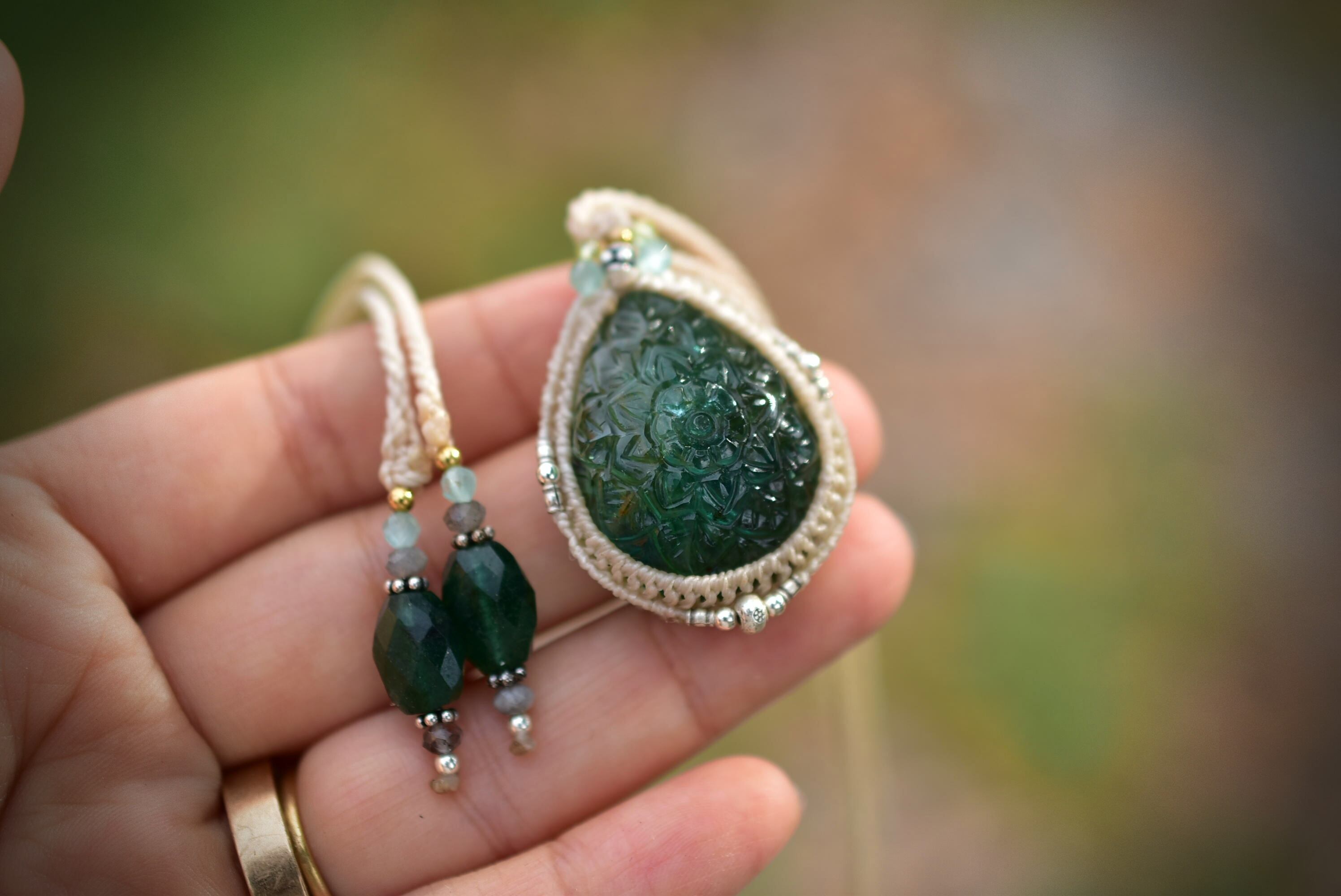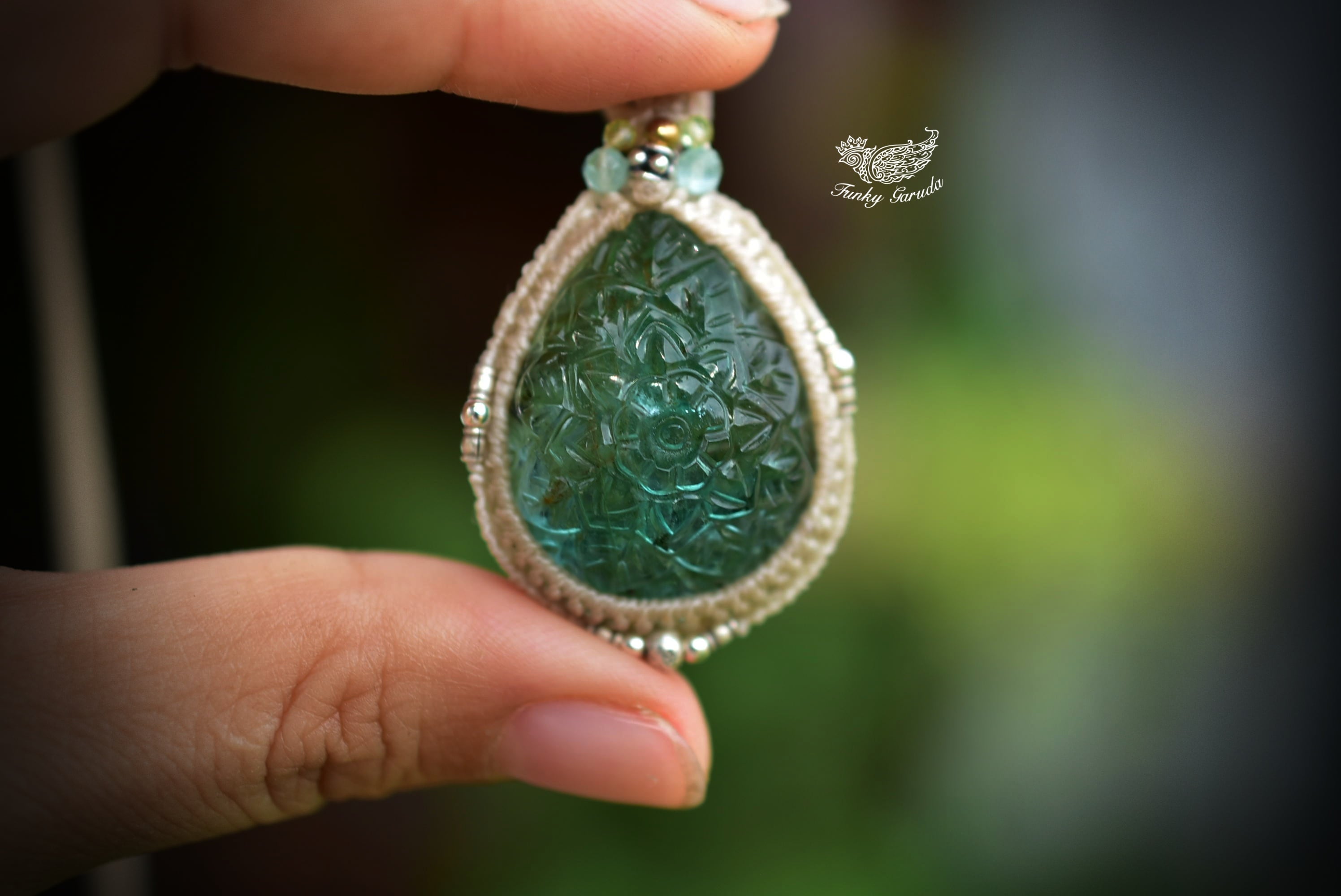 曼荼羅の花★ザンビア産★エメラルド マクラメペンダントA382