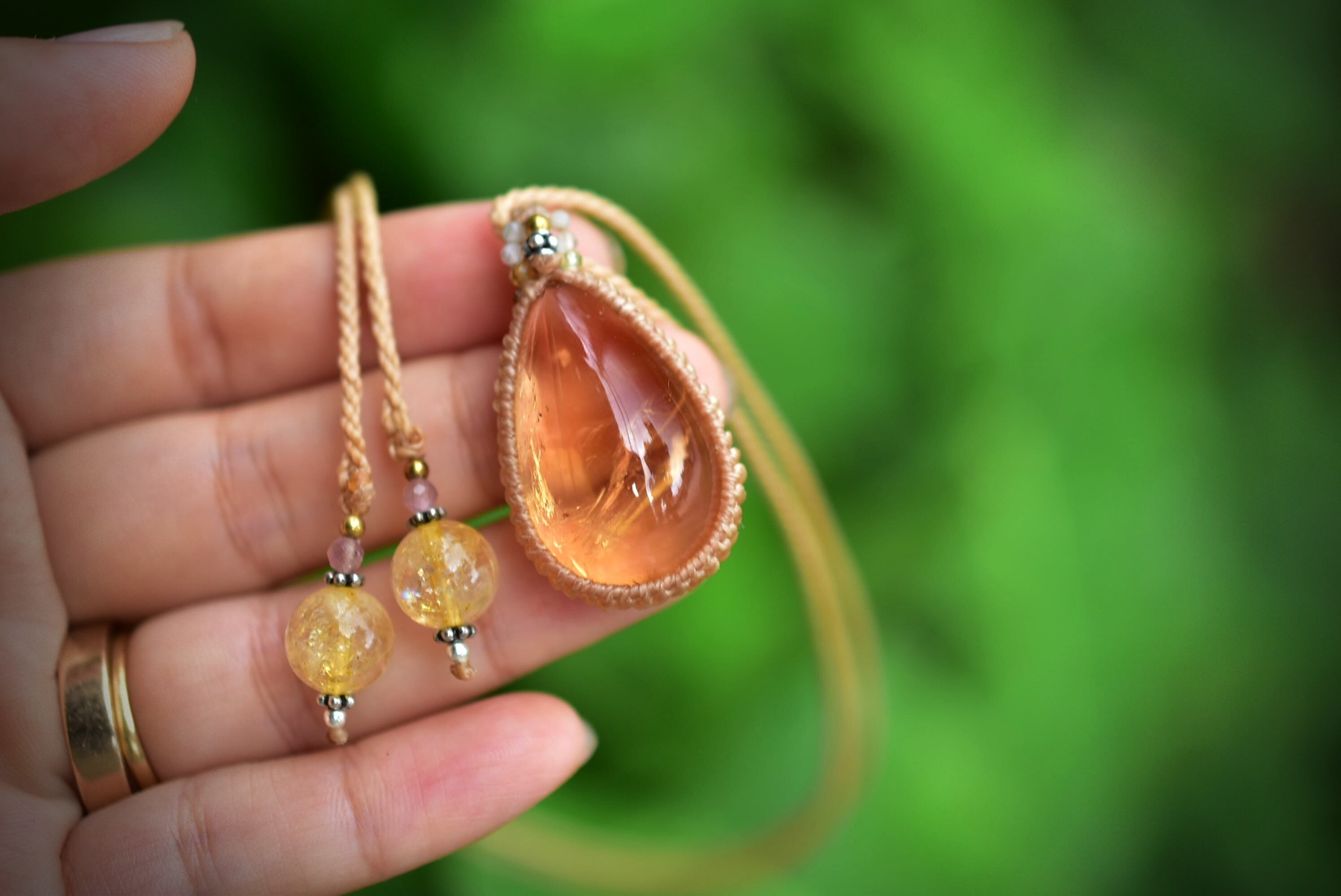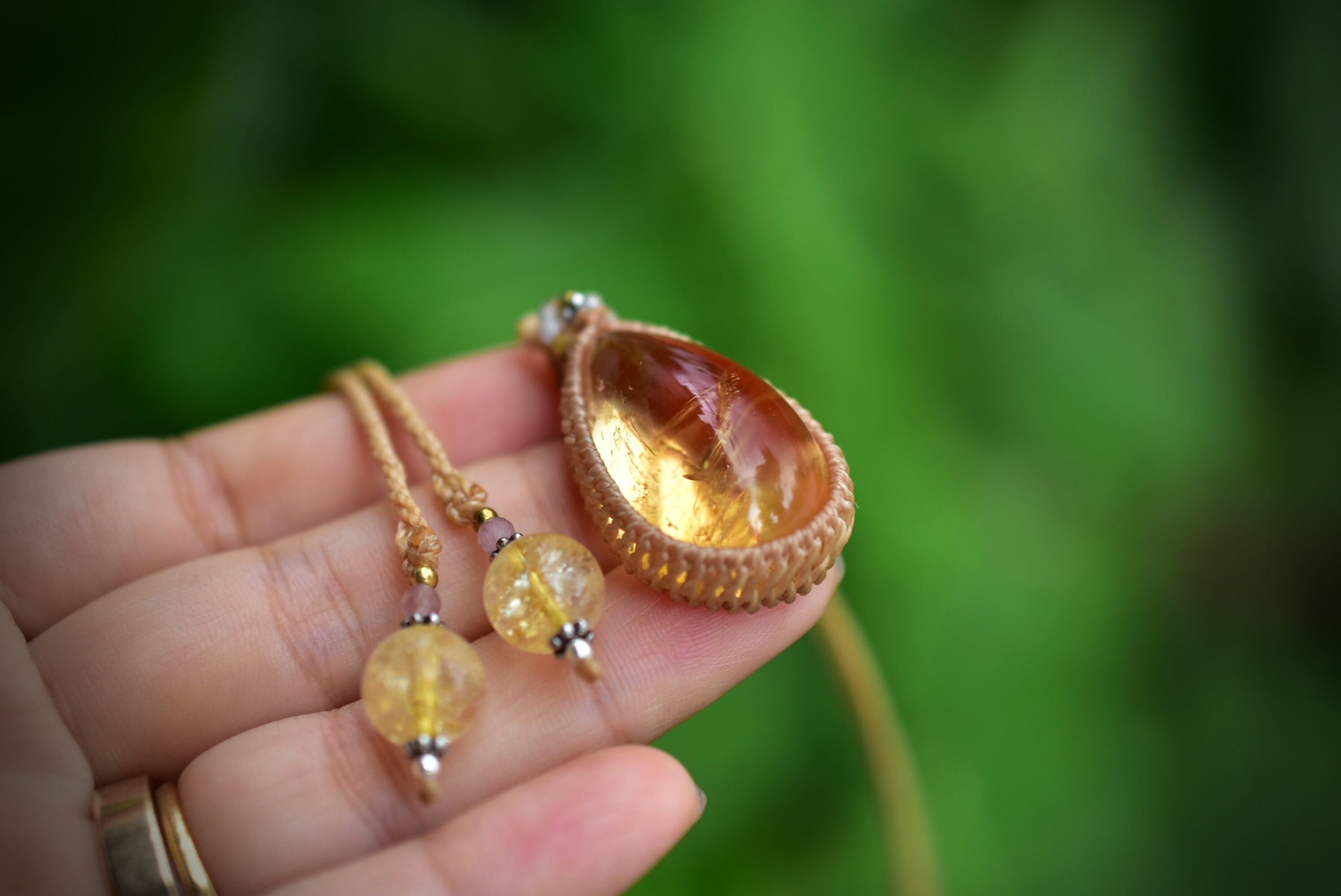金貨色★シトリン マクラメペンダント389