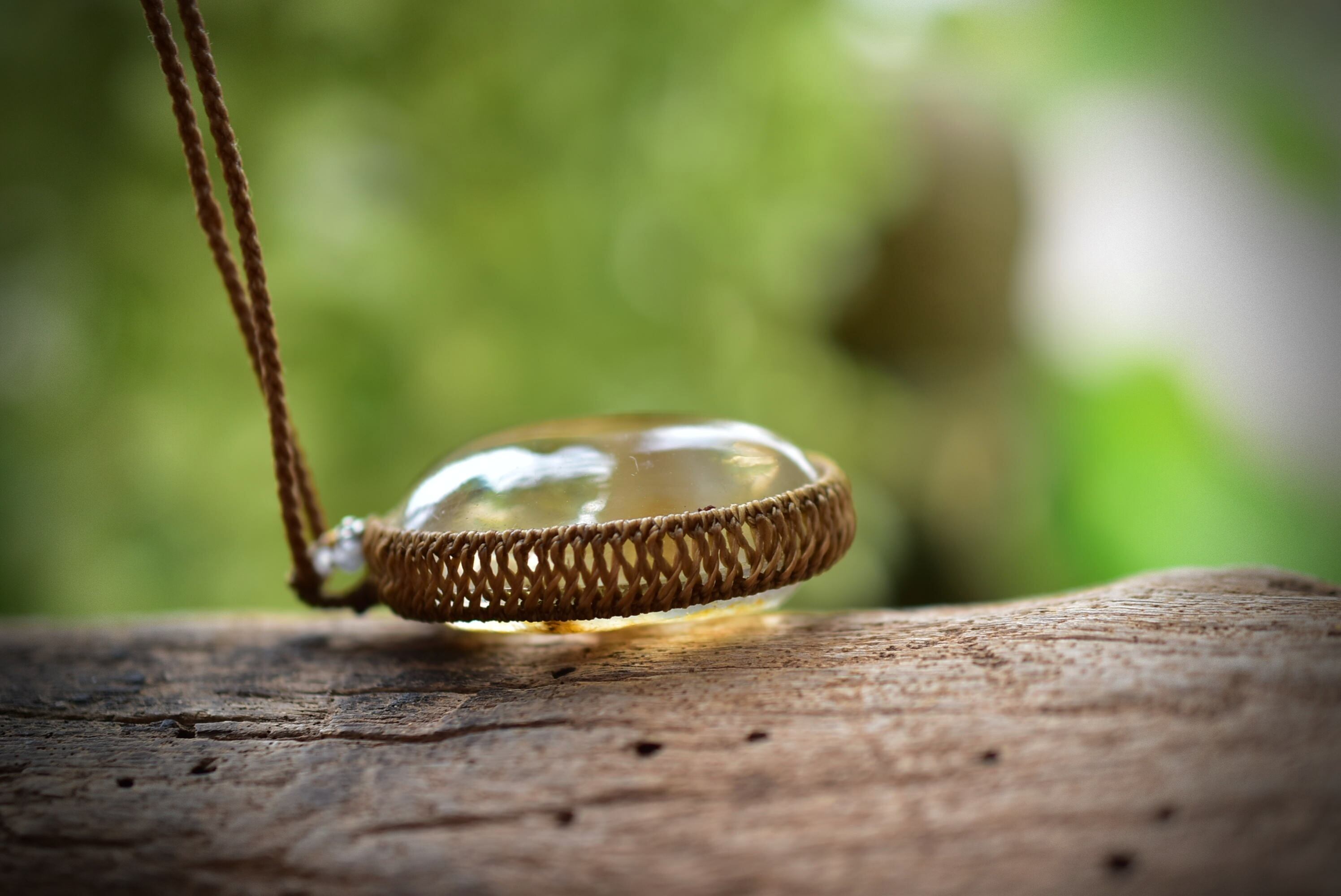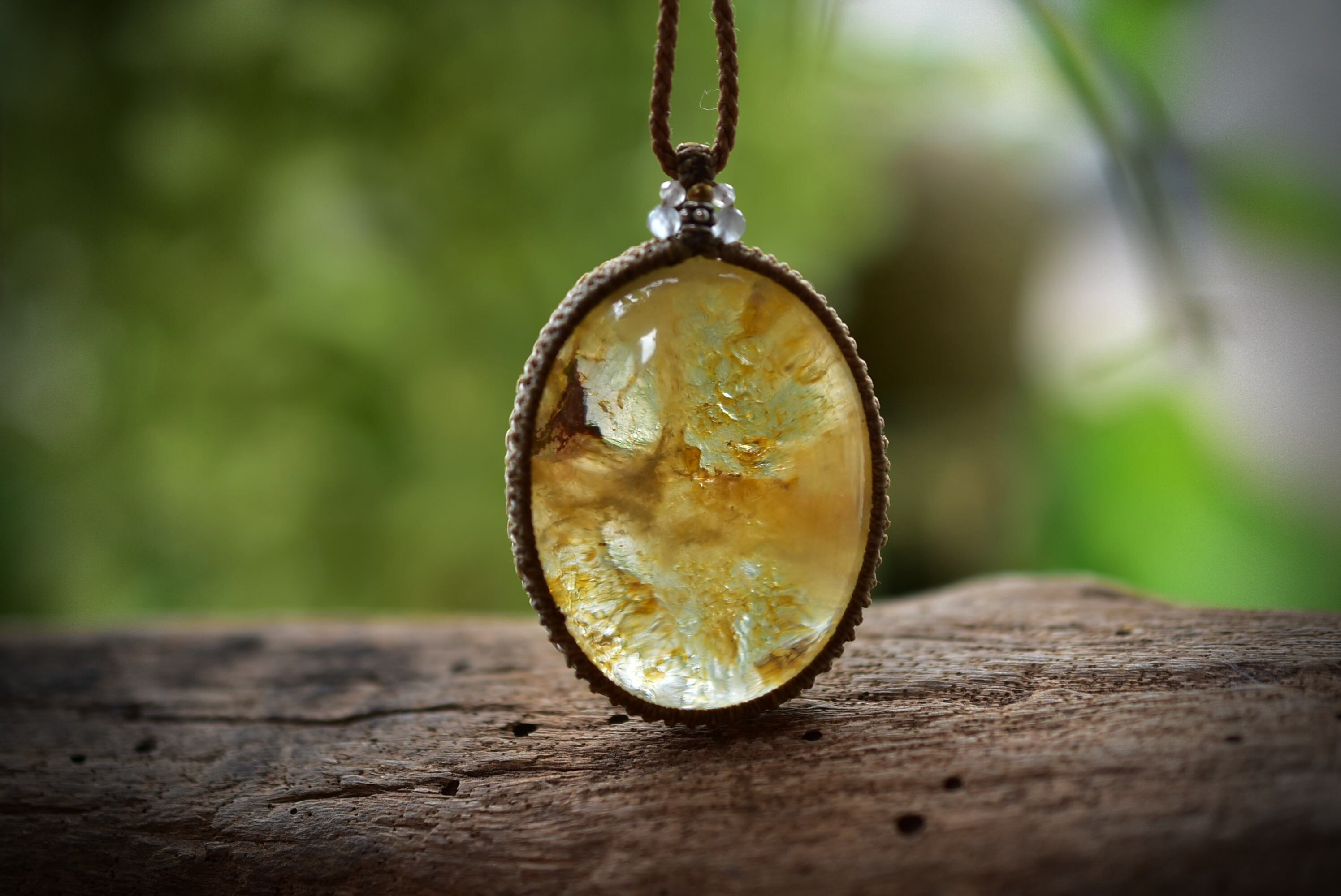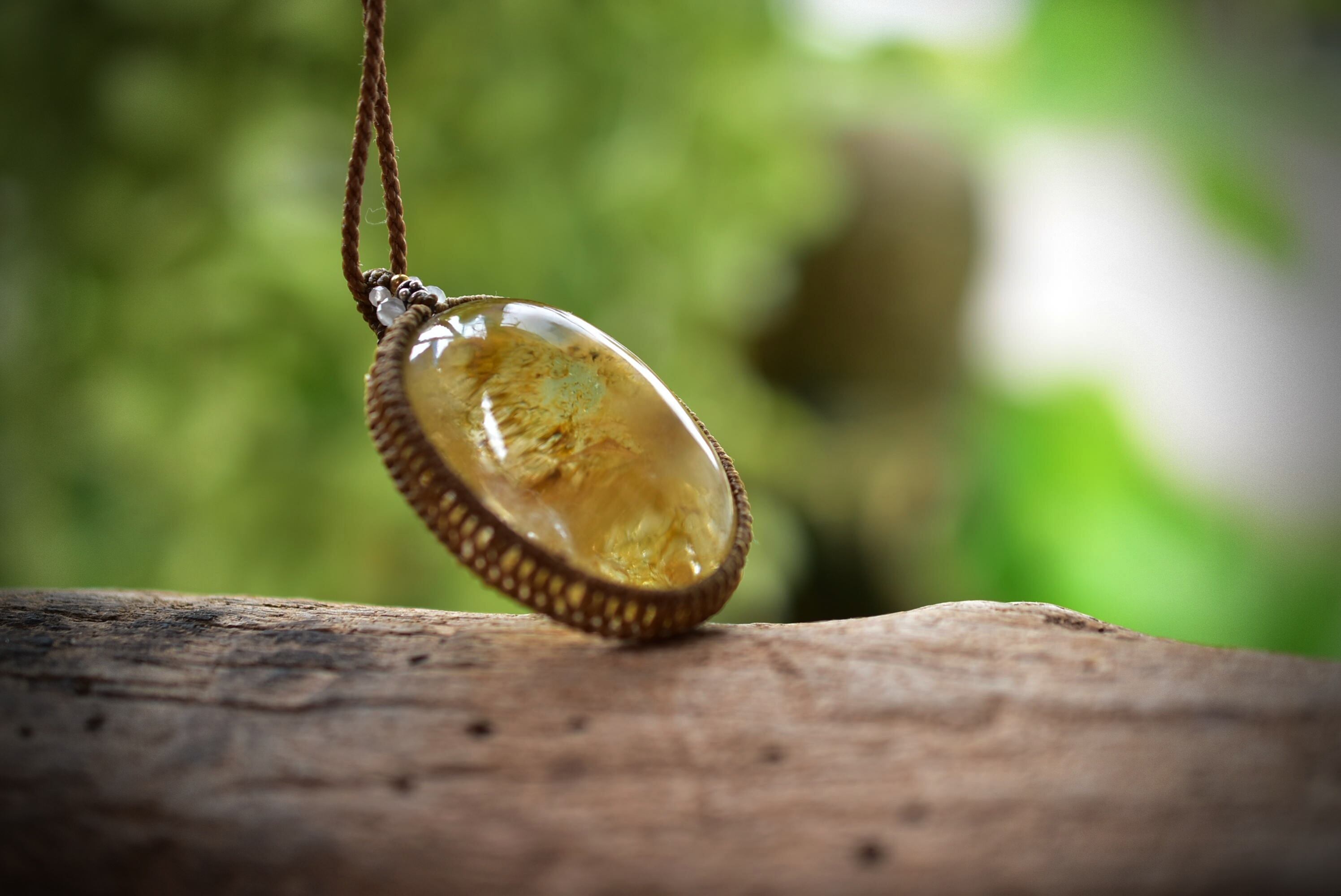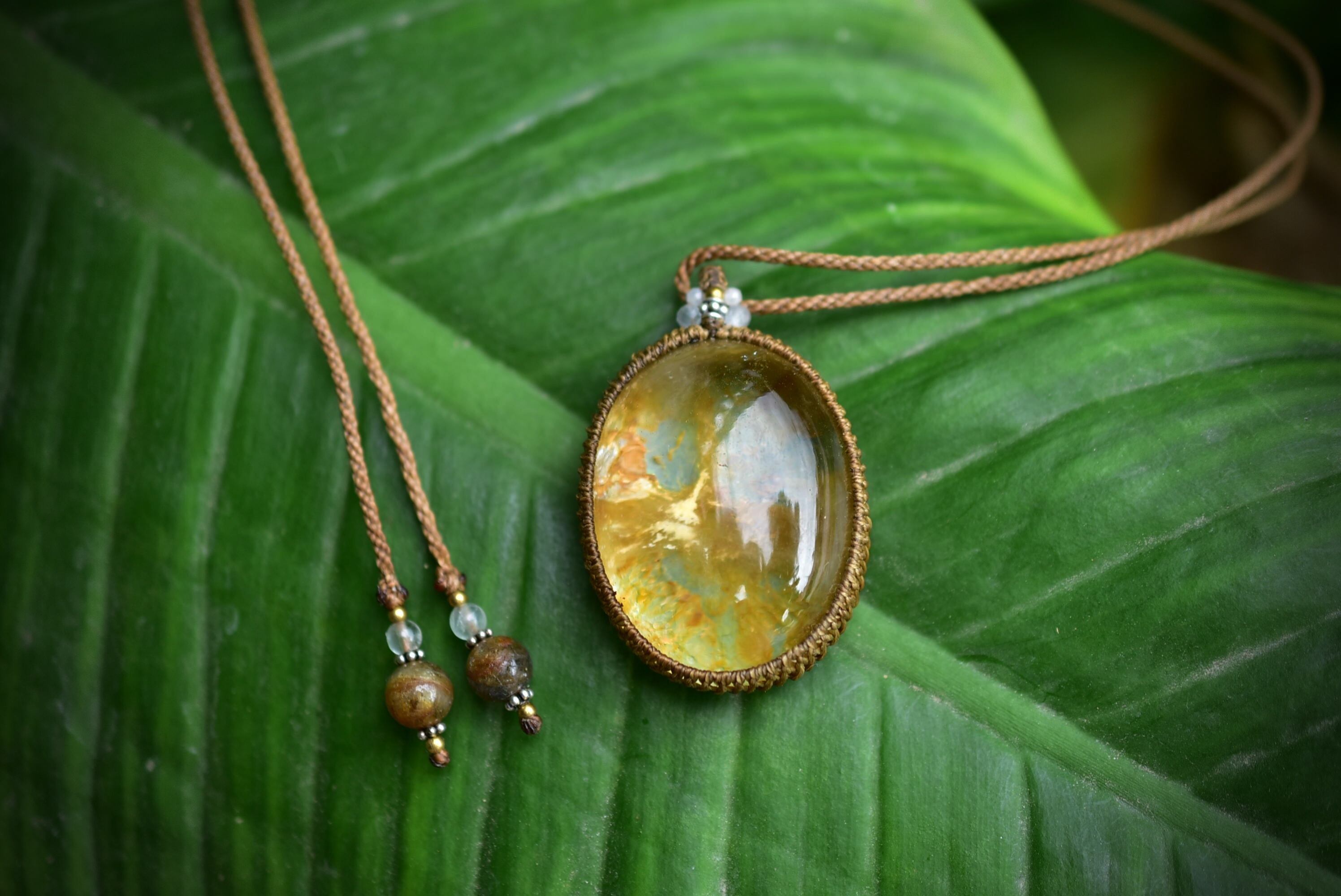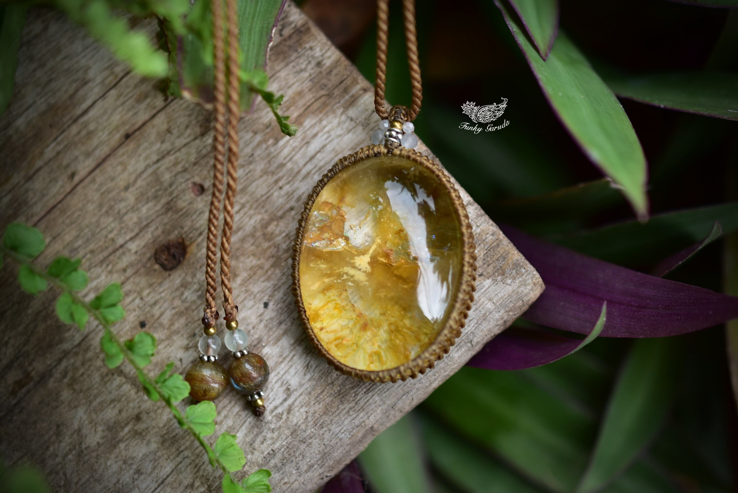 大粒イエローゴールド★ガーデンクォーツ マクラメペンダント390