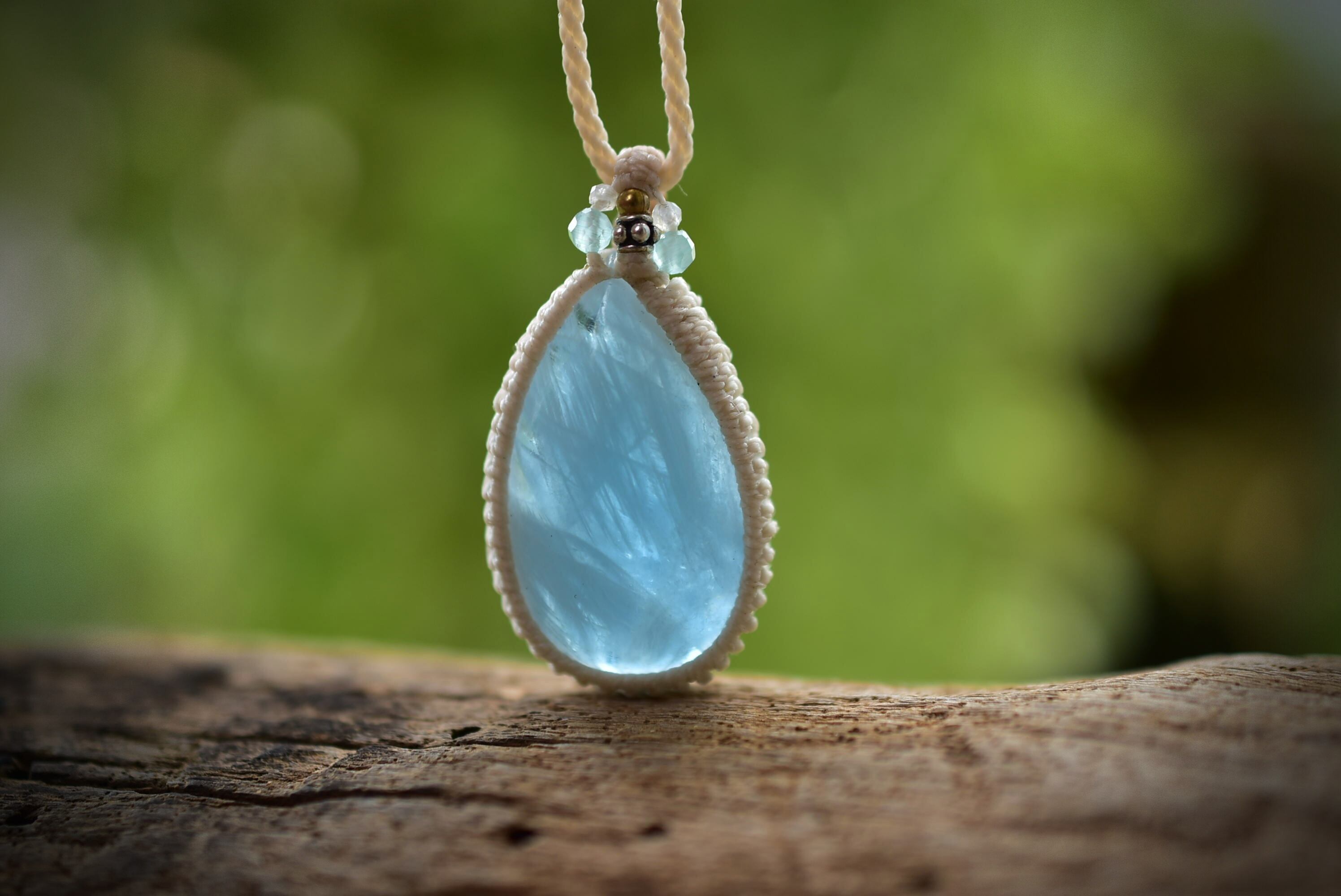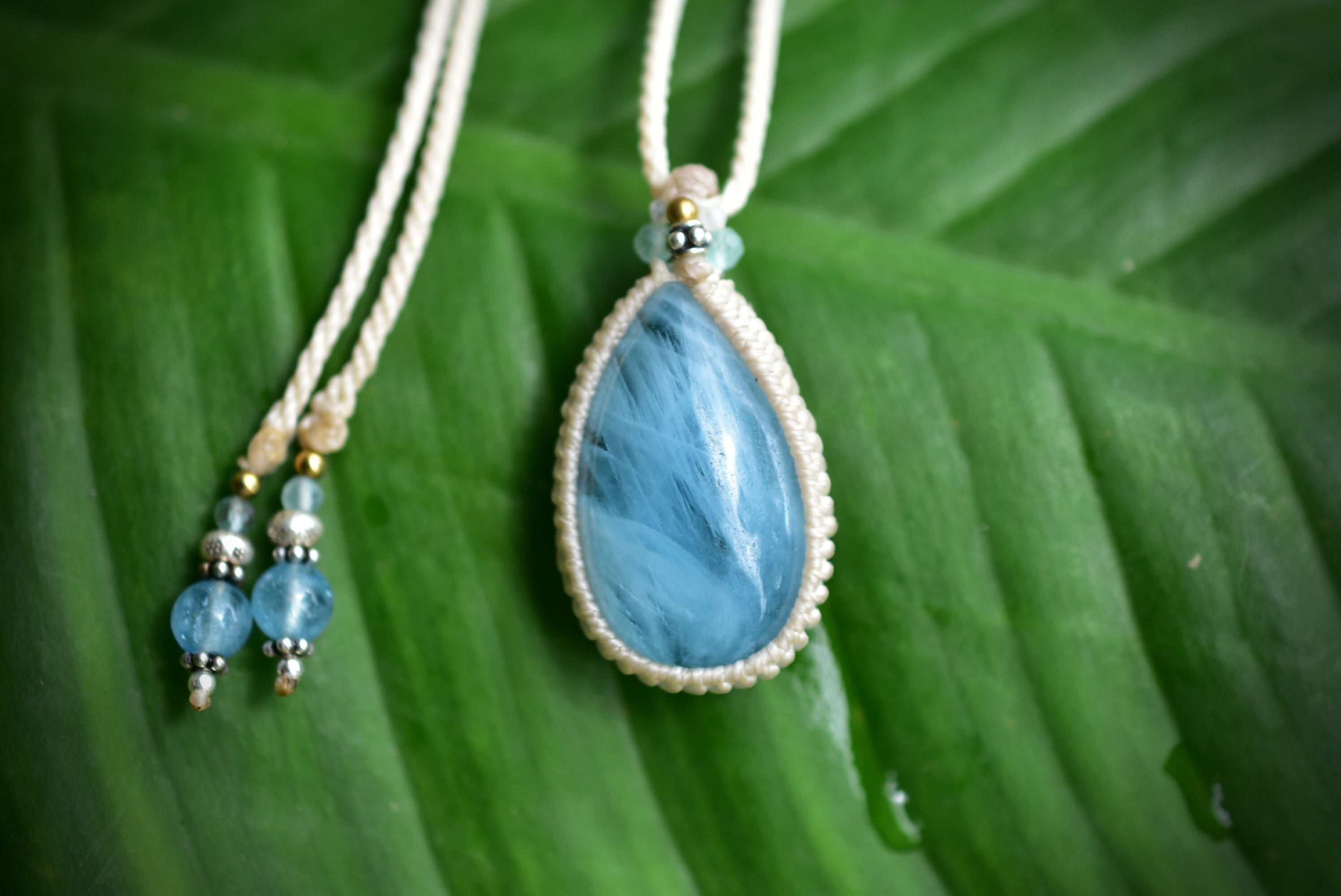 とろけるブルー★アクアマリン マクラメペンダント416