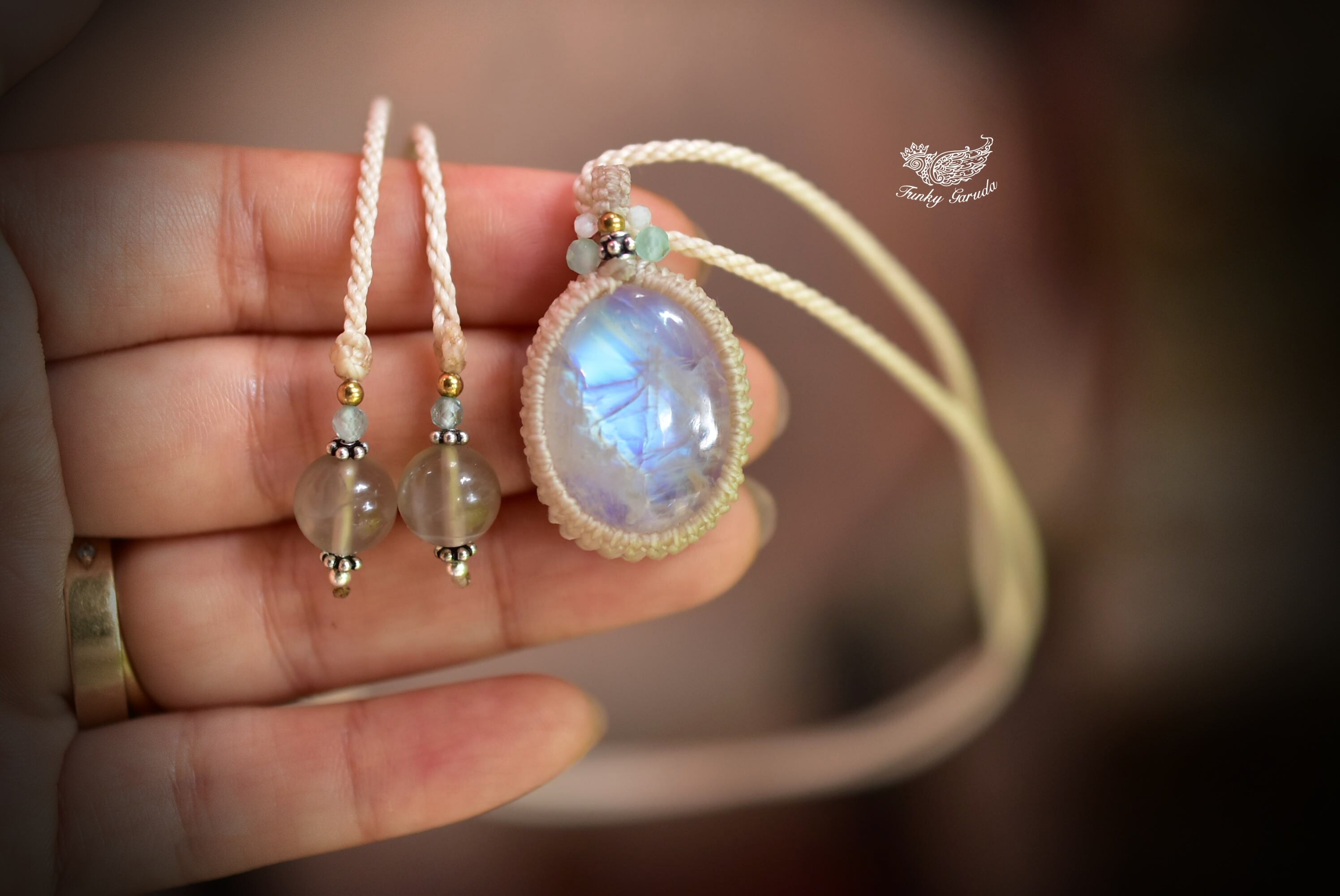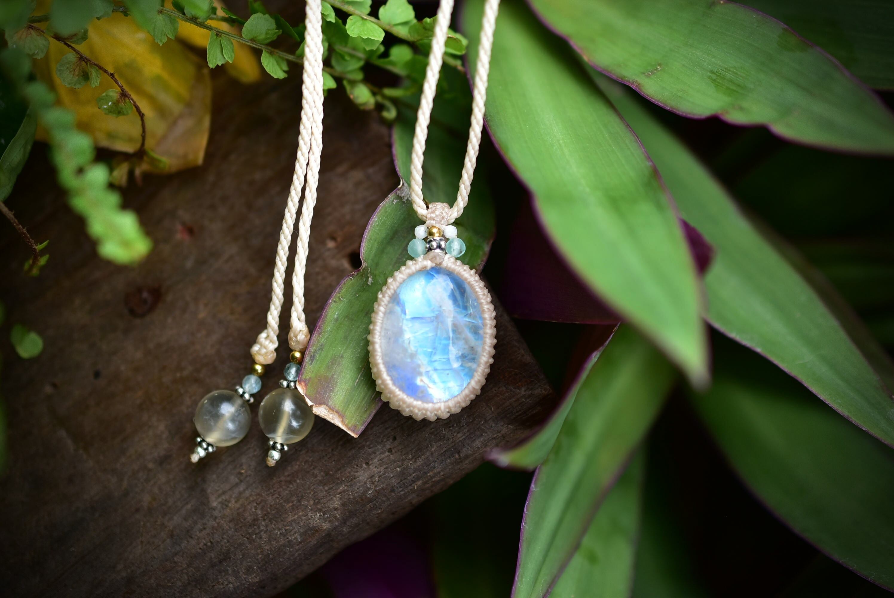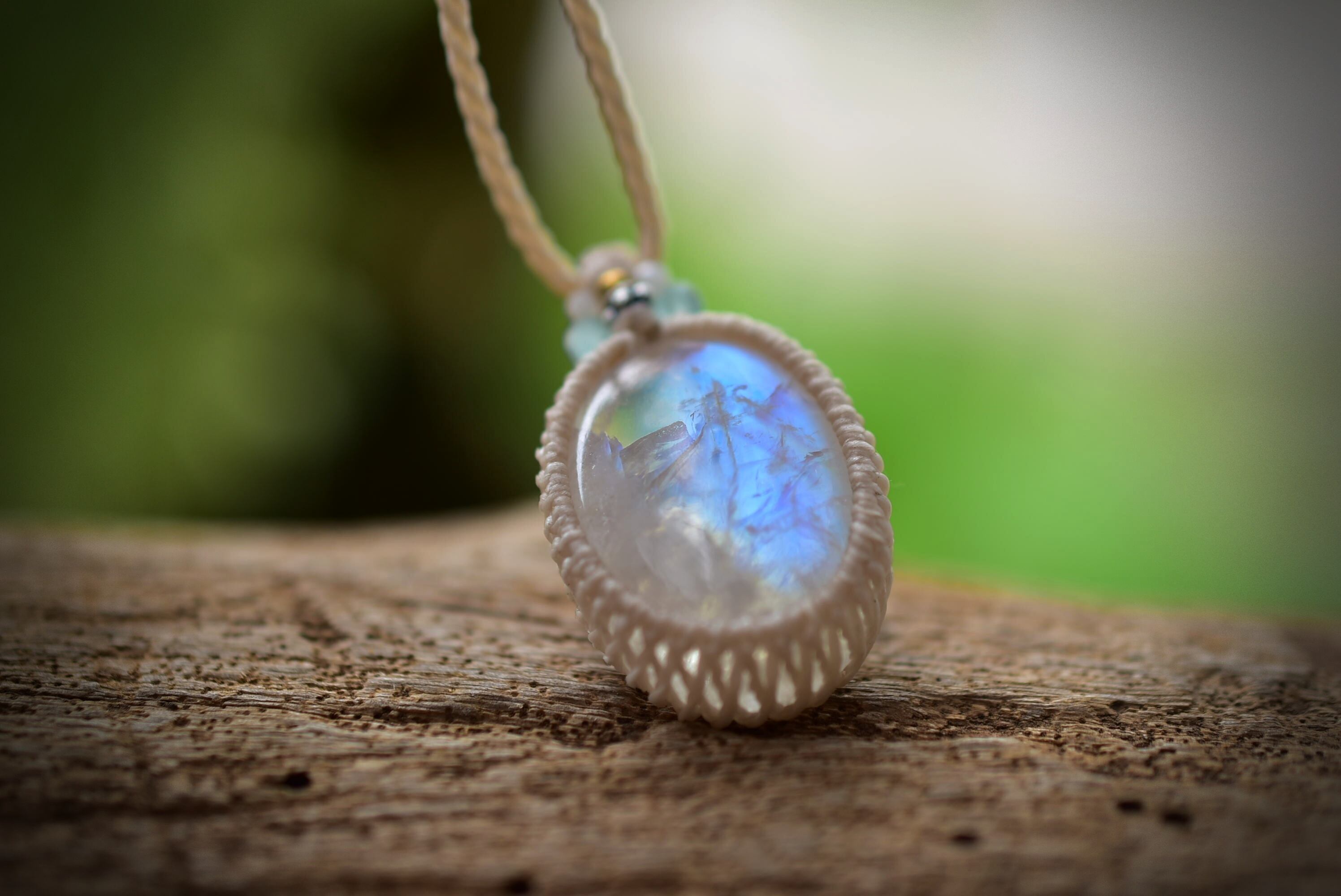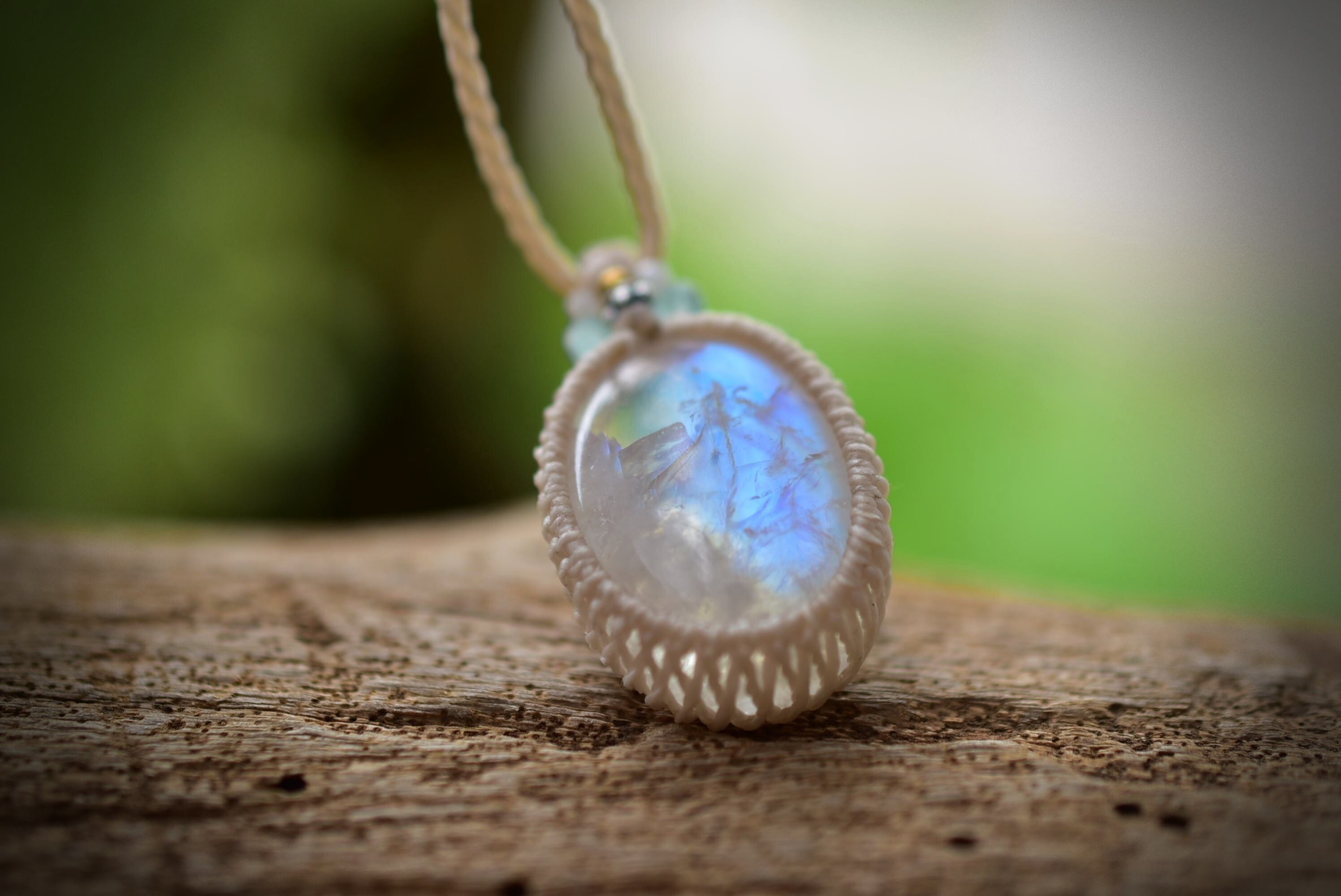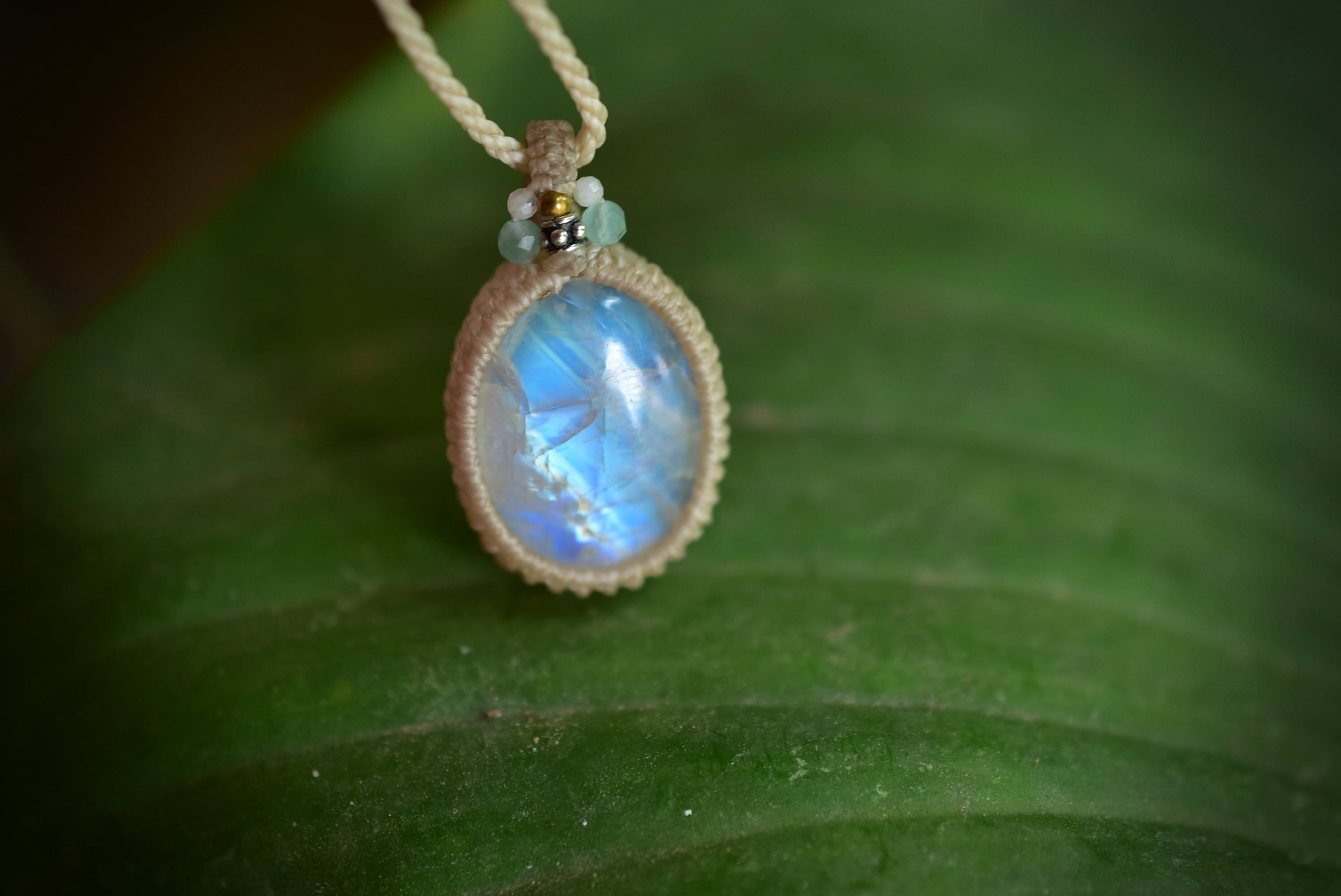 虹色★高品質★レインボームーンストーン マクラメペンダント418