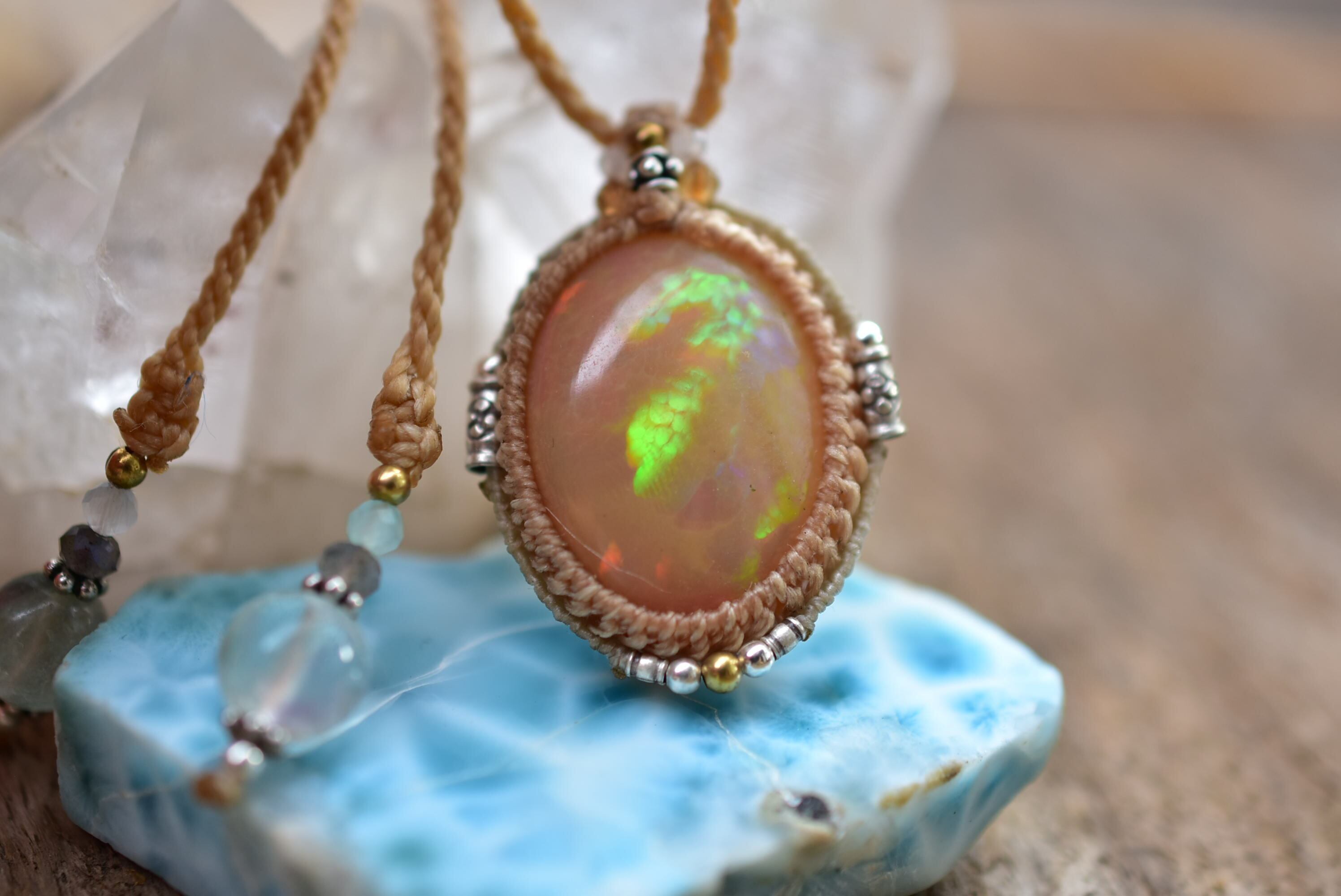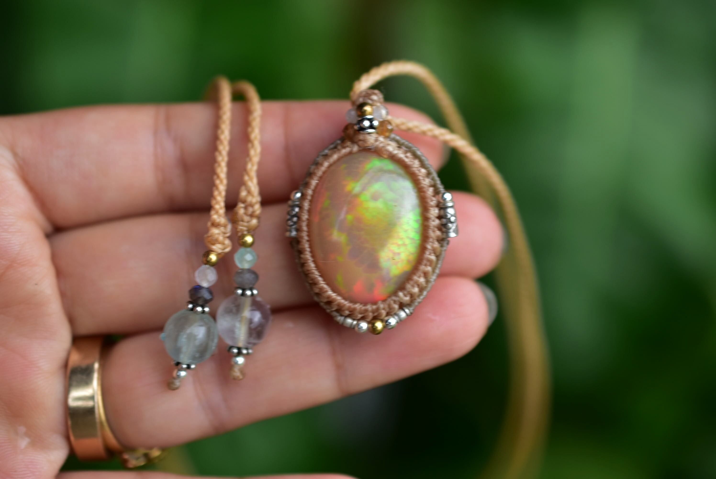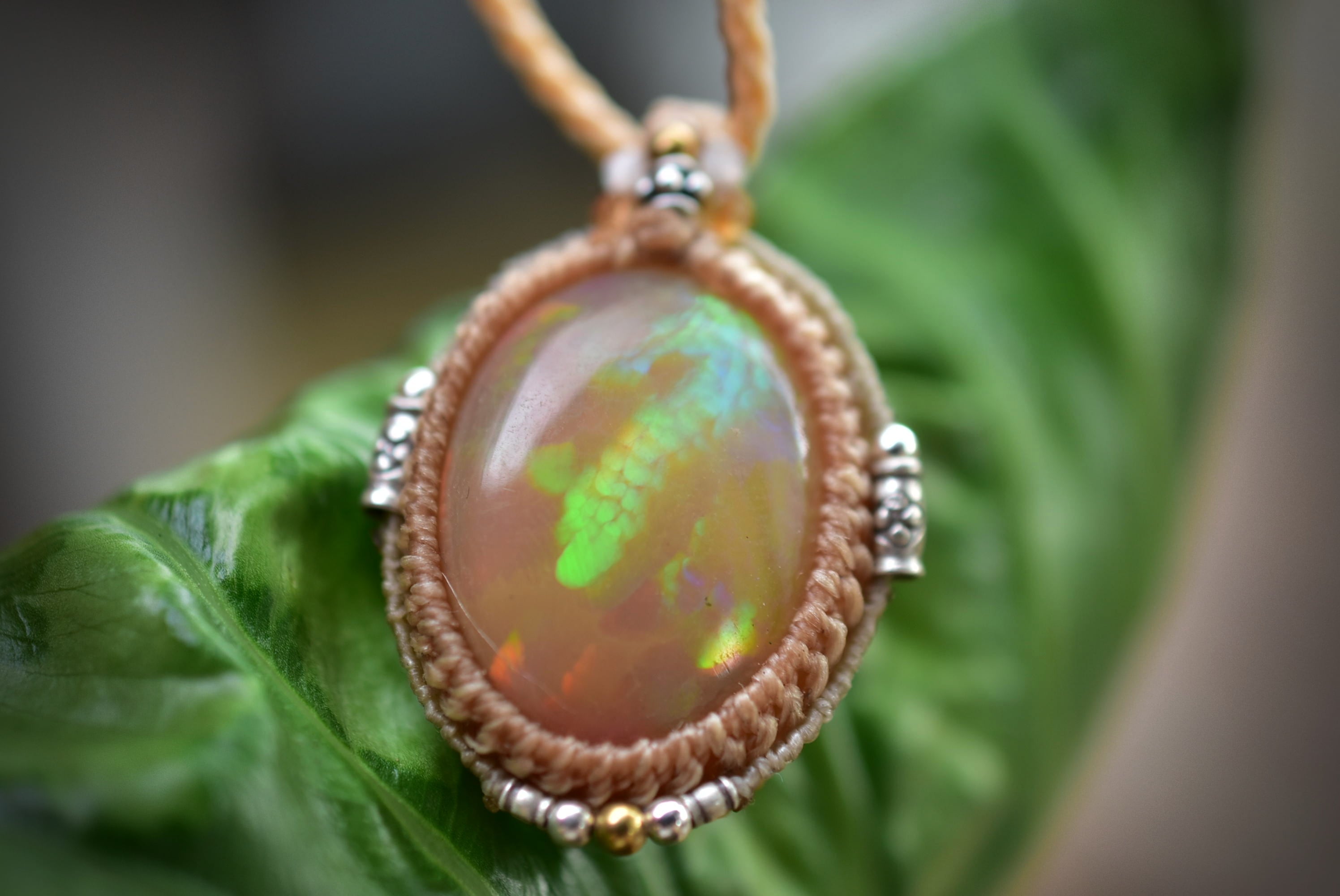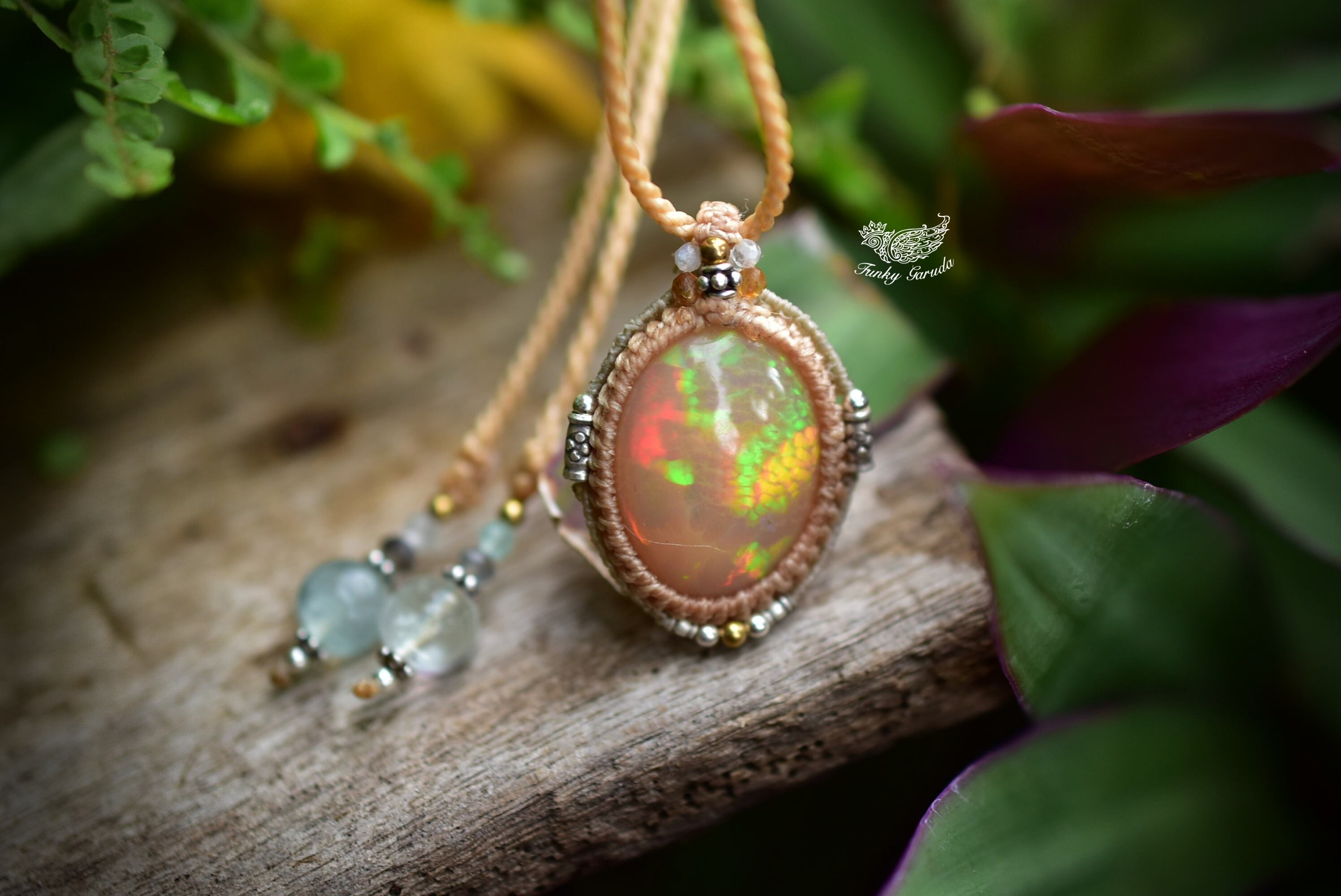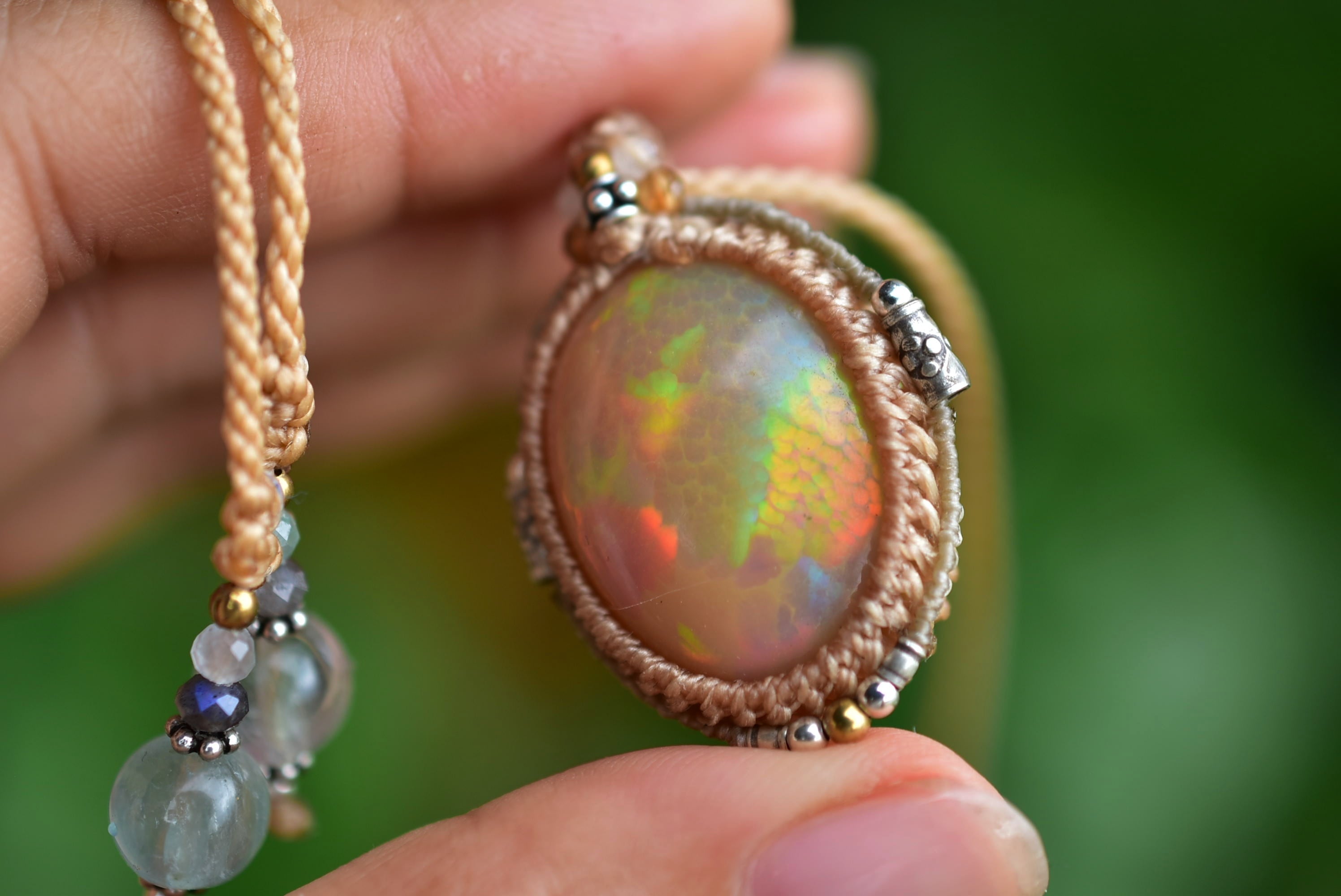 レア★蜂の巣★ハニカムオパール マクラメペンダント424