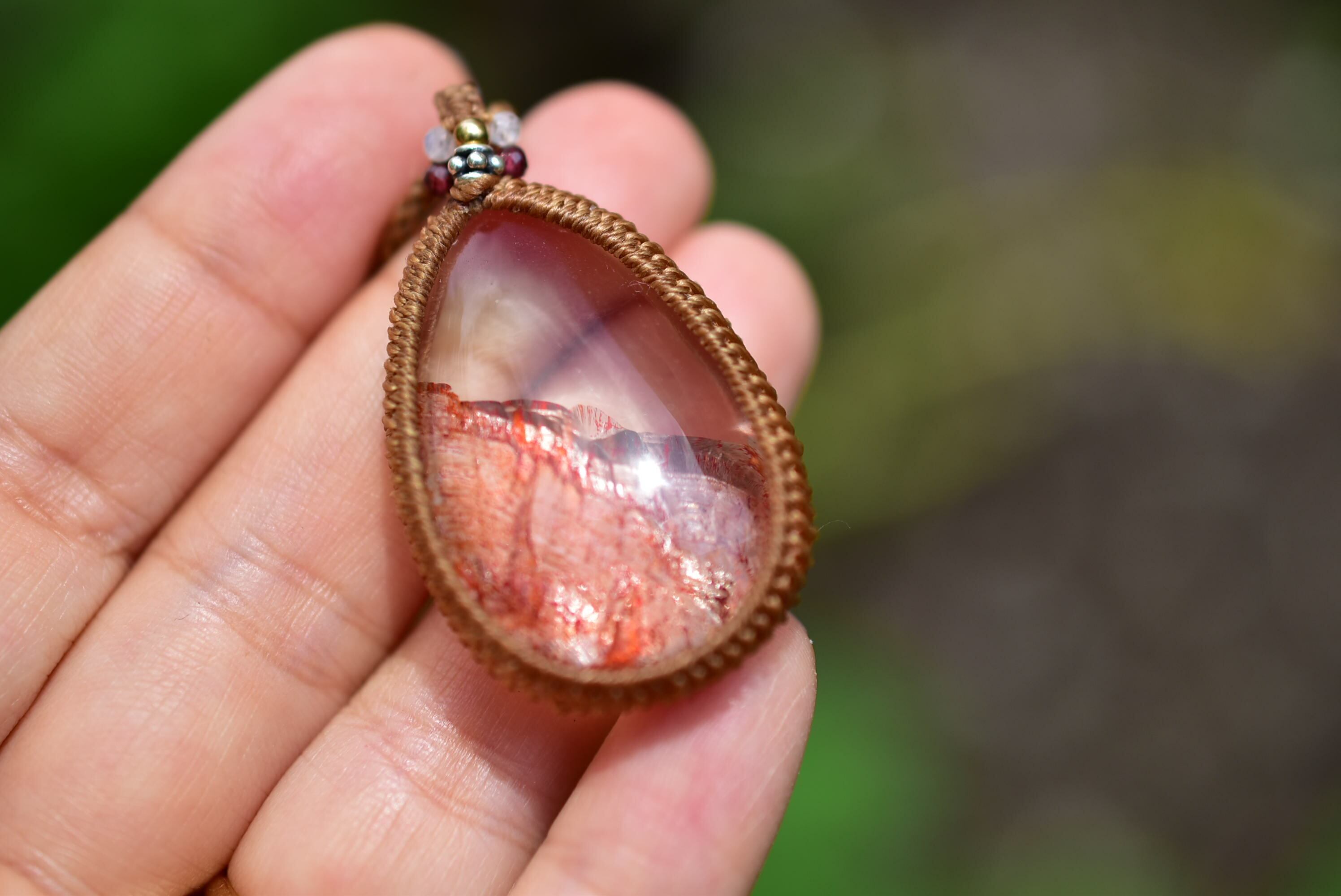 赤い山々★レッド★クォーツインクォーツ マクラメペンダント427